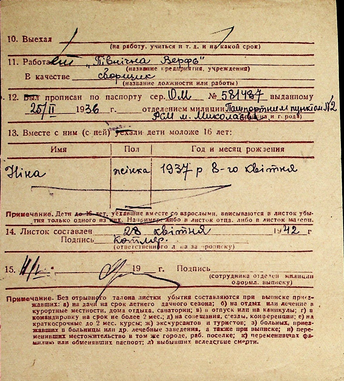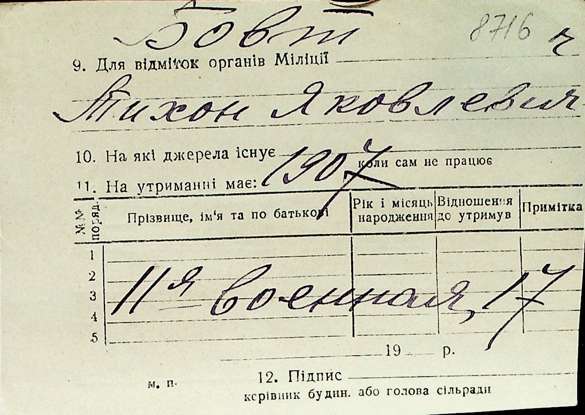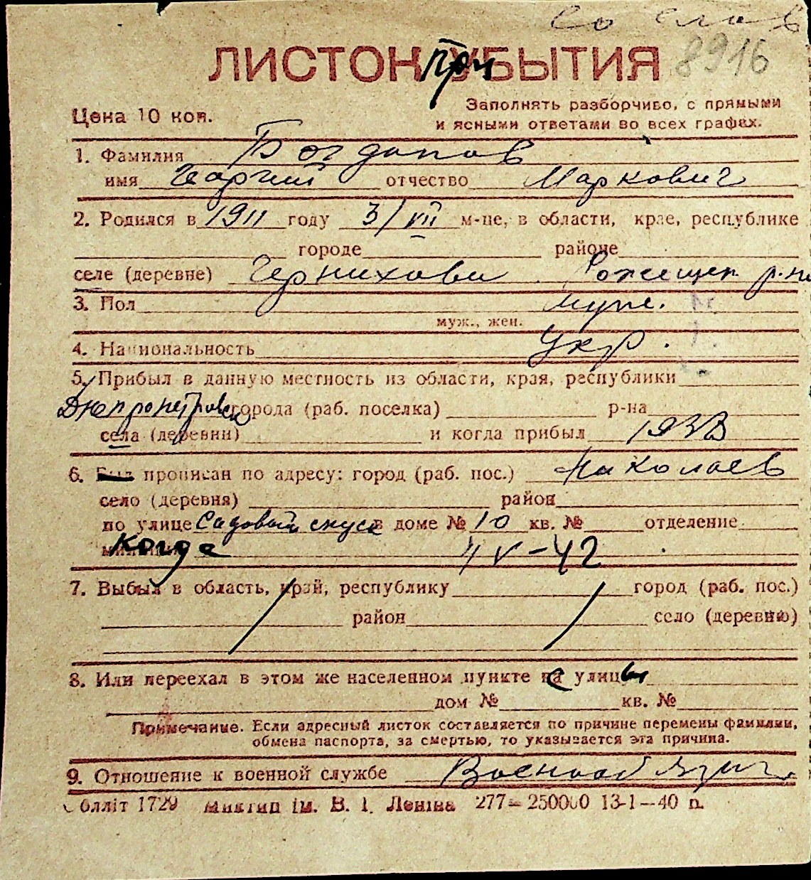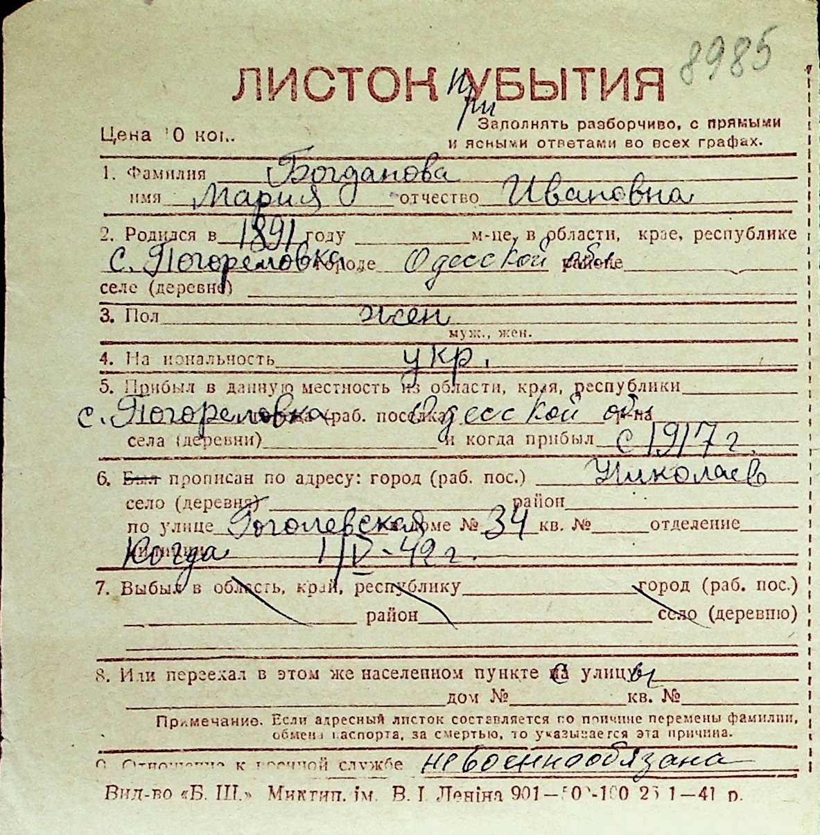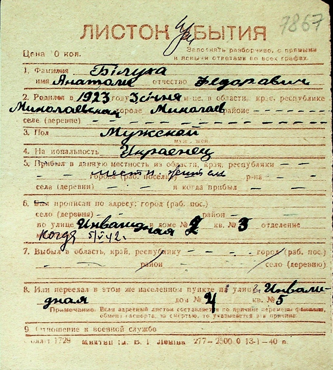 ◦ ◦ Перелік карток на осіб, які мешкали у м. Миколаїв у період окупації 1941–1944 років