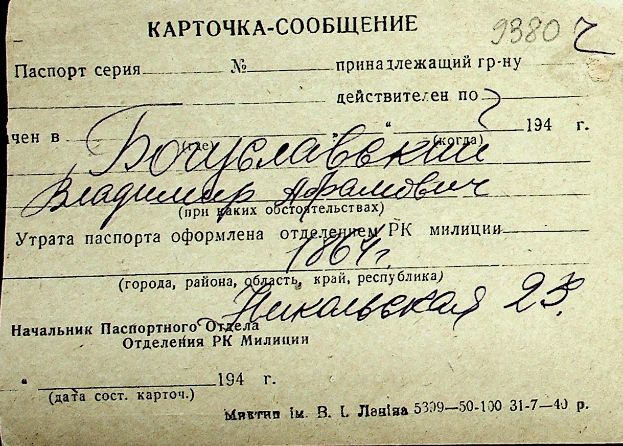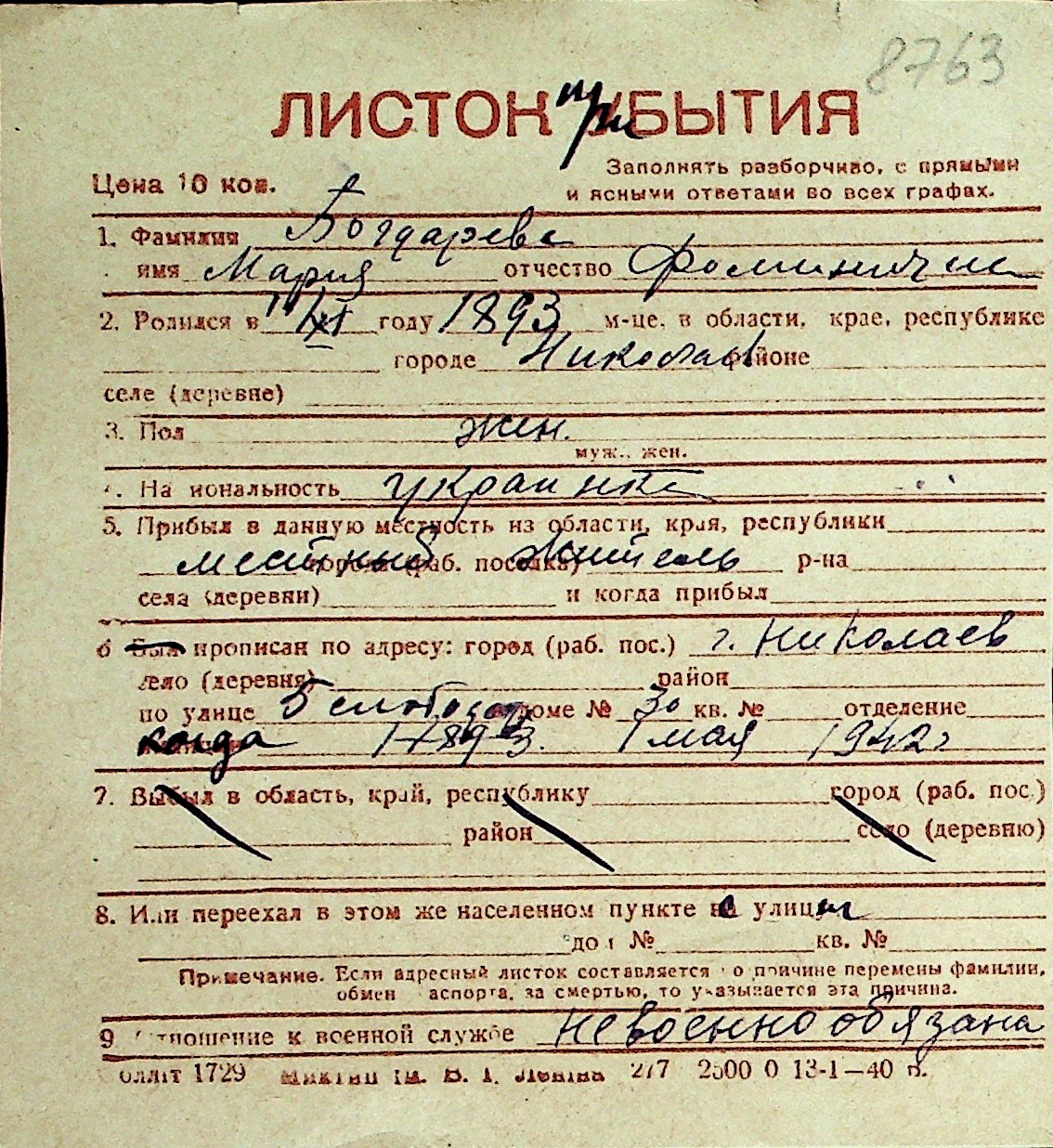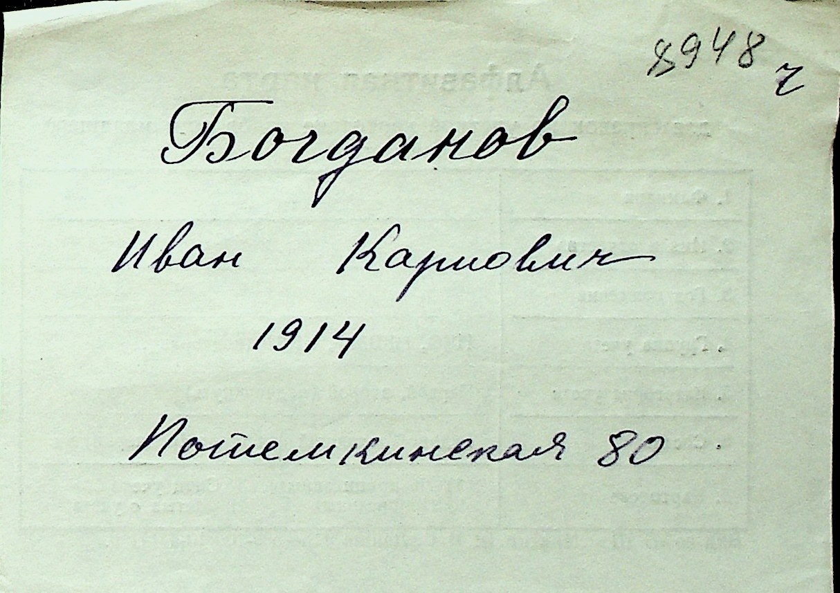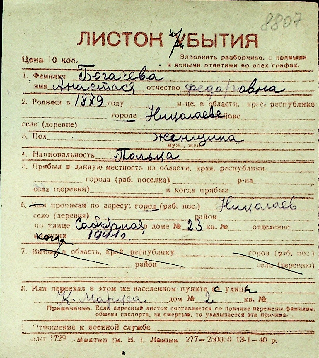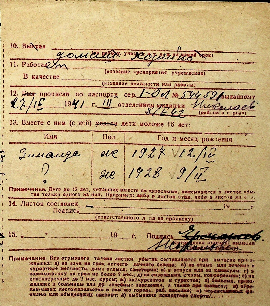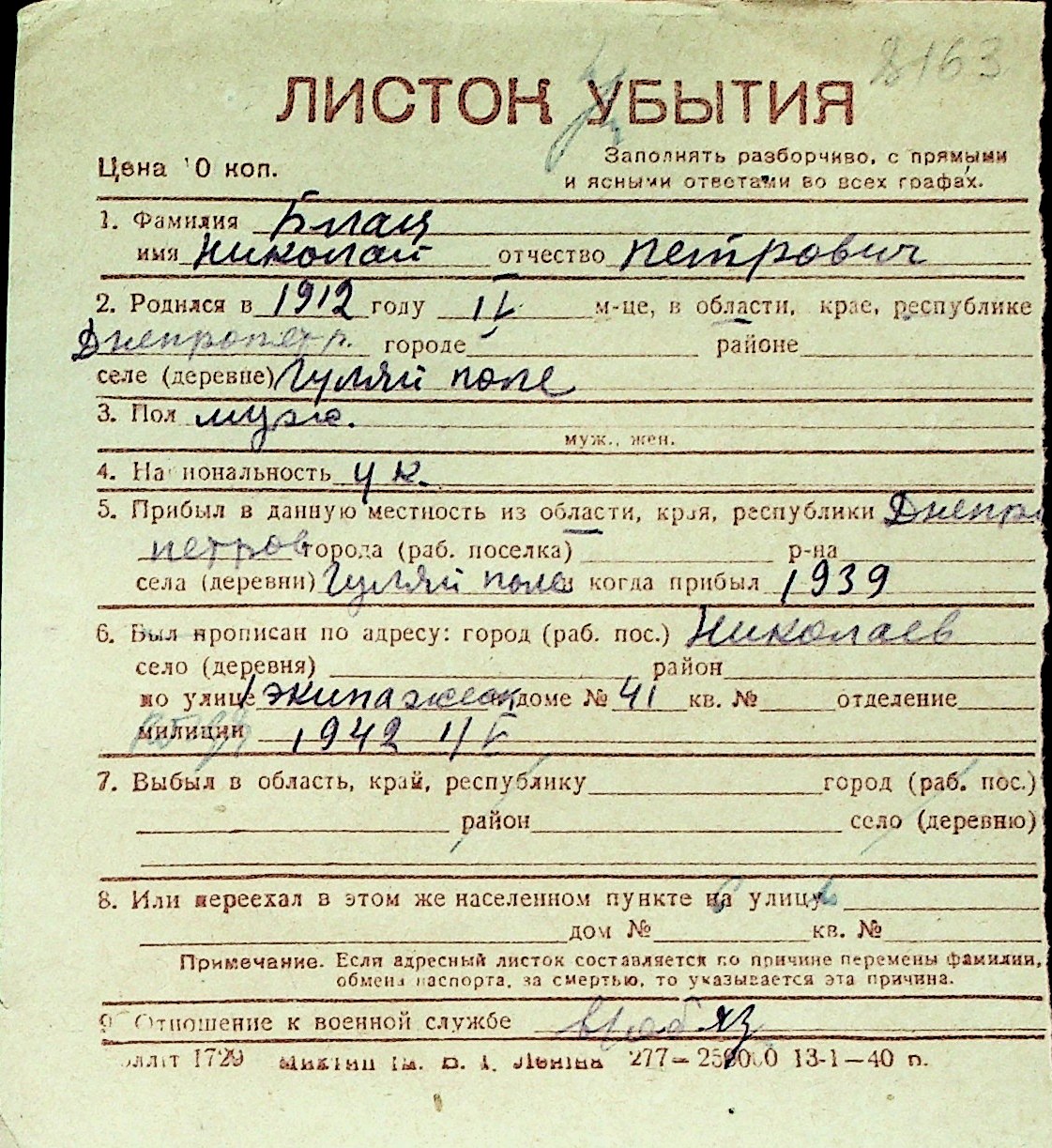 ◦ ◦ Перелік карток на осіб, які мешкали у м. Миколаїв у період окупації 1941–1944 років