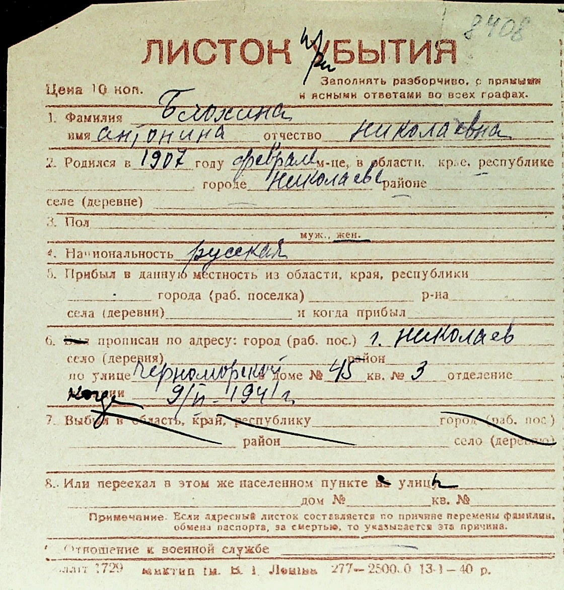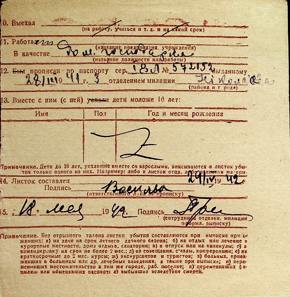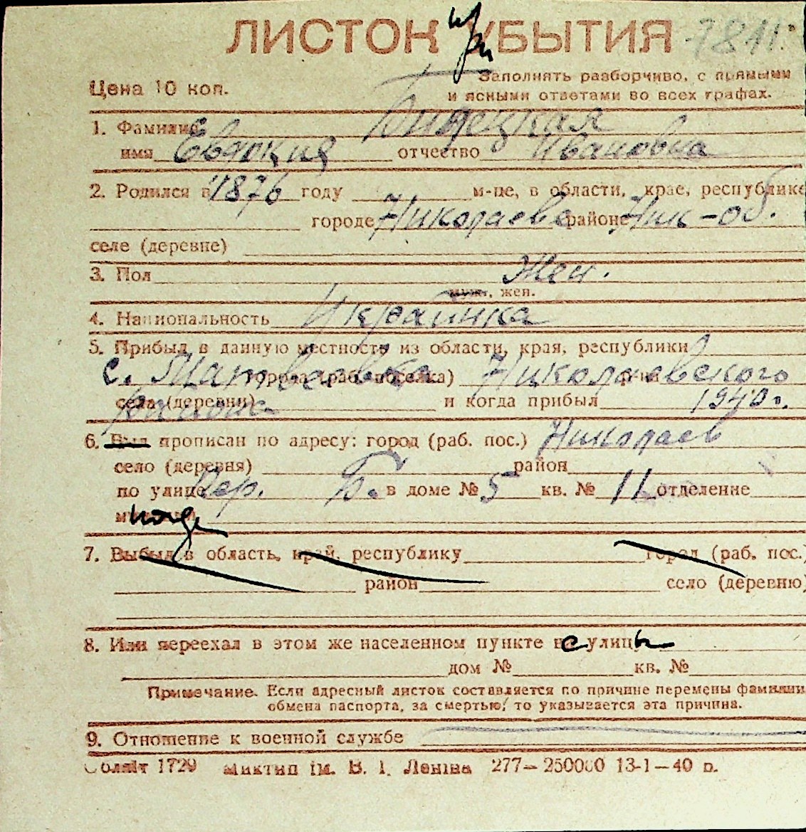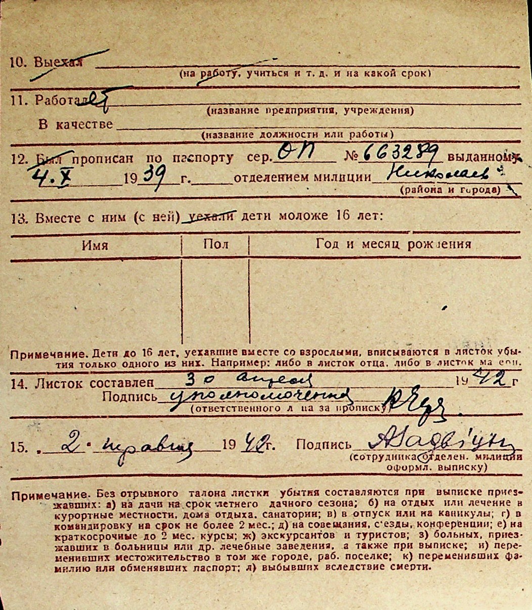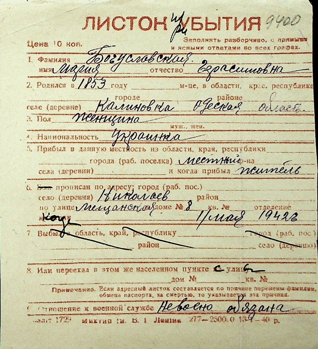 ◦ ◦ Перелік карток на осіб, які мешкали у м. Миколаїв у період окупації 1941–1944 років