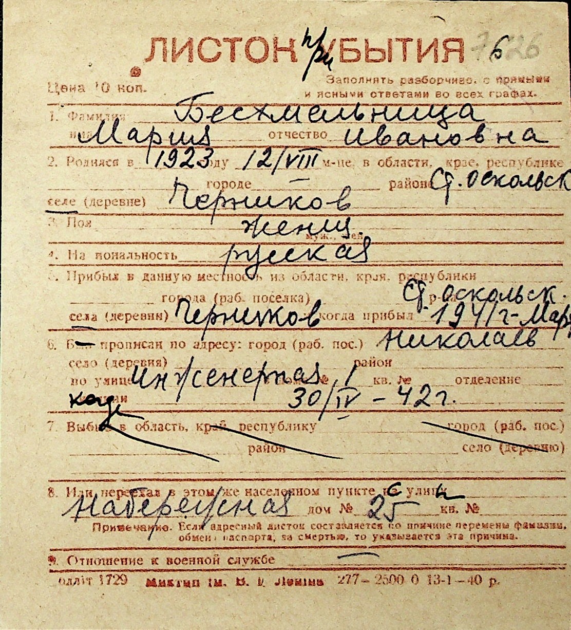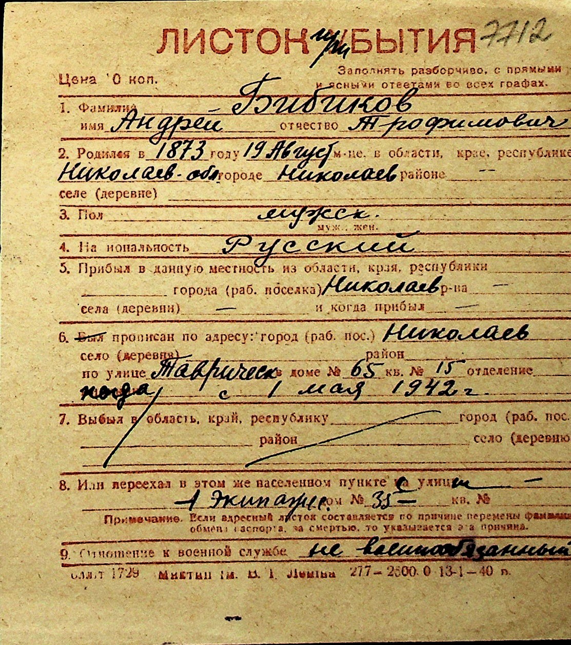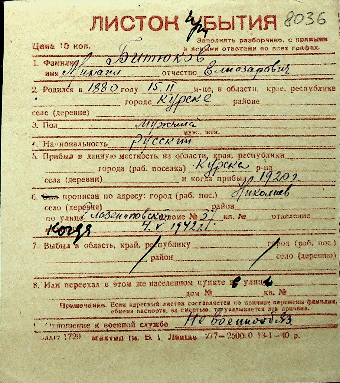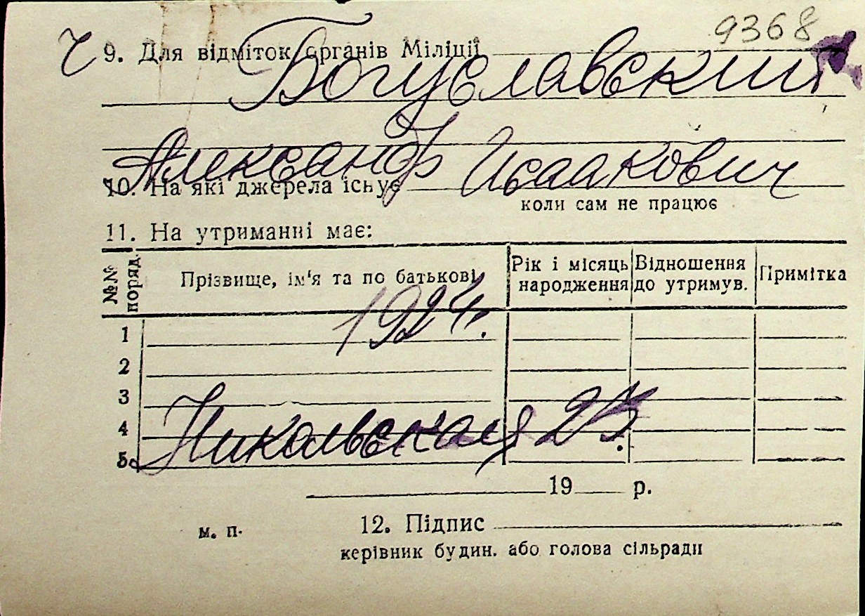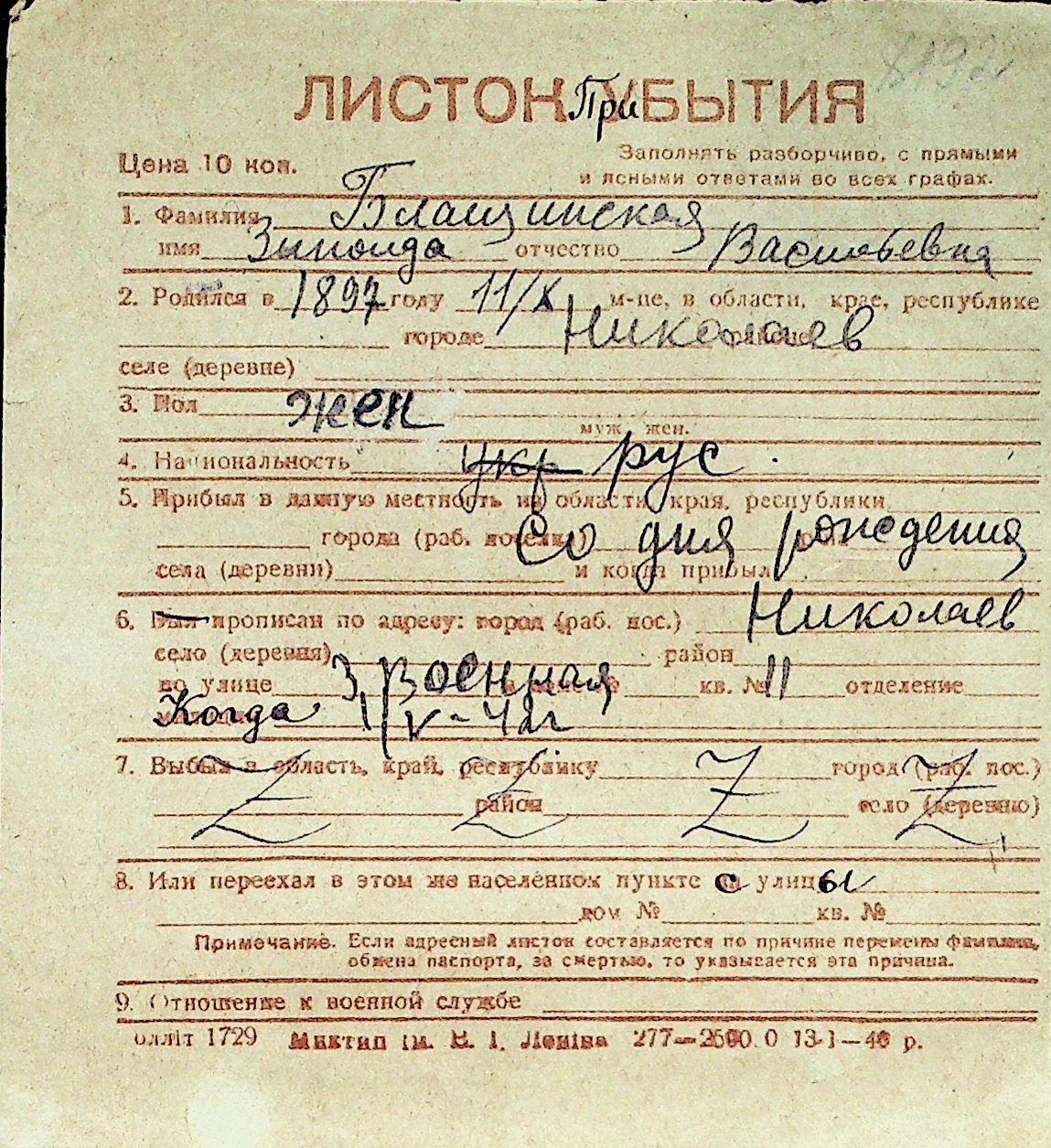 ◦ ◦ Перелік карток на осіб, які мешкали у м. Миколаїв у період окупації 1941–1944 років