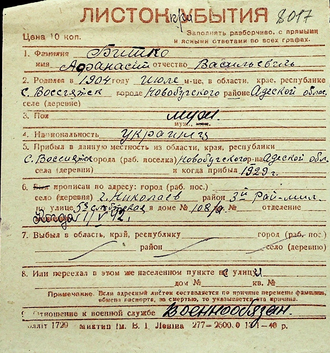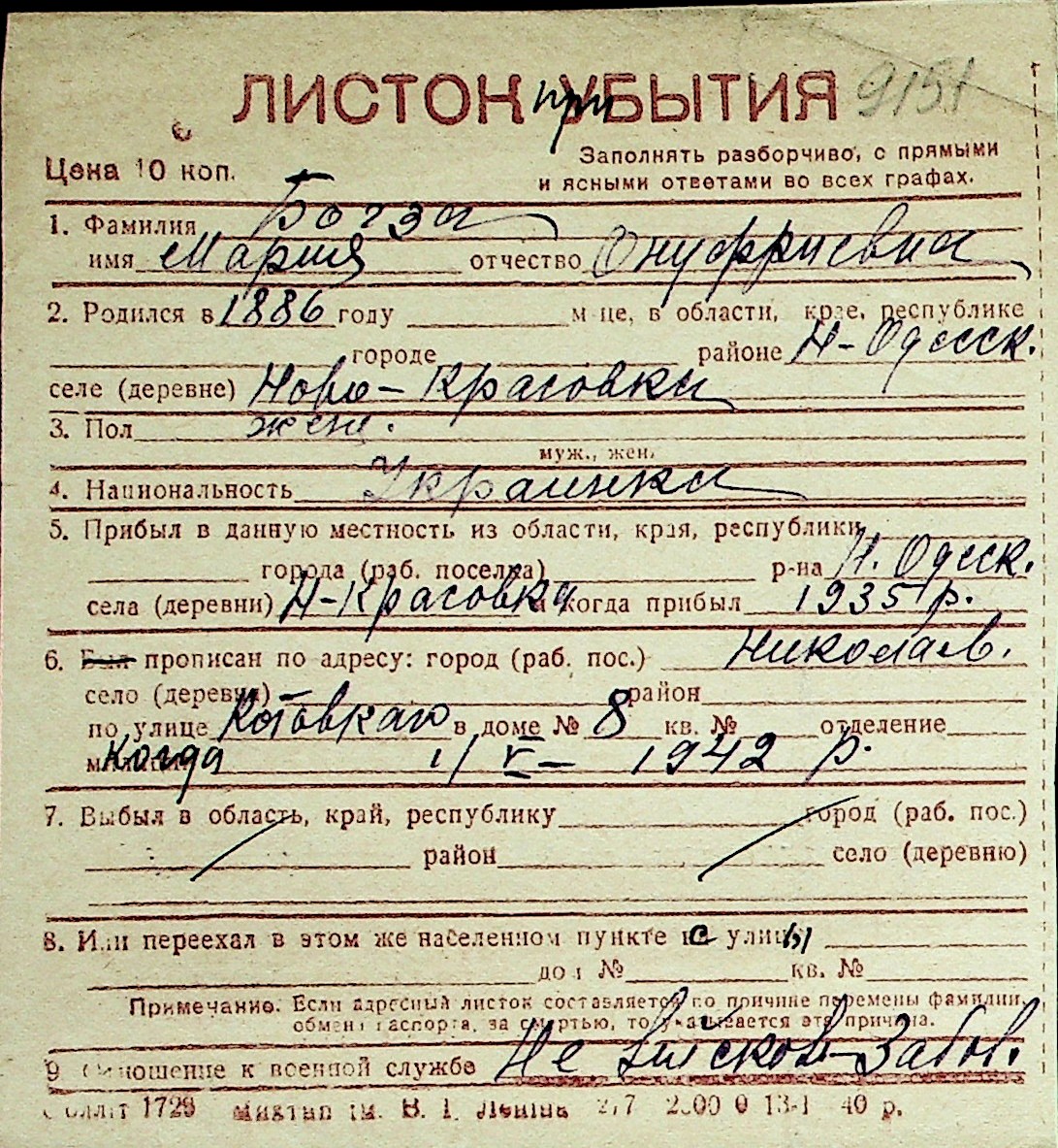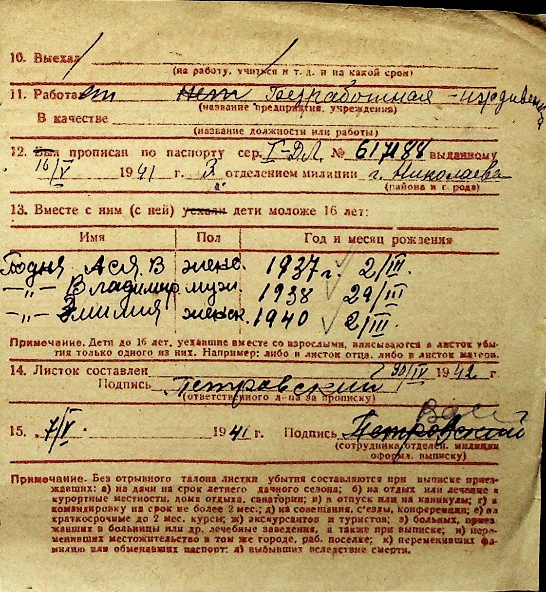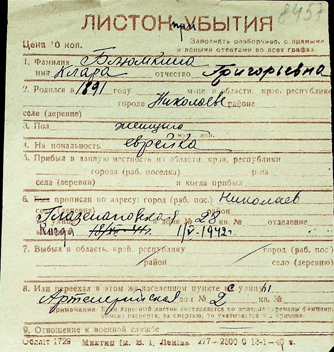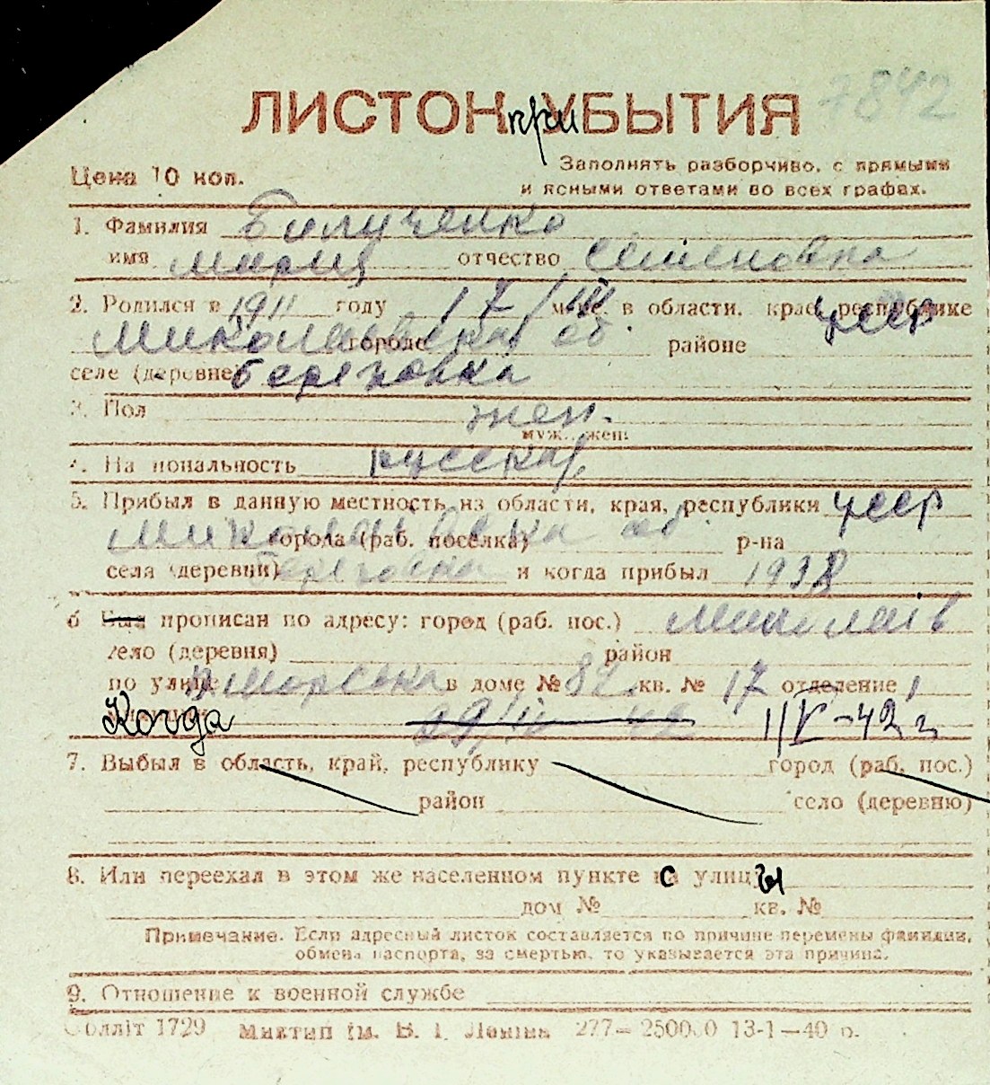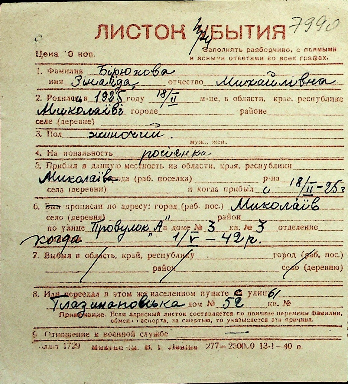 ◦ ◦ Перелік карток на осіб, які мешкали у м. Миколаїв у період окупації 1941–1944 років