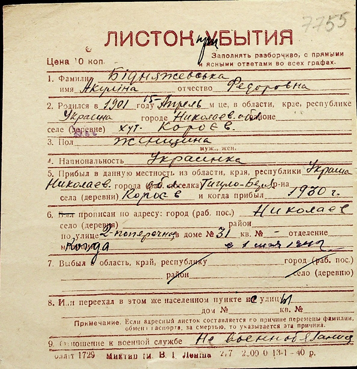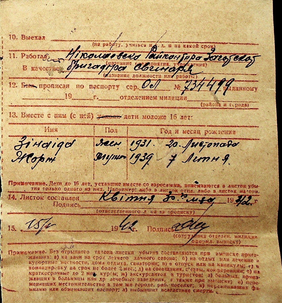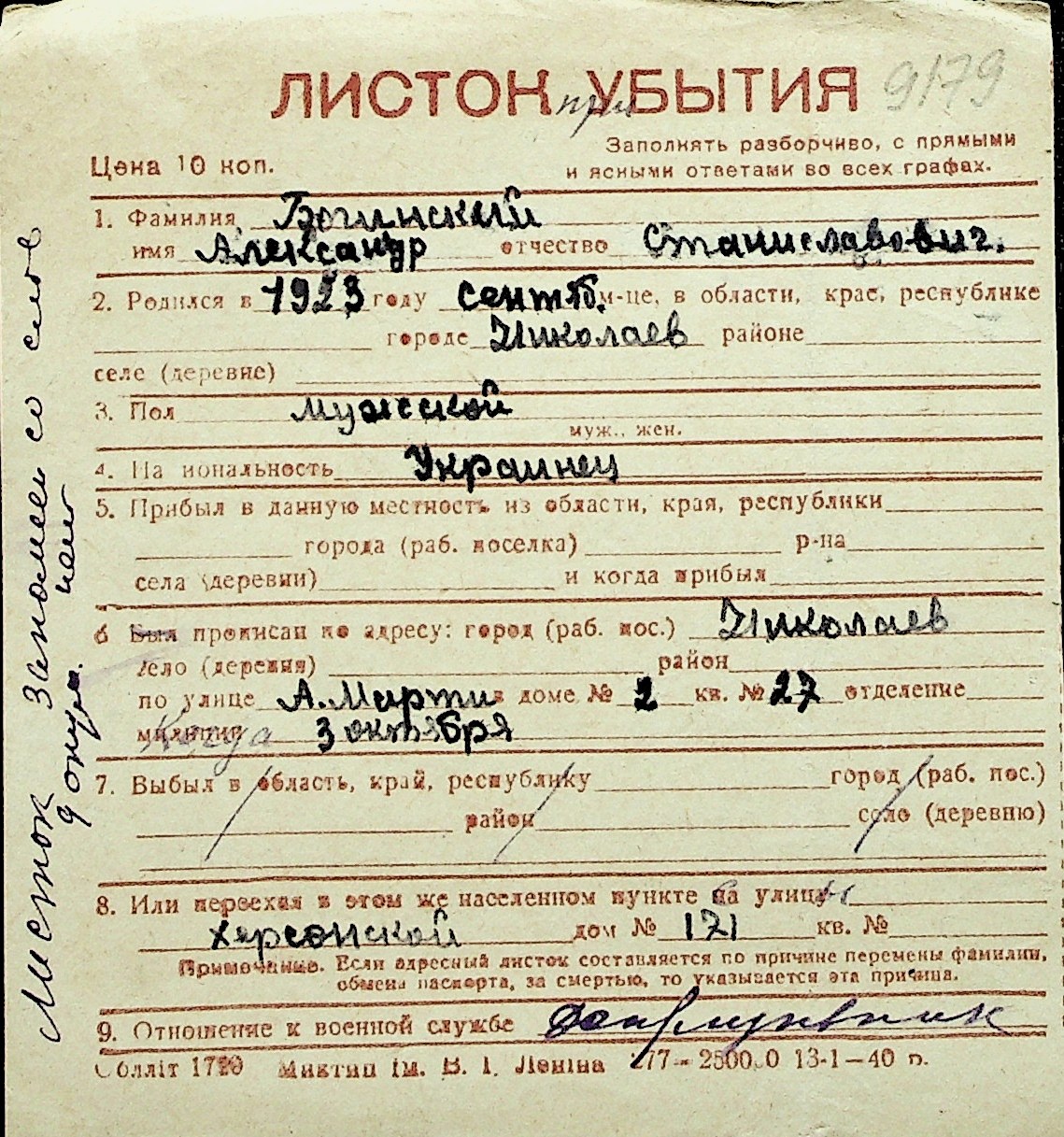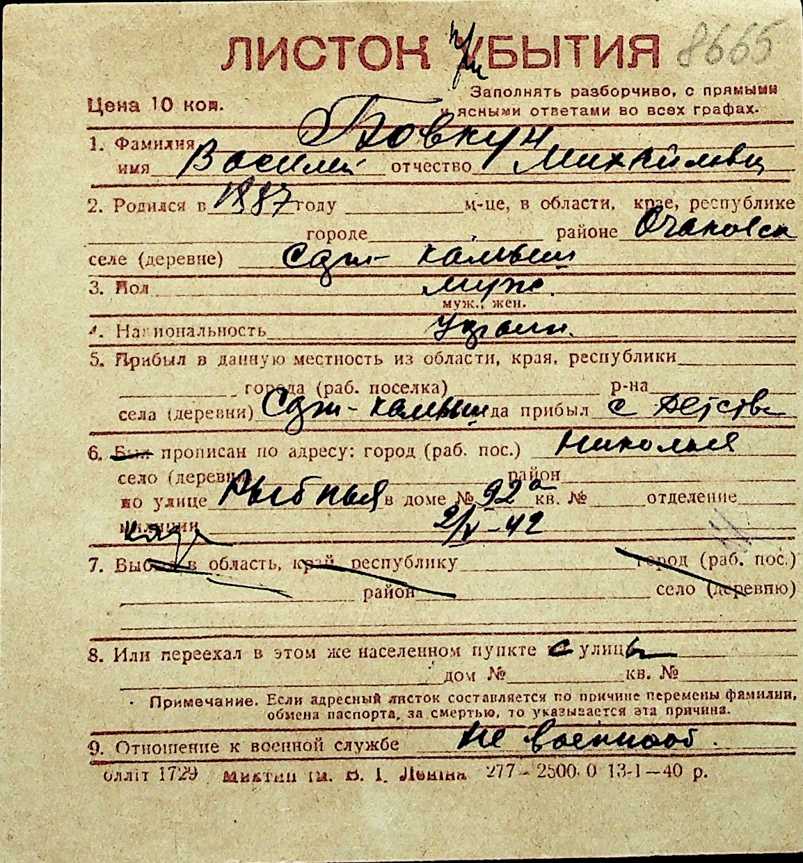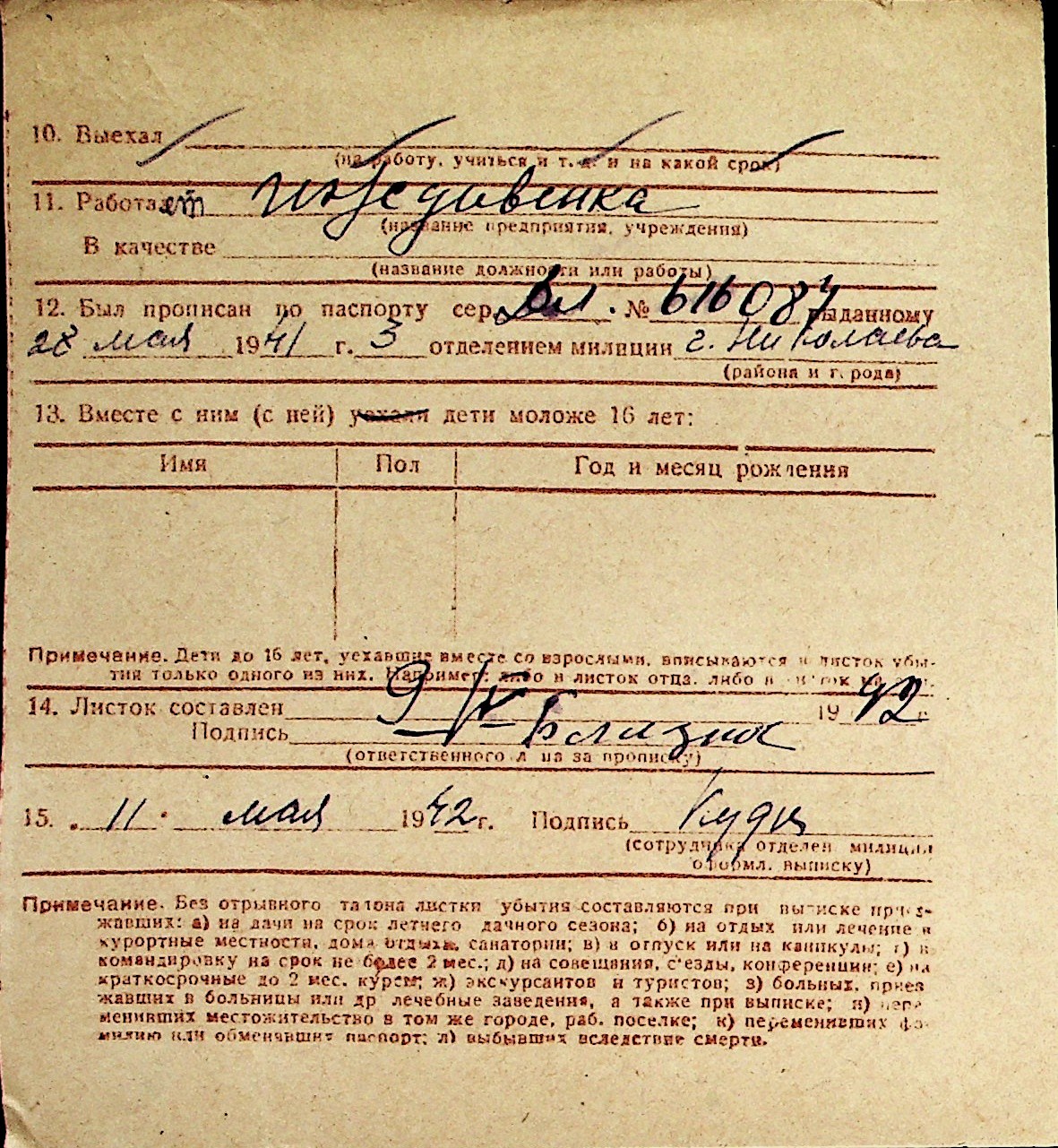 ◦ ◦ Перелік карток на осіб, які мешкали у м. Миколаїв у період окупації 1941–1944 років