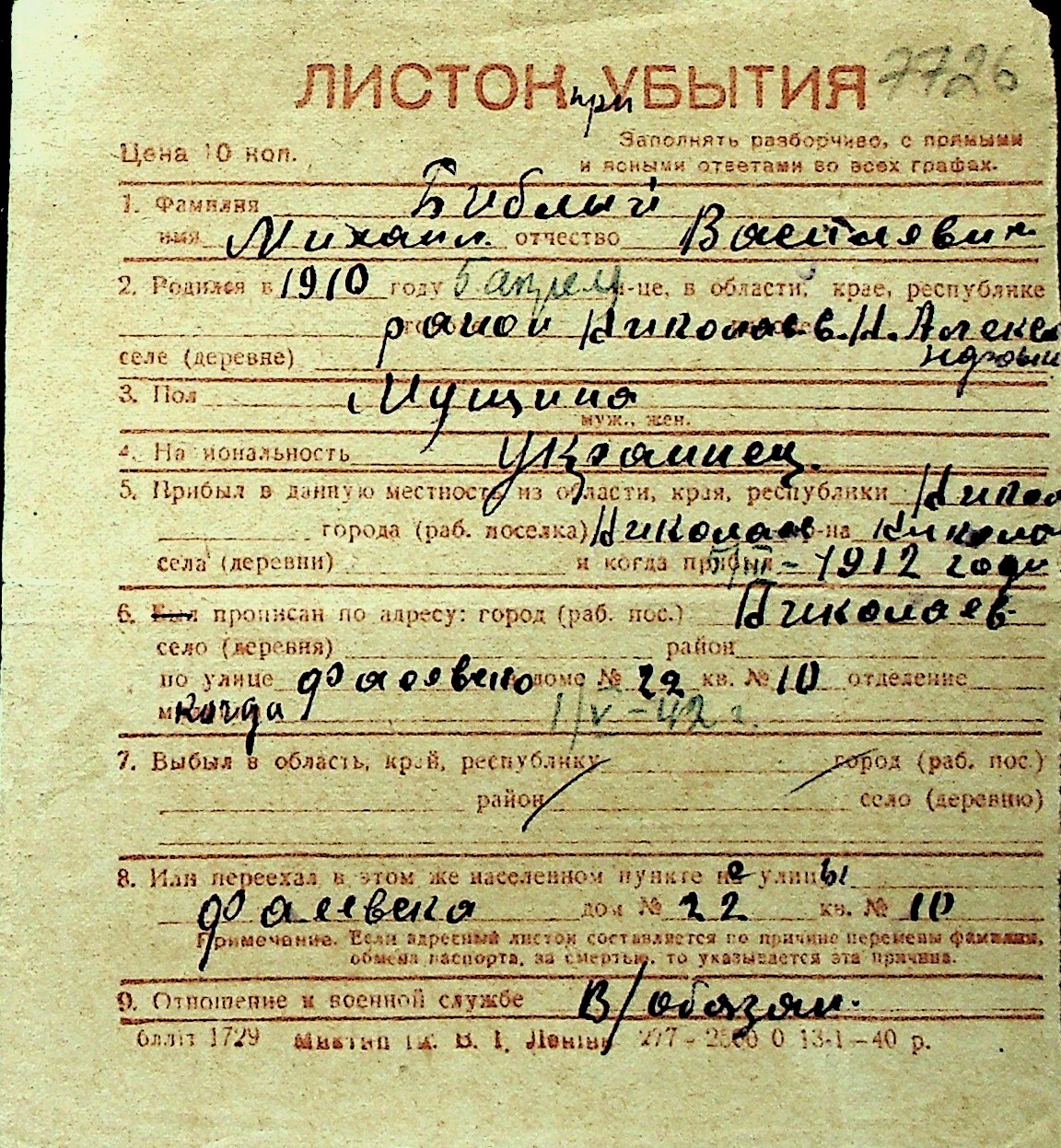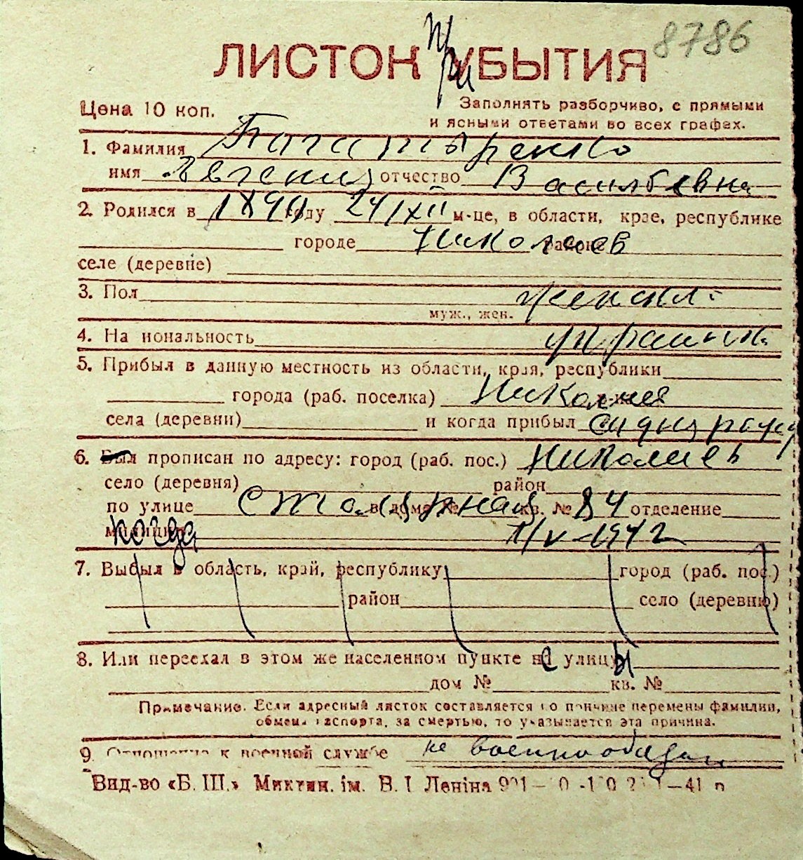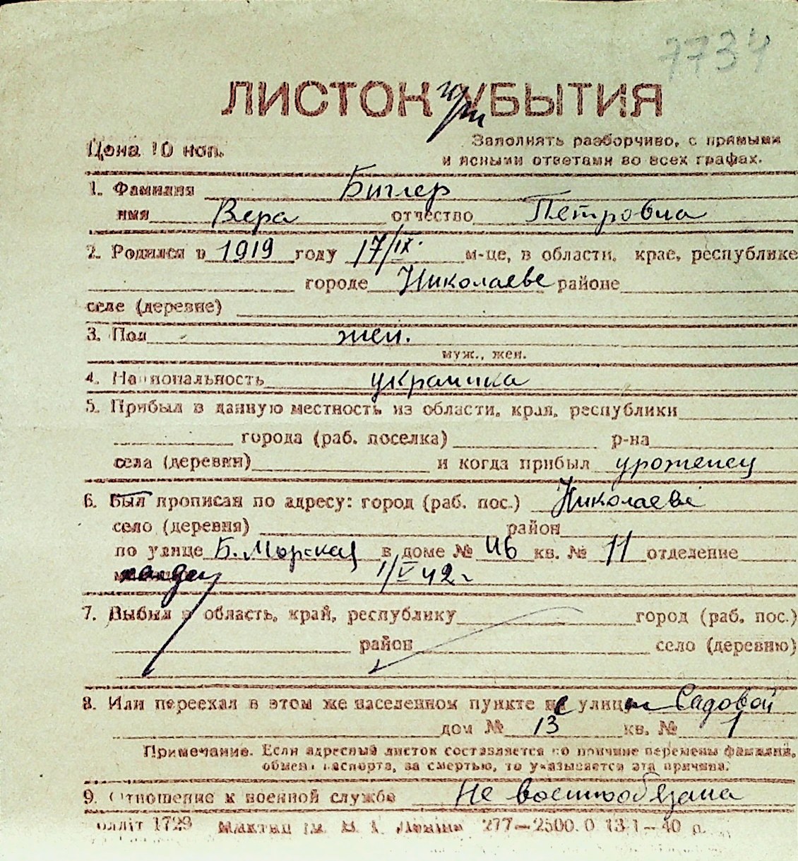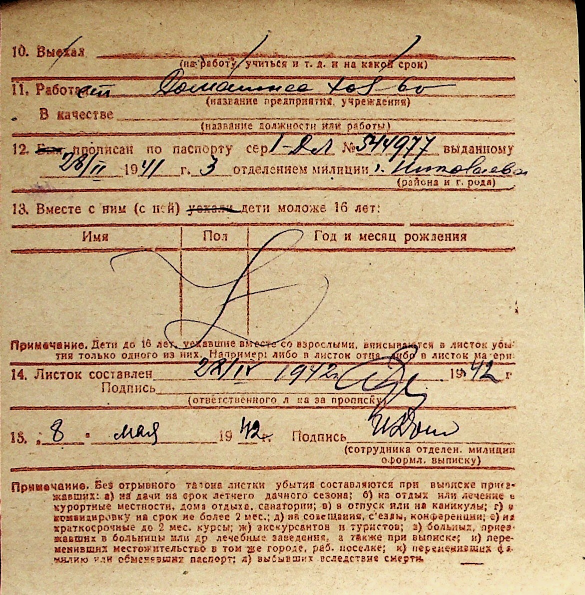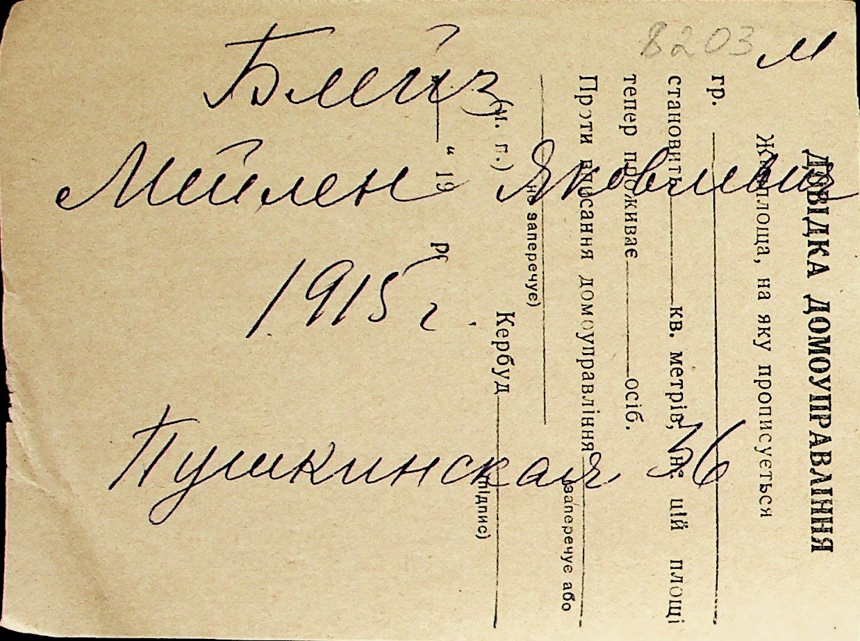 ◦ ◦ Перелік карток на осіб, які мешкали у м. Миколаїв у період окупації 1941–1944 років