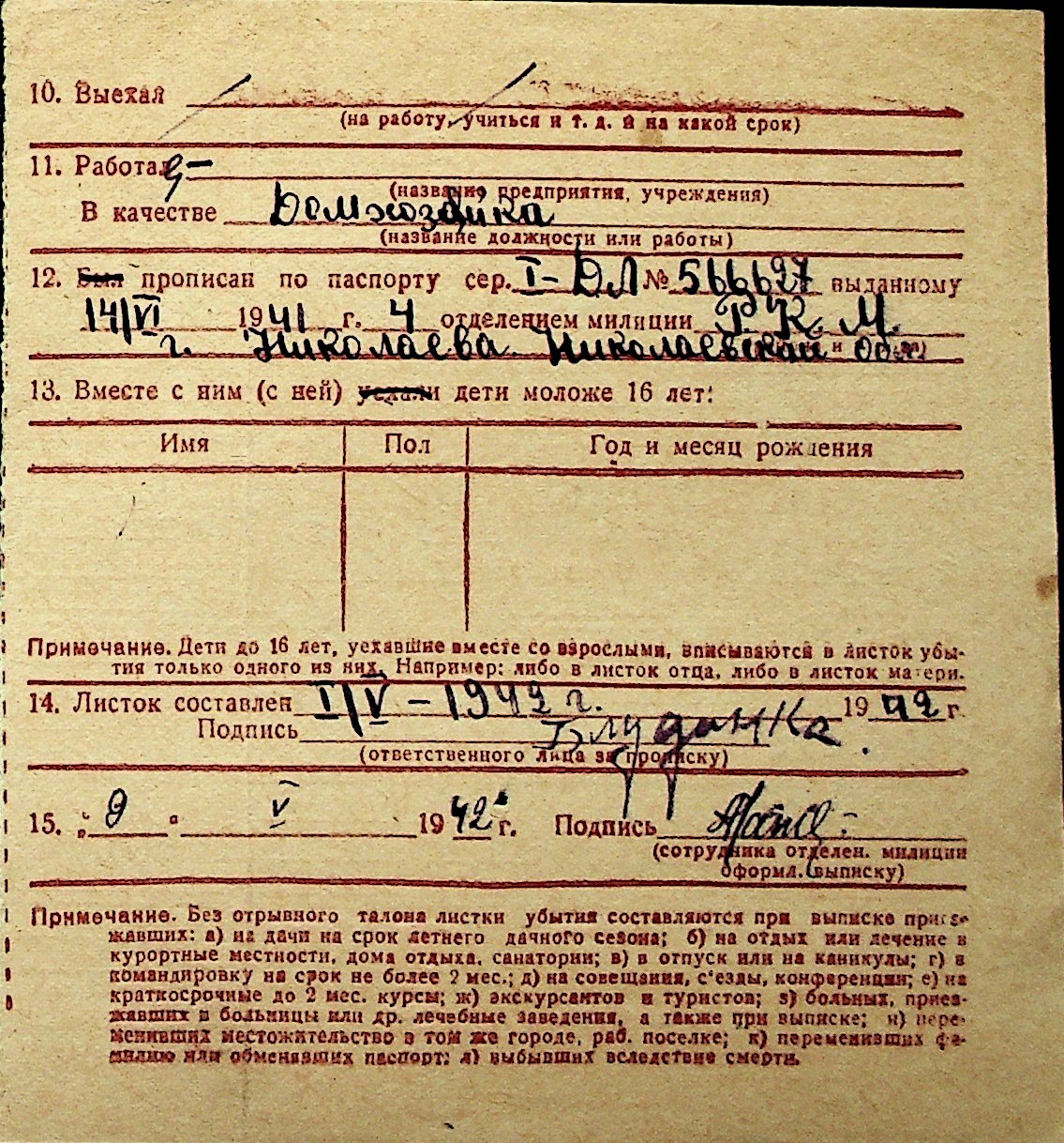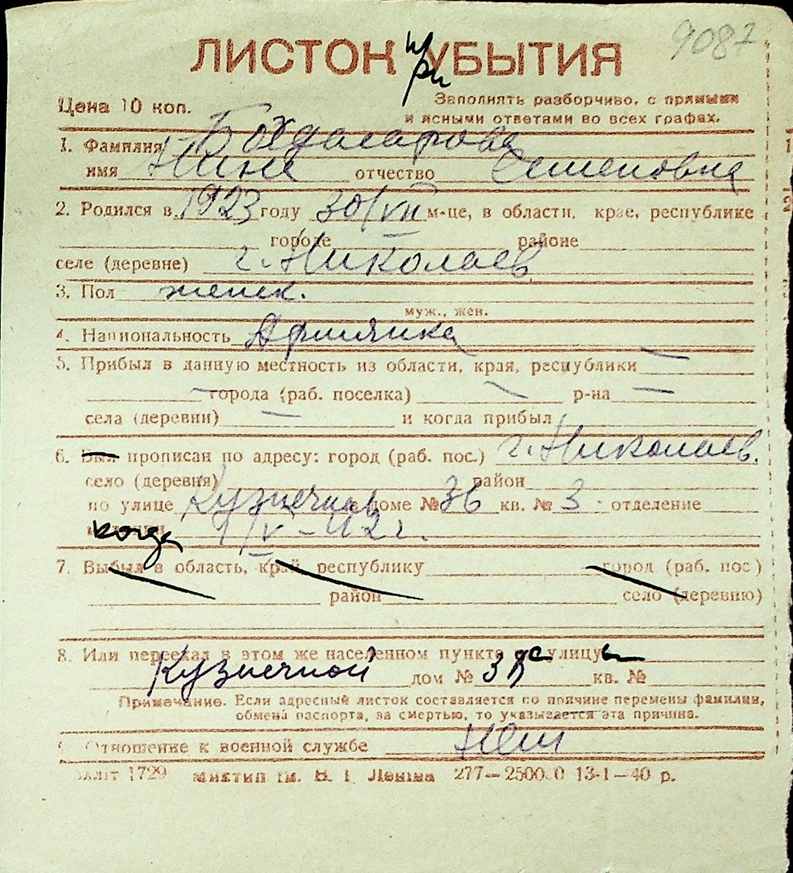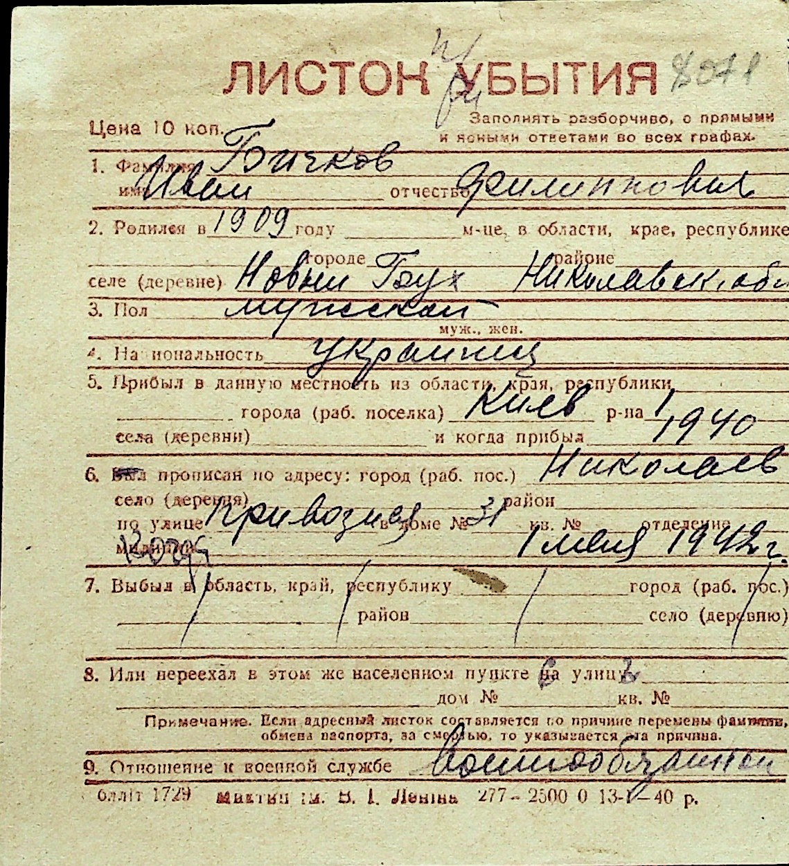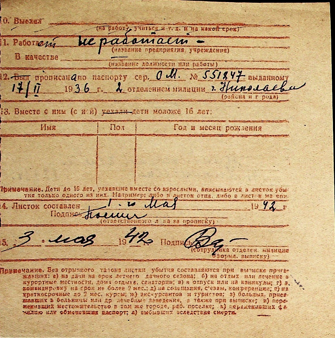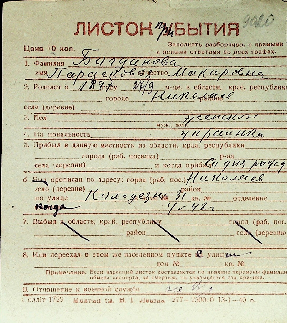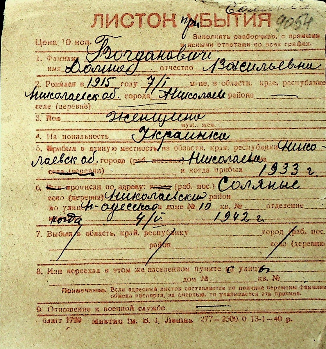 ◦ ◦ Перелік карток на осіб, які мешкали у м. Миколаїв у період окупації 1941–1944 років