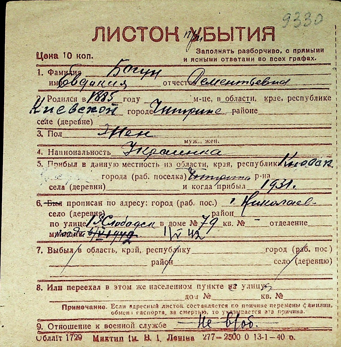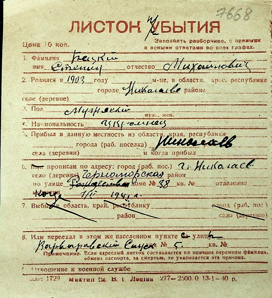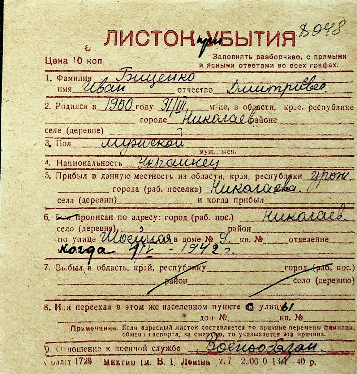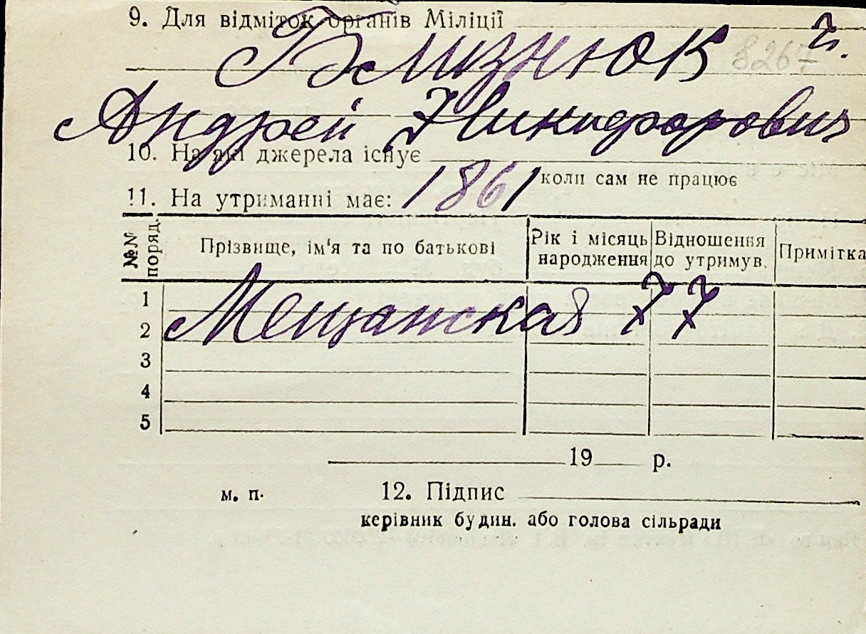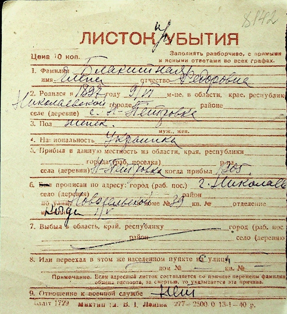 ◦ ◦ Перелік карток на осіб, які мешкали у м. Миколаїв у період окупації 1941–1944 років