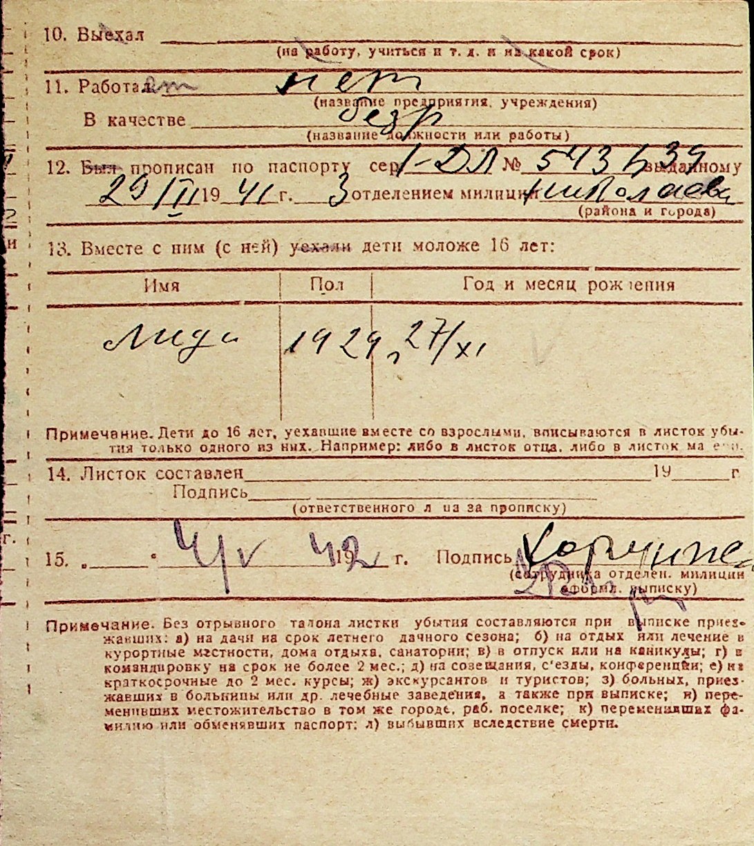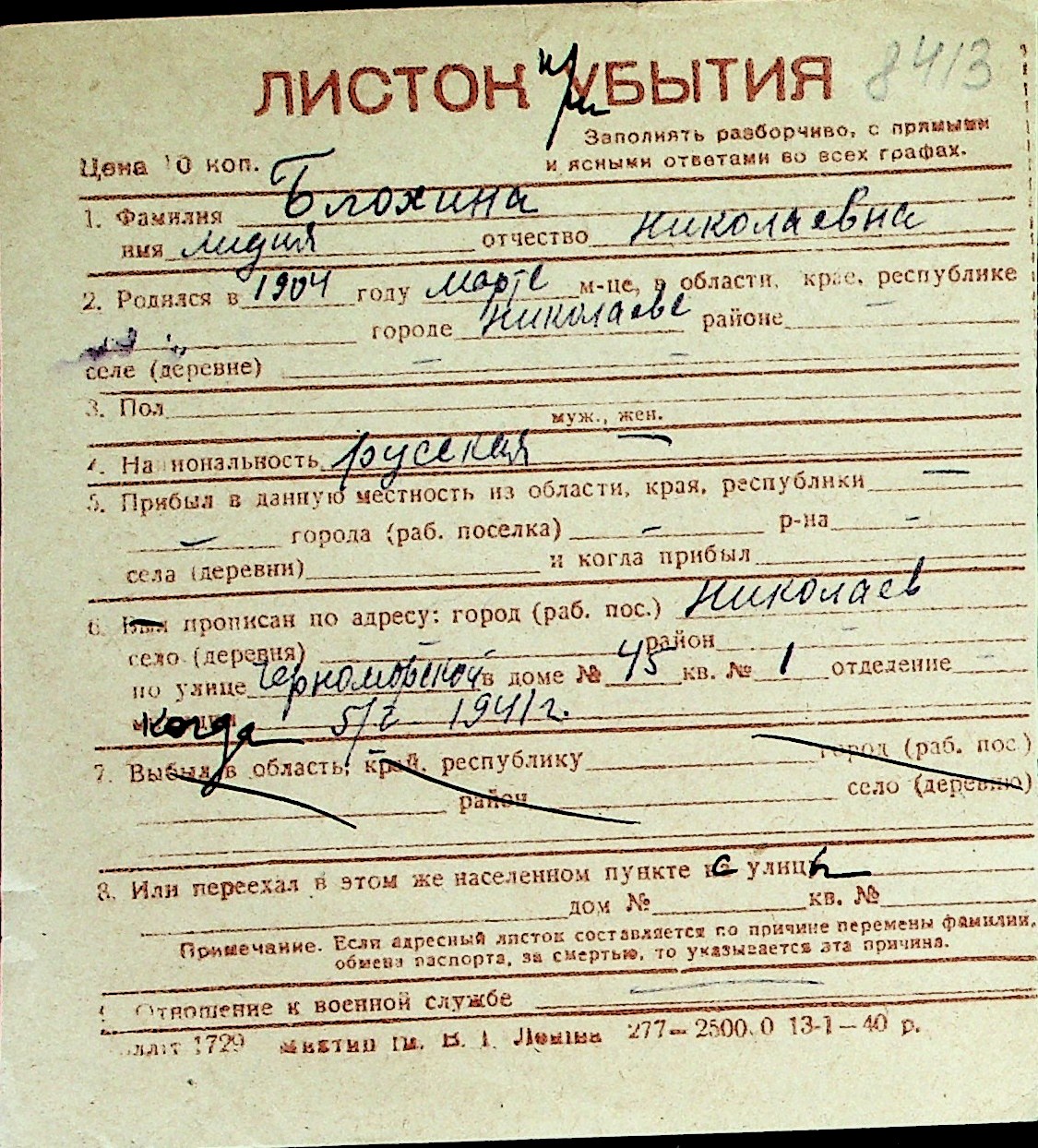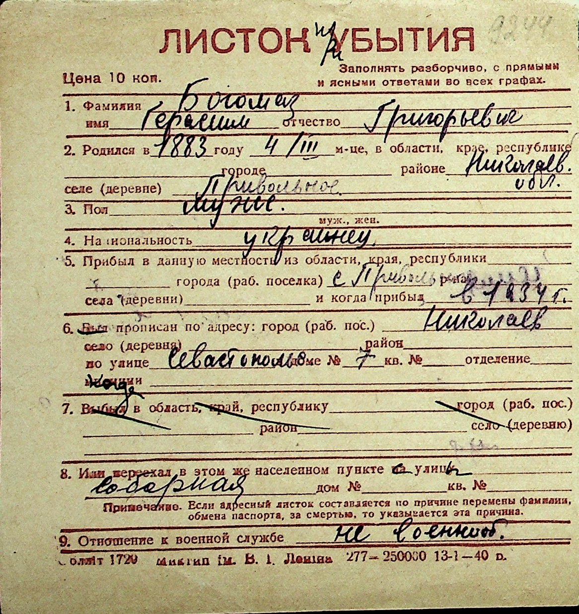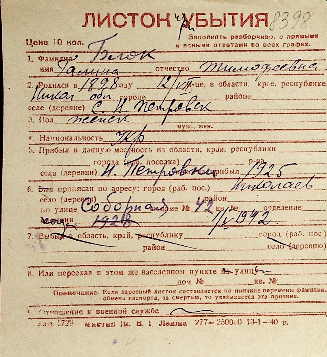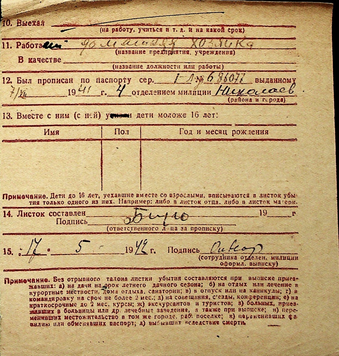 ◦ ◦ Перелік карток на осіб, які мешкали у м. Миколаїв у період окупації 1941–1944 років