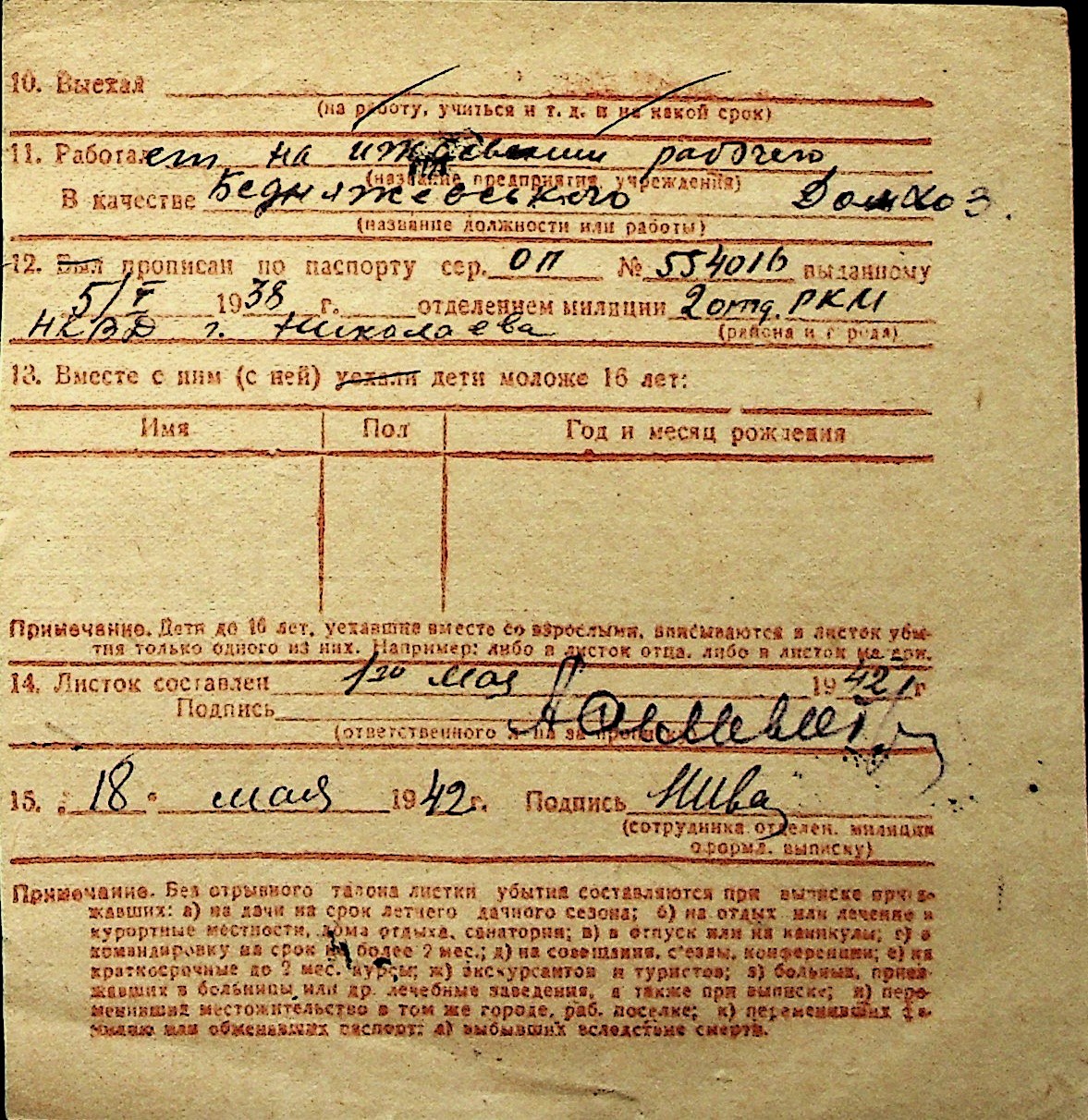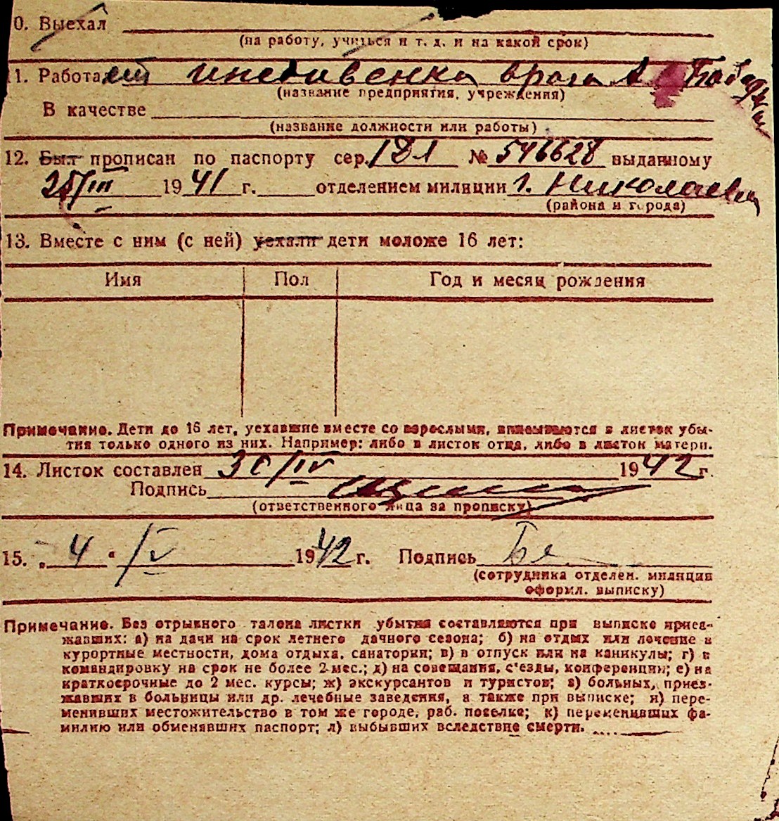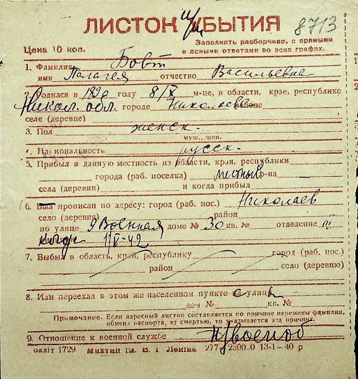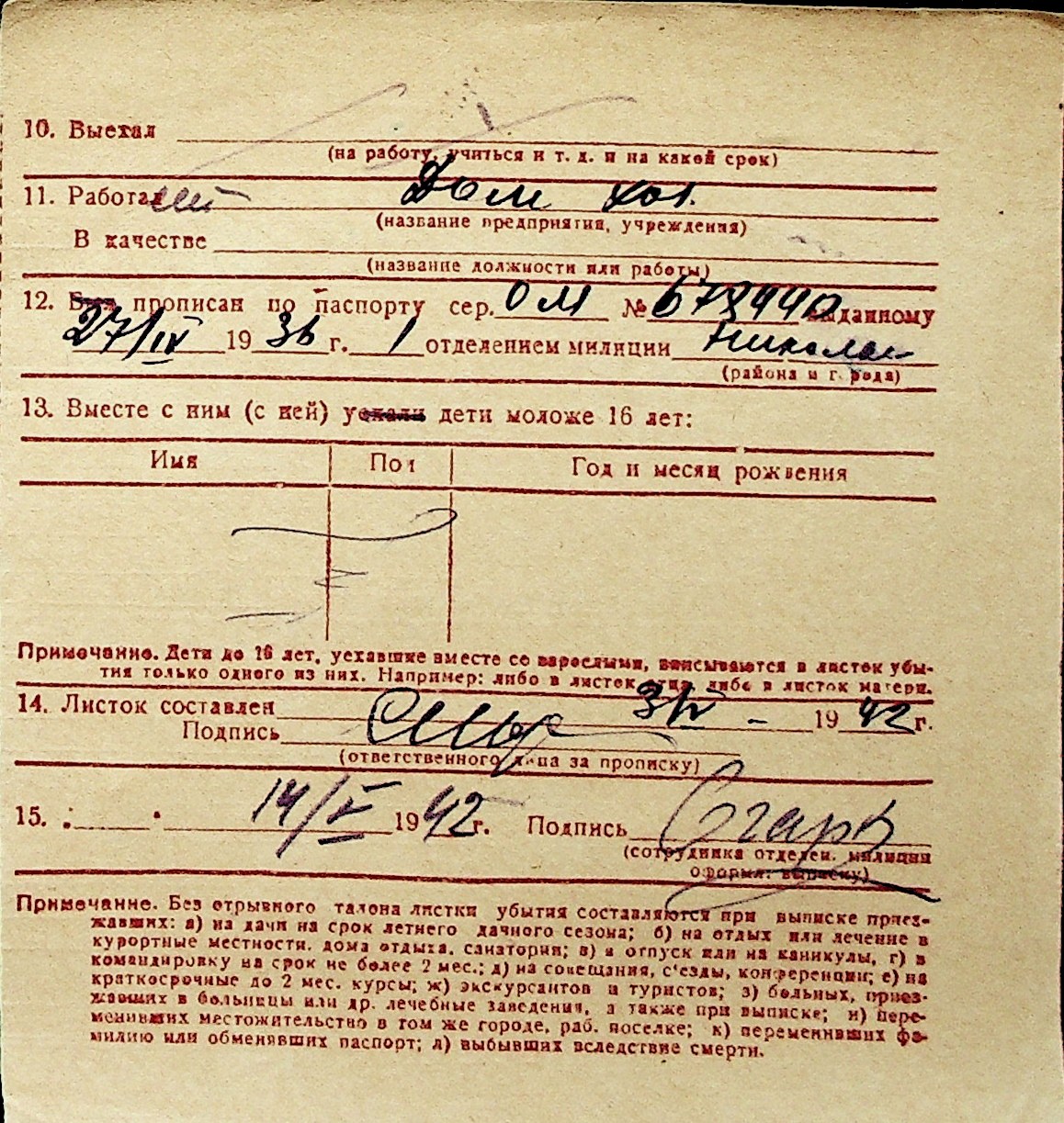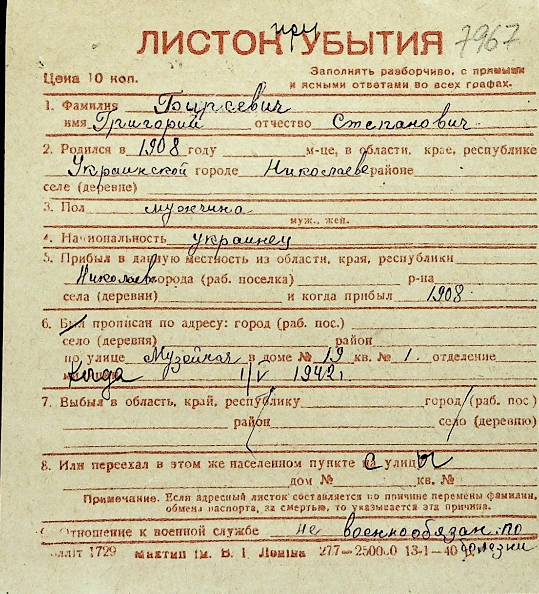 ◦ ◦ Перелік карток на осіб, які мешкали у м. Миколаїв у період окупації 1941–1944 років