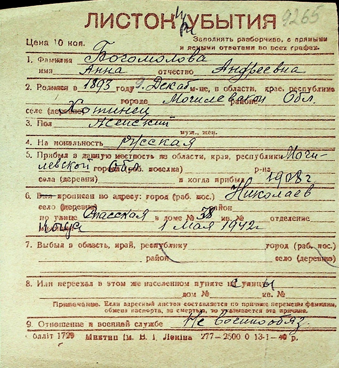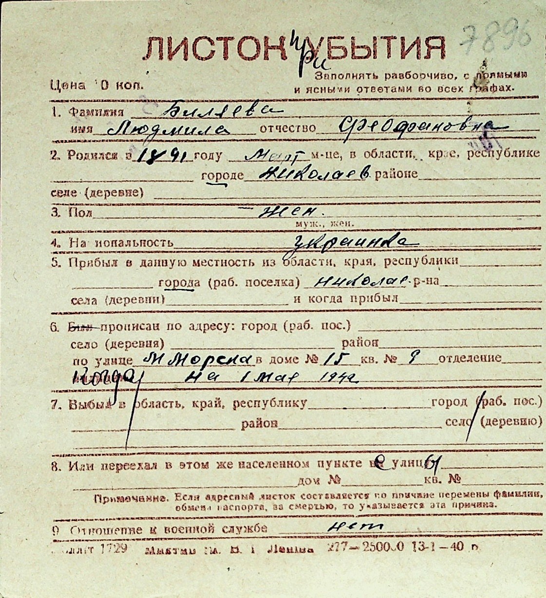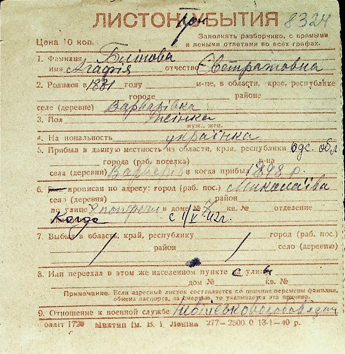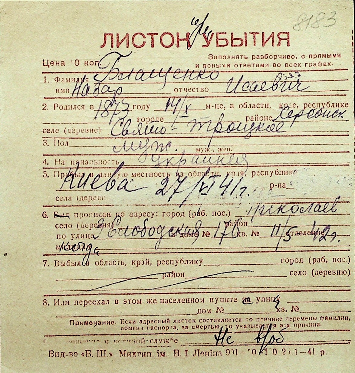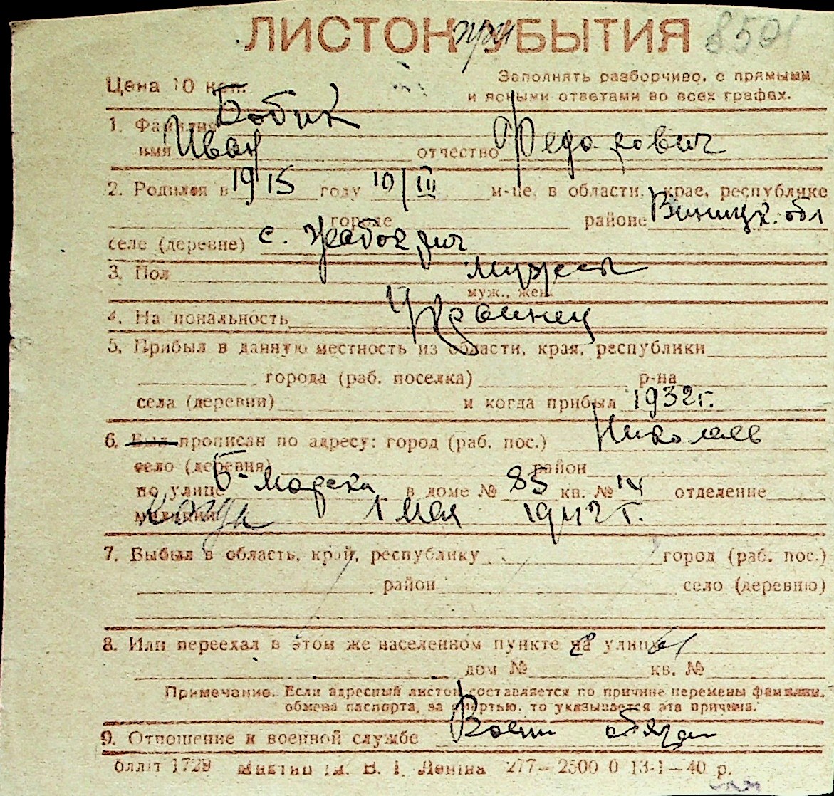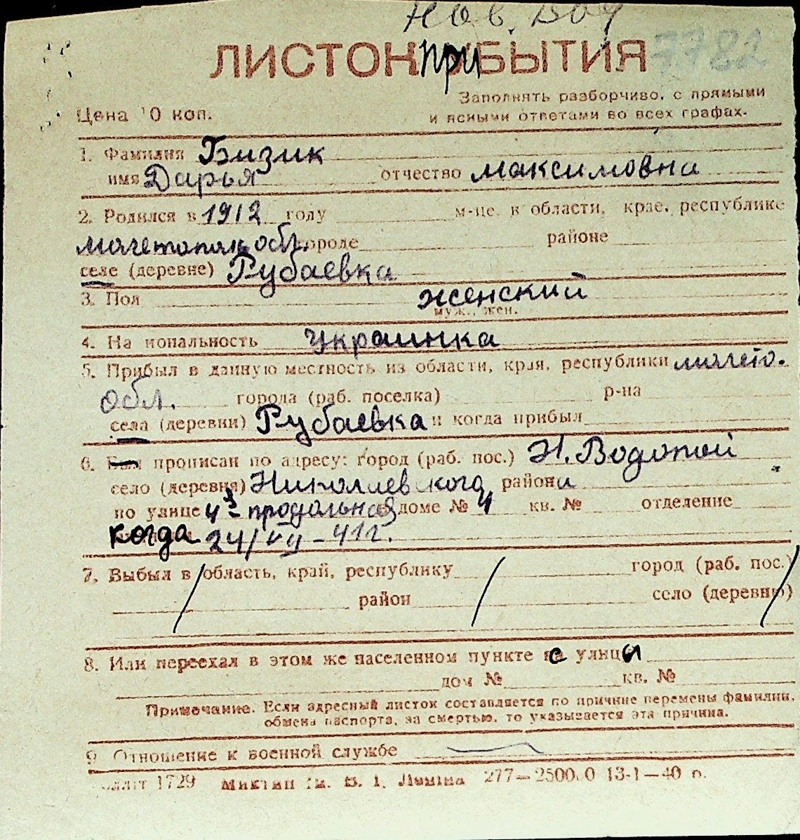 ◦ ◦ Перелік карток на осіб, які мешкали у м. Миколаїв у період окупації 1941–1944 років