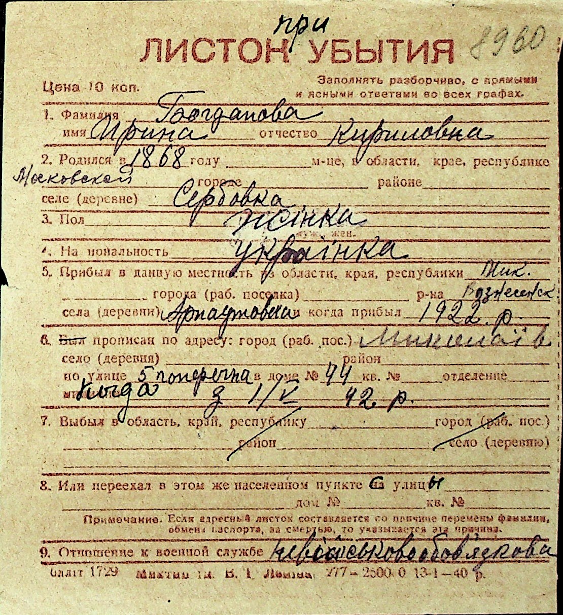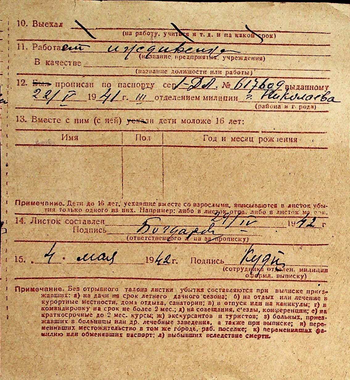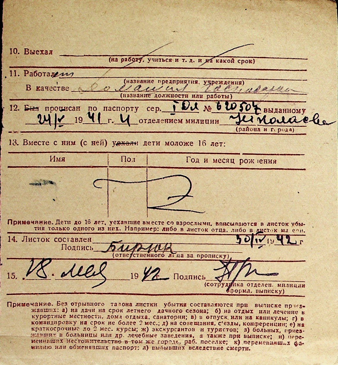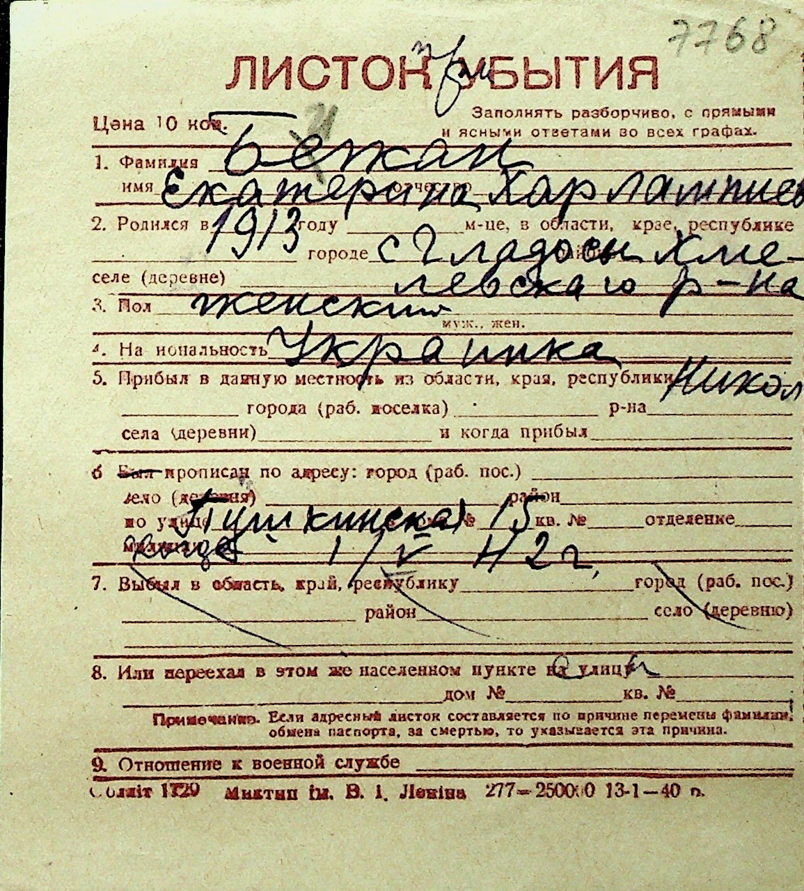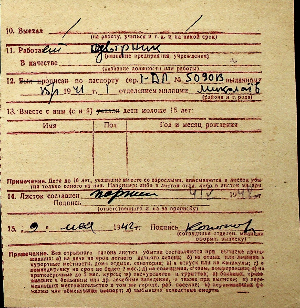 ◦ ◦ Перелік карток на осіб, які мешкали у м. Миколаїв у період окупації 1941–1944 років