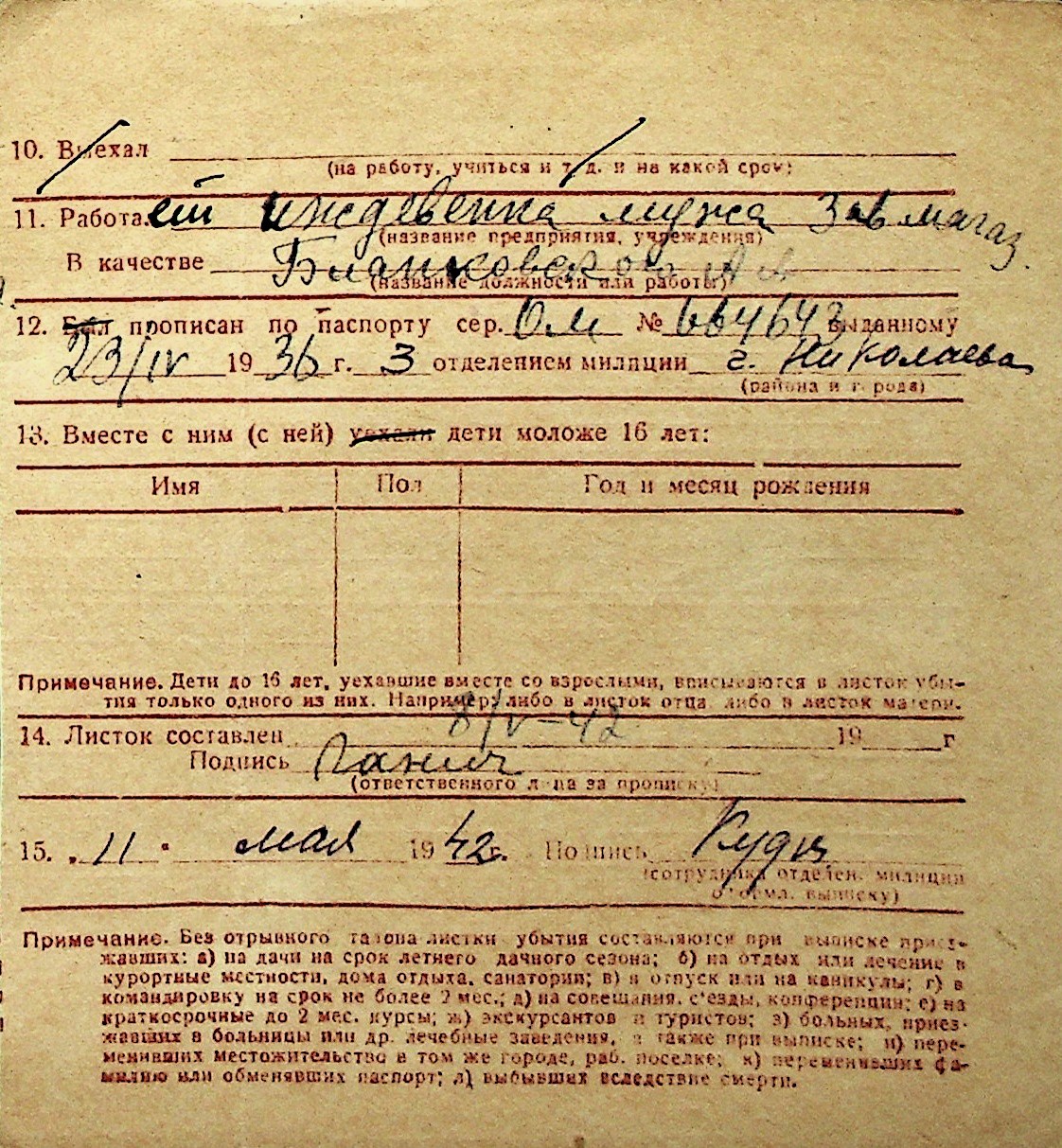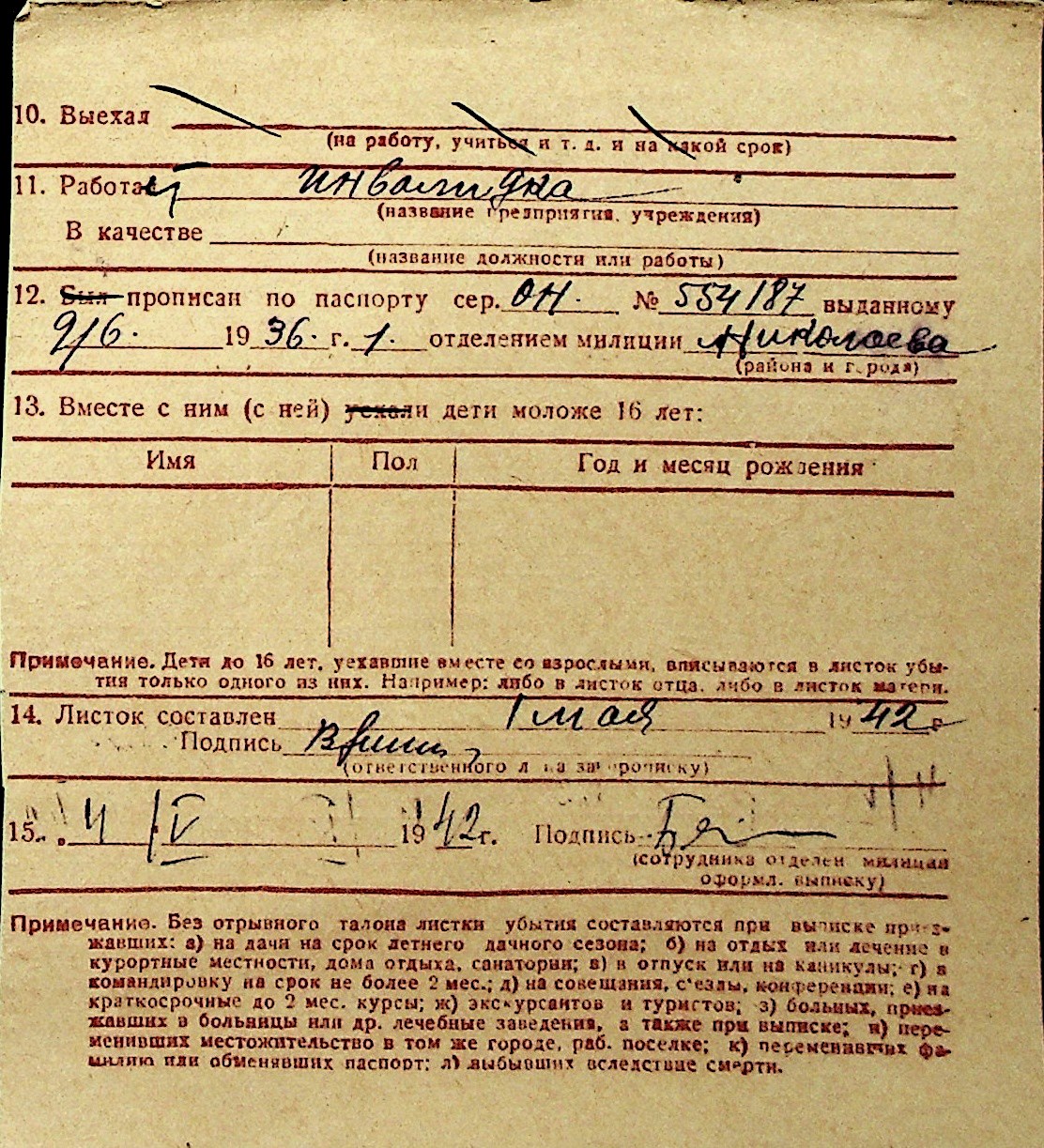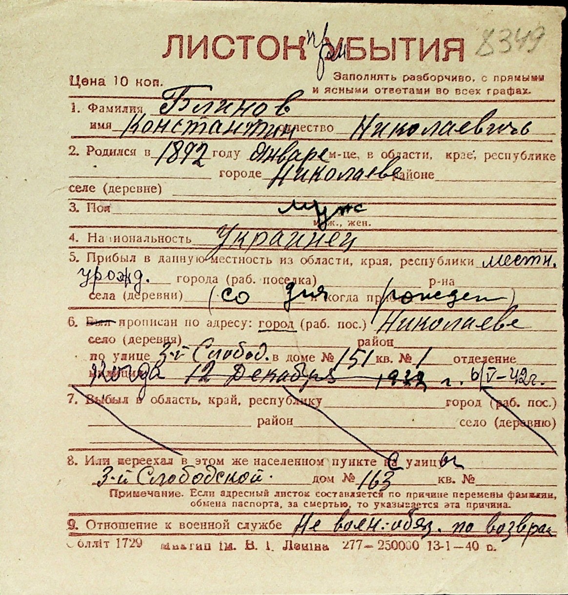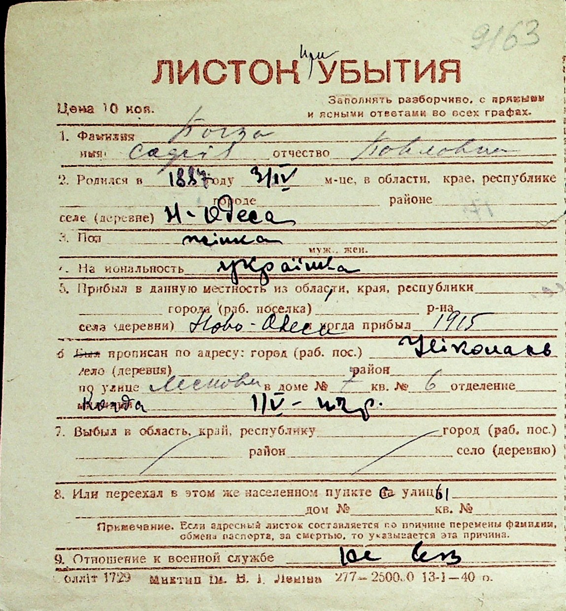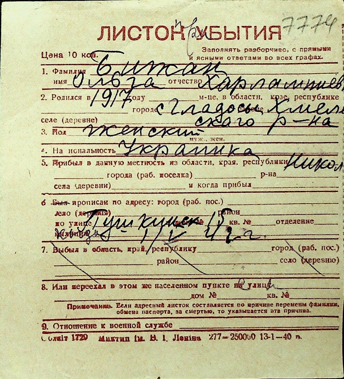 ◦ ◦ Перелік карток на осіб, які мешкали у м. Миколаїв у період окупації 1941–1944 років