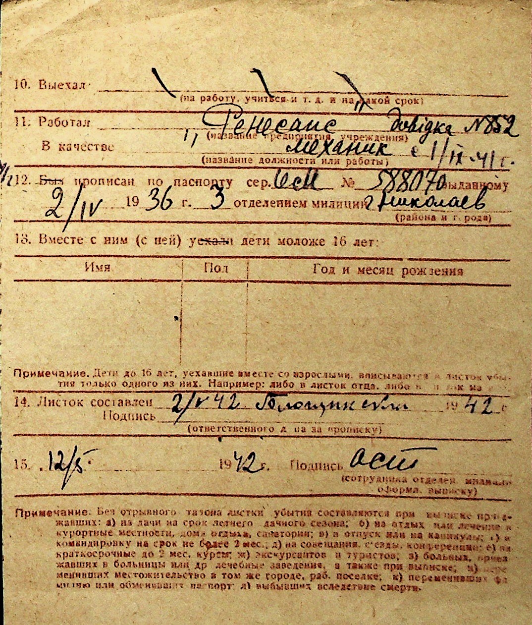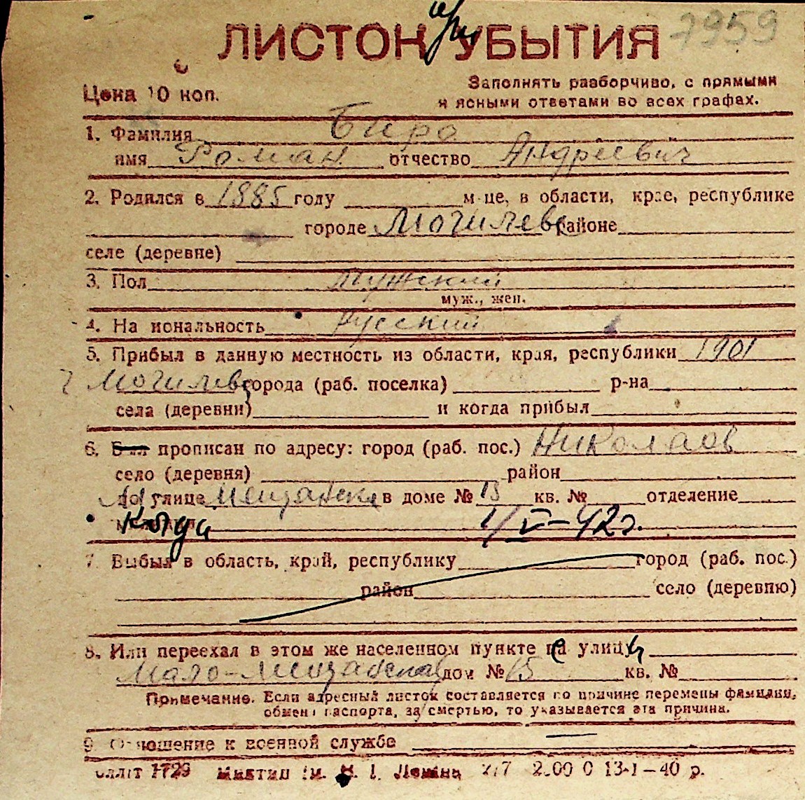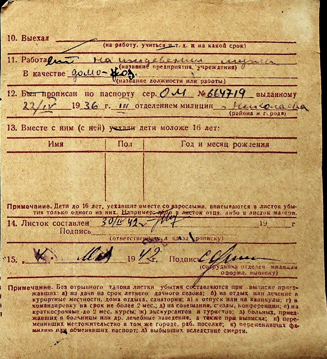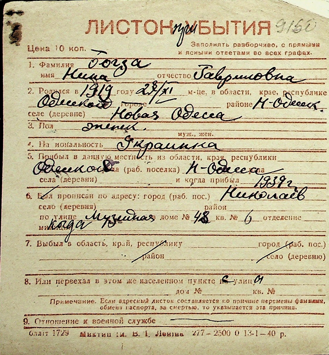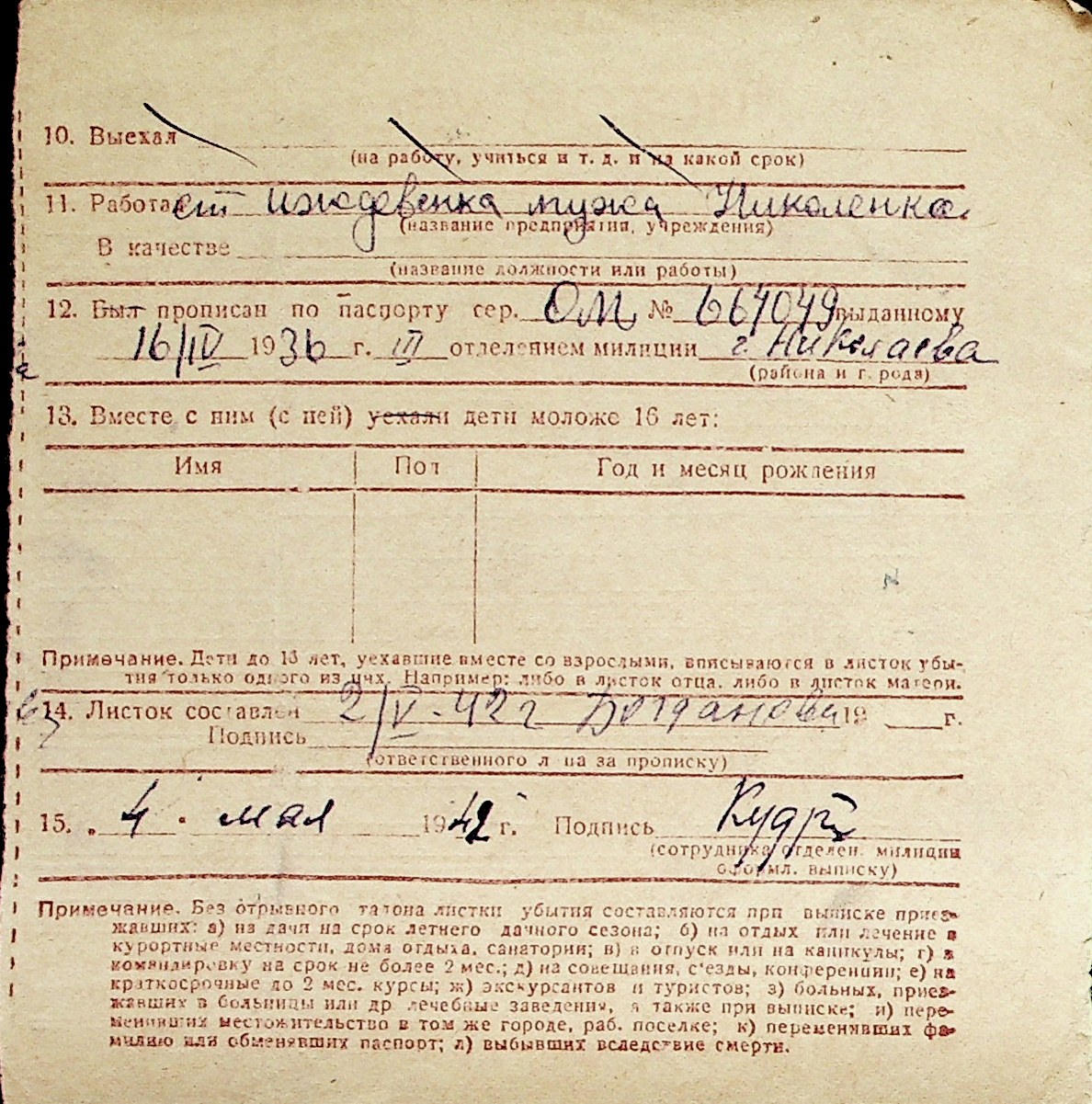 ◦ ◦ Перелік карток на осіб, які мешкали у м. Миколаїв у період окупації 1941–1944 років