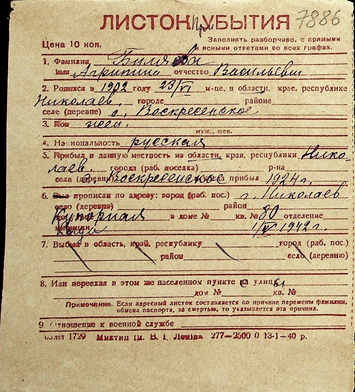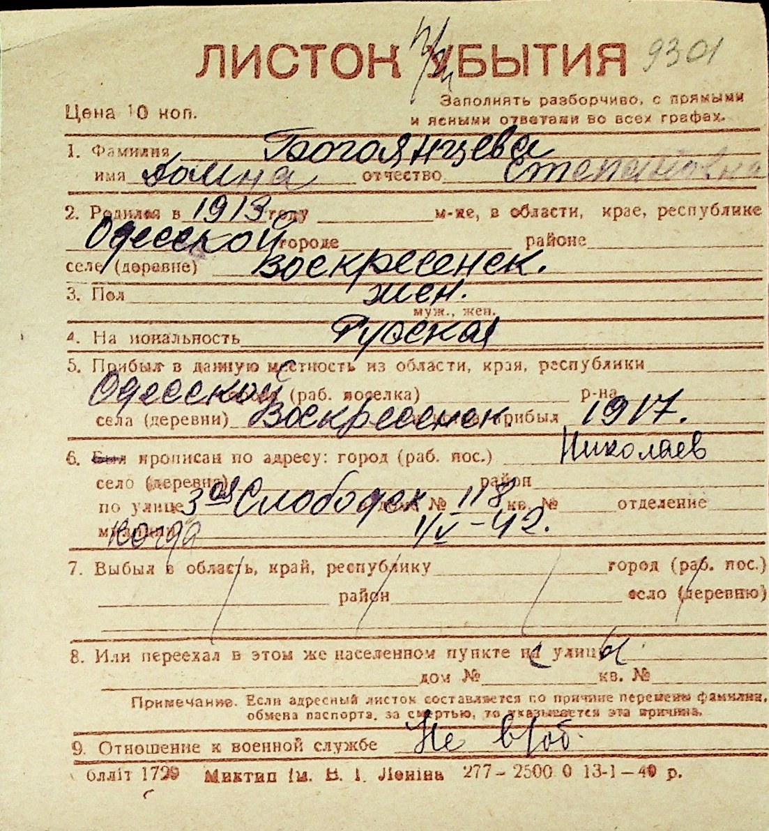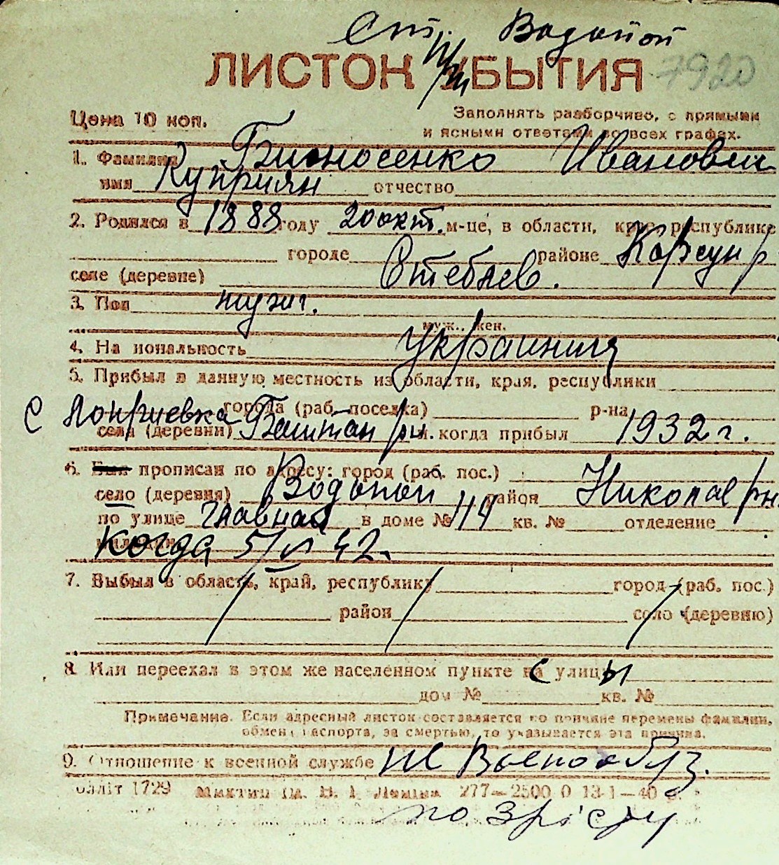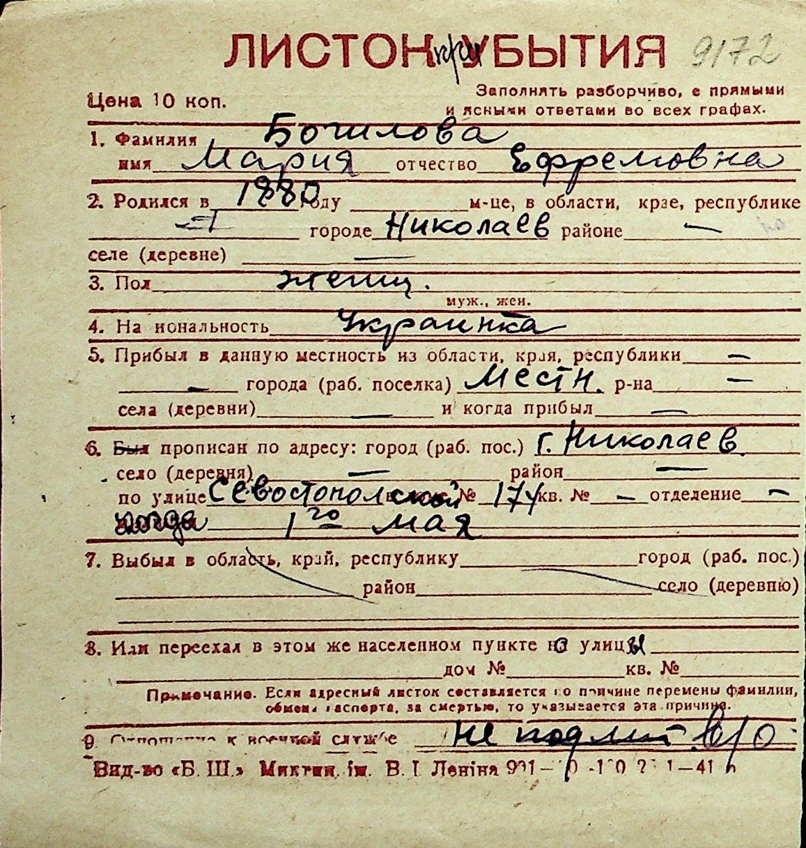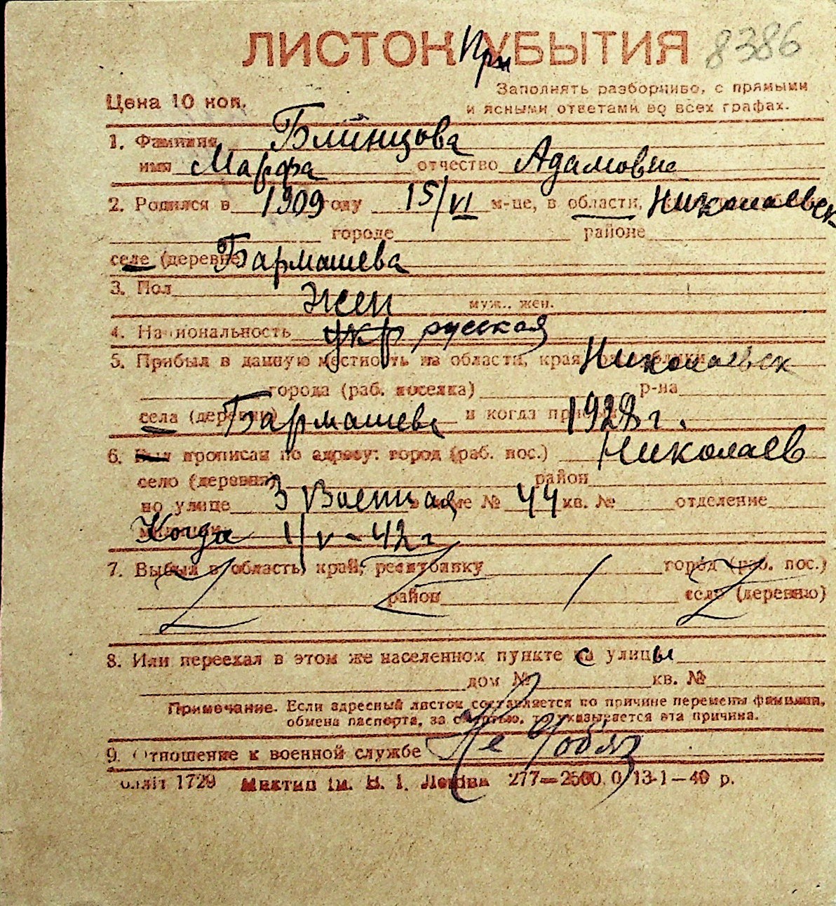 ◦ ◦ Перелік карток на осіб, які мешкали у м. Миколаїв у період окупації 1941–1944 років