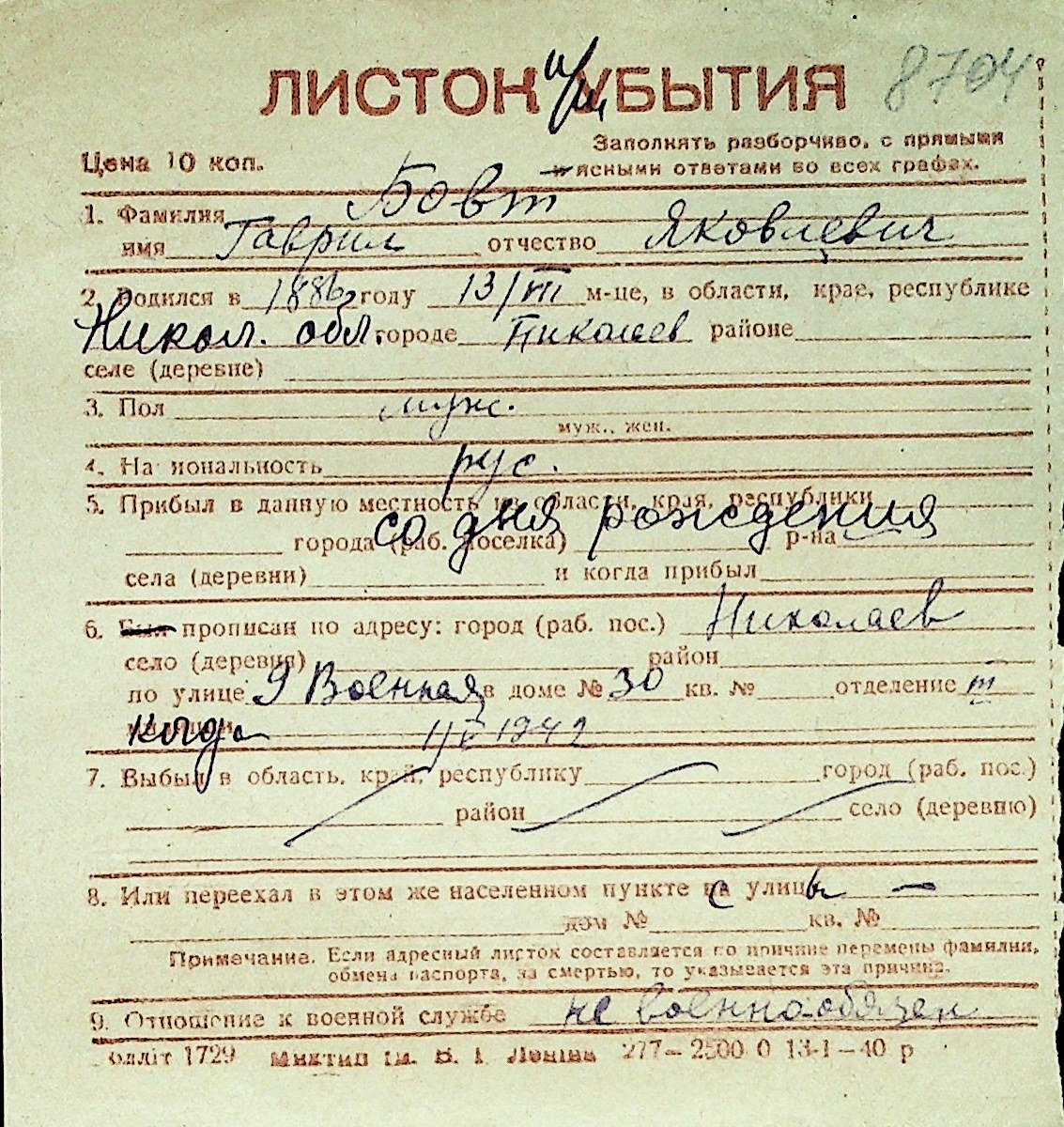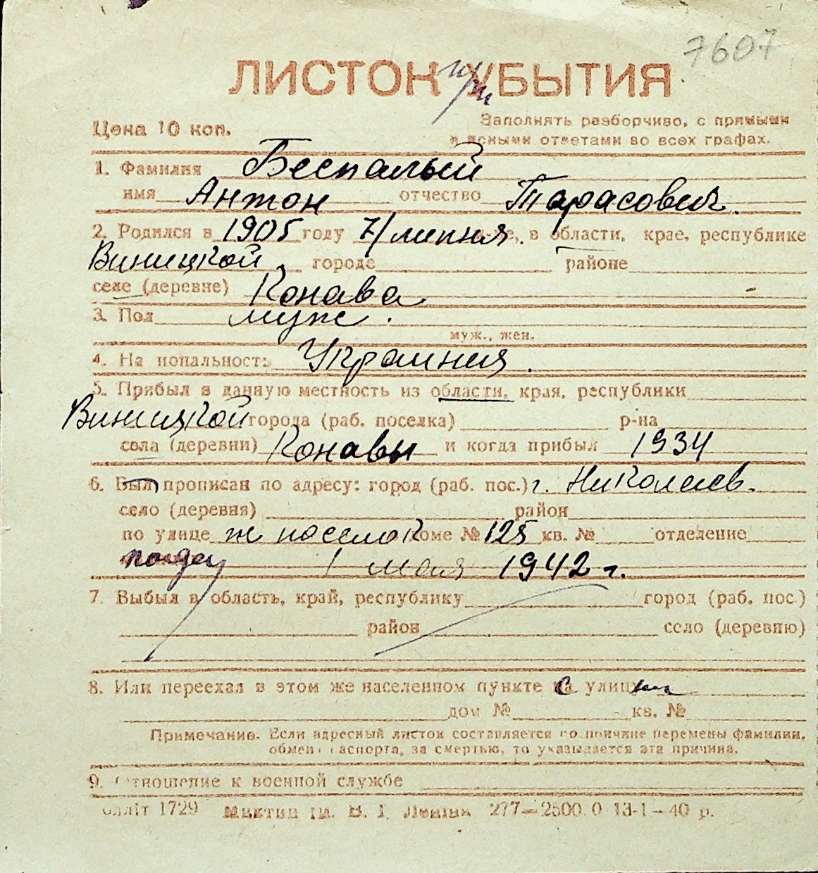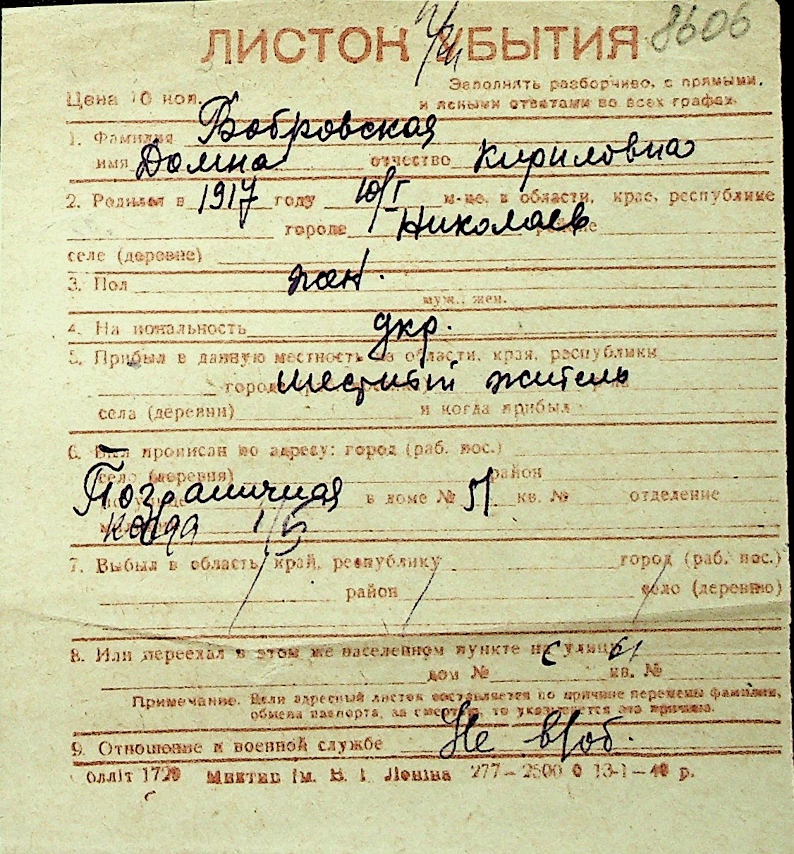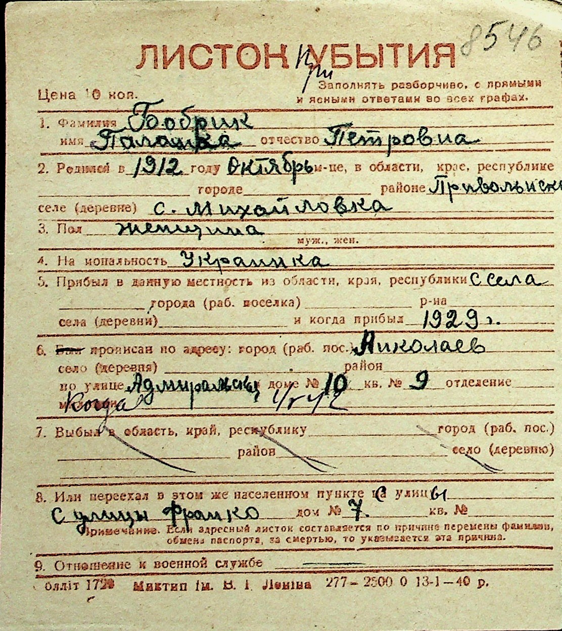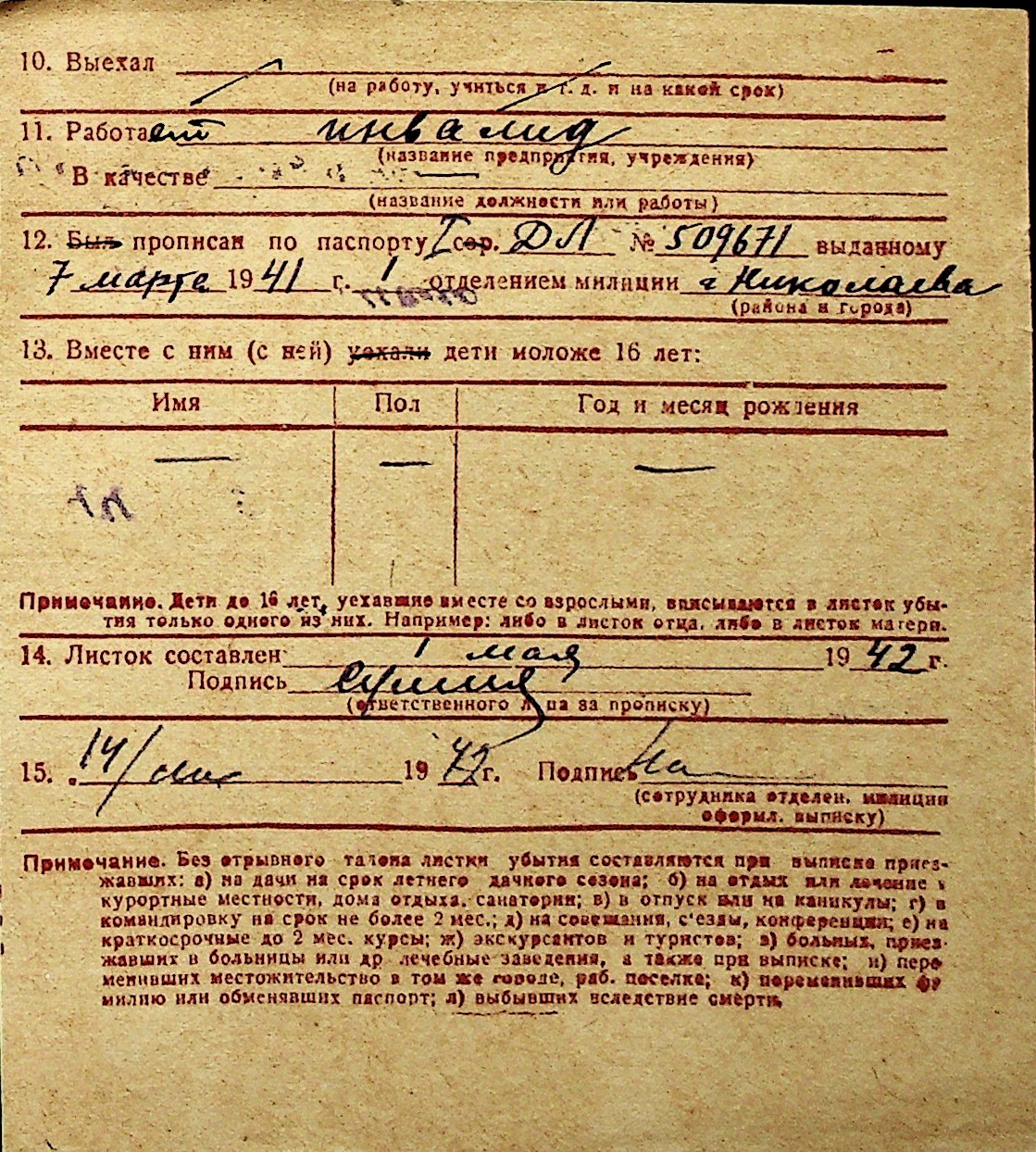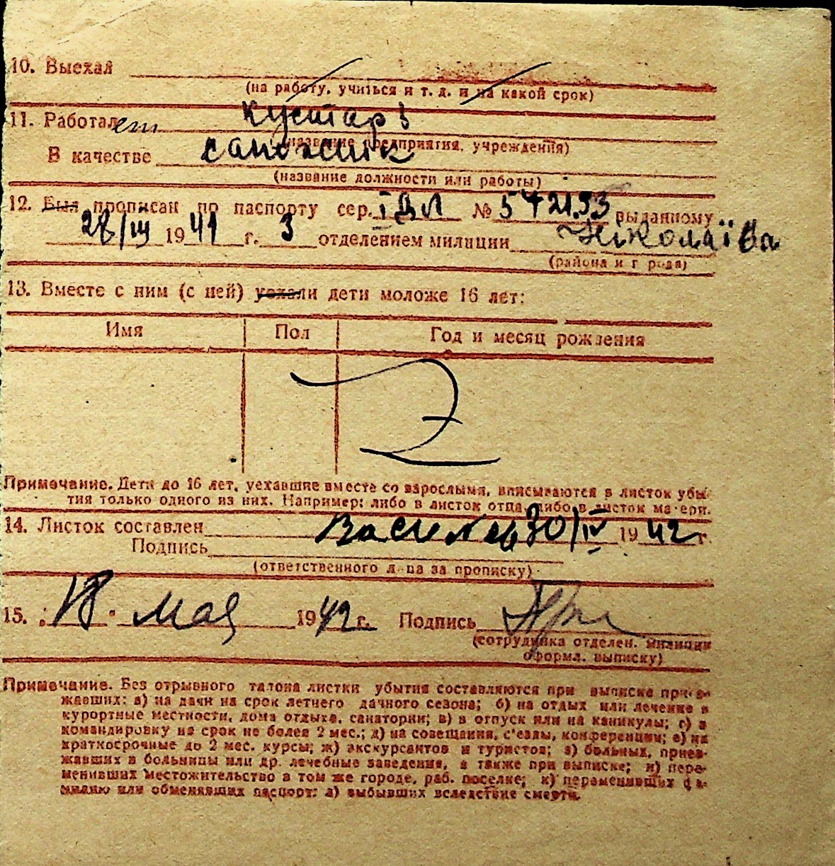 ◦ ◦ Перелік карток на осіб, які мешкали у м. Миколаїв у період окупації 1941–1944 років