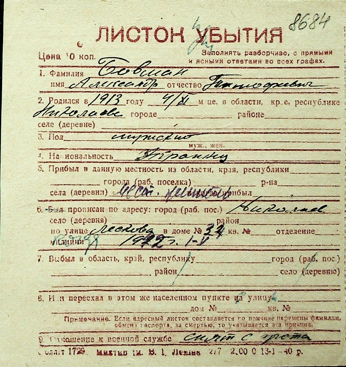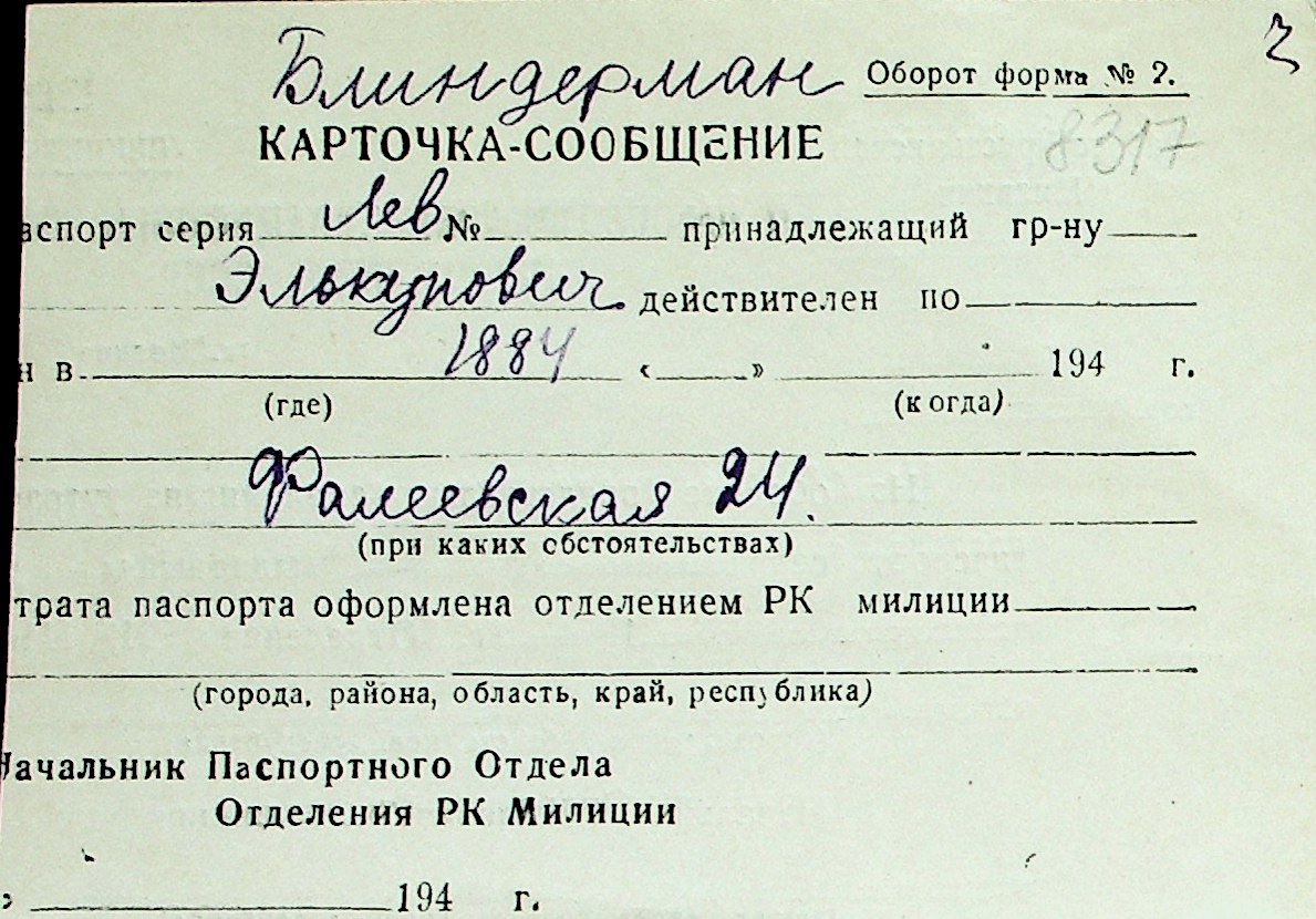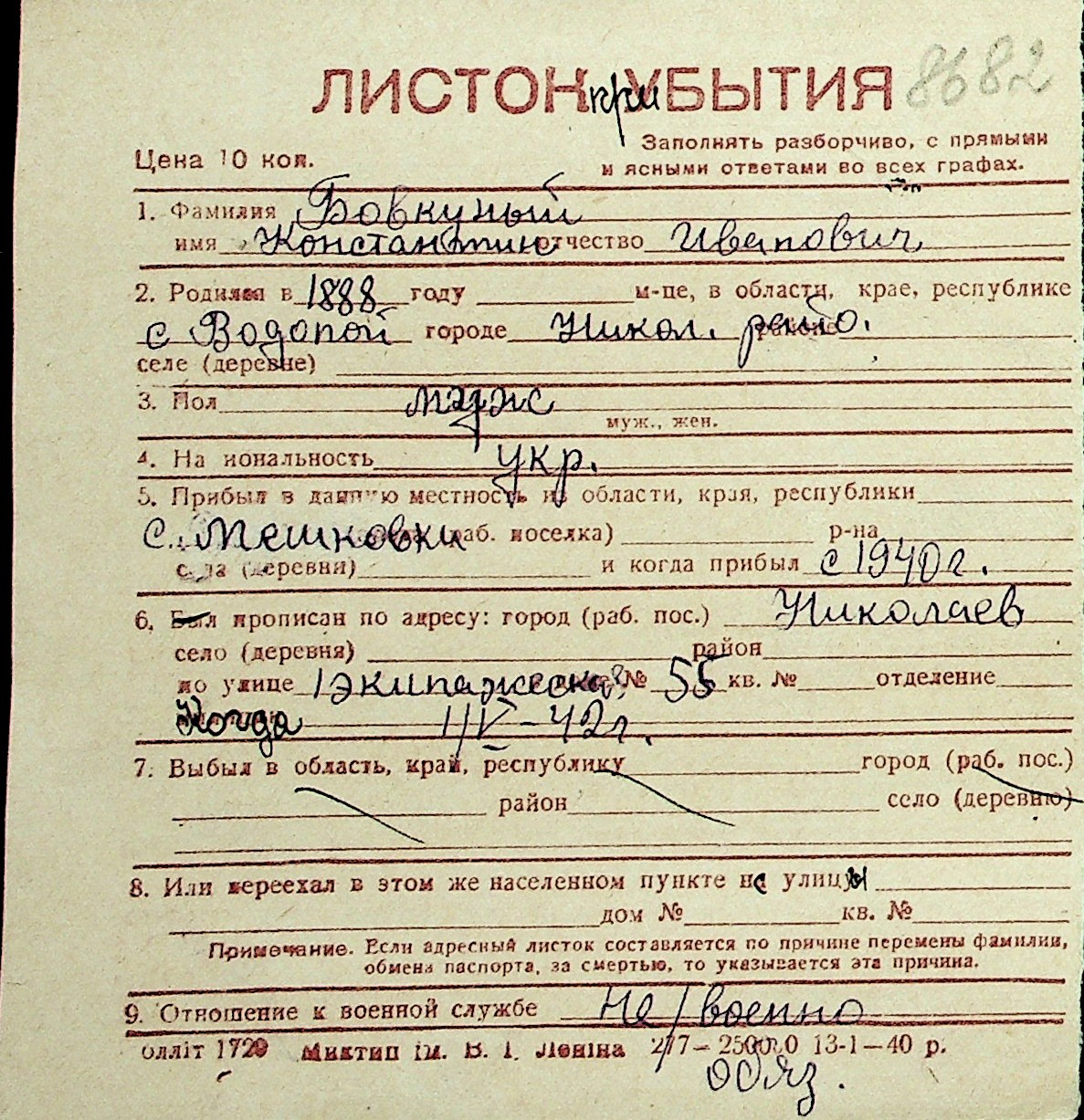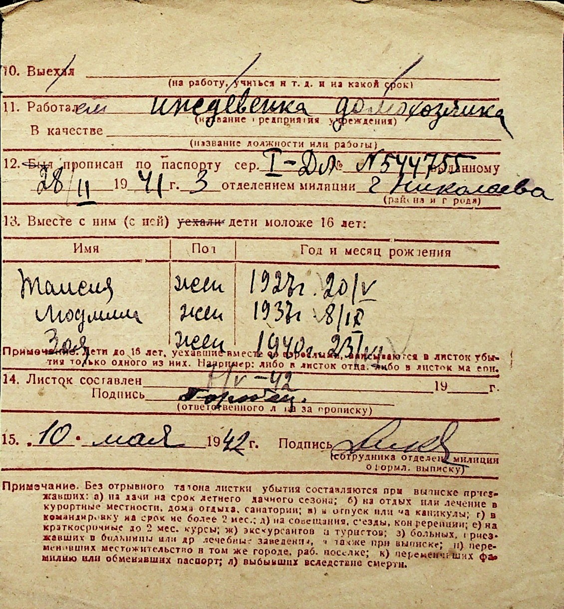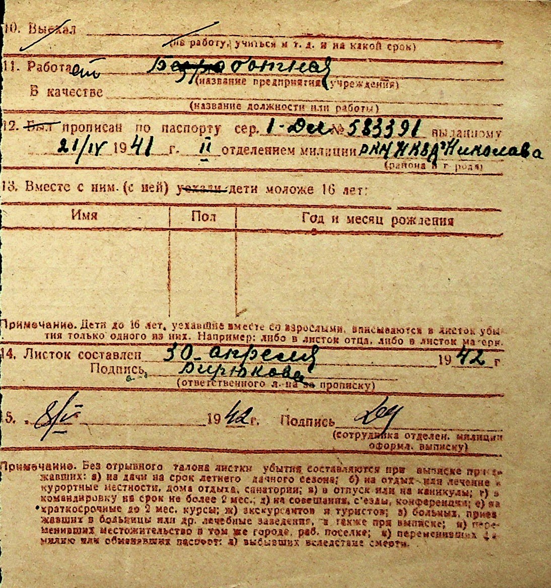 ◦ ◦ Перелік карток на осіб, які мешкали у м. Миколаїв у період окупації 1941–1944 років