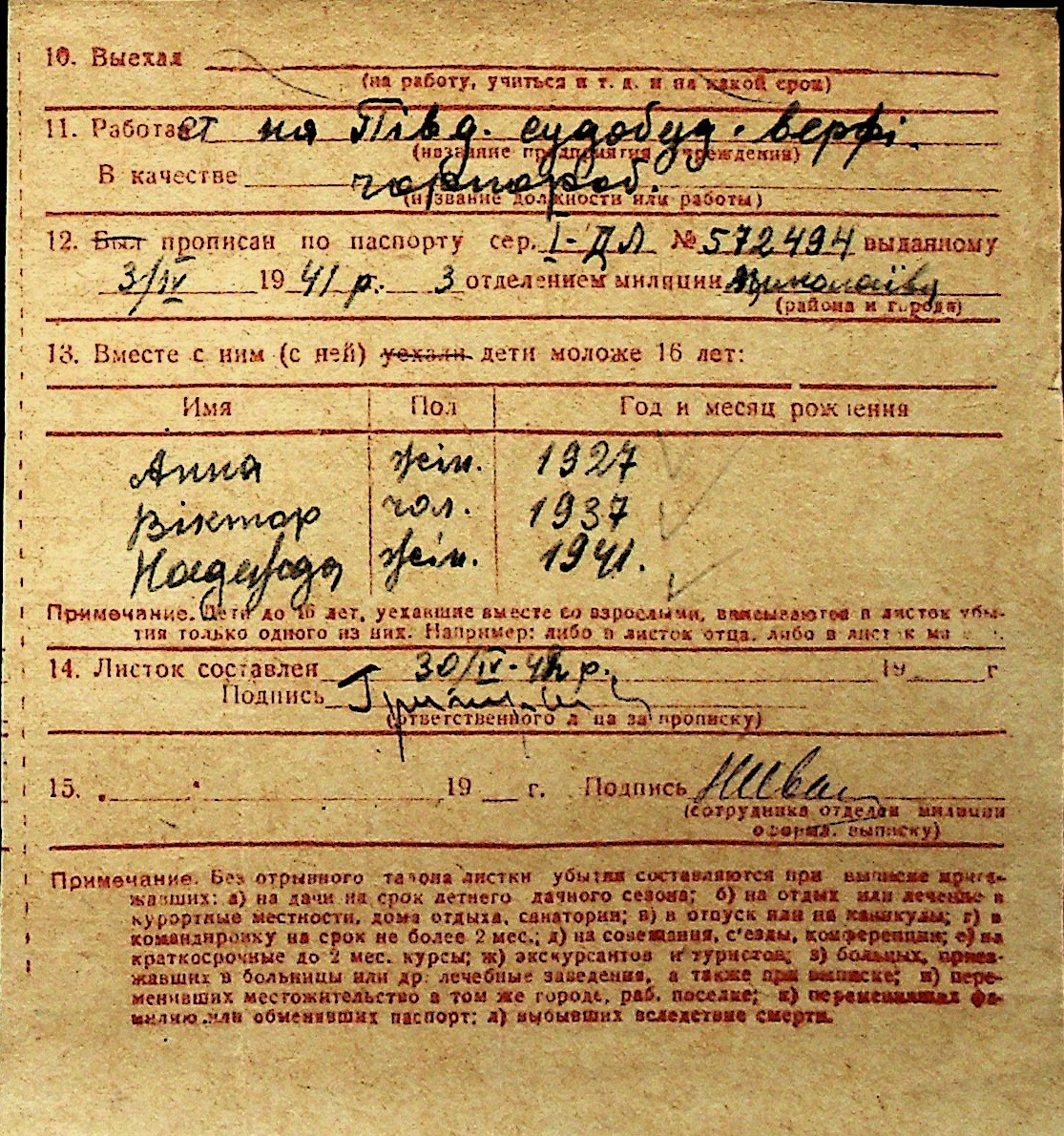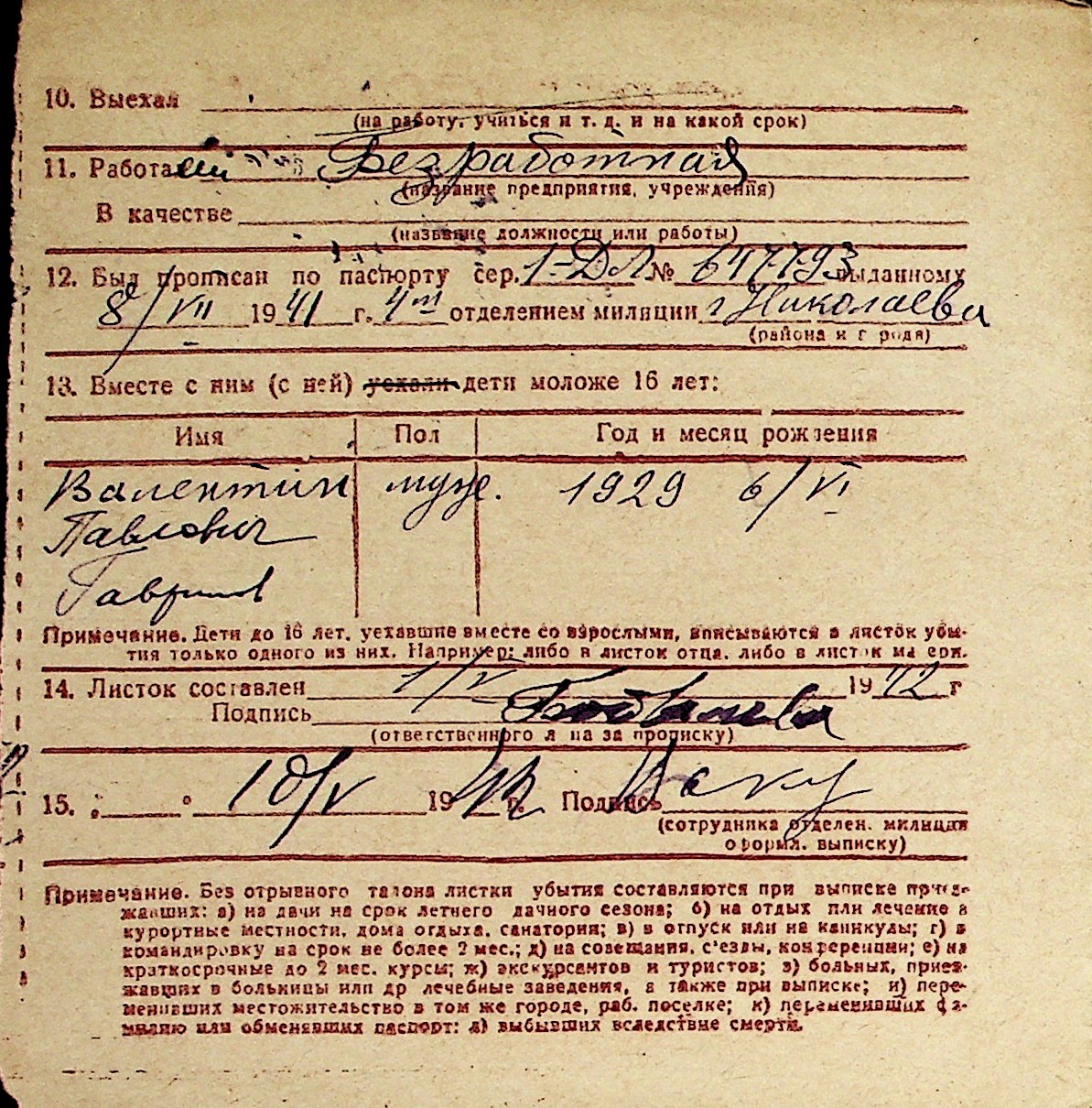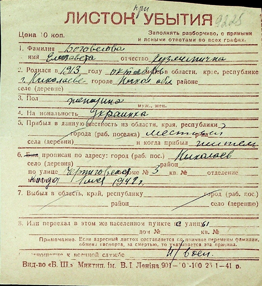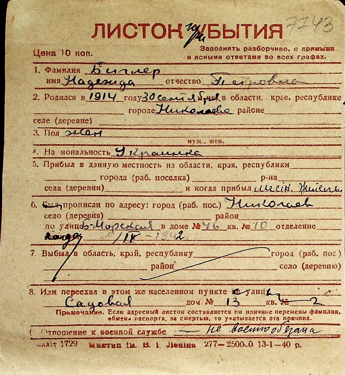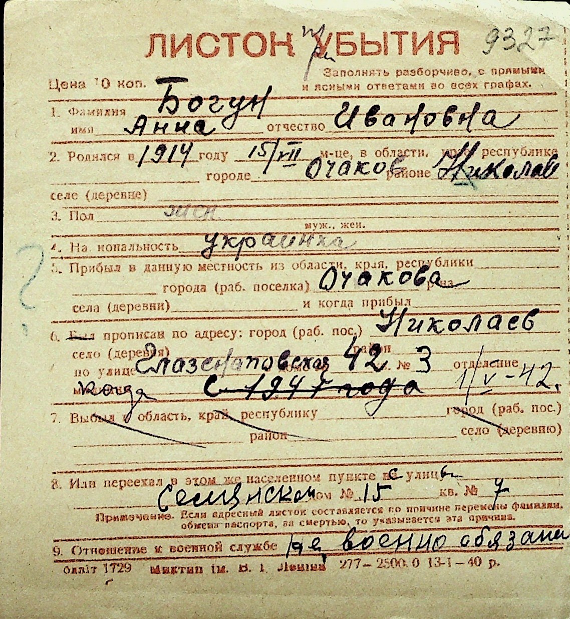 ◦ ◦ Перелік карток на осіб, які мешкали у м. Миколаїв у період окупації 1941–1944 років