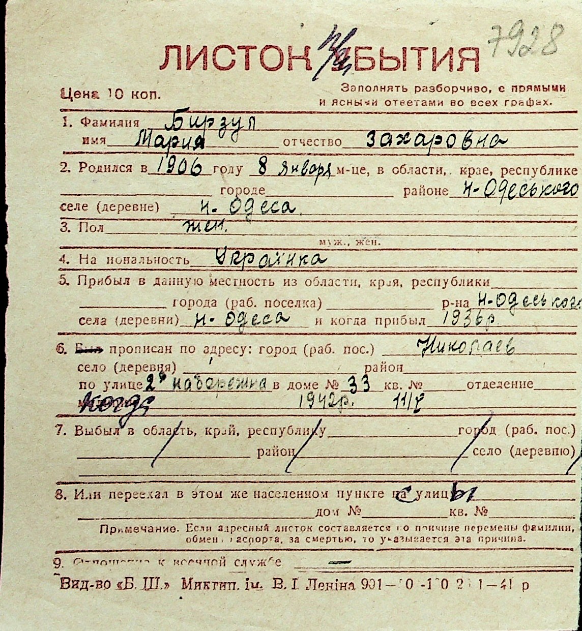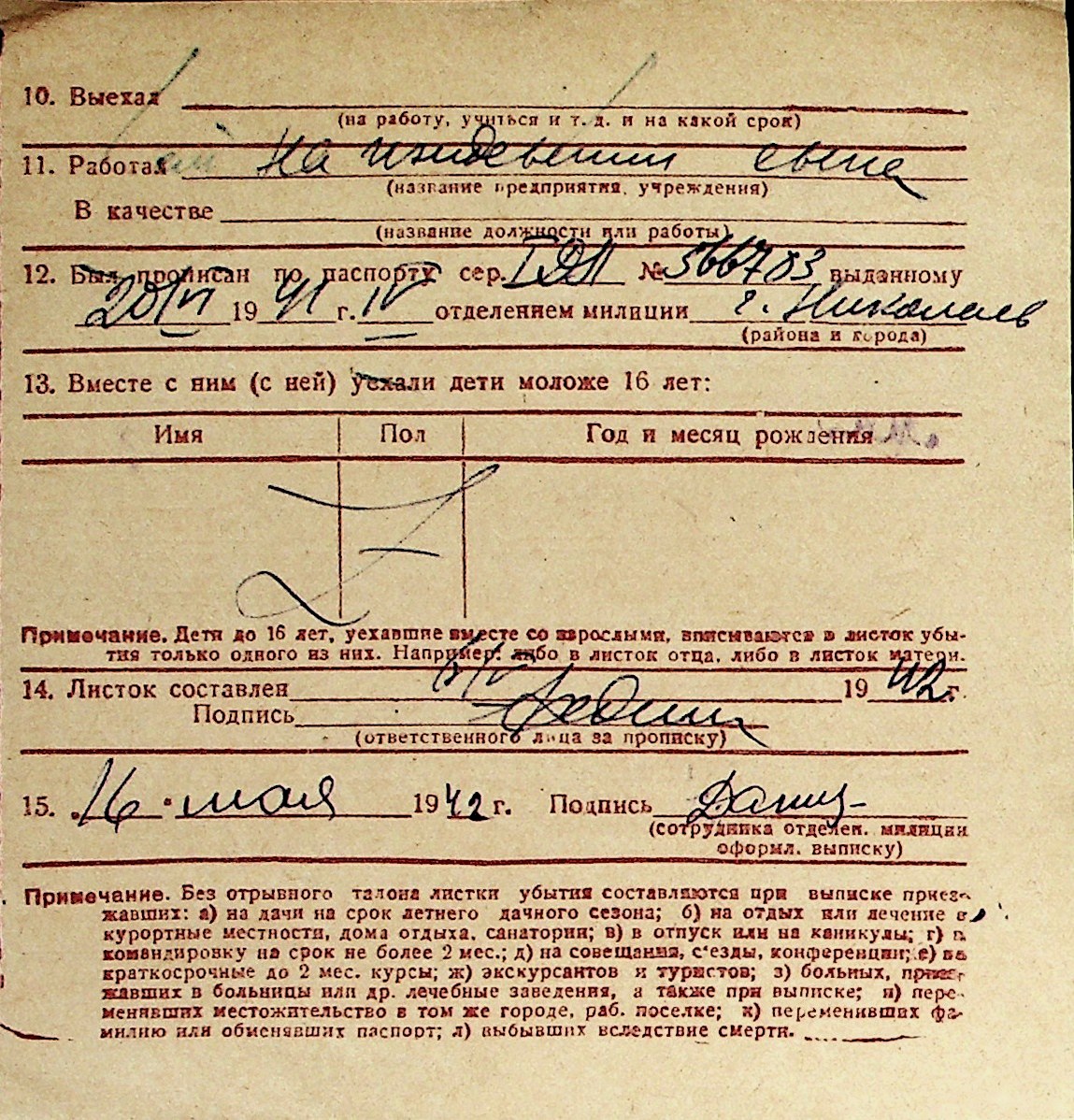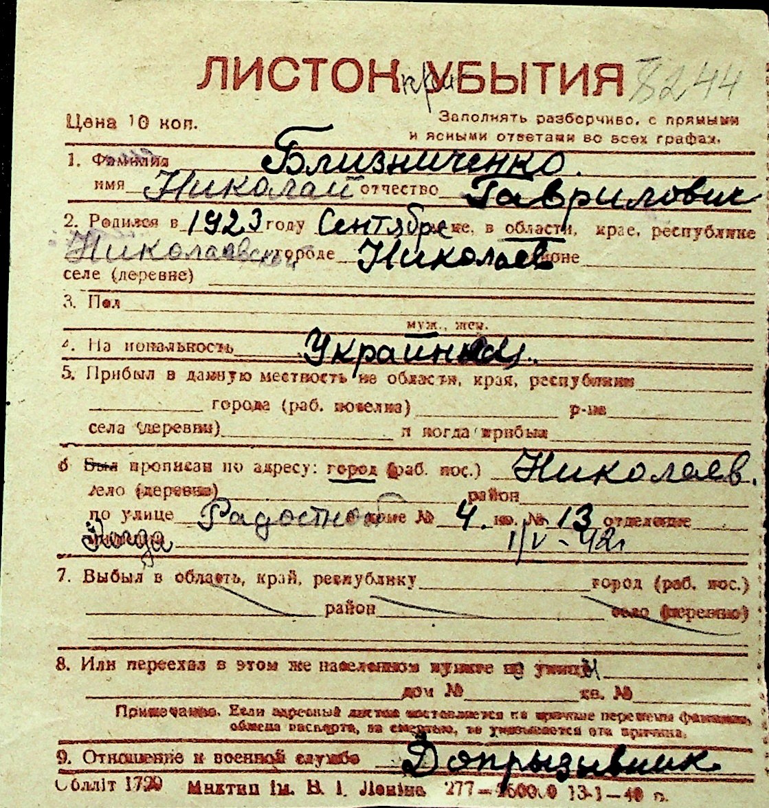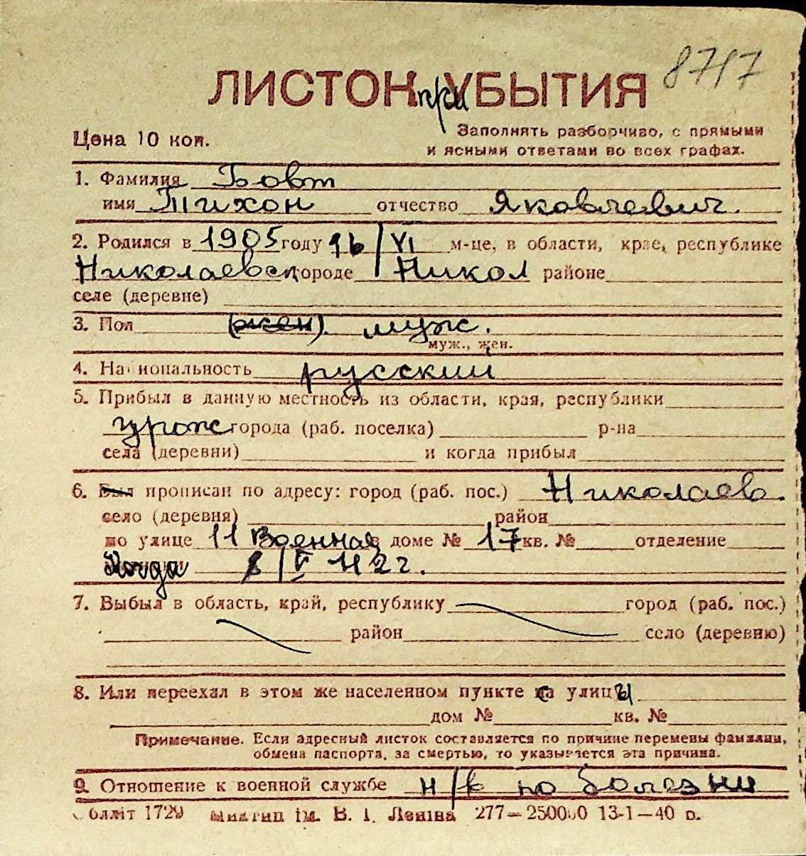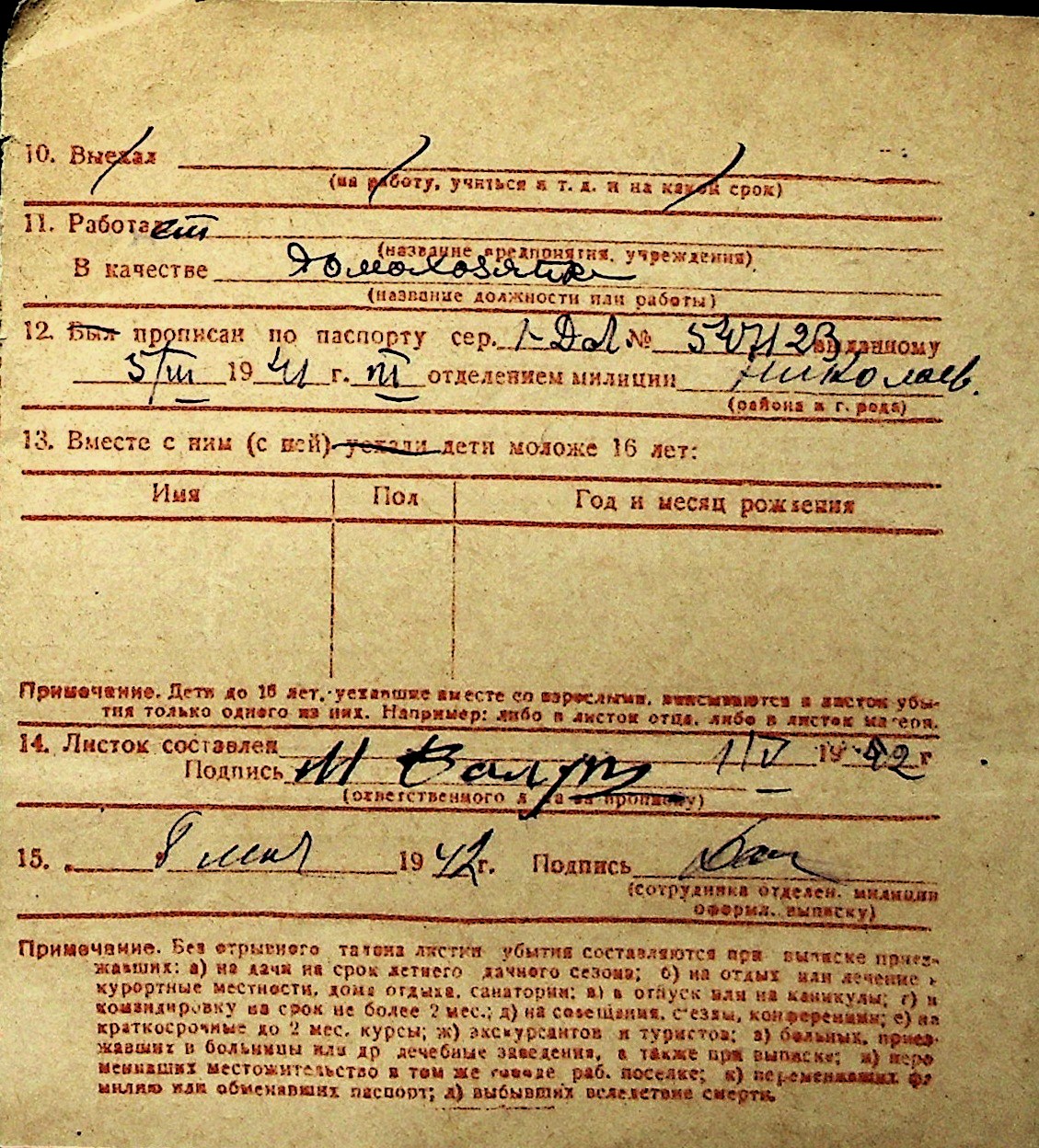 ◦ ◦ Перелік карток на осіб, які мешкали у м. Миколаїв у період окупації 1941–1944 років