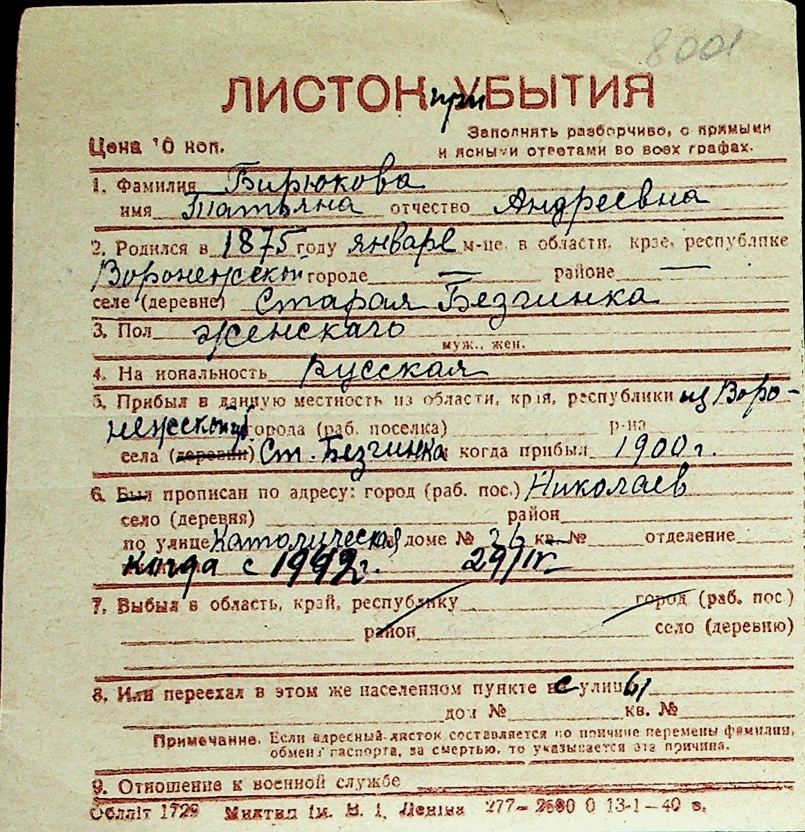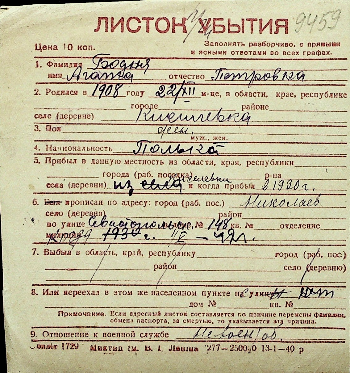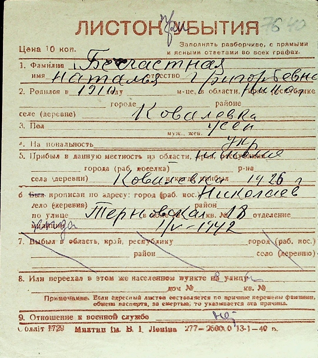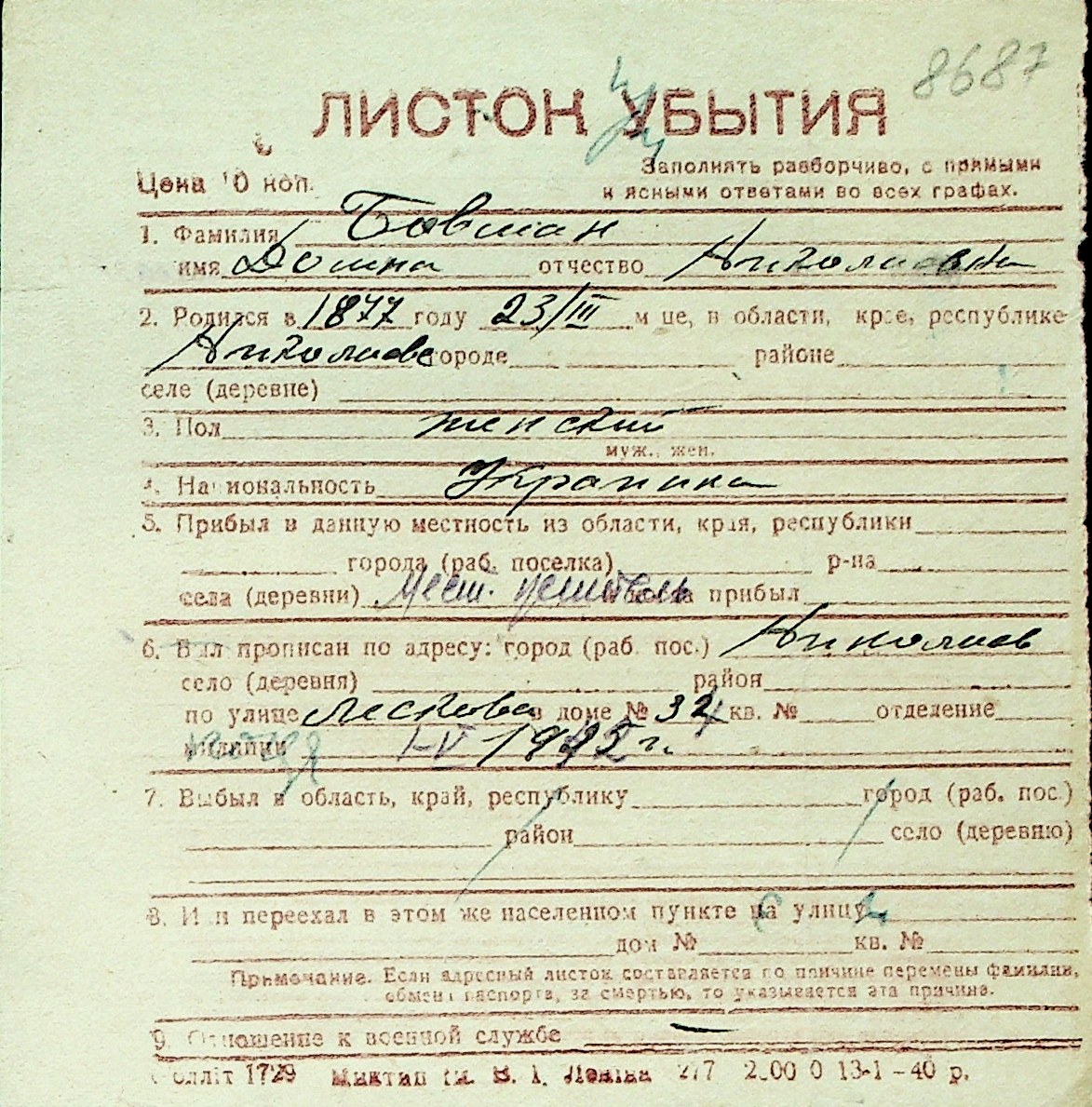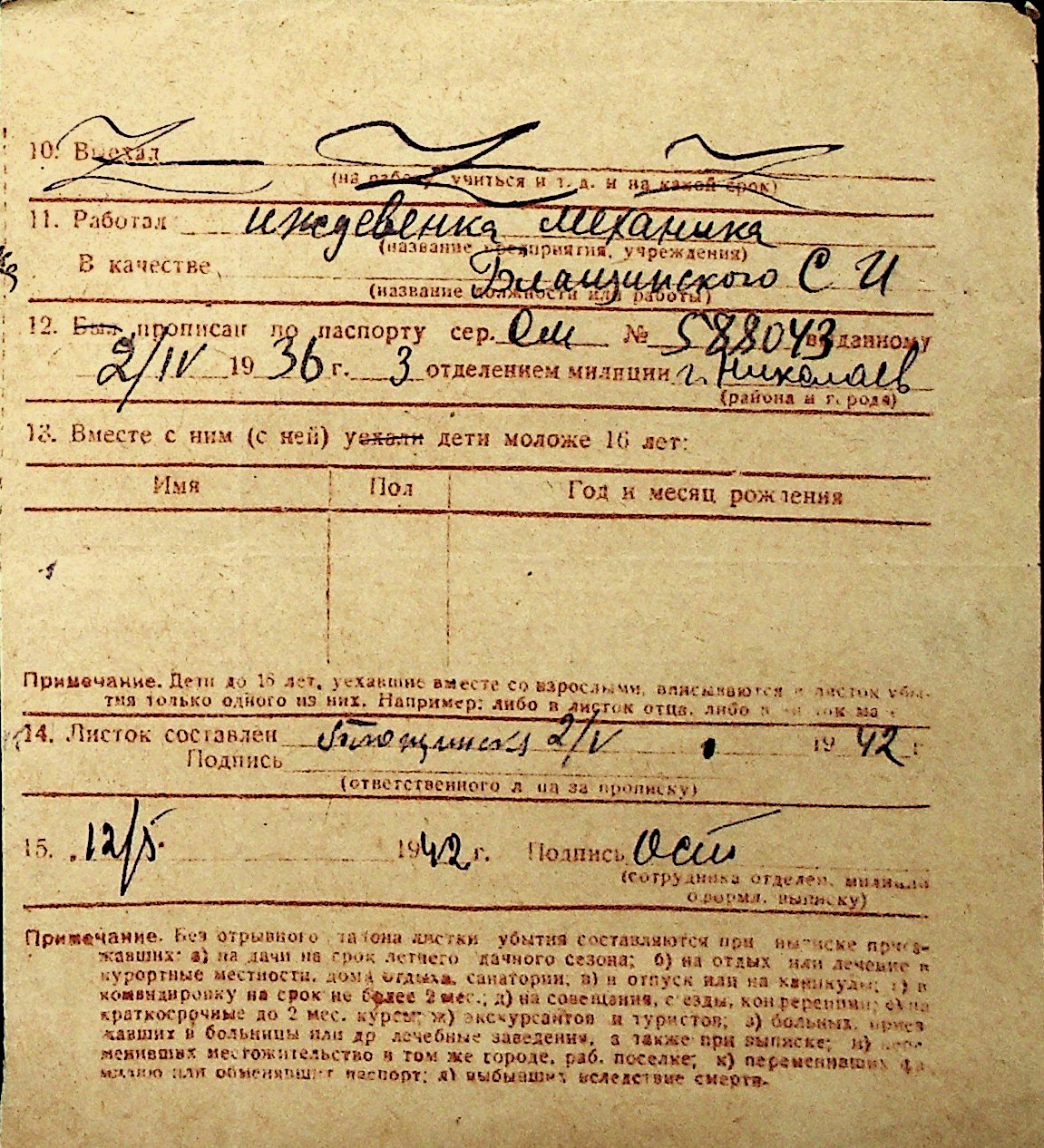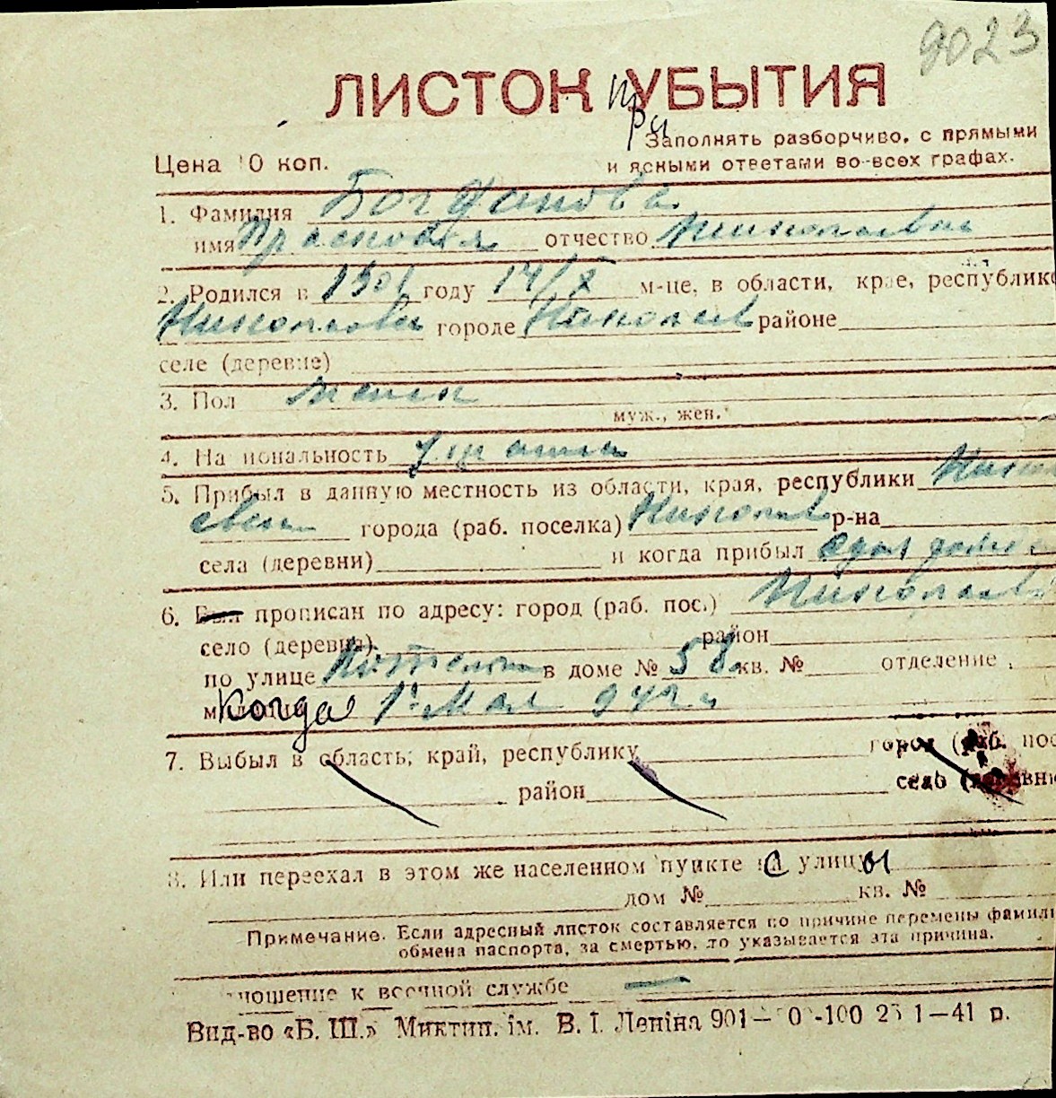 ◦ ◦ Перелік карток на осіб, які мешкали у м. Миколаїв у період окупації 1941–1944 років