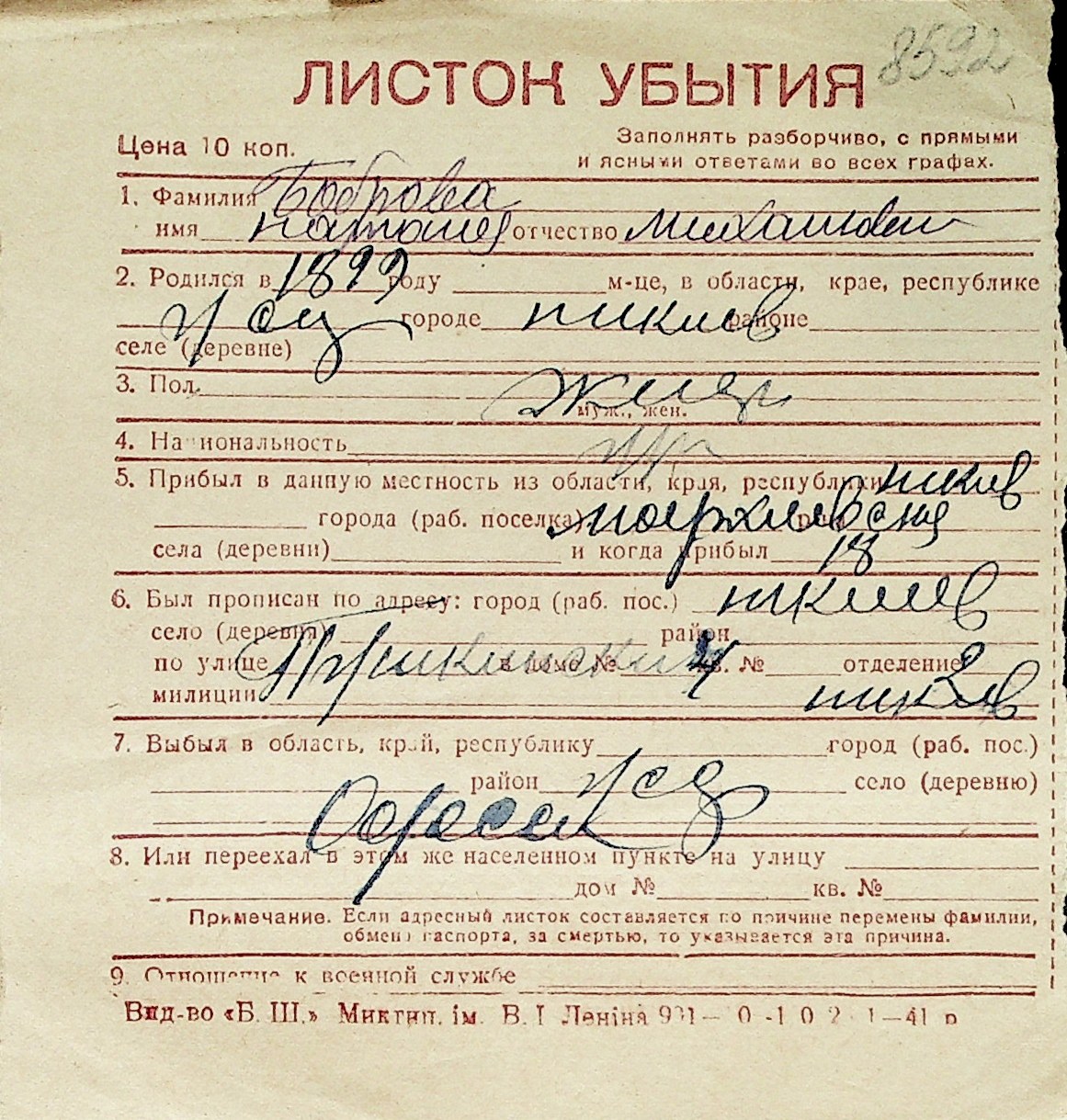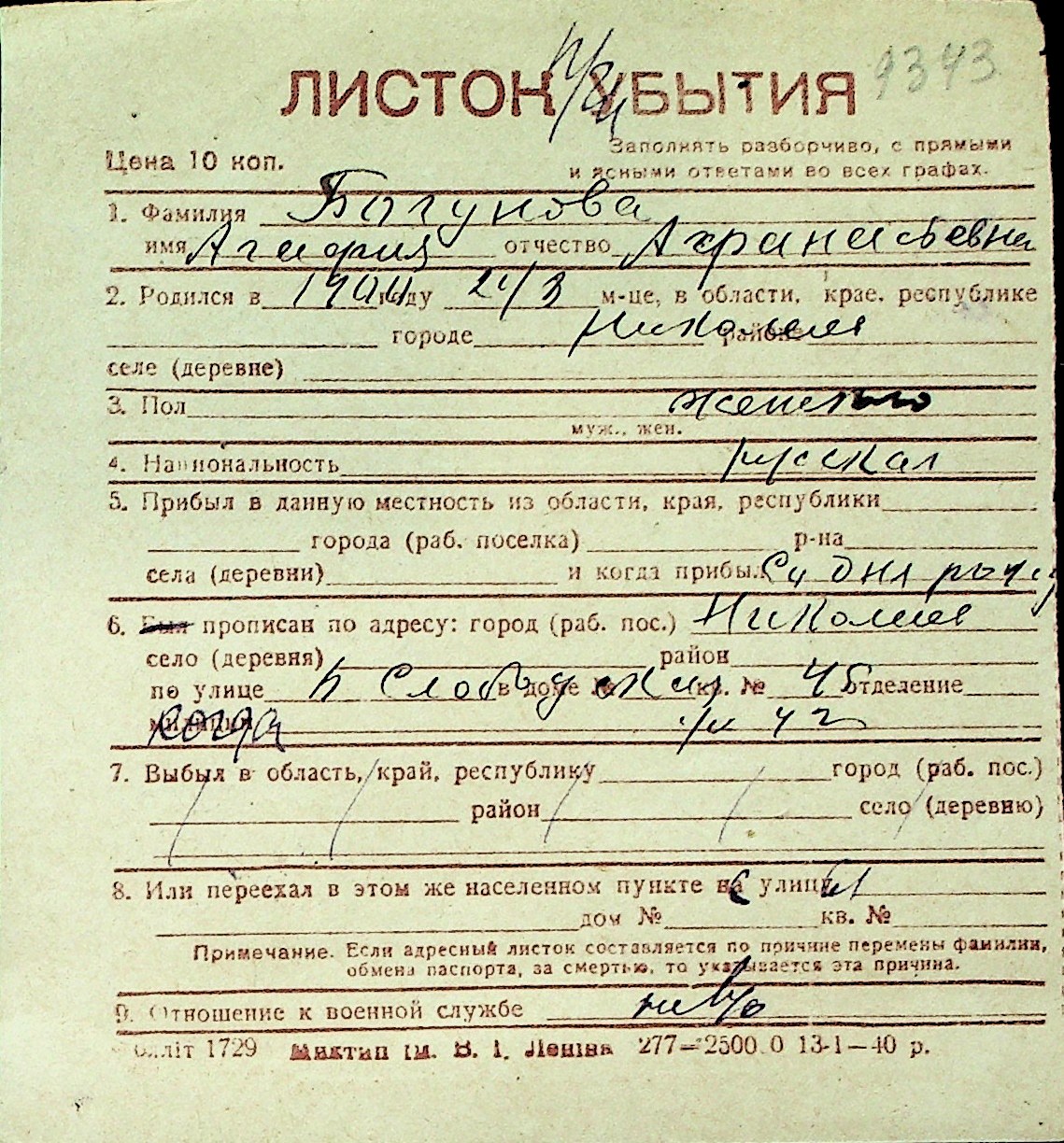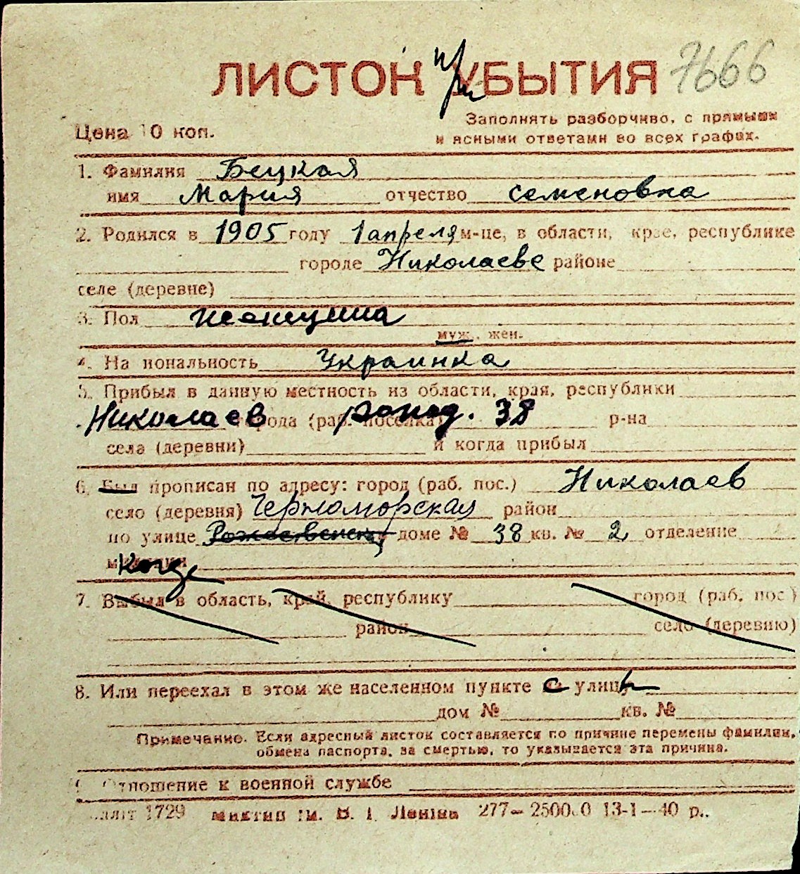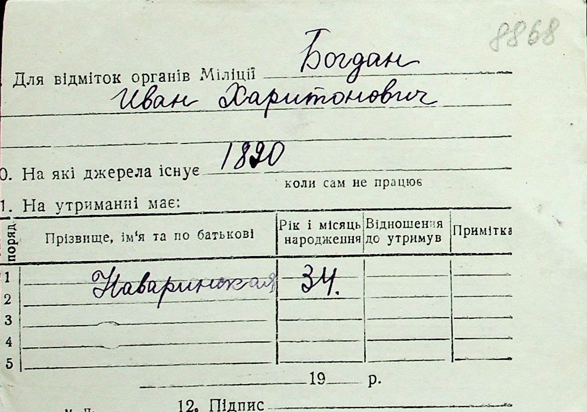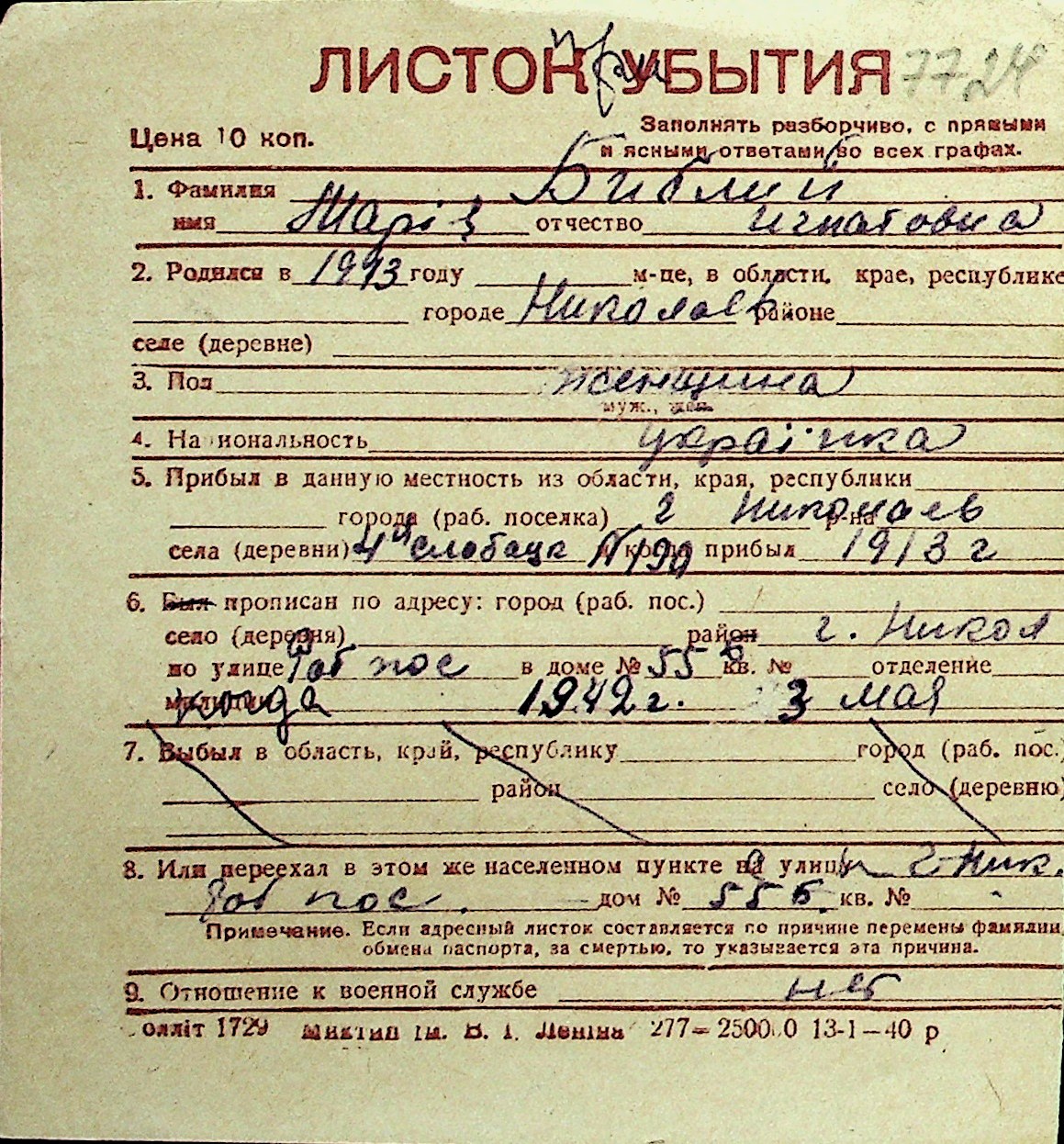 ◦ ◦ Перелік карток на осіб, які мешкали у м. Миколаїв у період окупації 1941–1944 років