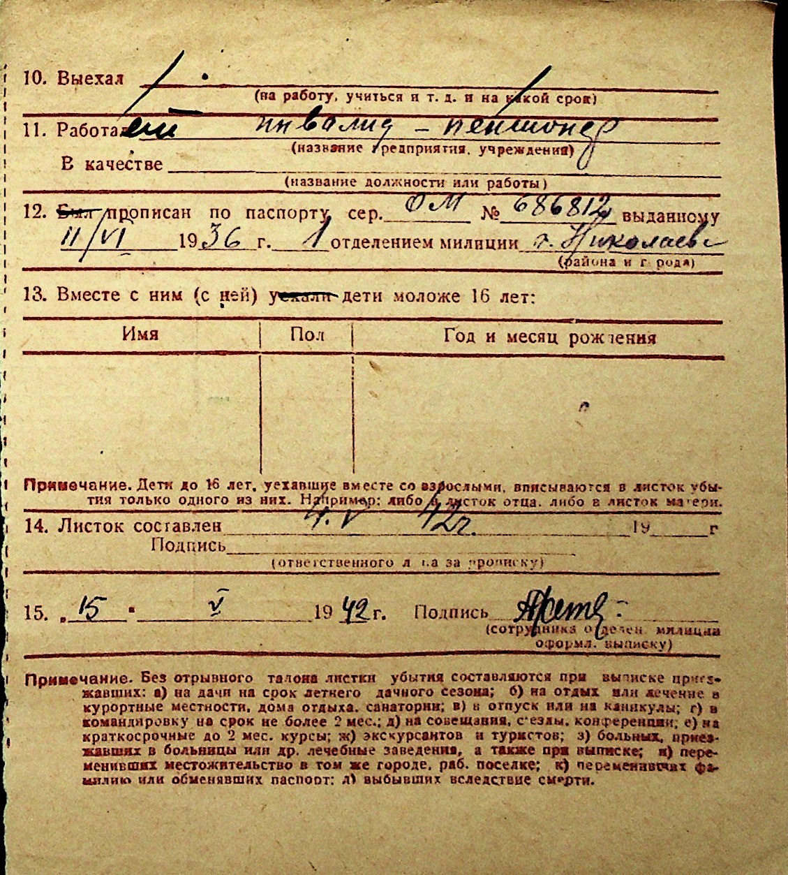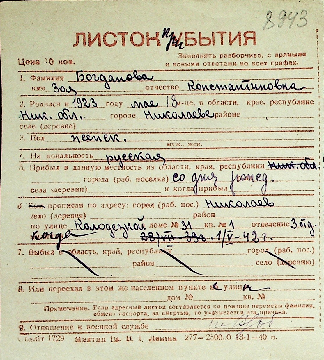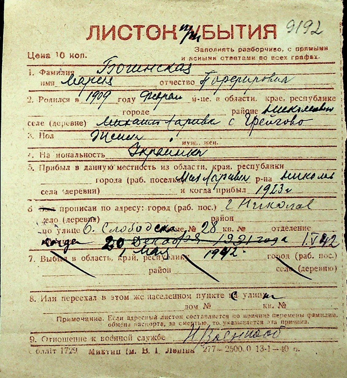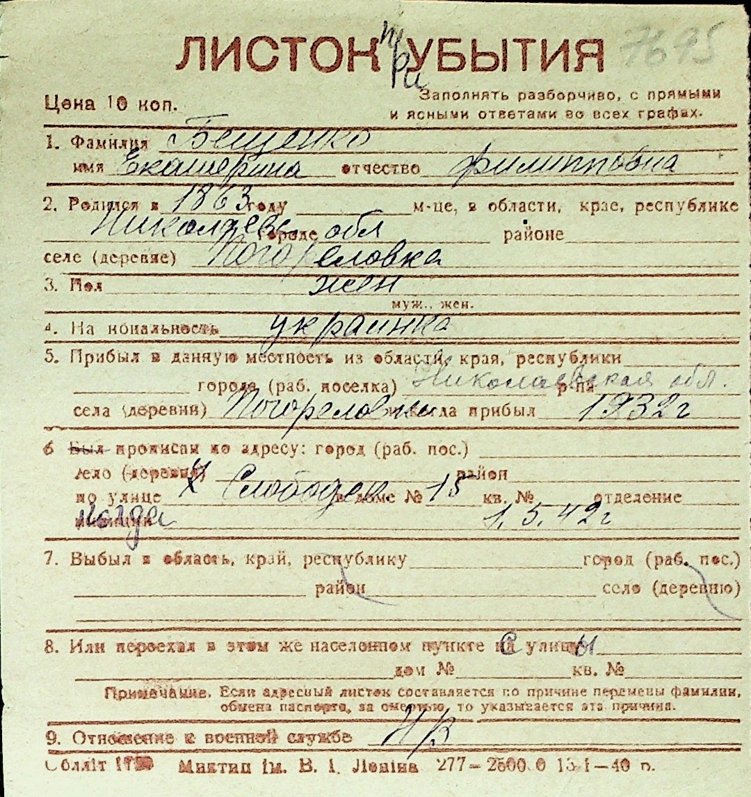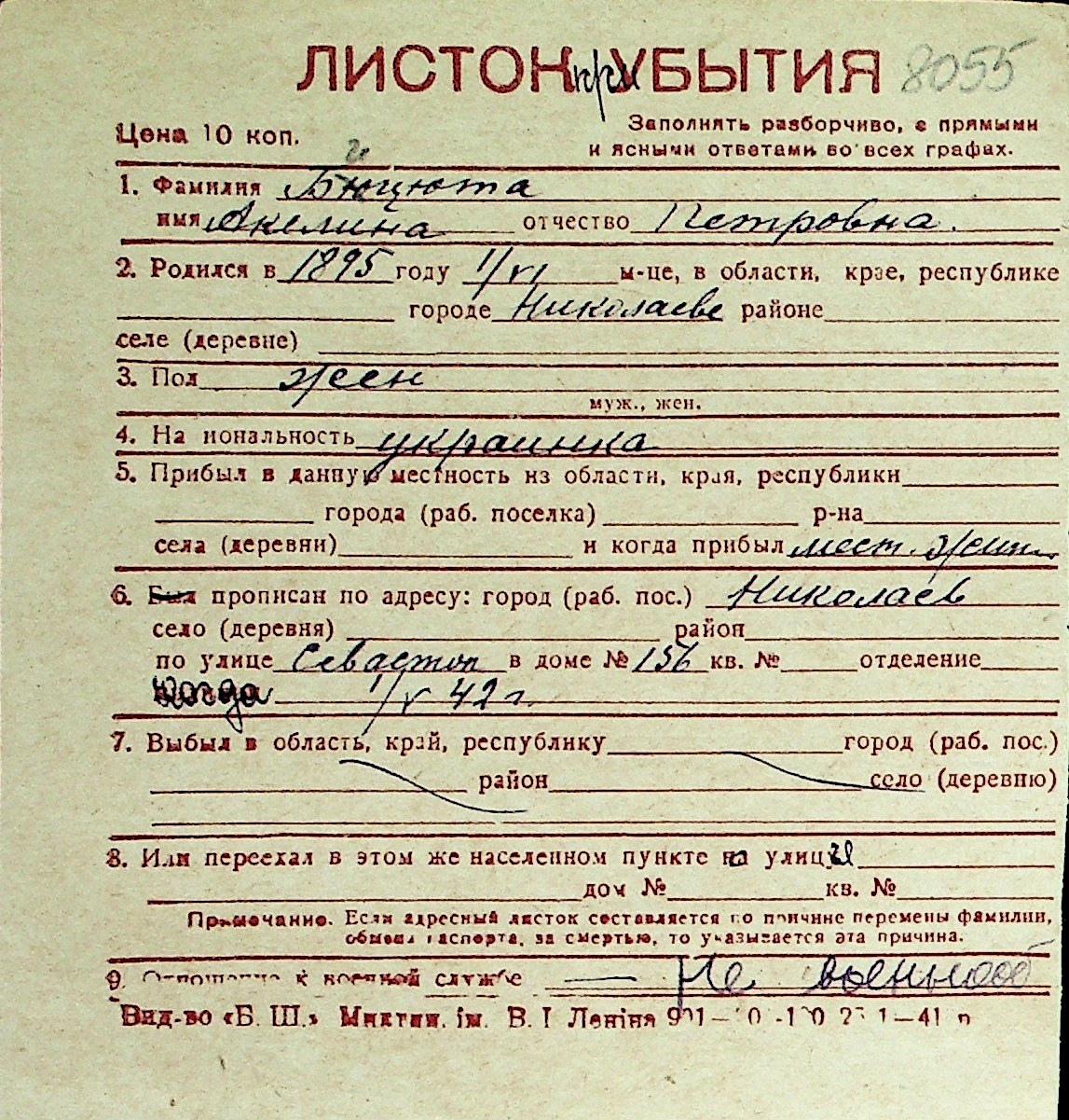 ◦ ◦ Перелік карток на осіб, які мешкали у м. Миколаїв у період окупації 1941–1944 років