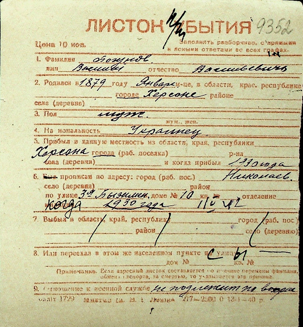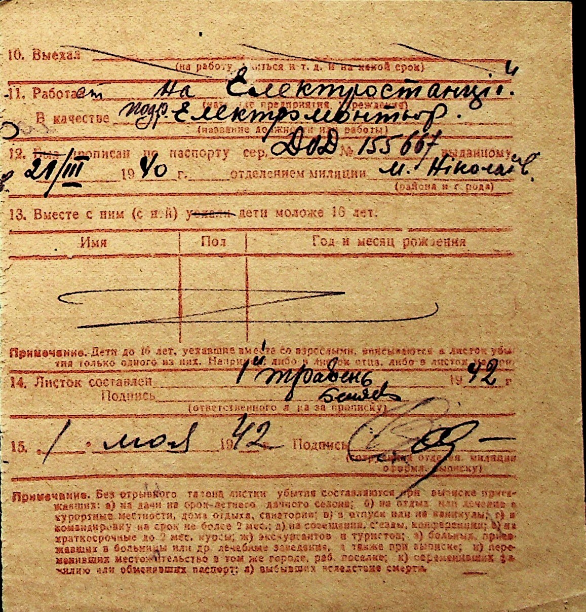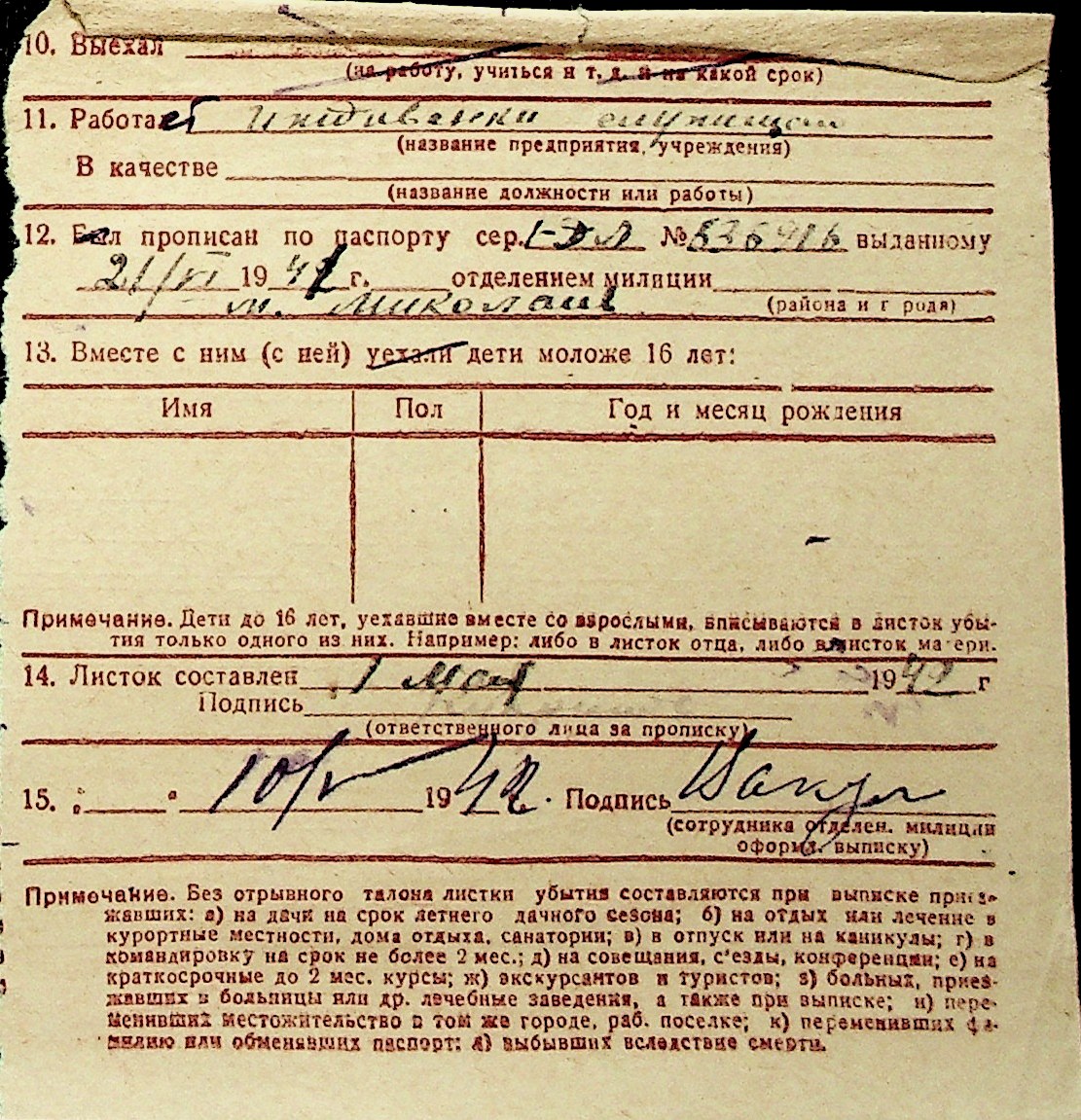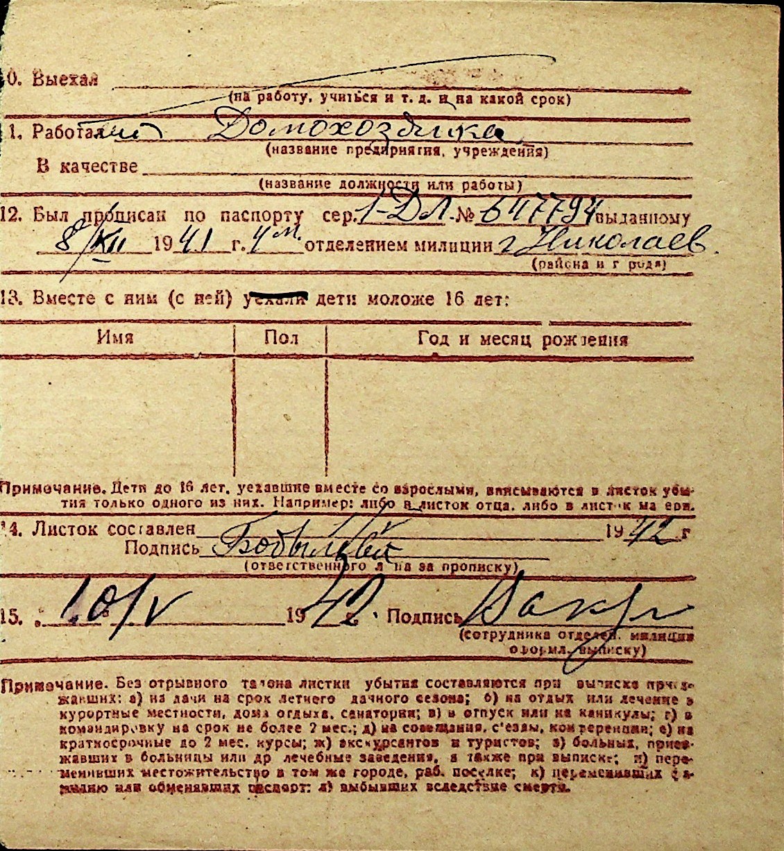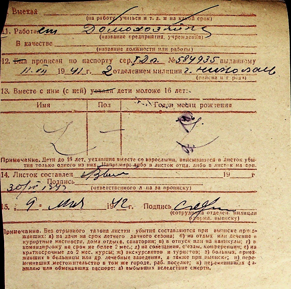 ◦ ◦ Перелік карток на осіб, які мешкали у м. Миколаїв у період окупації 1941–1944 років