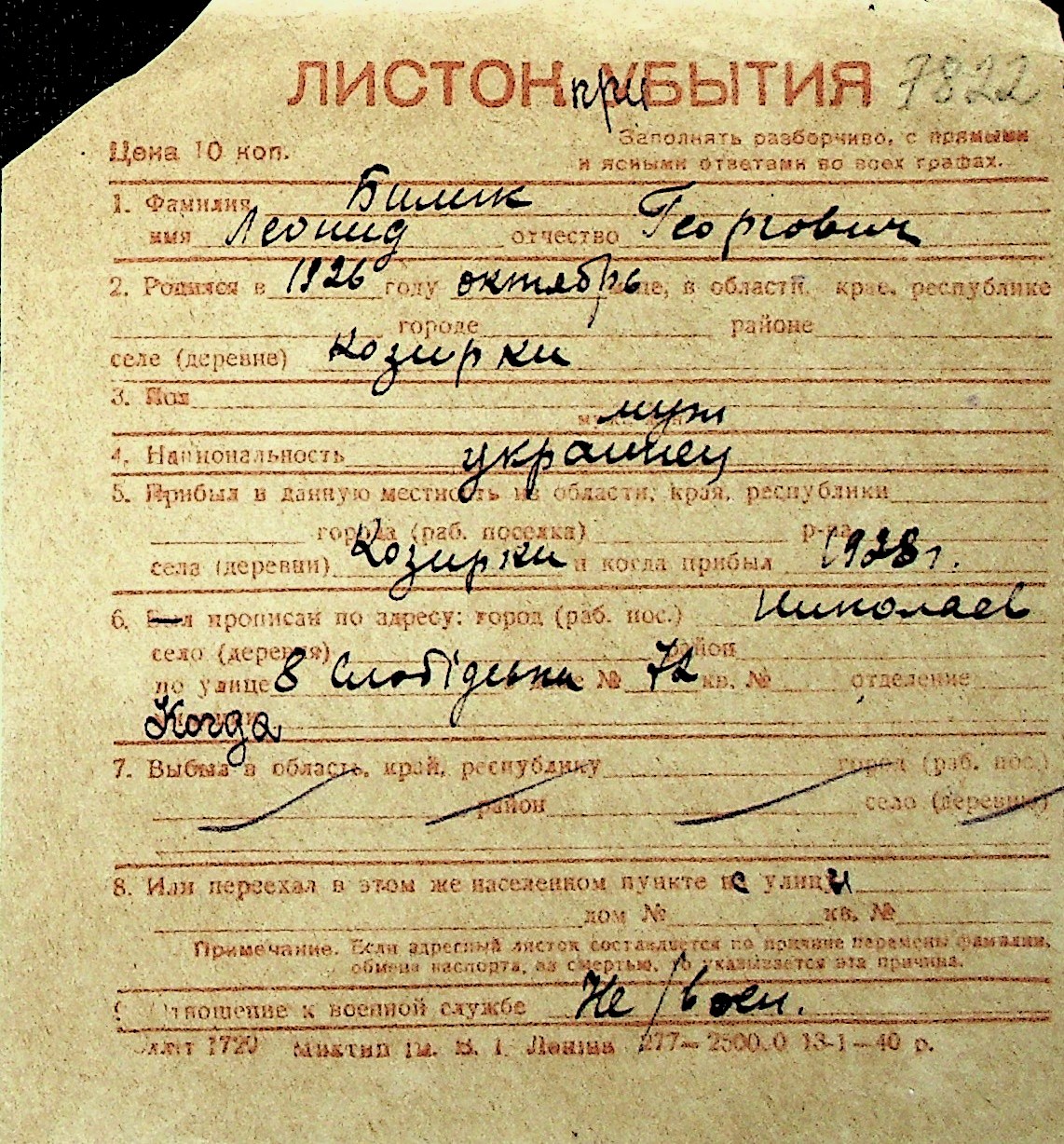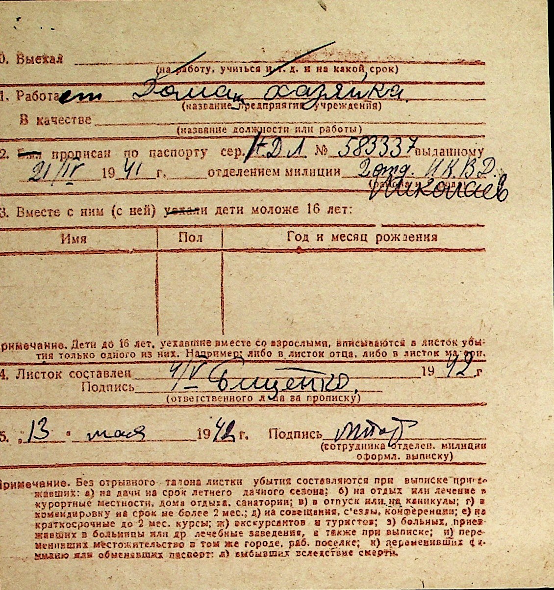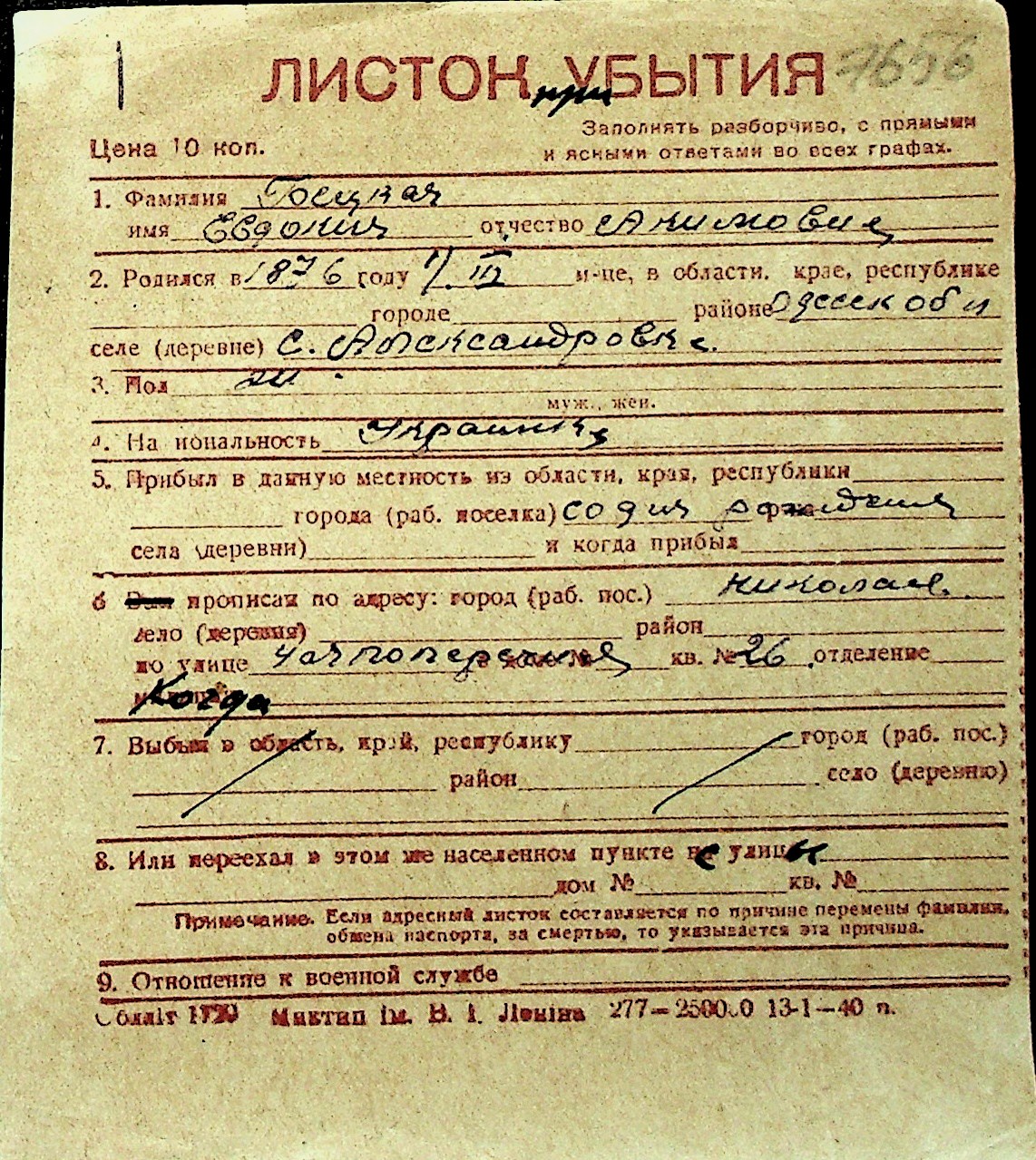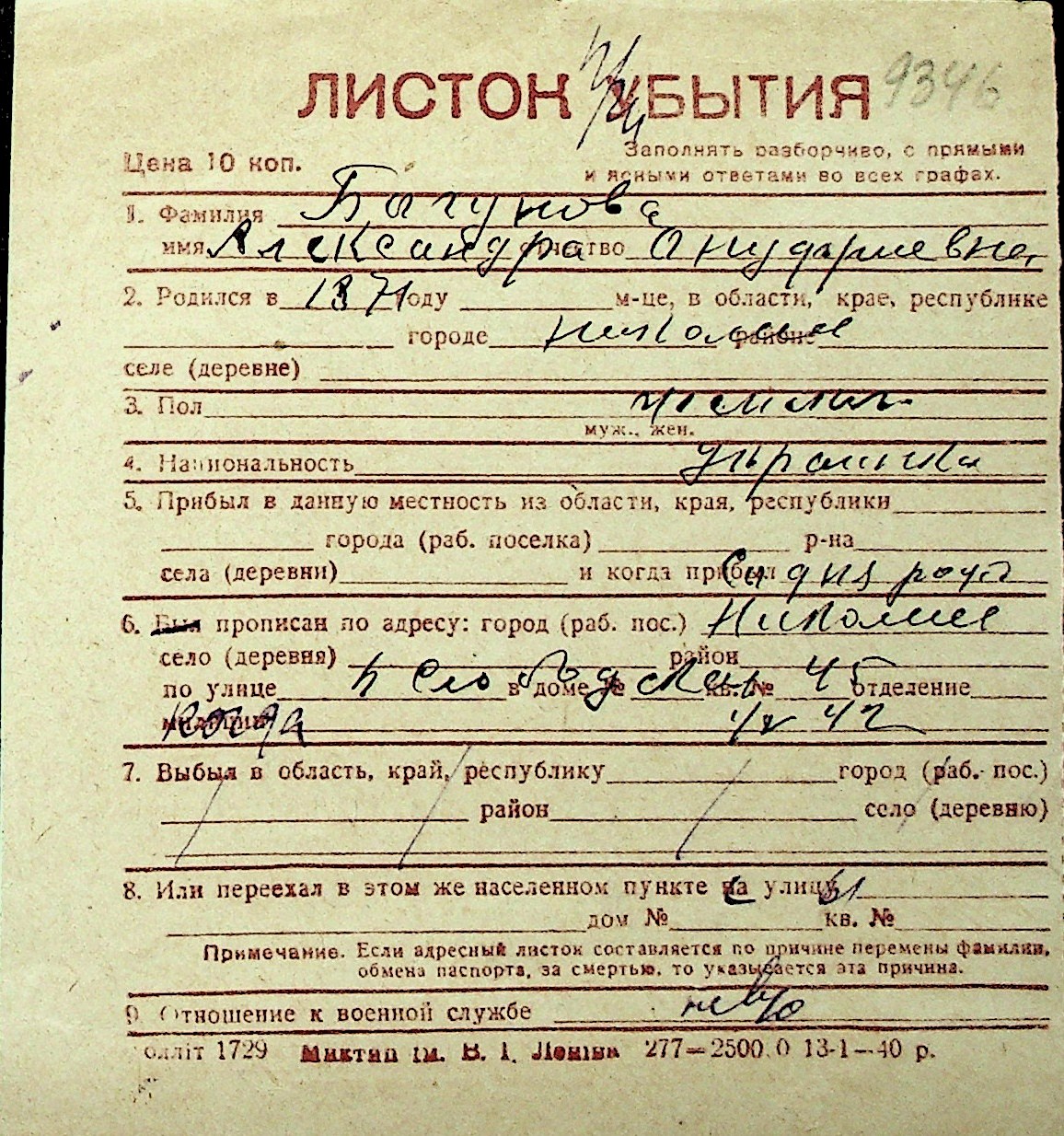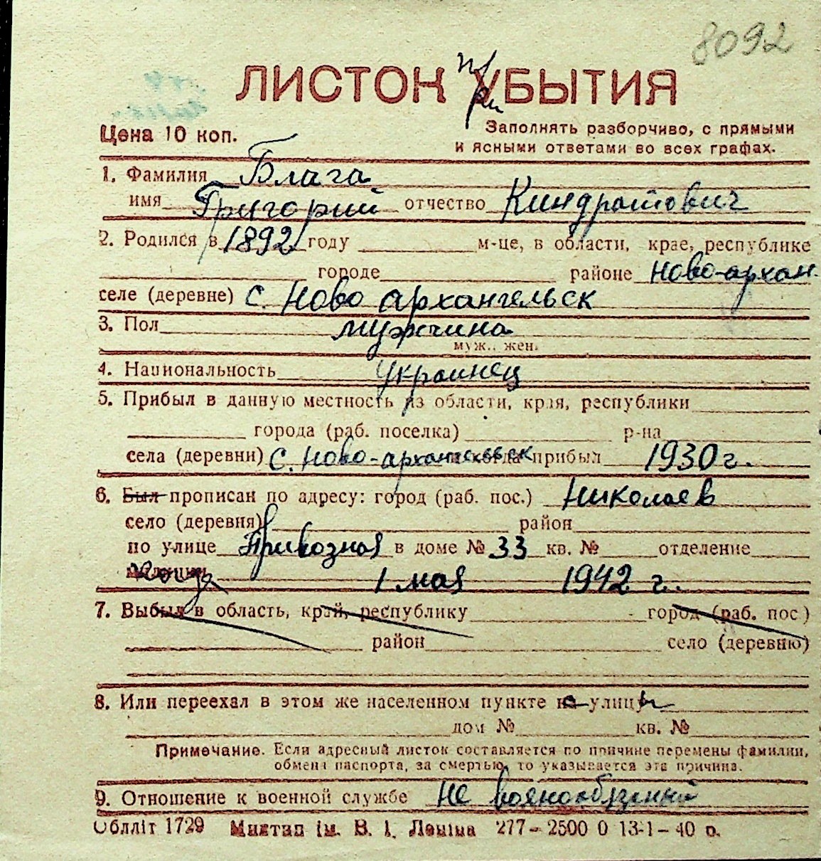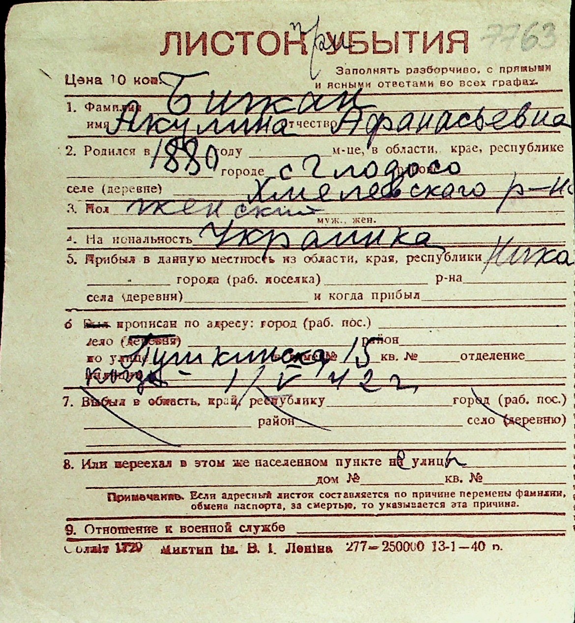 ◦ ◦ Перелік карток на осіб, які мешкали у м. Миколаїв у період окупації 1941–1944 років