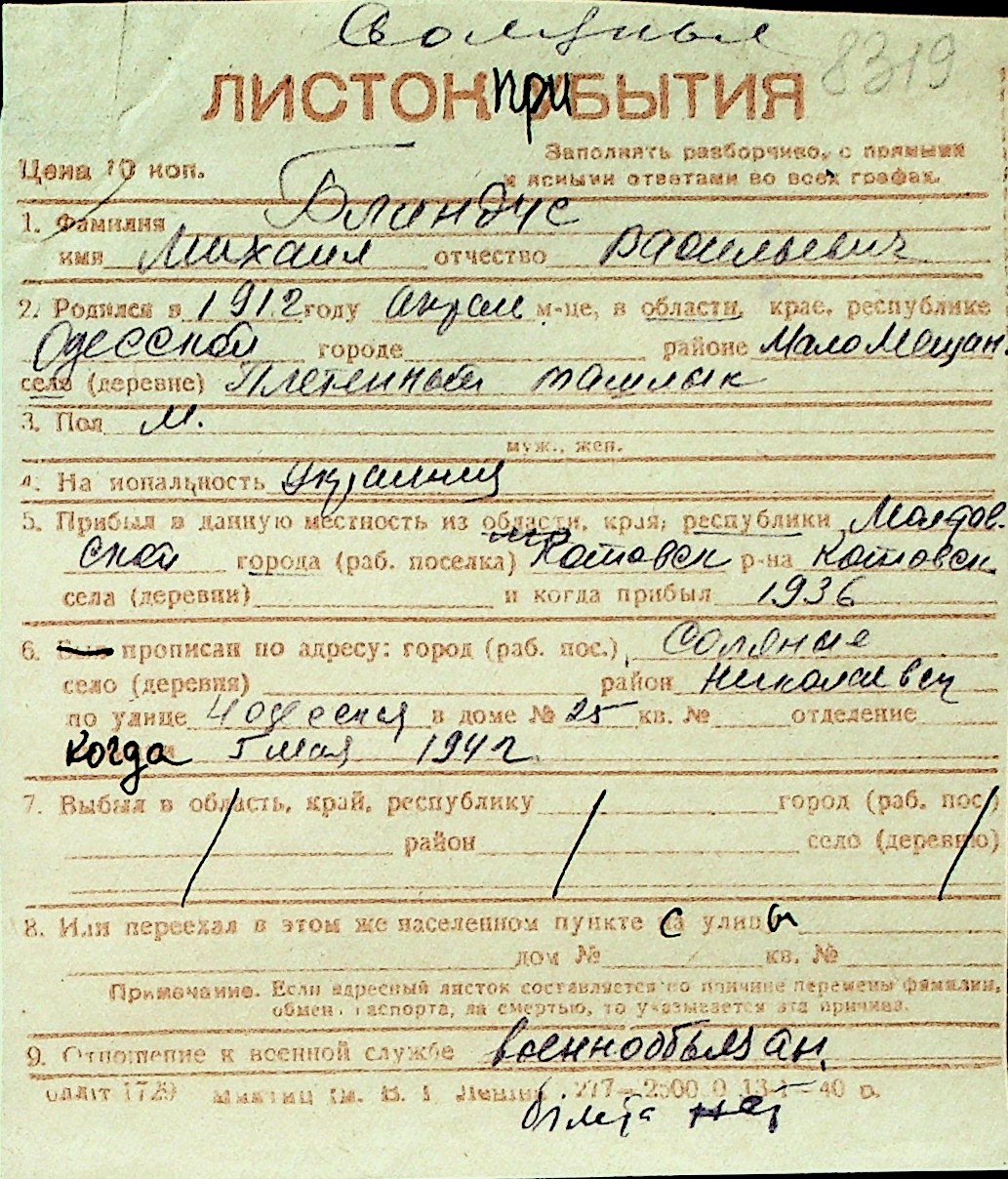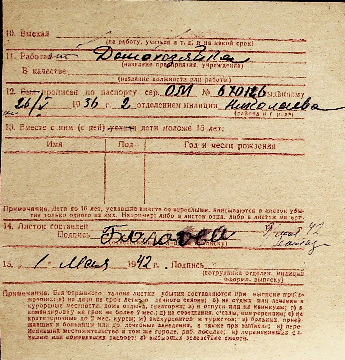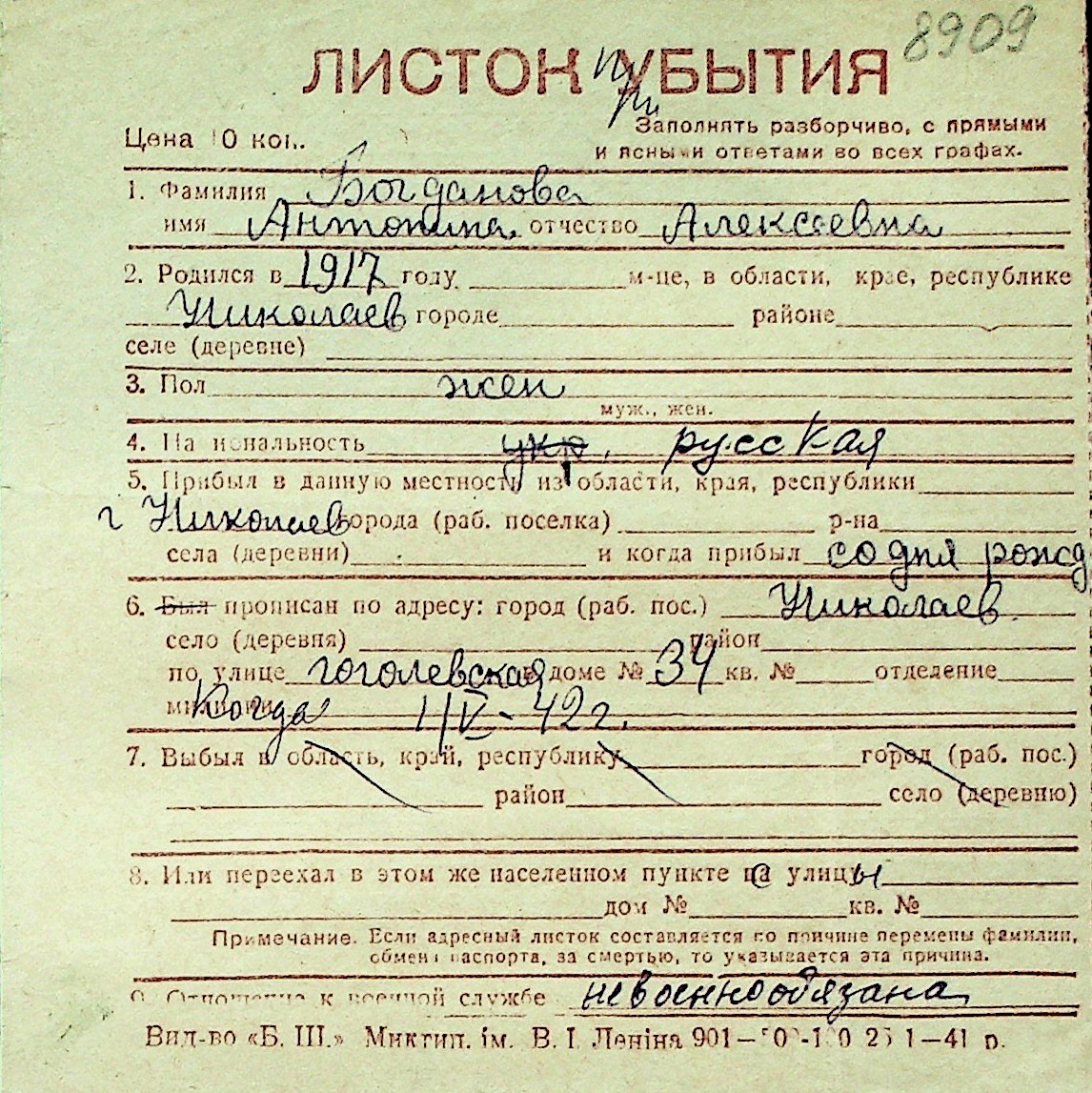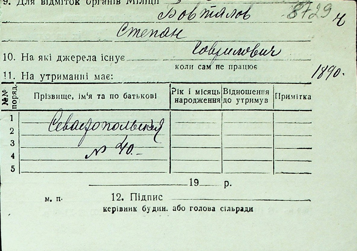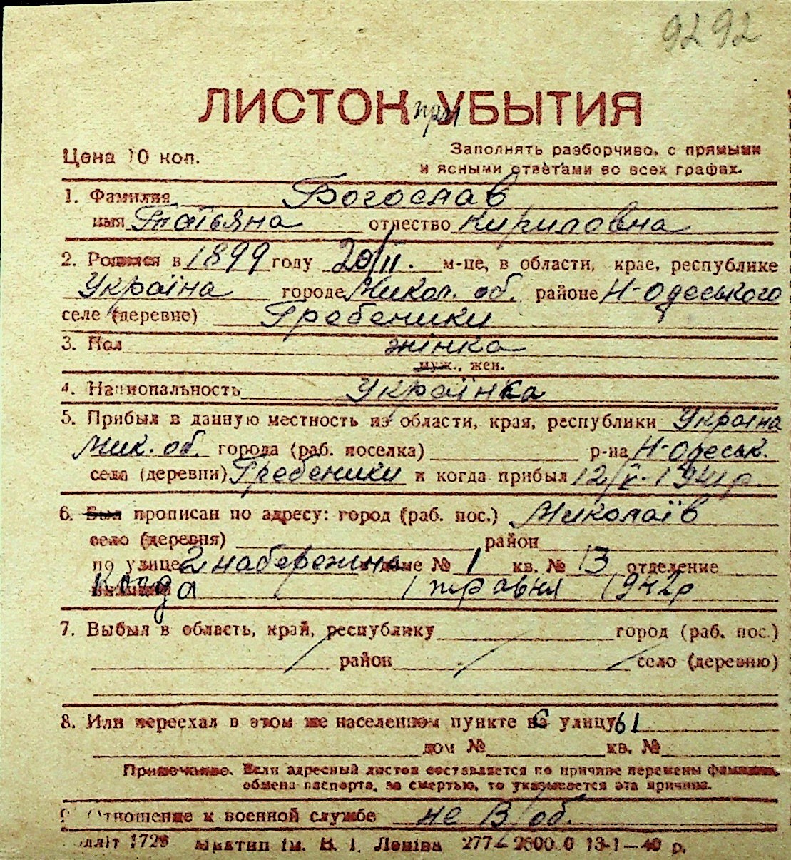 ◦ ◦ Перелік карток на осіб, які мешкали у м. Миколаїв у період окупації 1941–1944 років