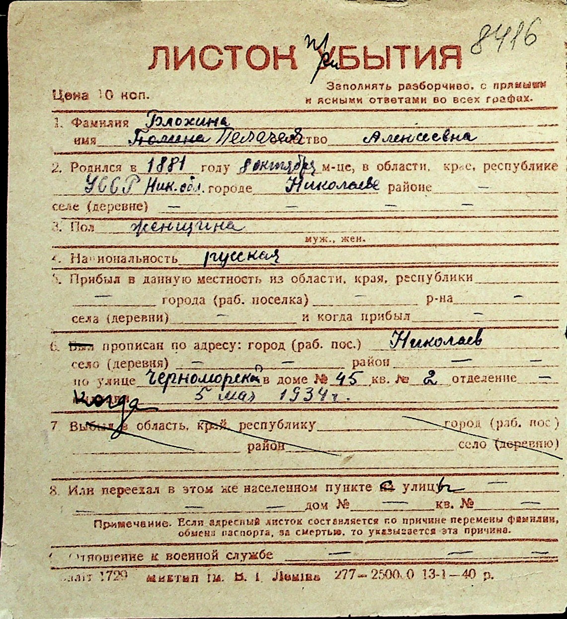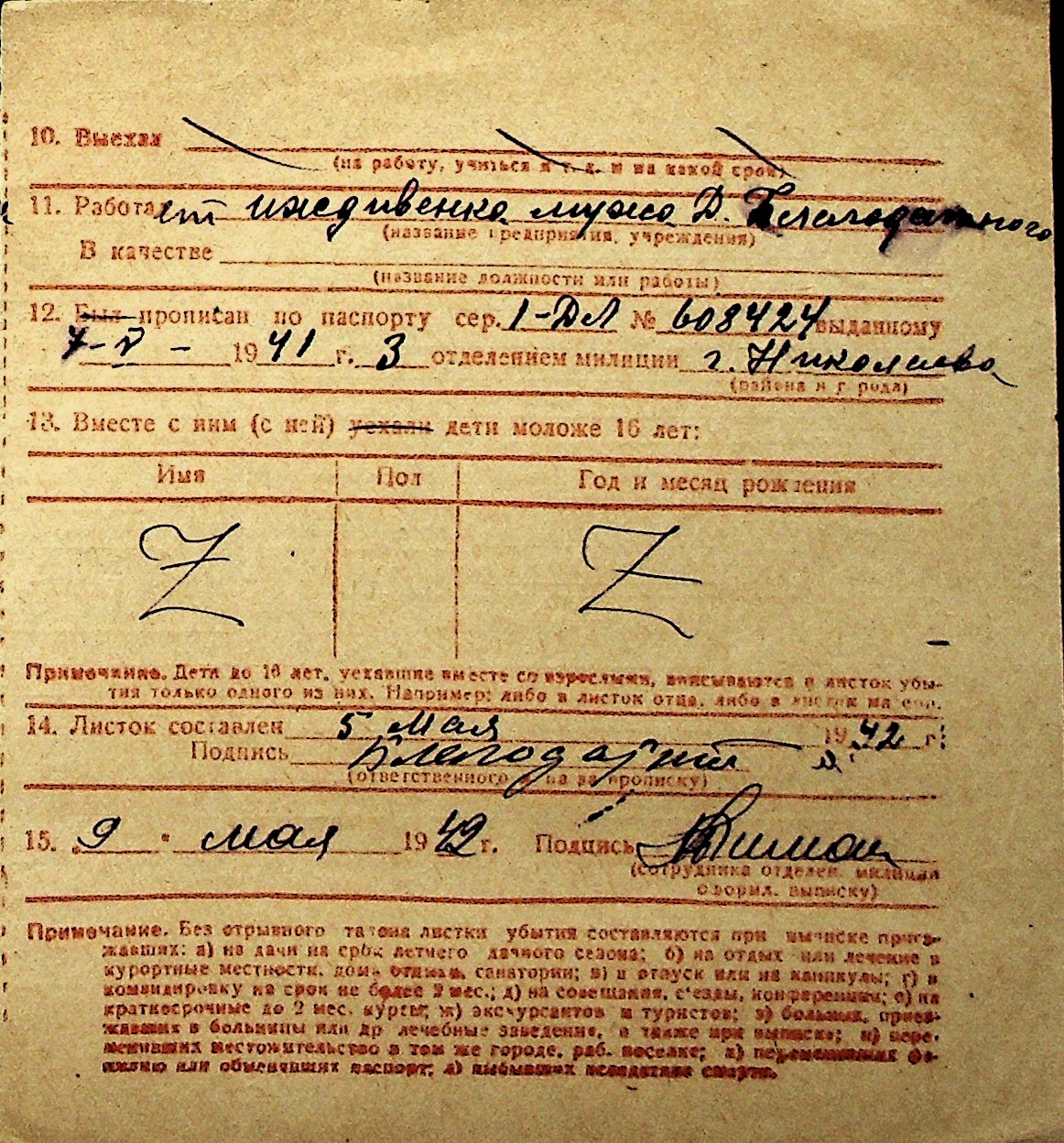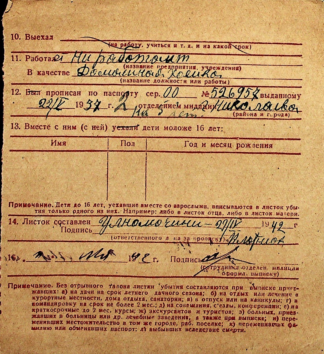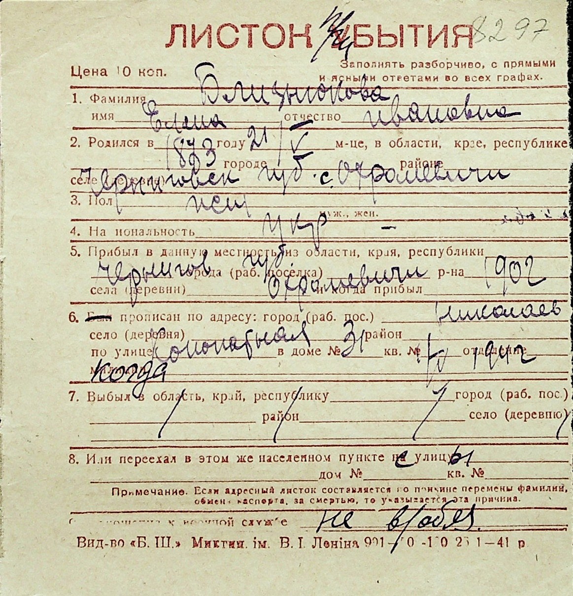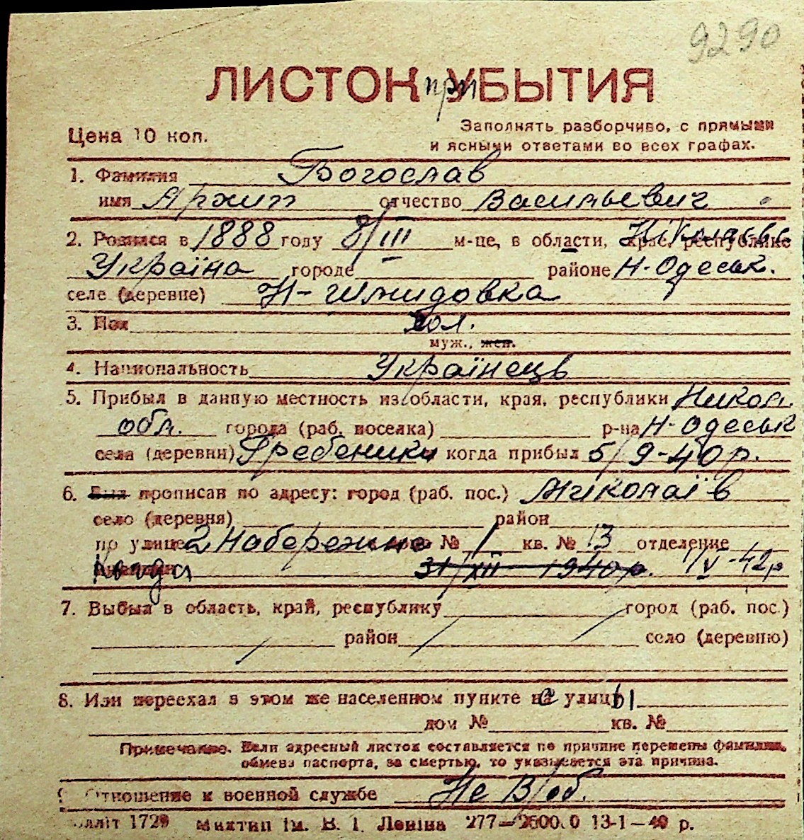 ◦ ◦ Перелік карток на осіб, які мешкали у м. Миколаїв у період окупації 1941–1944 років