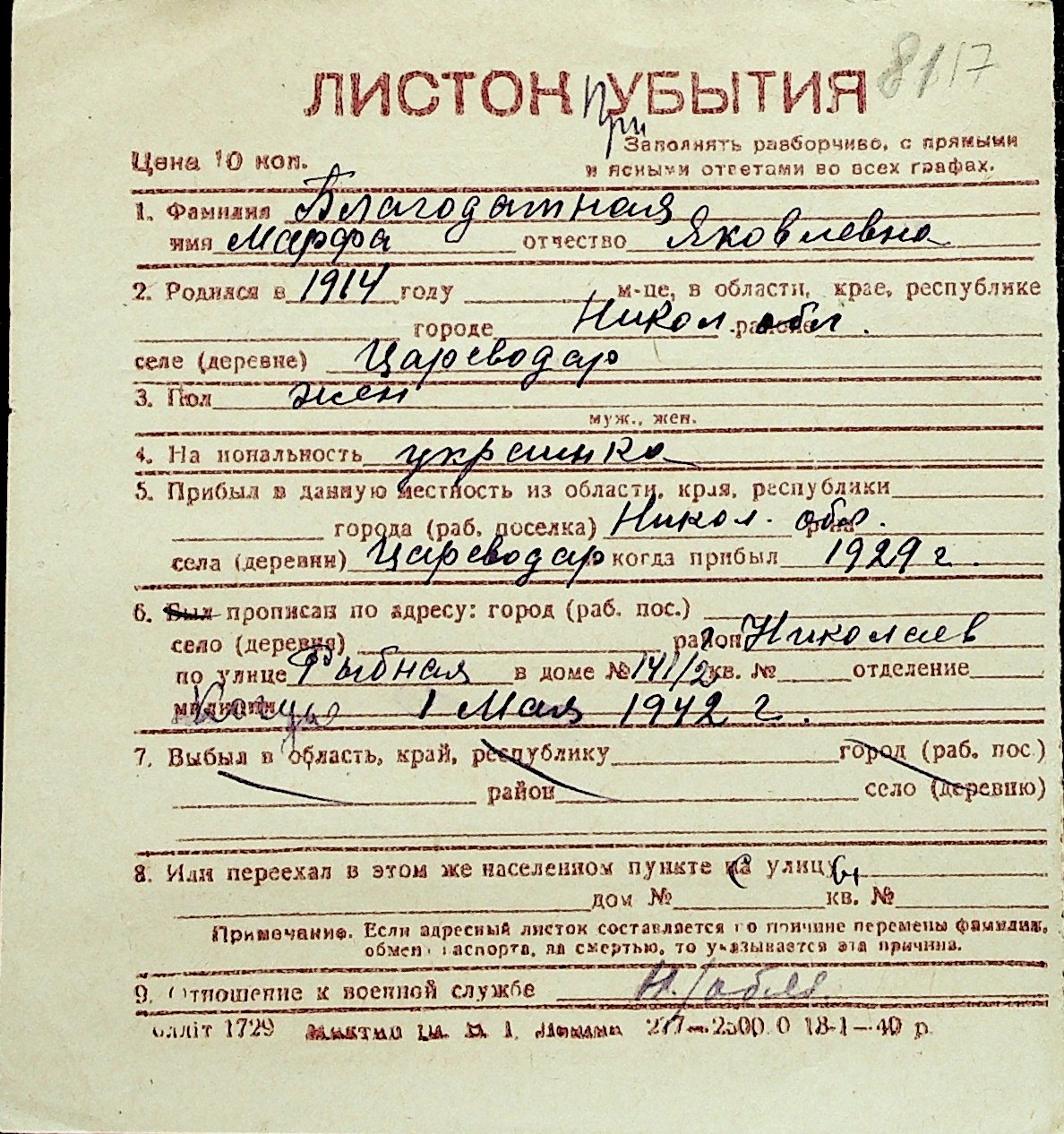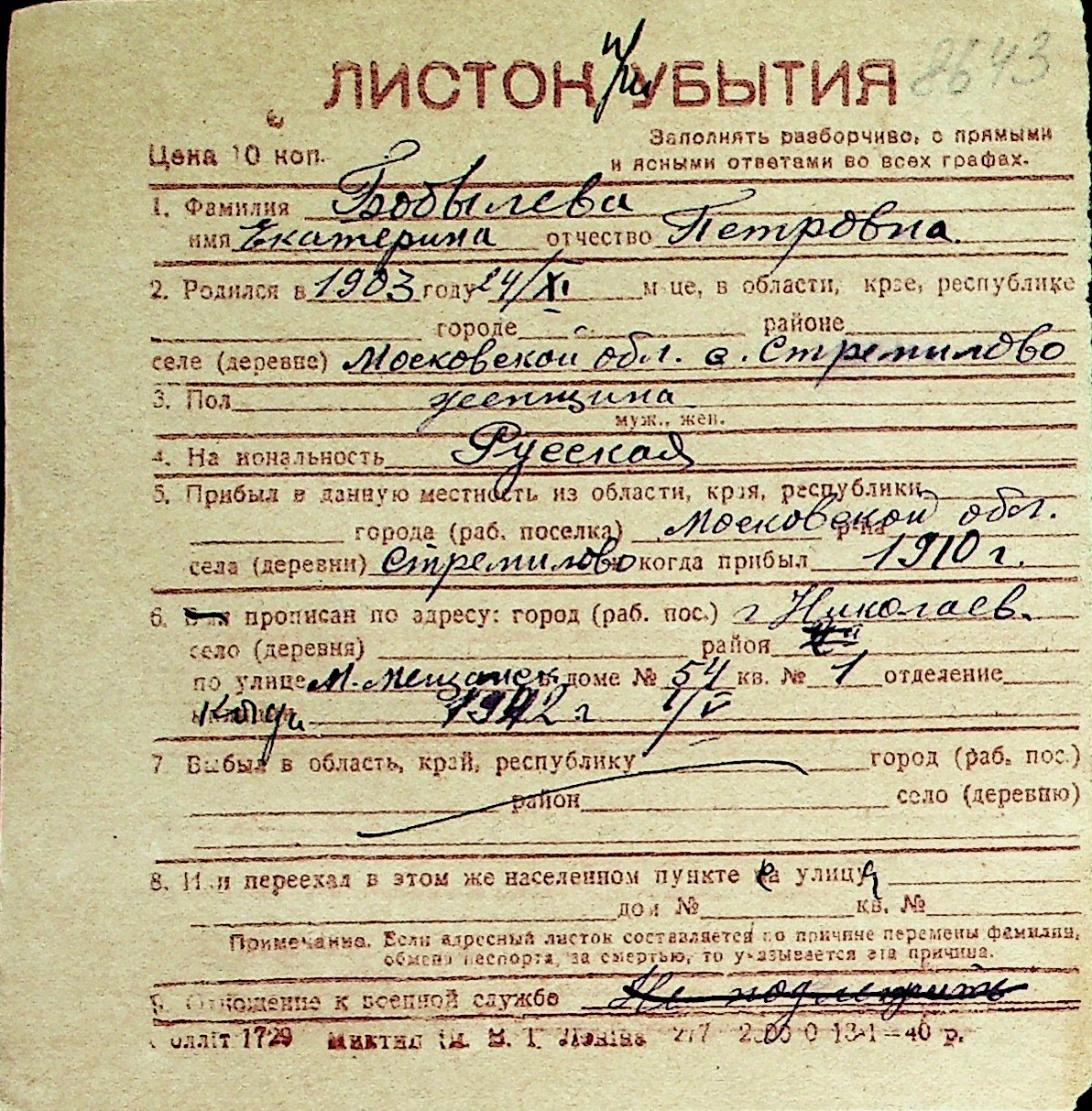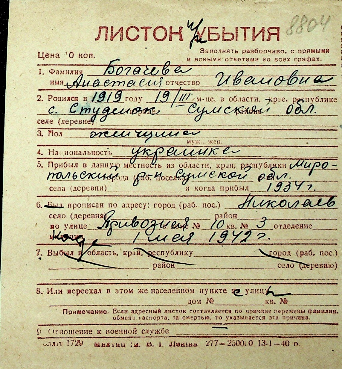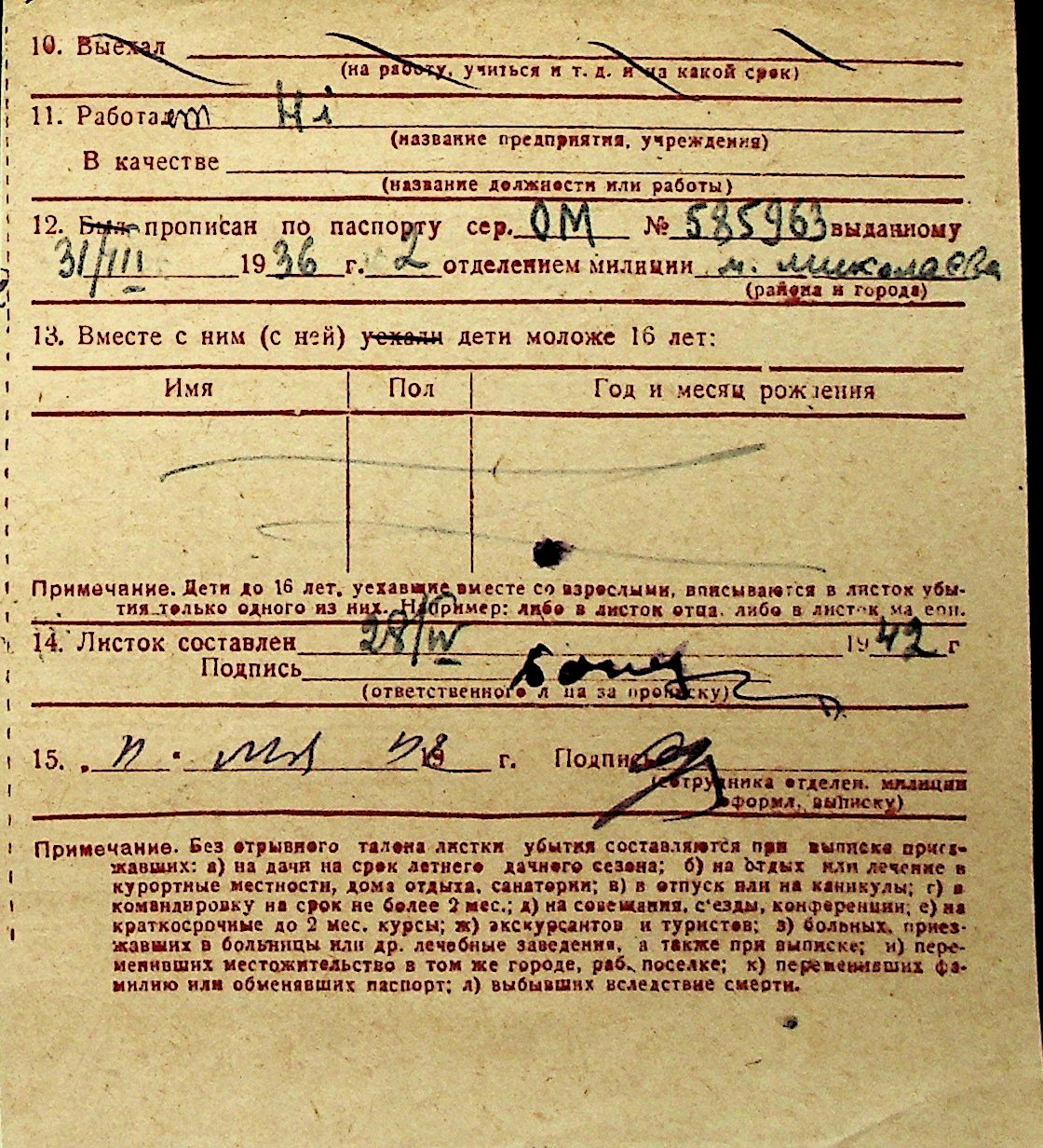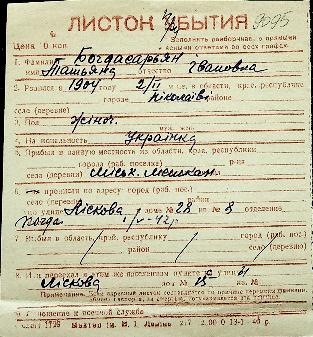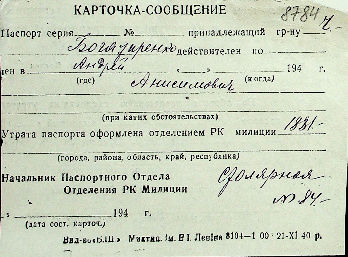 ◦ ◦ Перелік карток на осіб, які мешкали у м. Миколаїв у період окупації 1941–1944 років