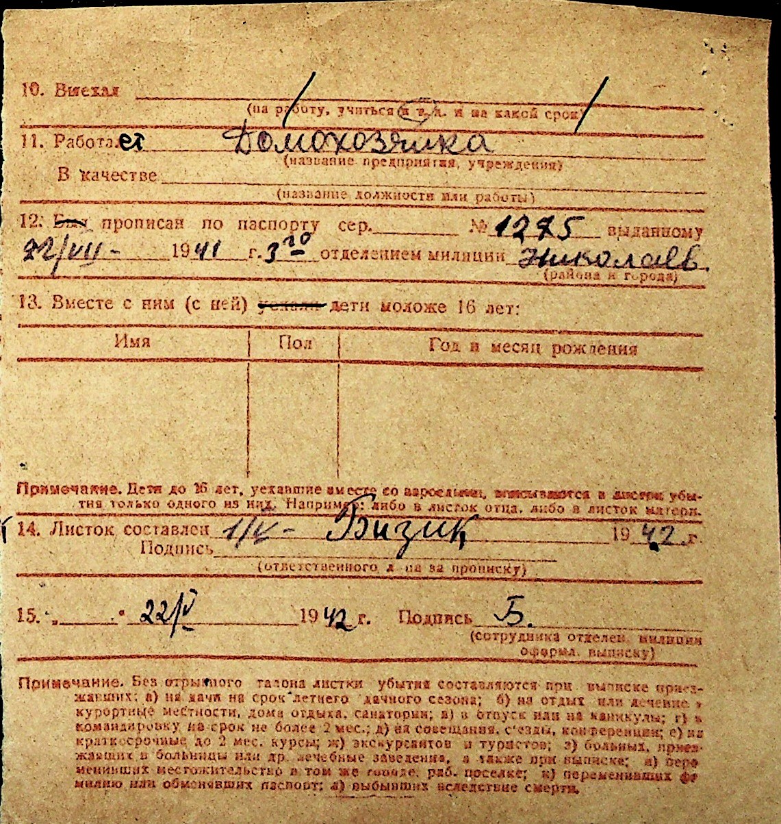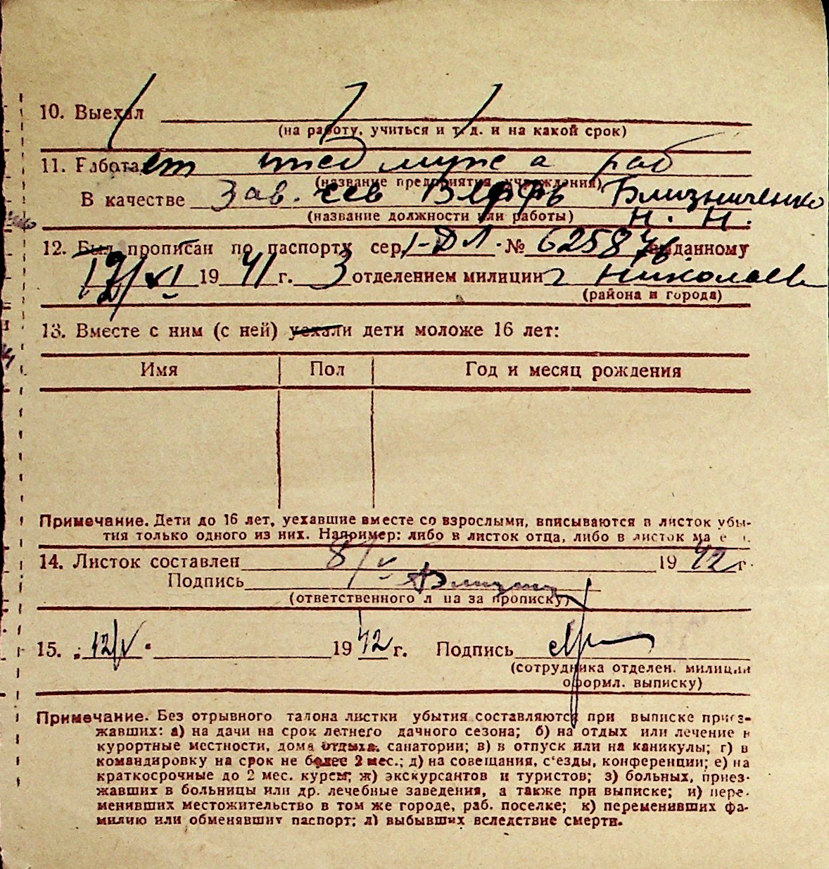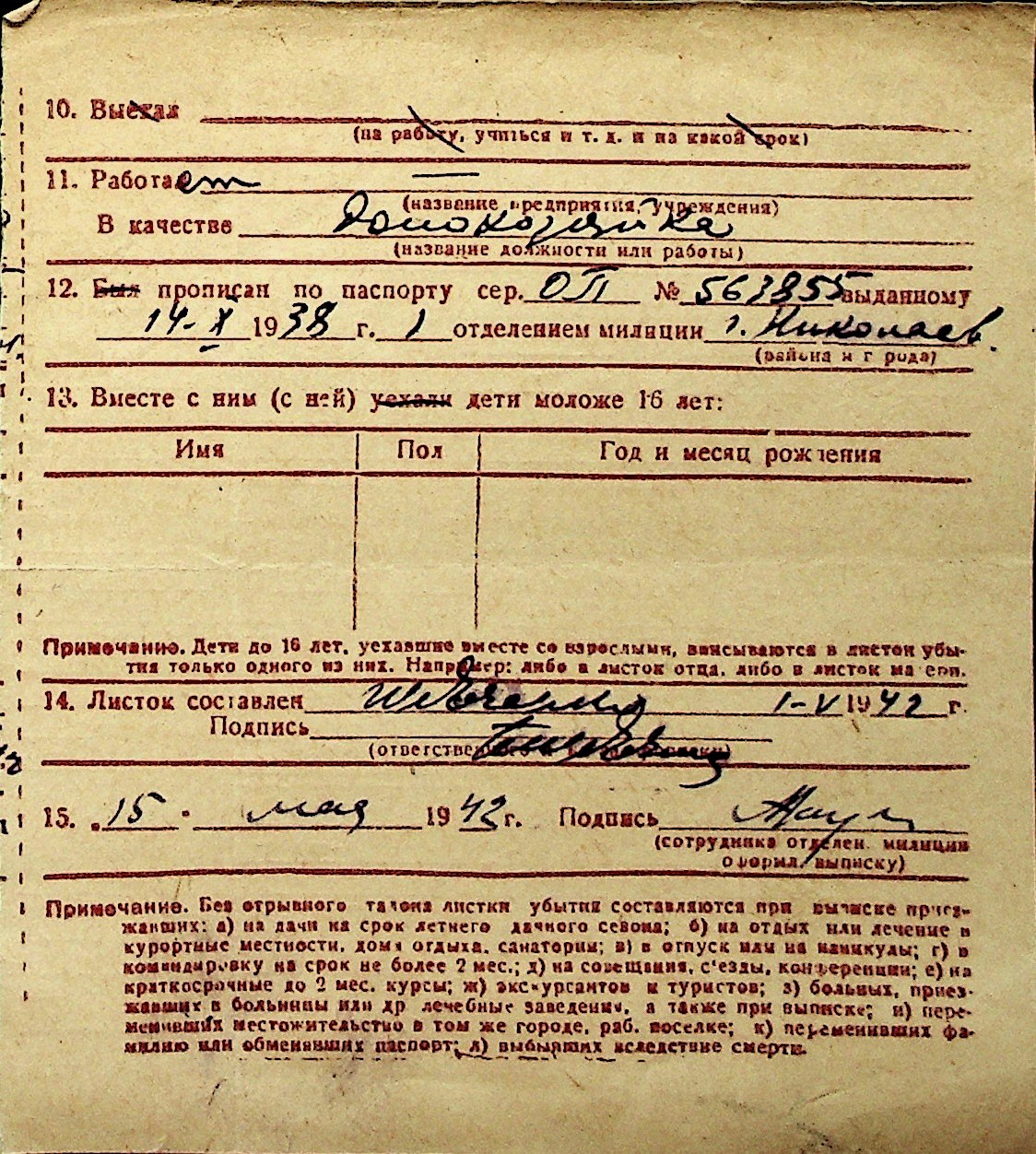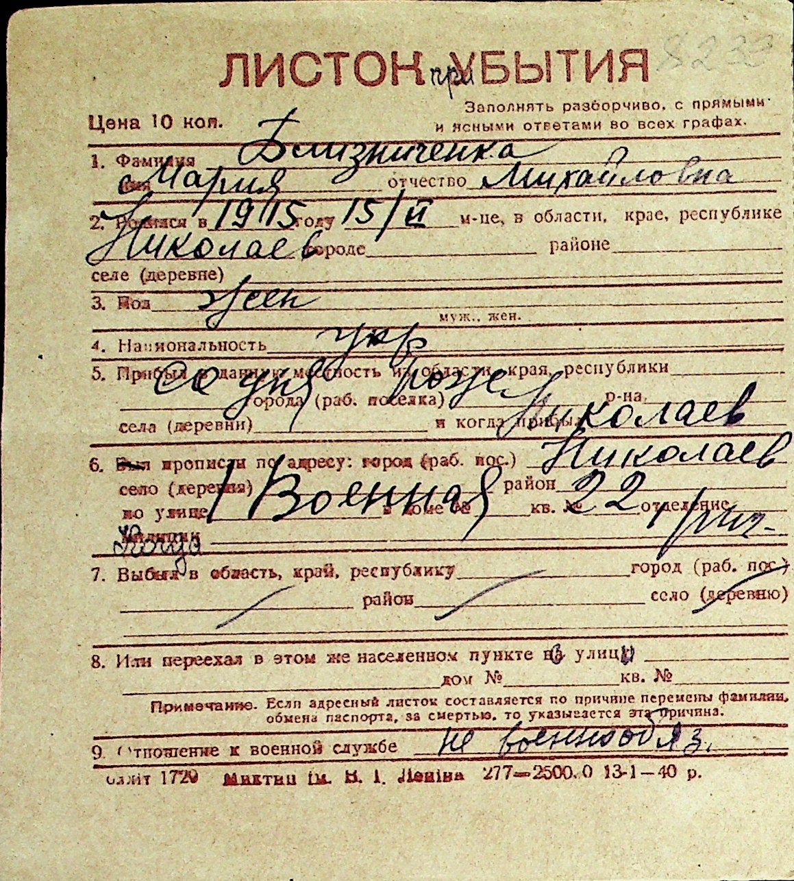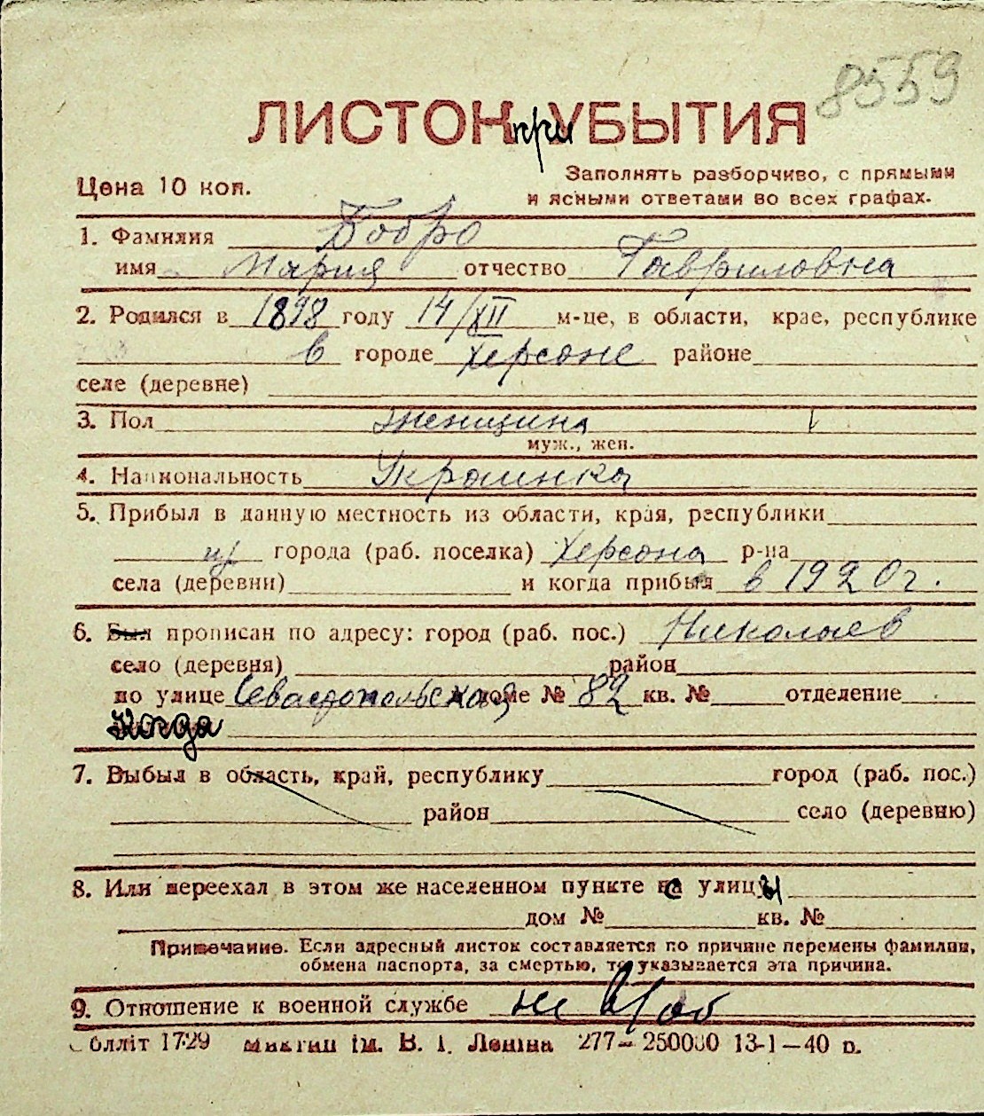 ◦ ◦ Перелік карток на осіб, які мешкали у м. Миколаїв у період окупації 1941–1944 років