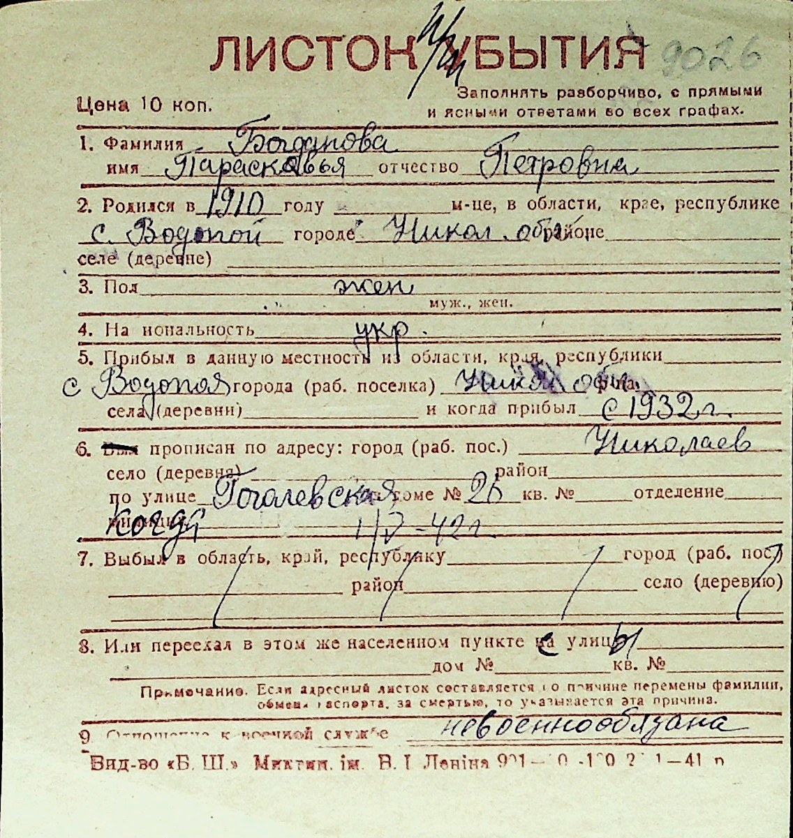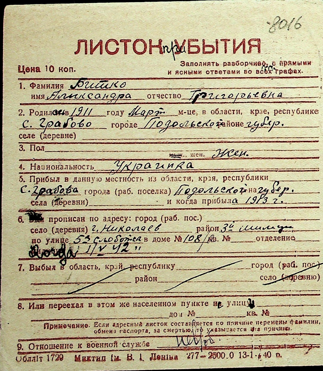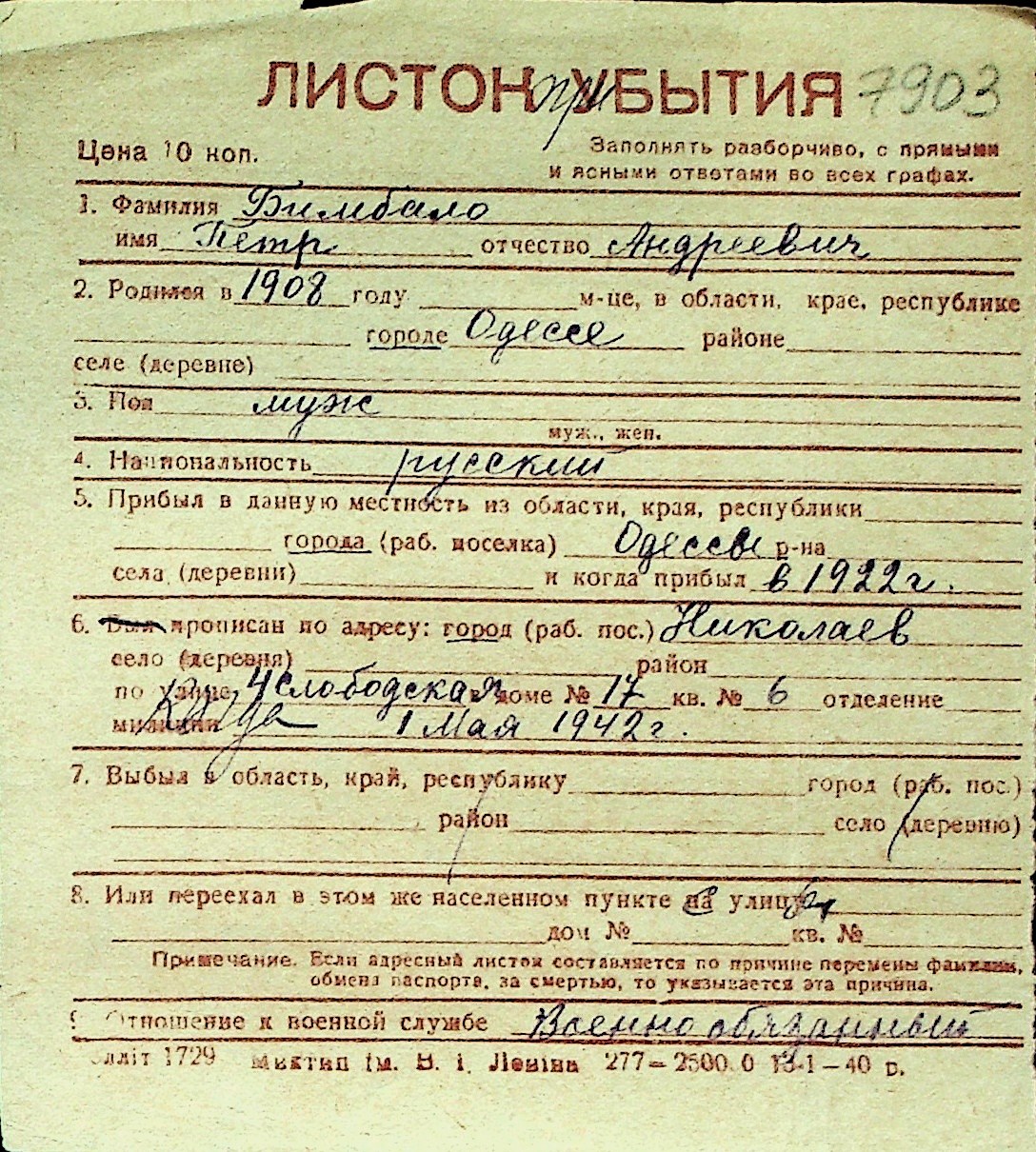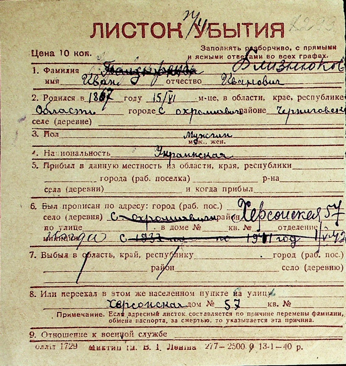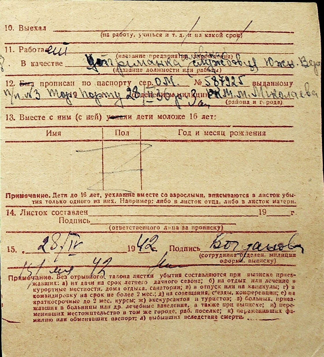 ◦ ◦ Перелік карток на осіб, які мешкали у м. Миколаїв у період окупації 1941–1944 років