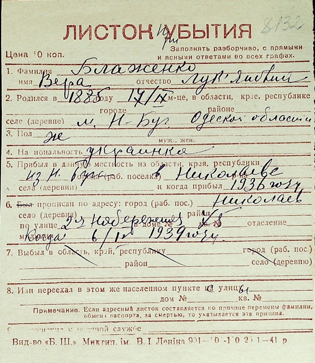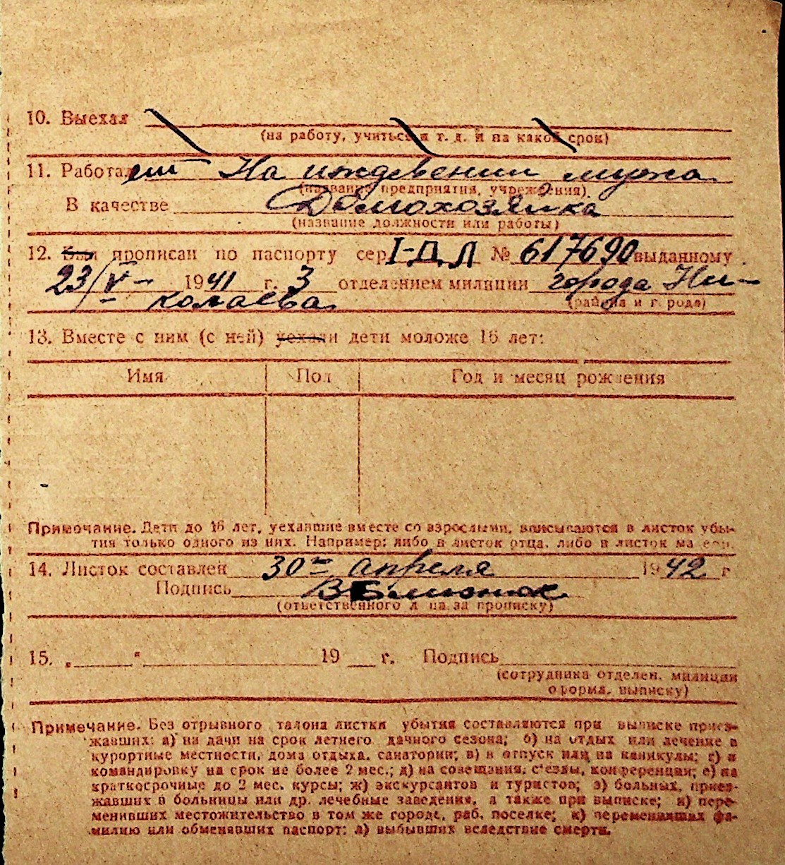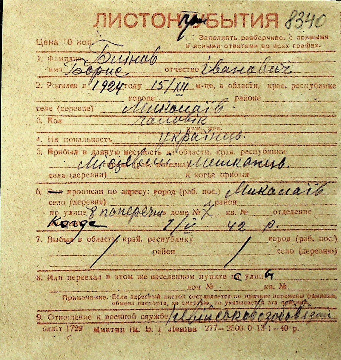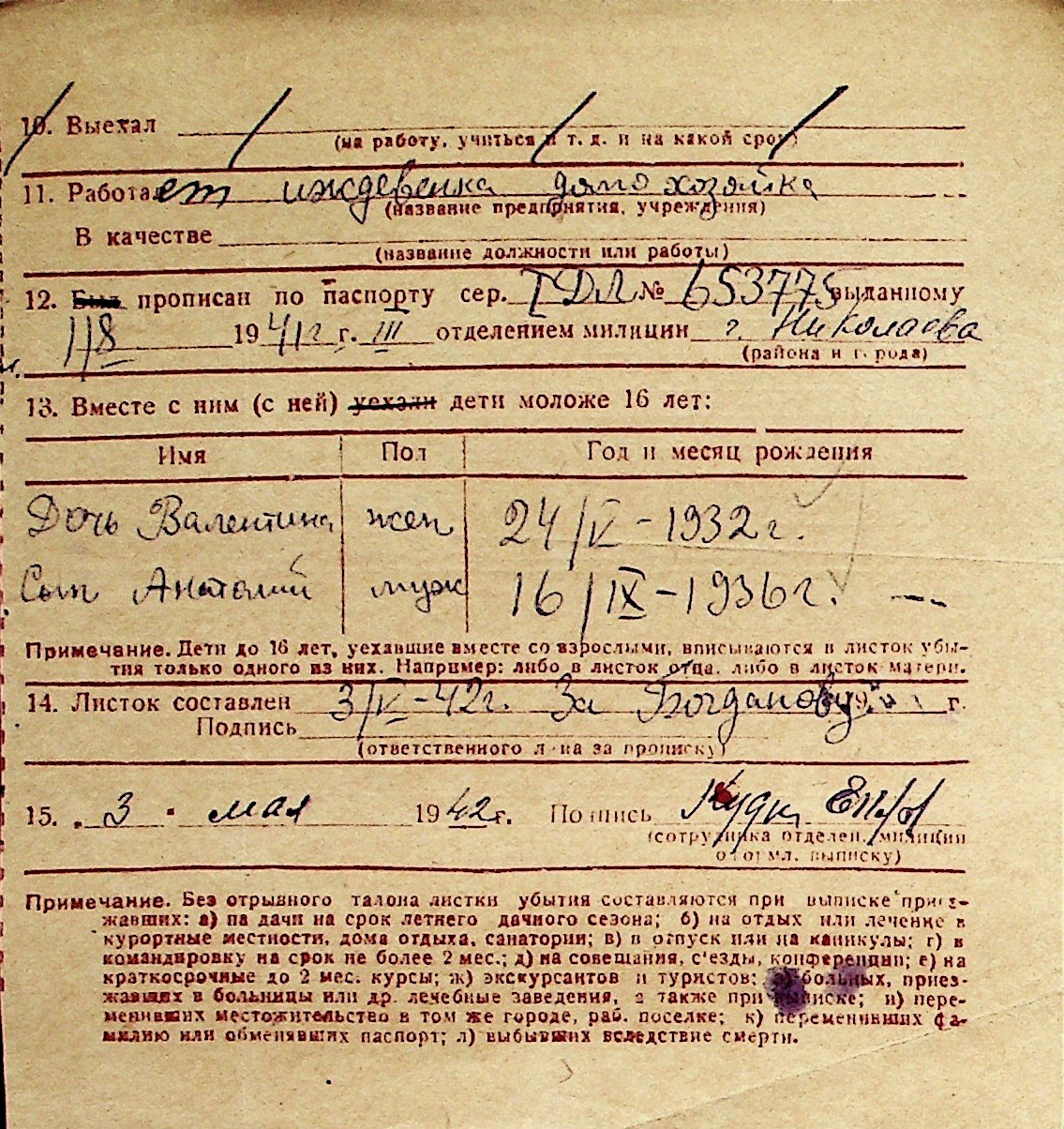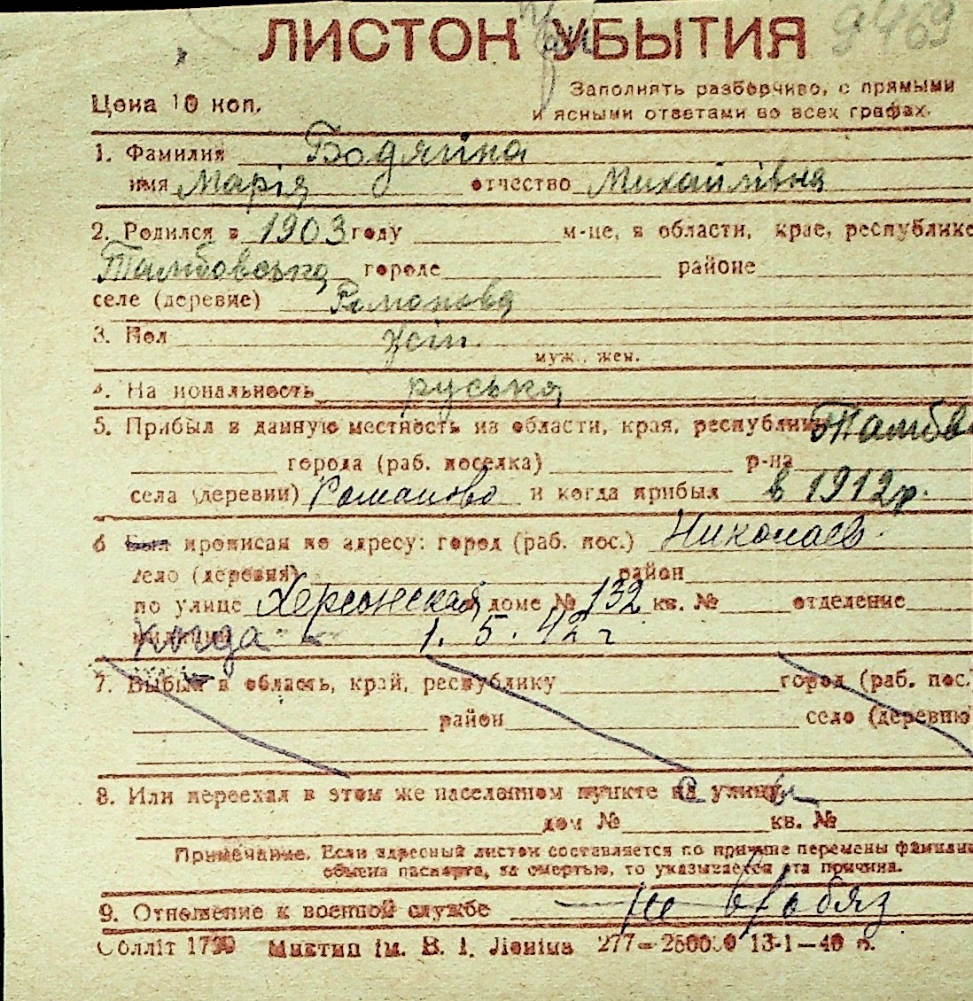 ◦ ◦ Перелік карток на осіб, які мешкали у м. Миколаїв у період окупації 1941–1944 років