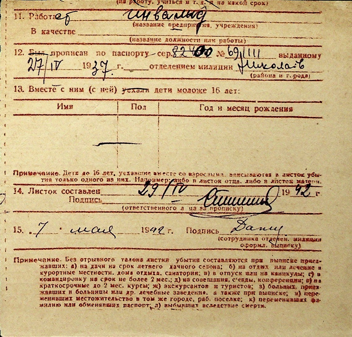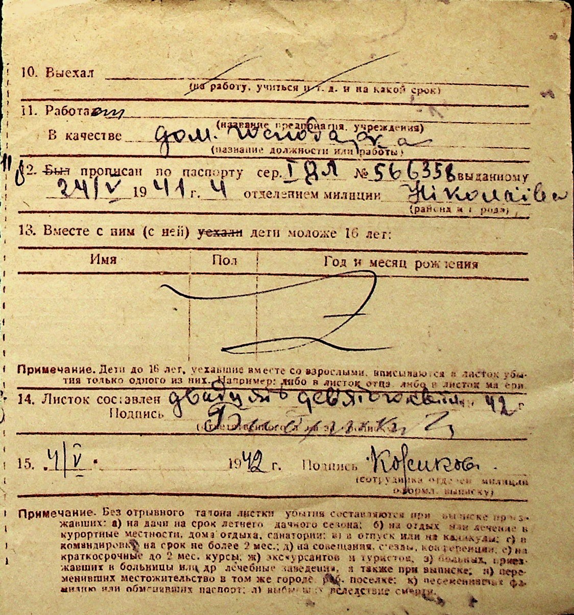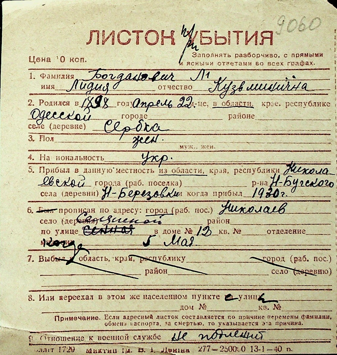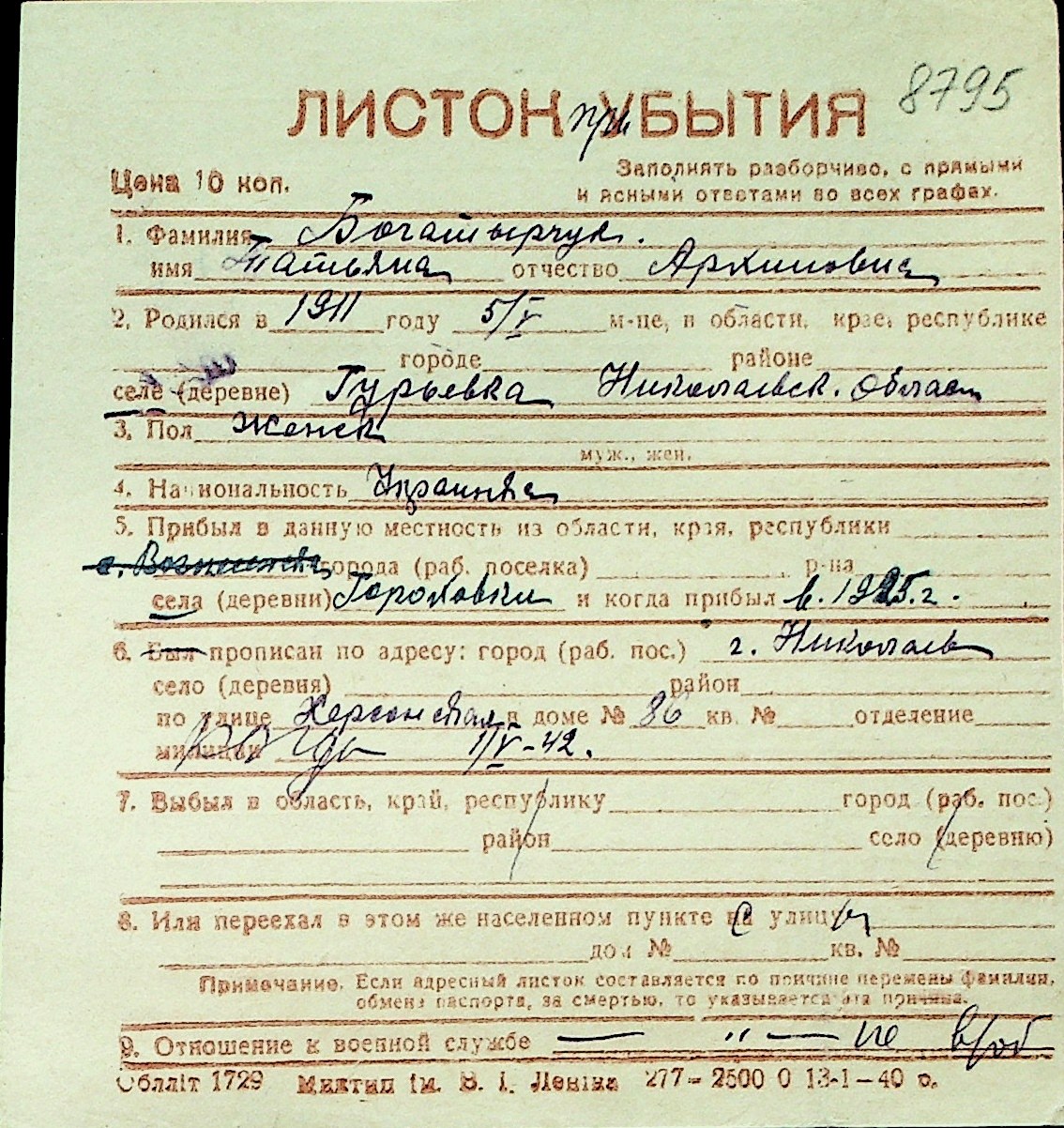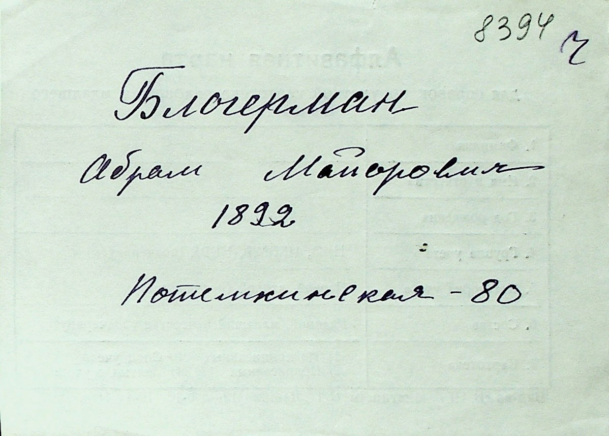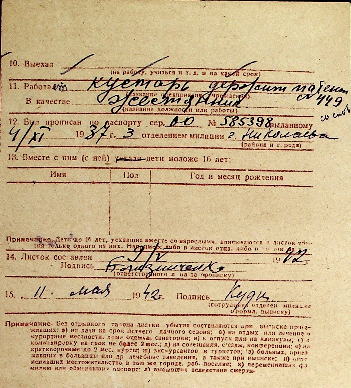 ◦ ◦ Перелік карток на осіб, які мешкали у м. Миколаїв у період окупації 1941–1944 років