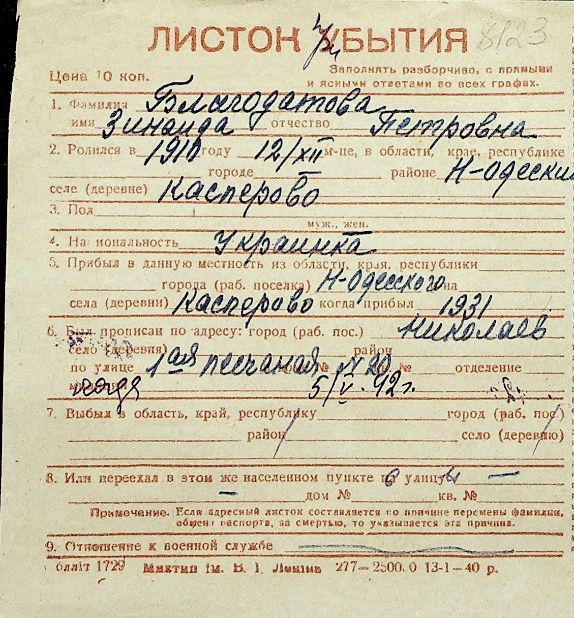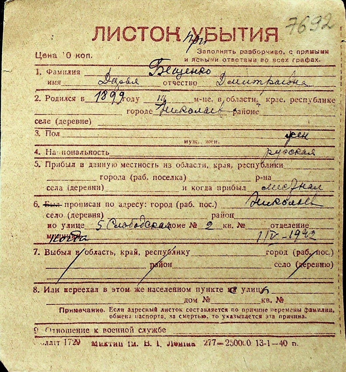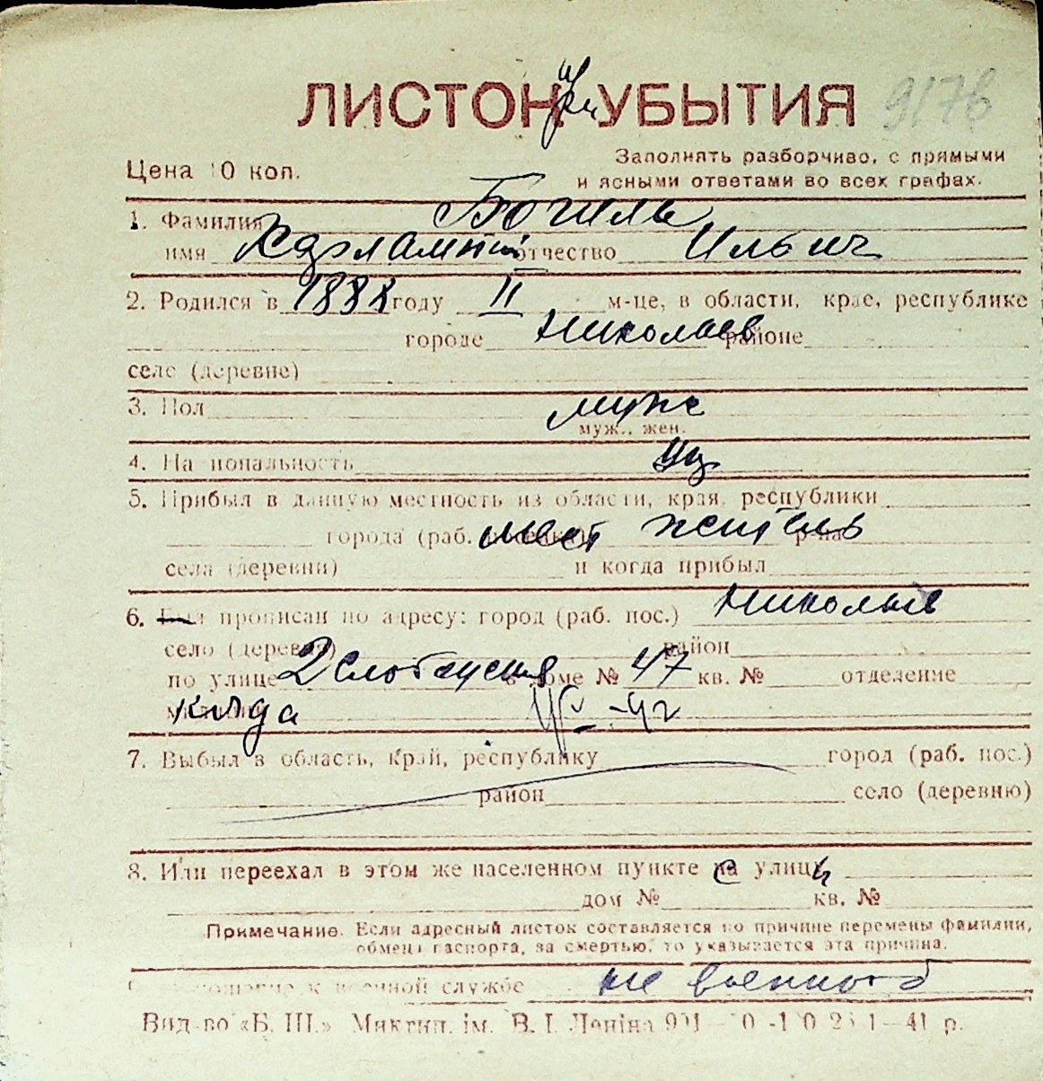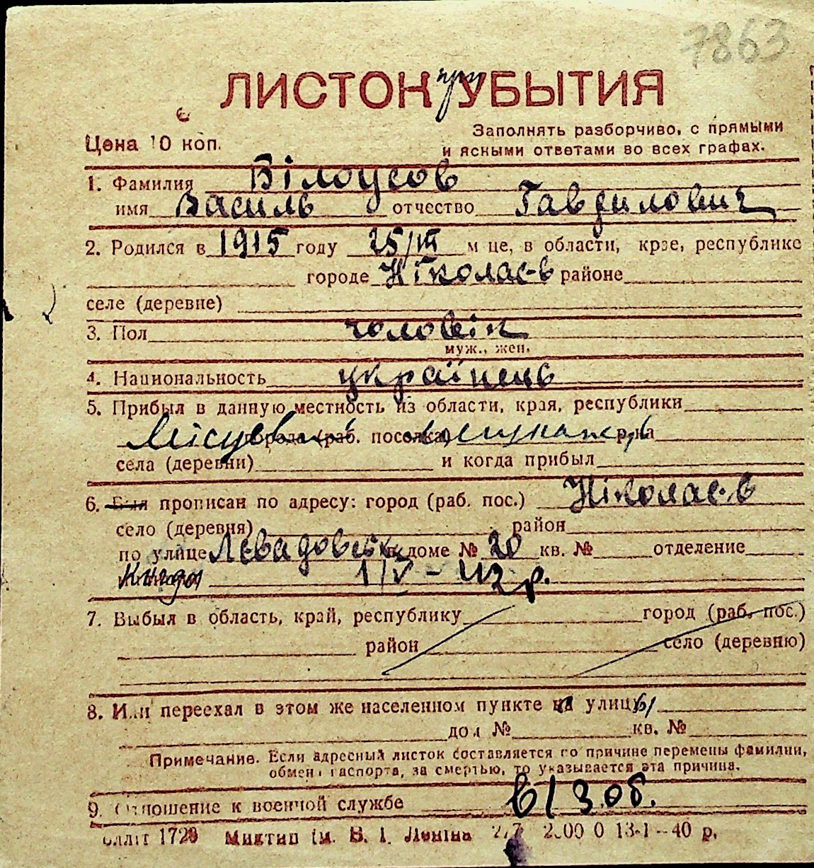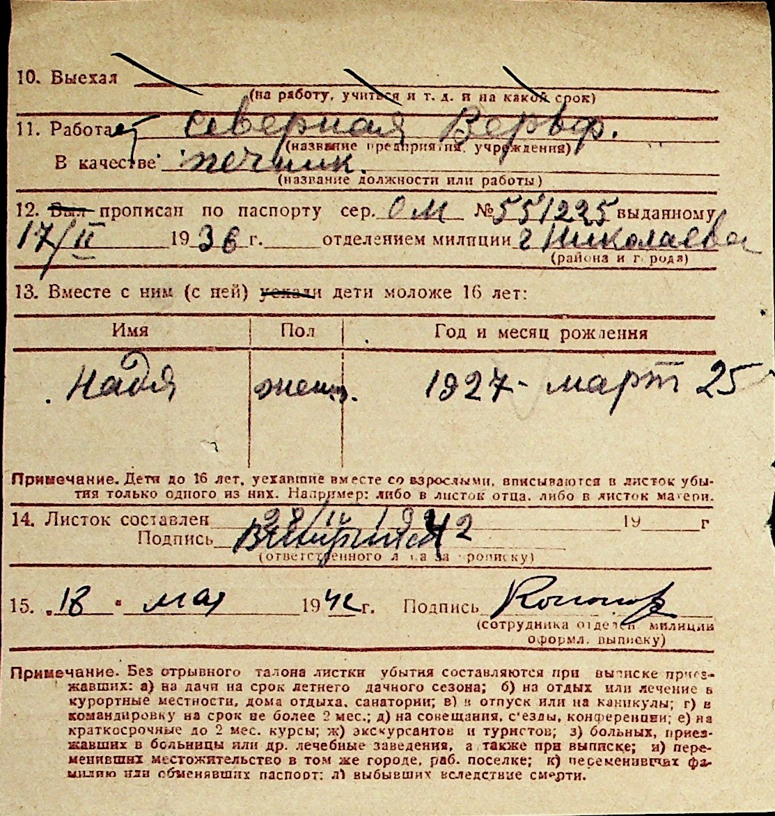 ◦ ◦ Перелік карток на осіб, які мешкали у м. Миколаїв у період окупації 1941–1944 років