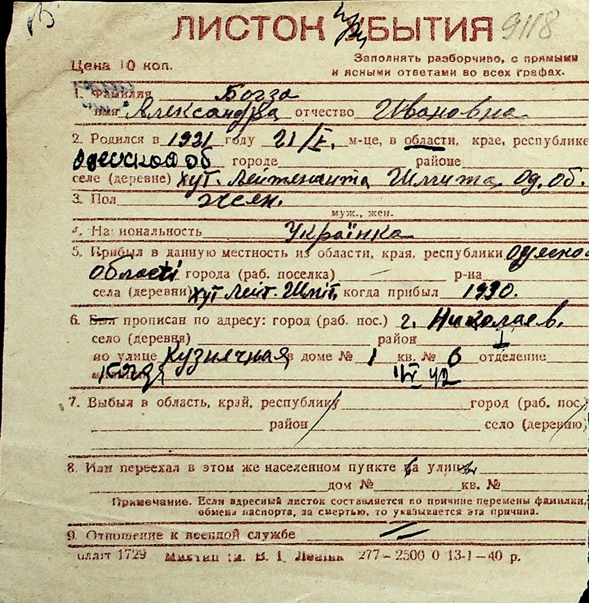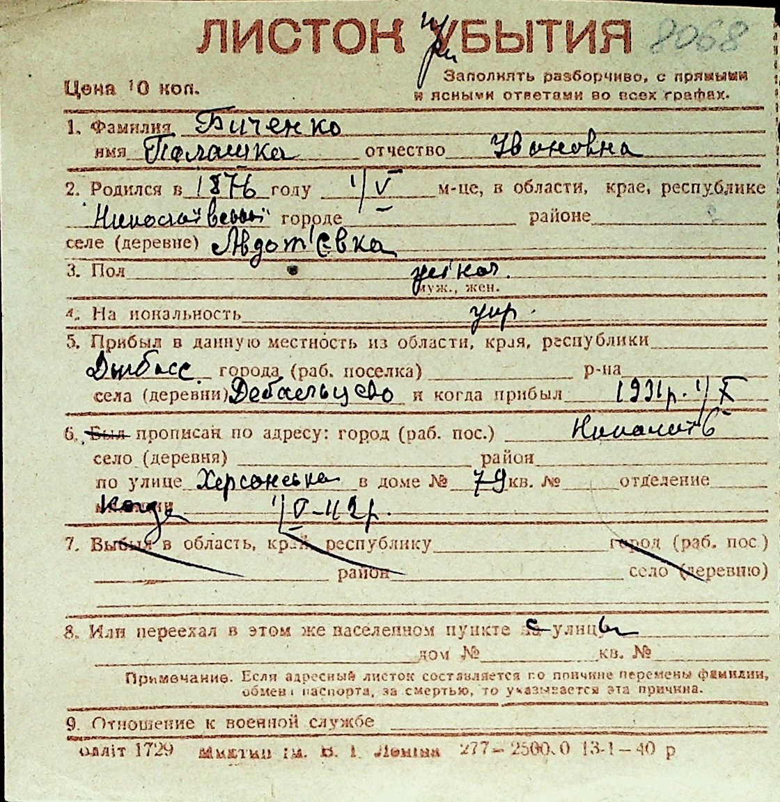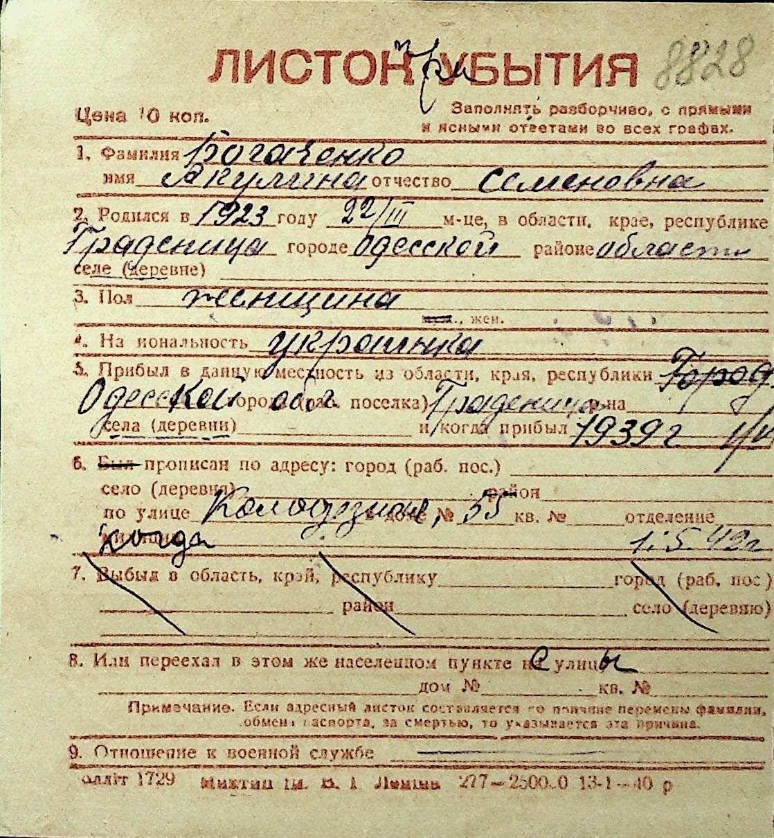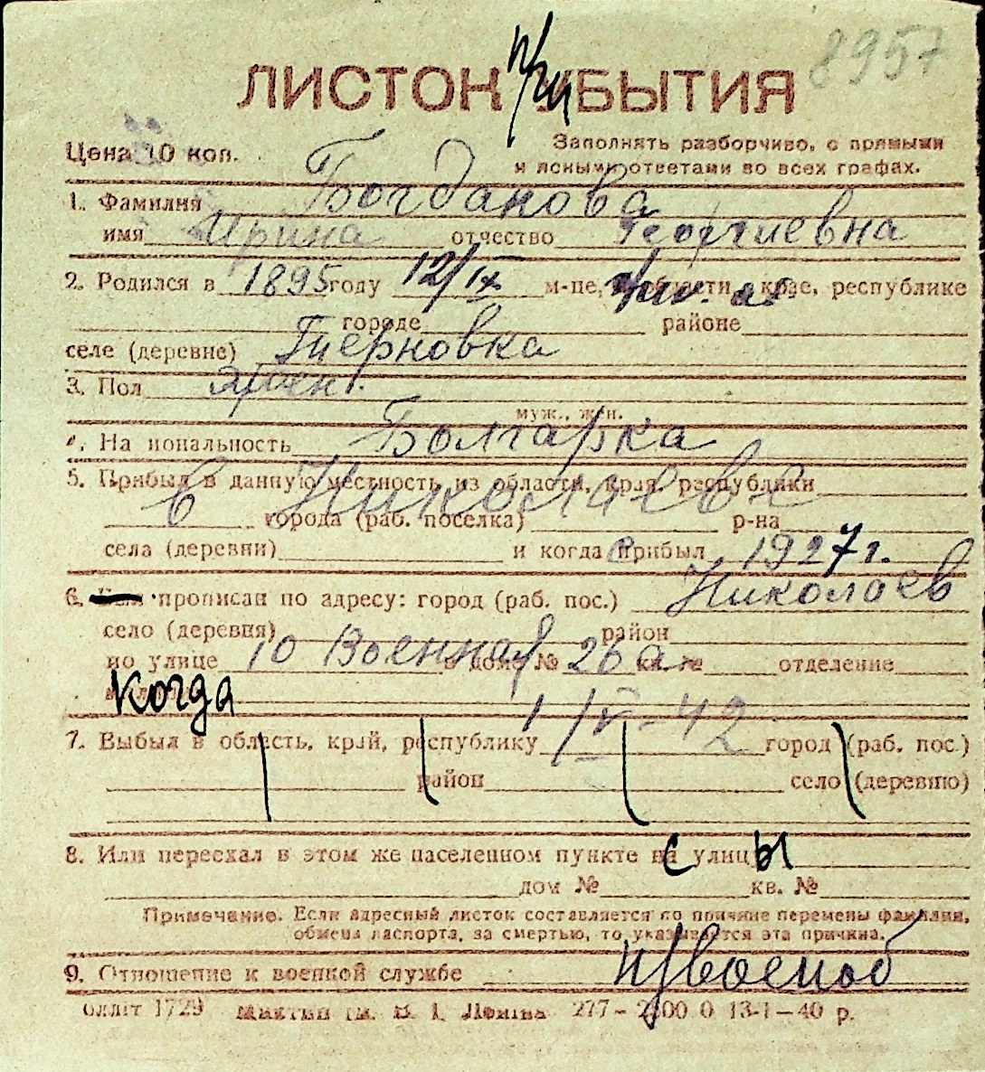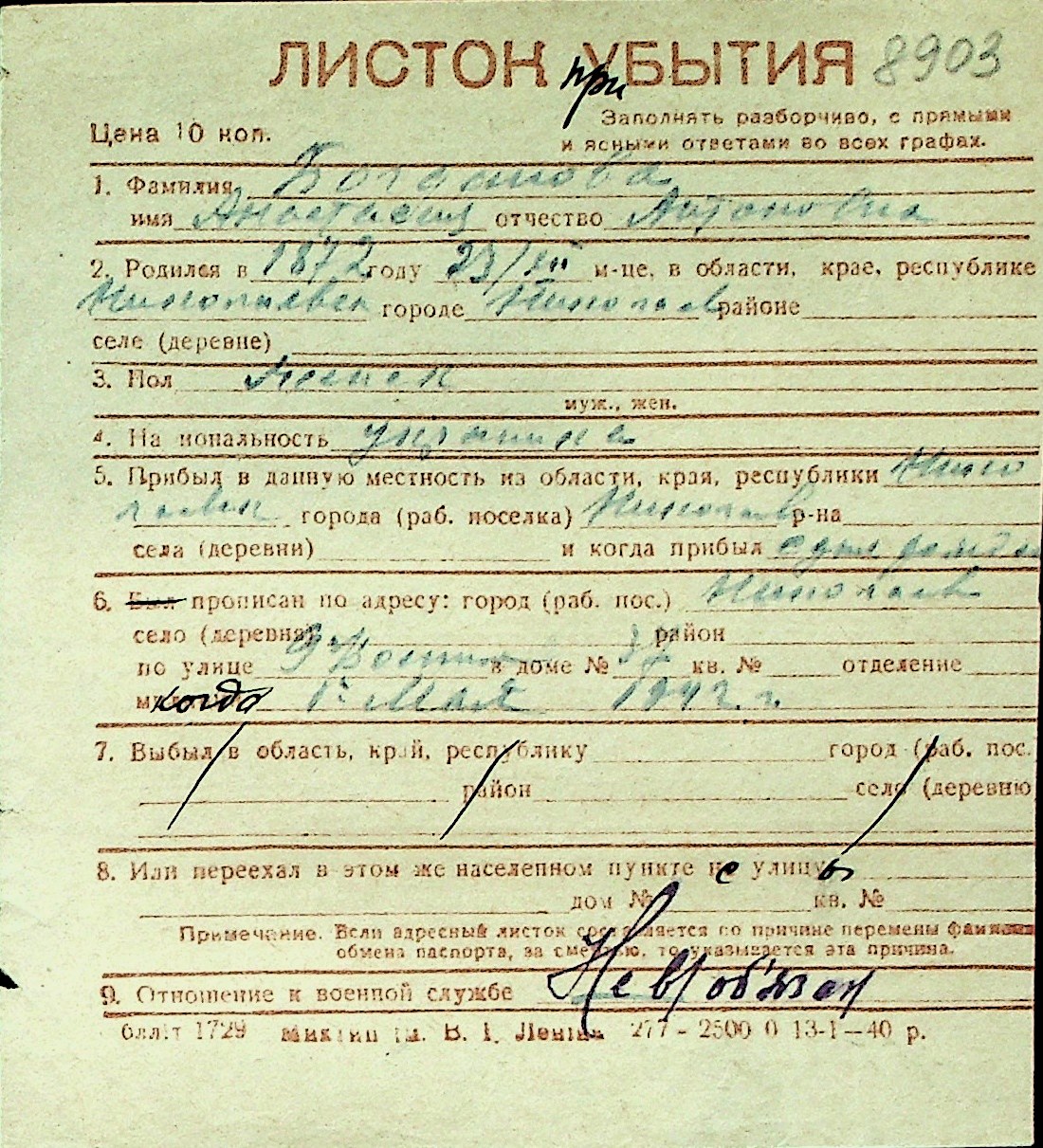 ◦ ◦ Перелік карток на осіб, які мешкали у м. Миколаїв у період окупації 1941–1944 років