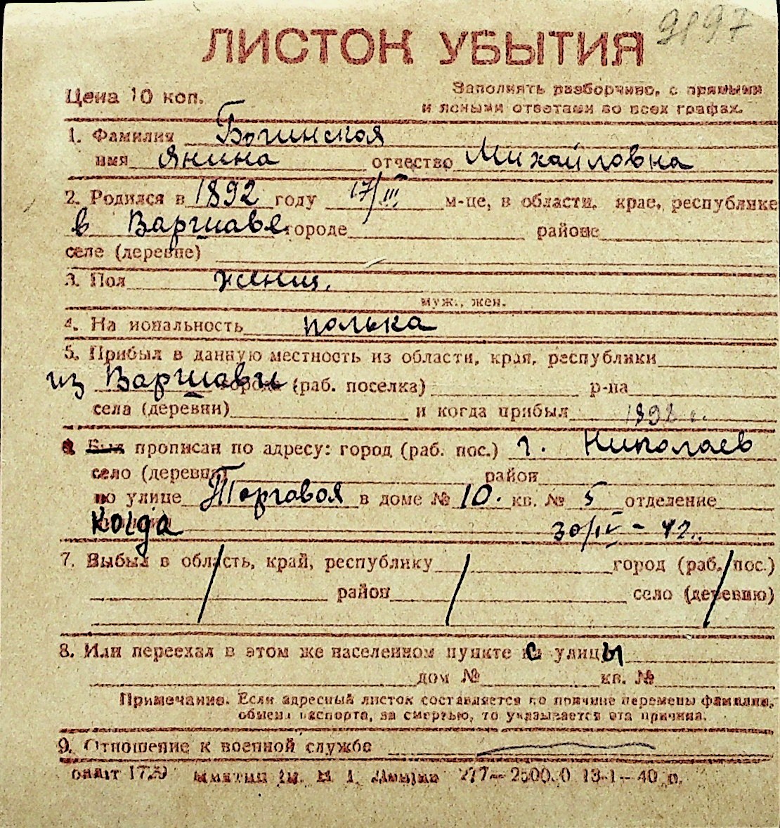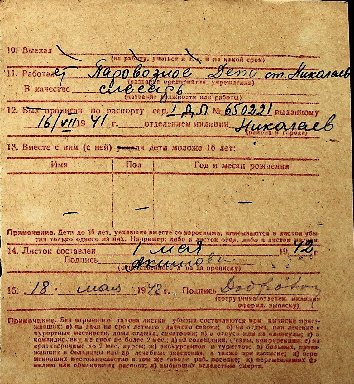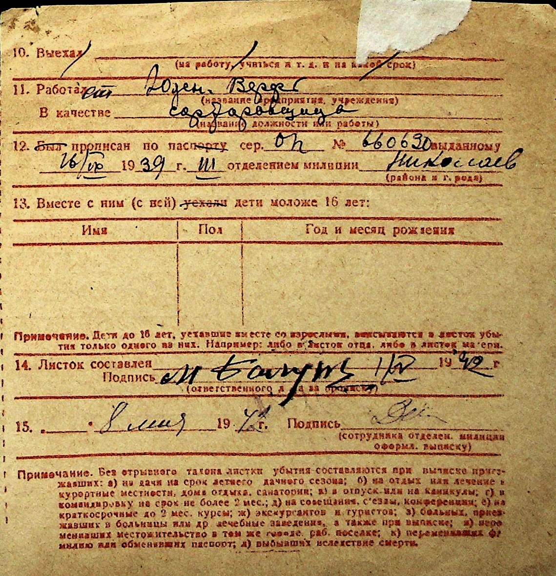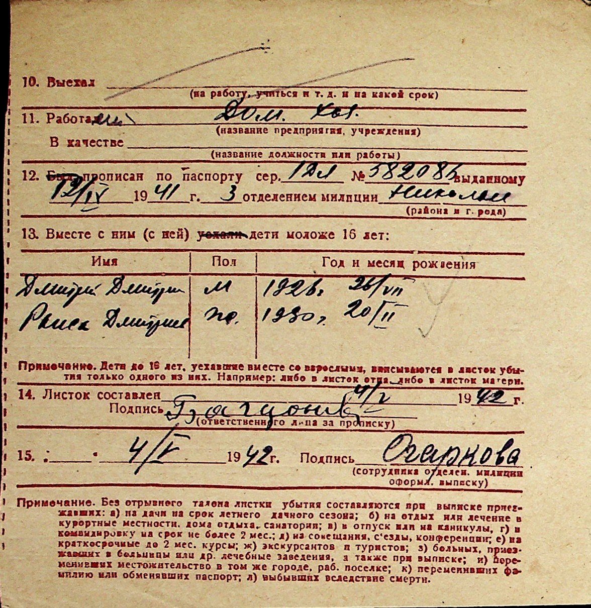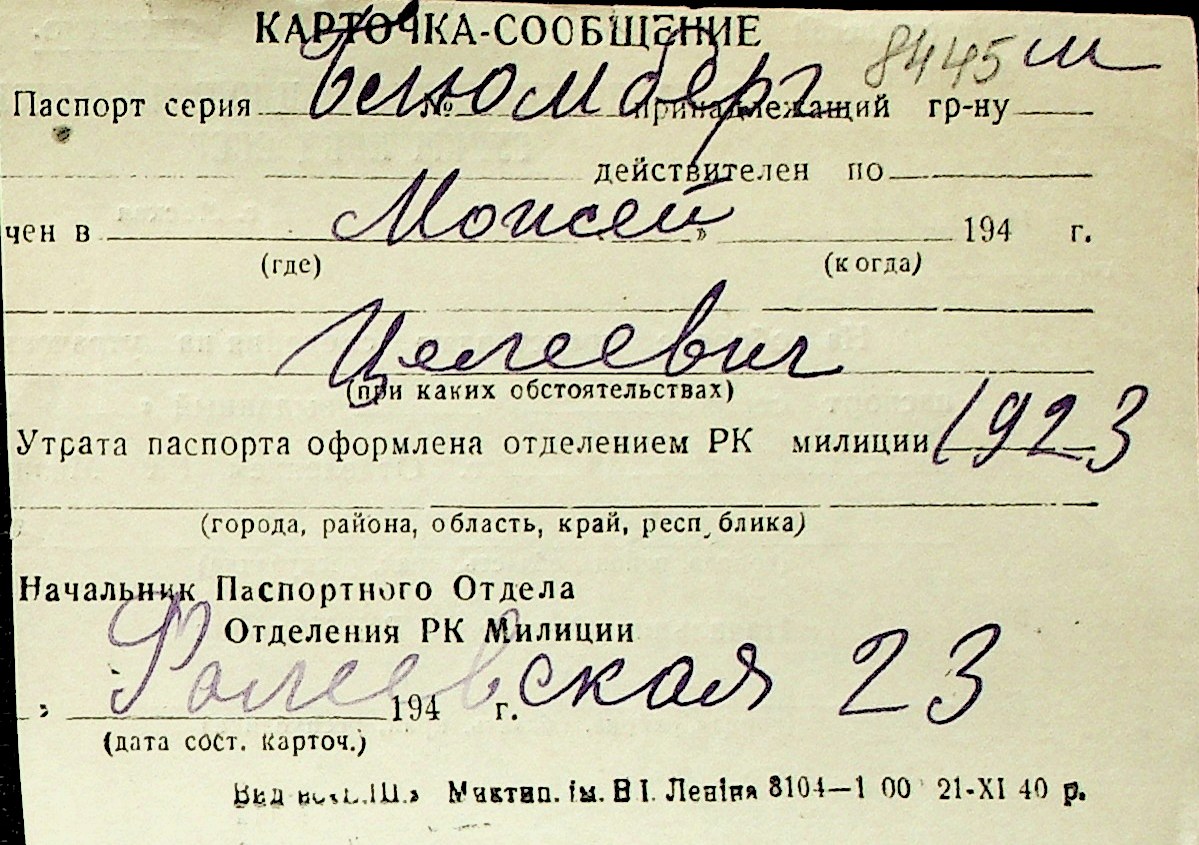 ◦ ◦ Перелік карток на осіб, які мешкали у м. Миколаїв у період окупації 1941–1944 років