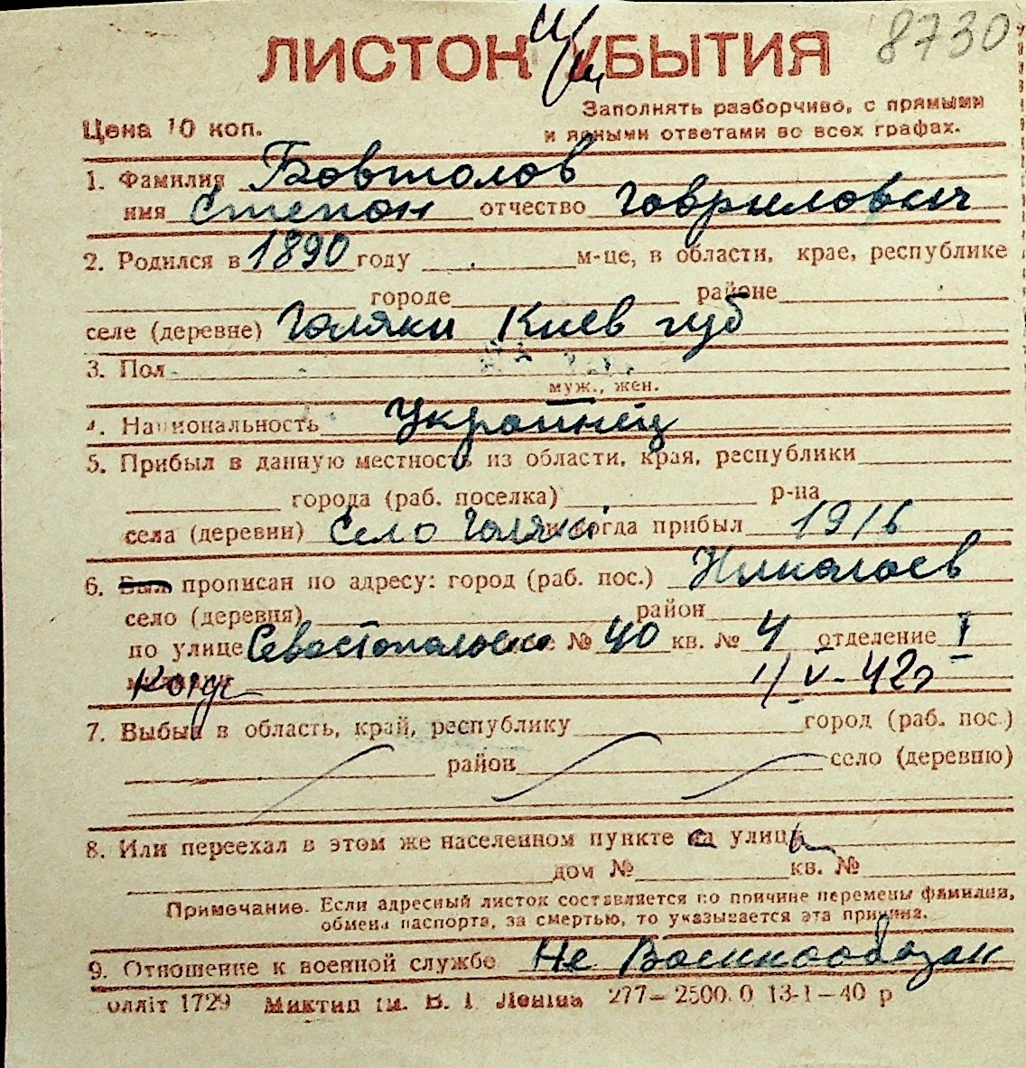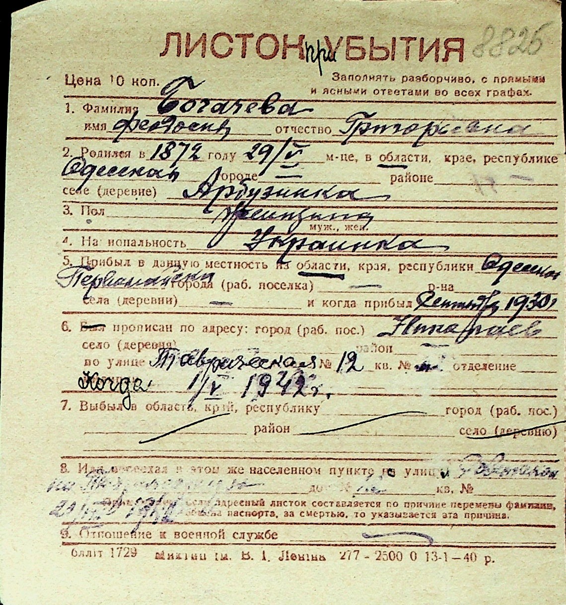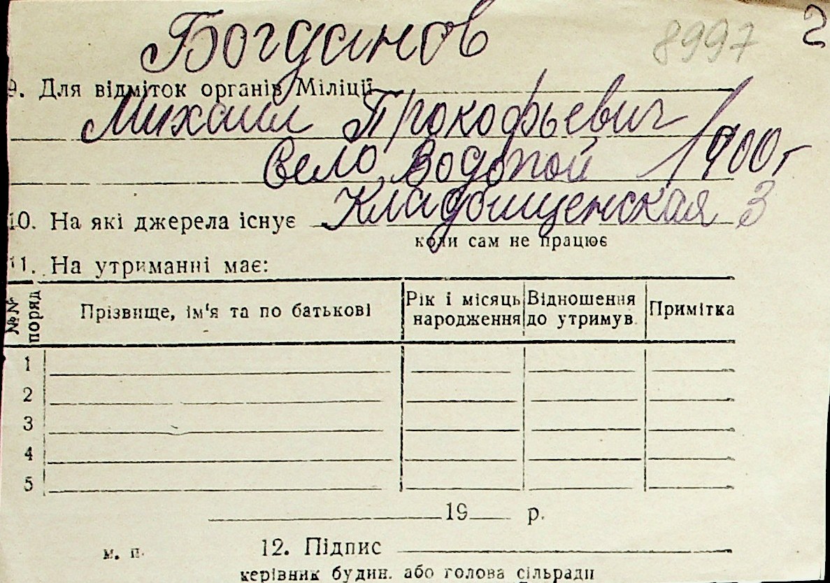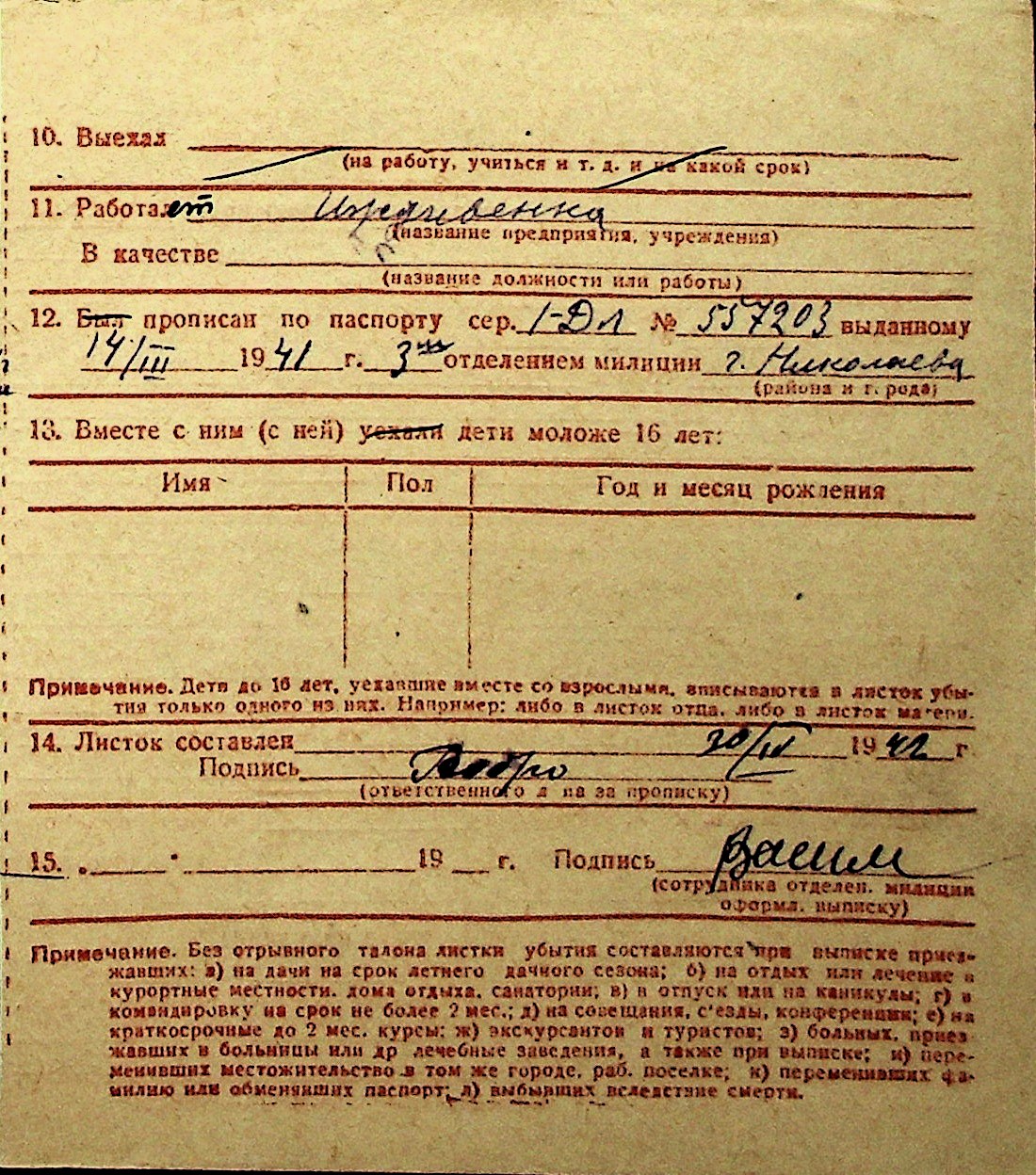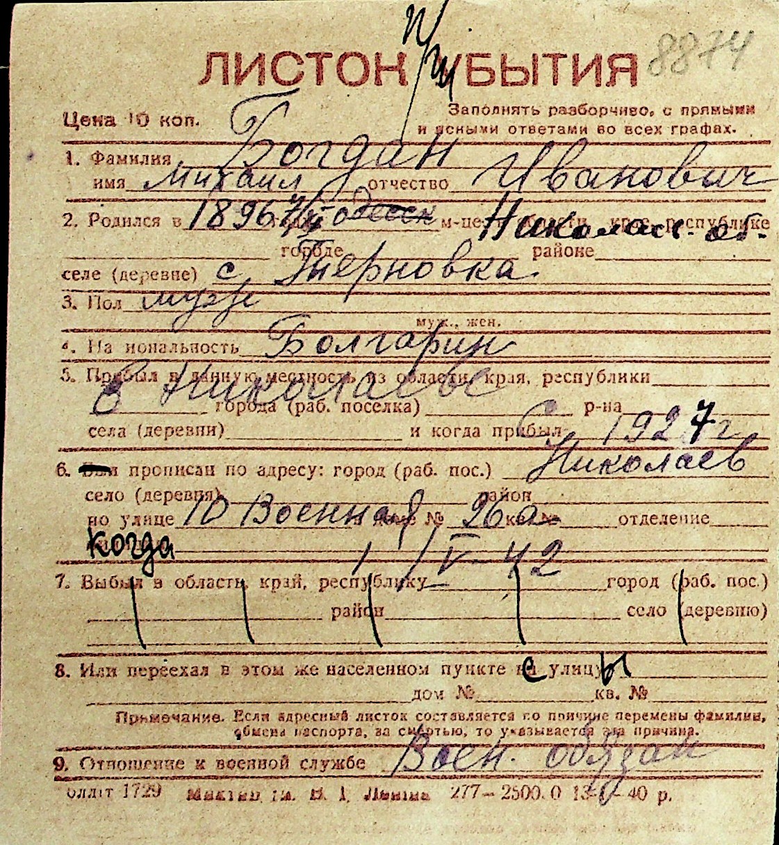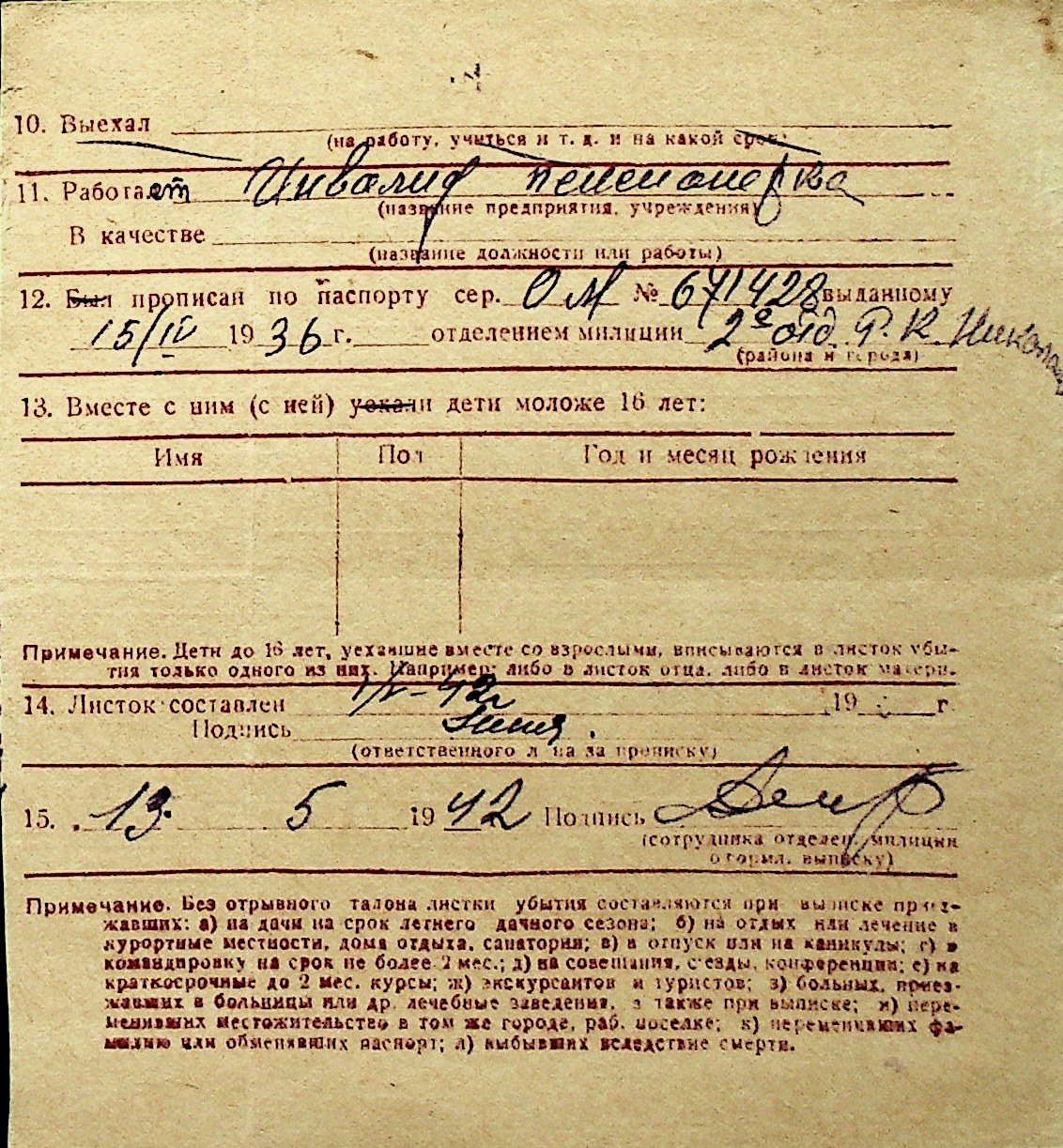 ◦ ◦ Перелік карток на осіб, які мешкали у м. Миколаїв у період окупації 1941–1944 років