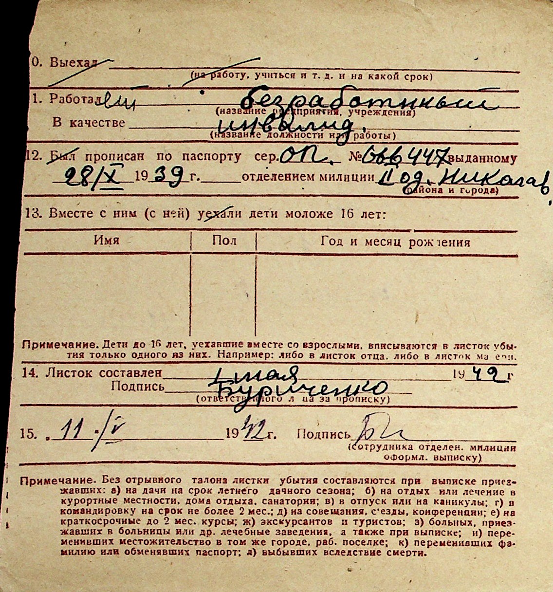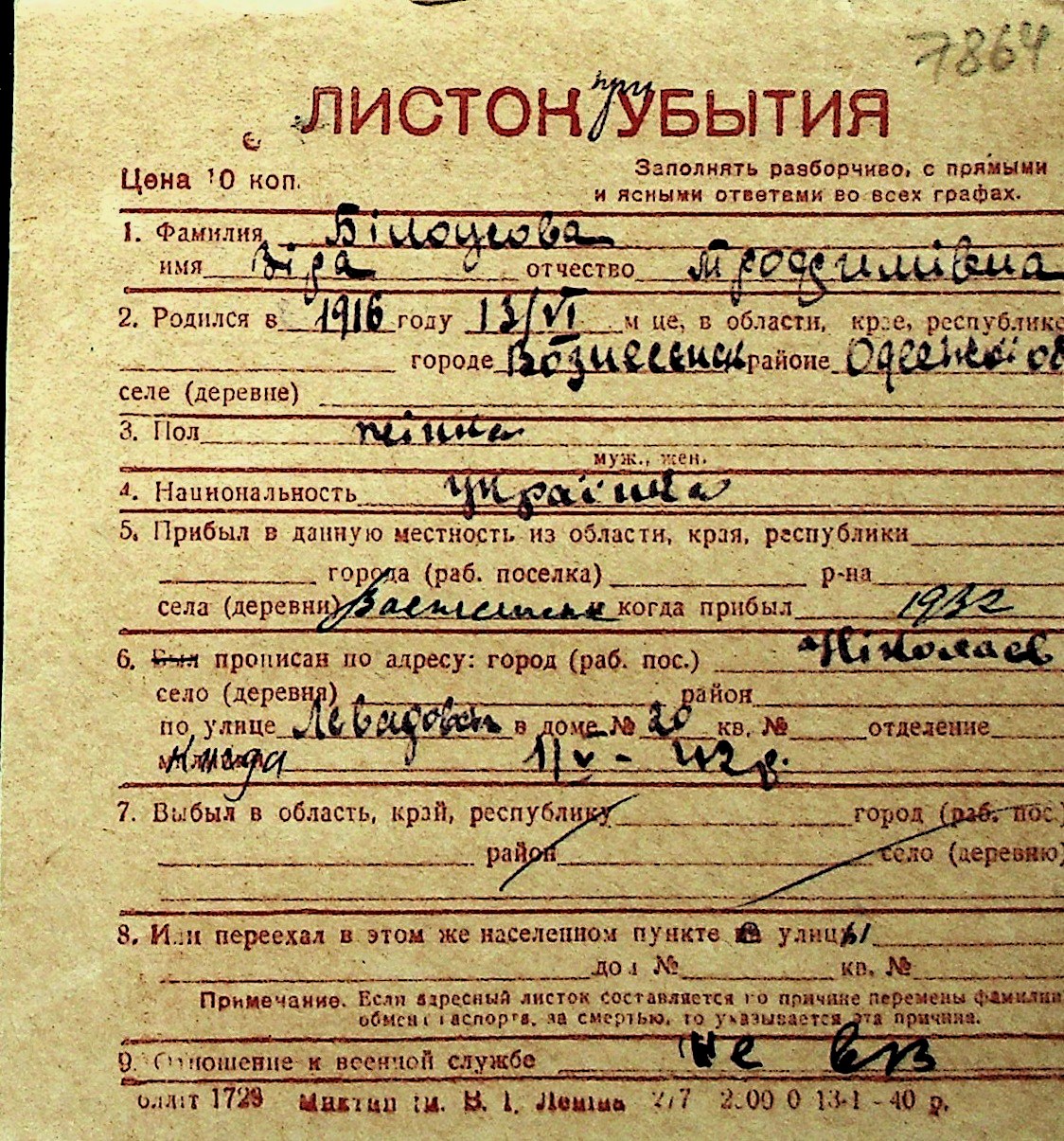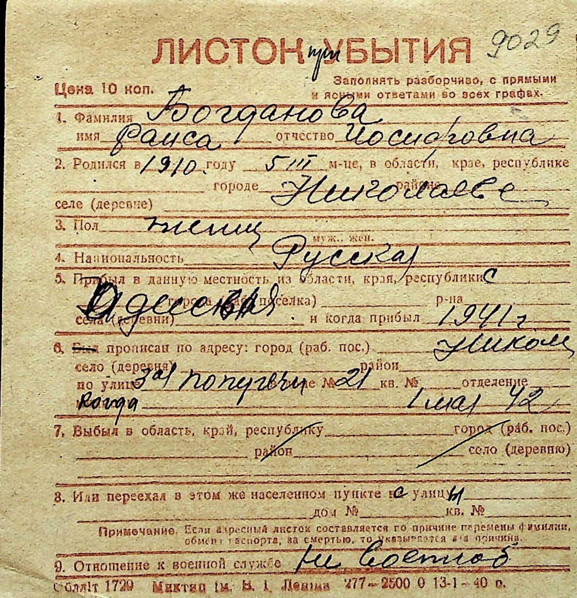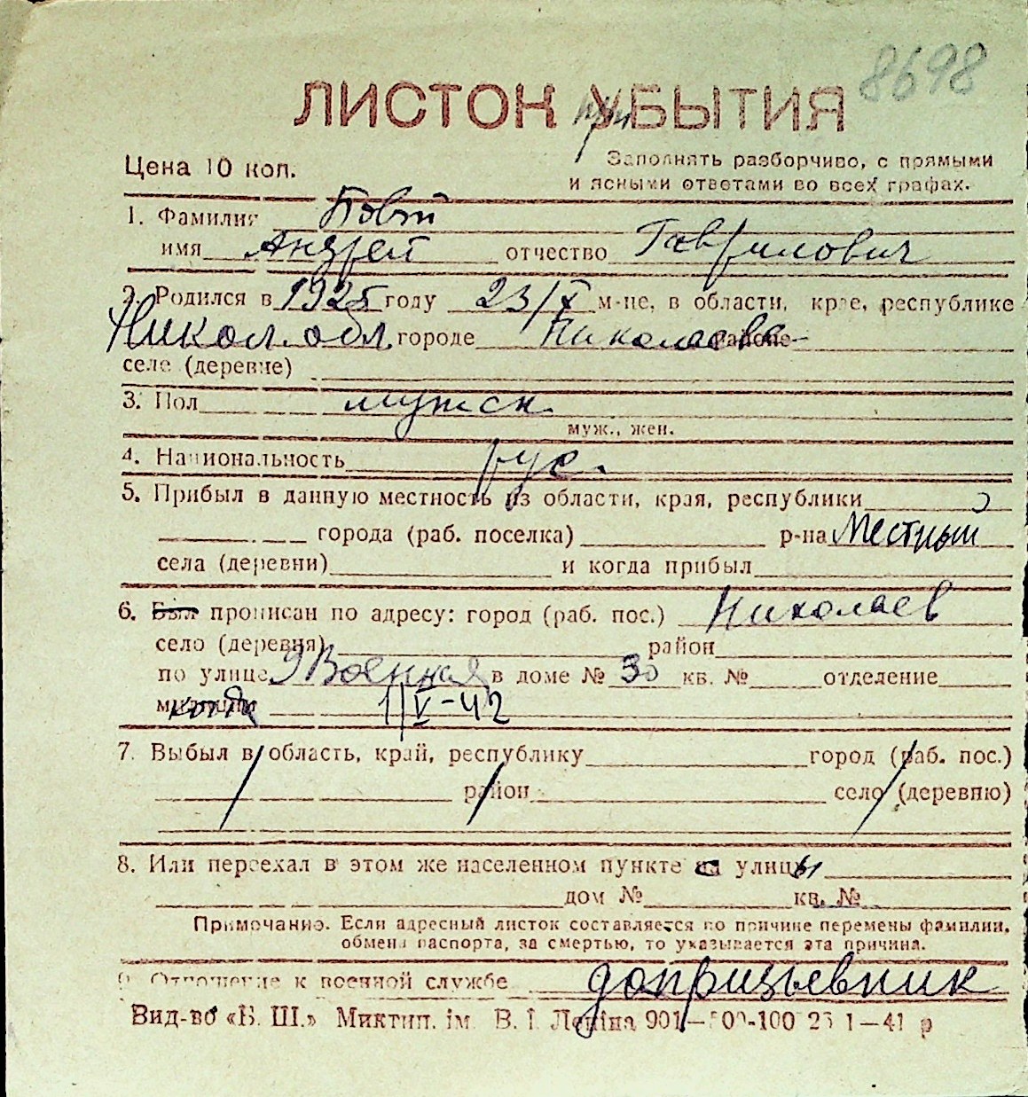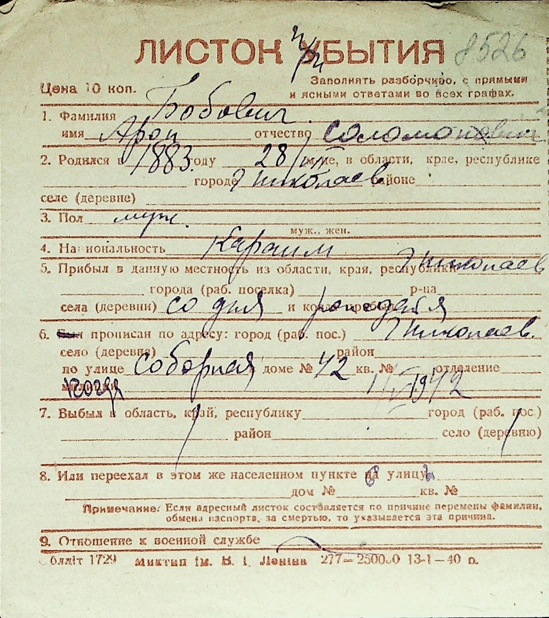 ◦ ◦ Перелік карток на осіб, які мешкали у м. Миколаїв у період окупації 1941–1944 років