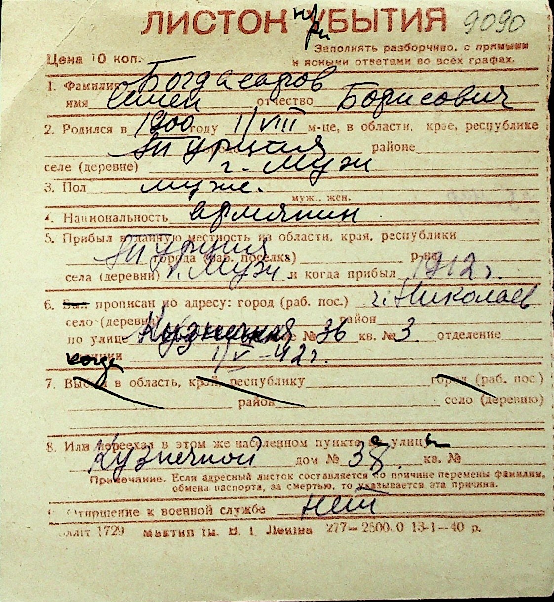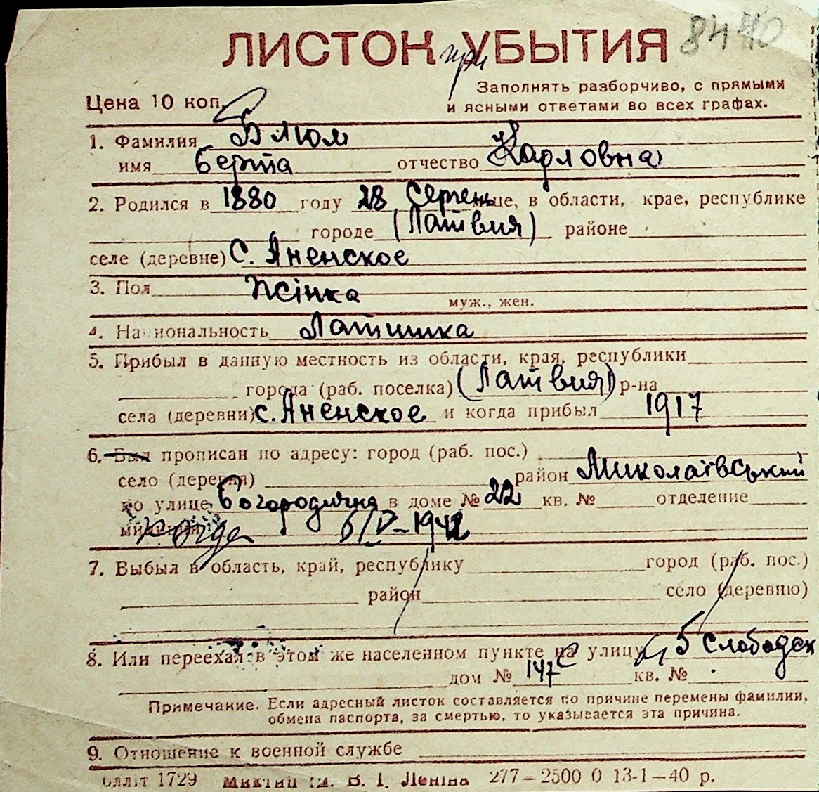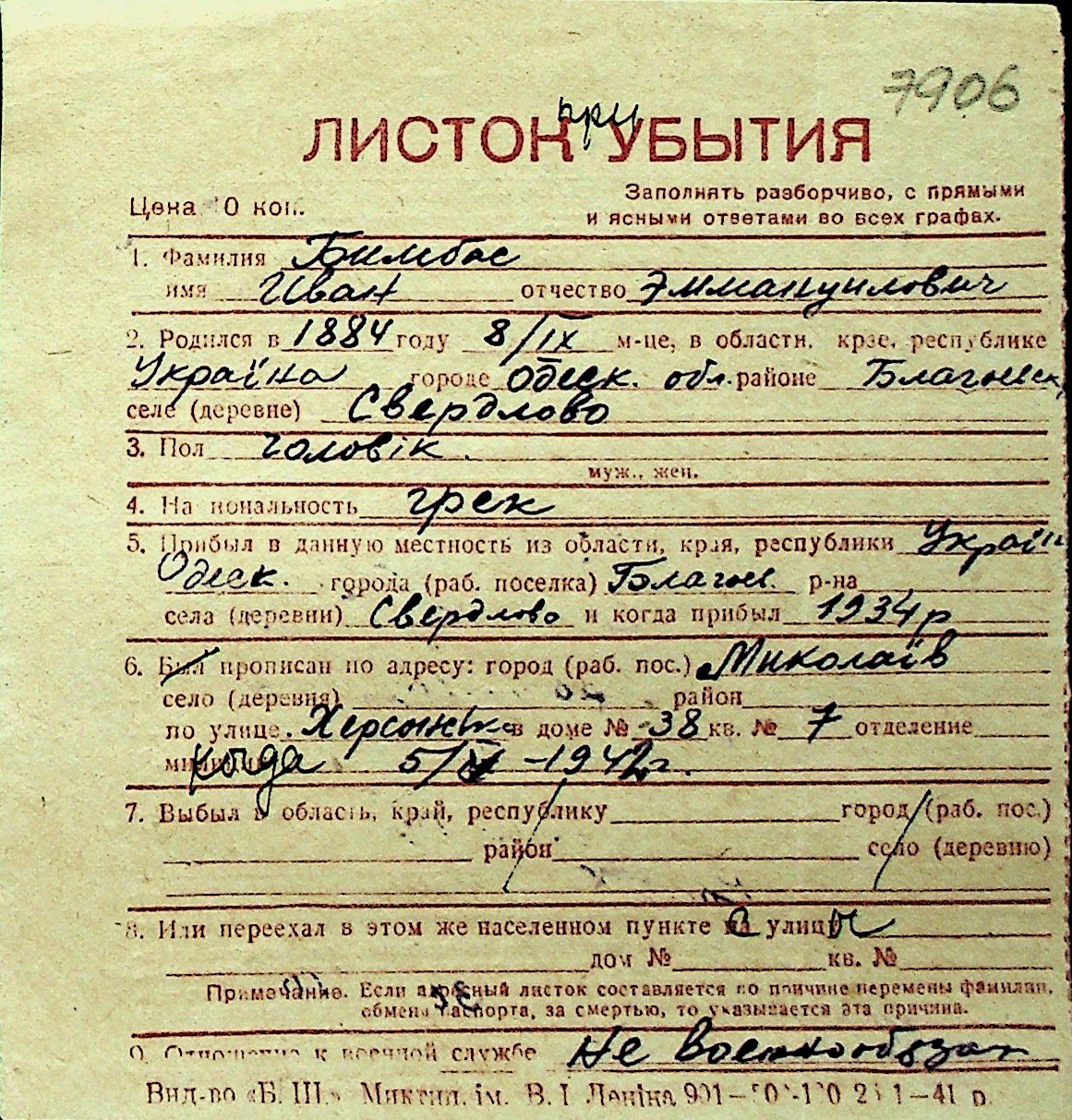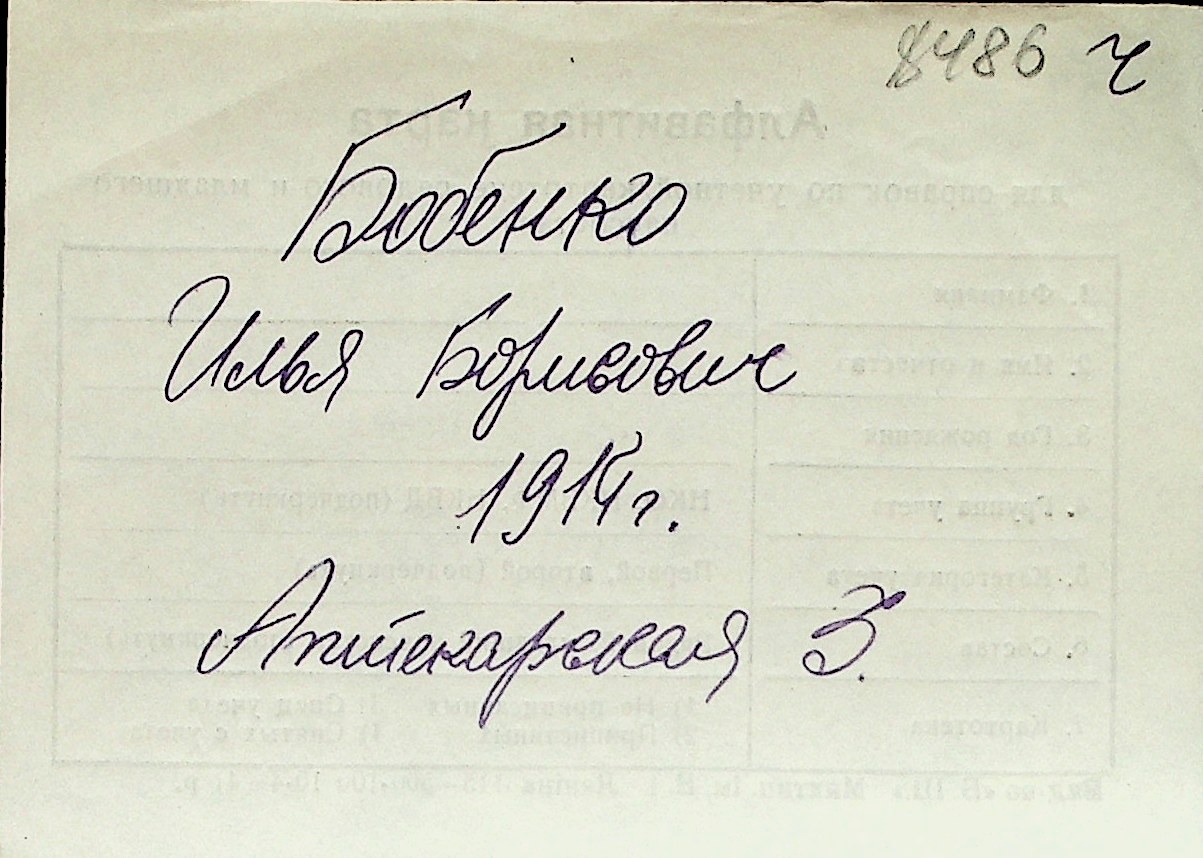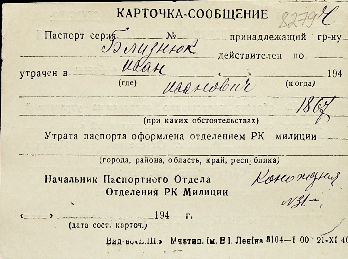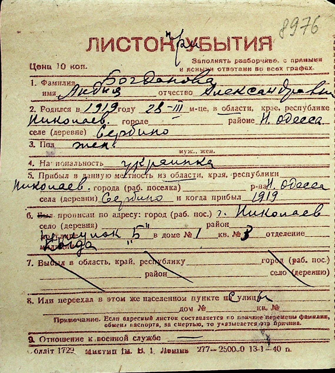 ◦ ◦ Перелік карток на осіб, які мешкали у м. Миколаїв у період окупації 1941–1944 років