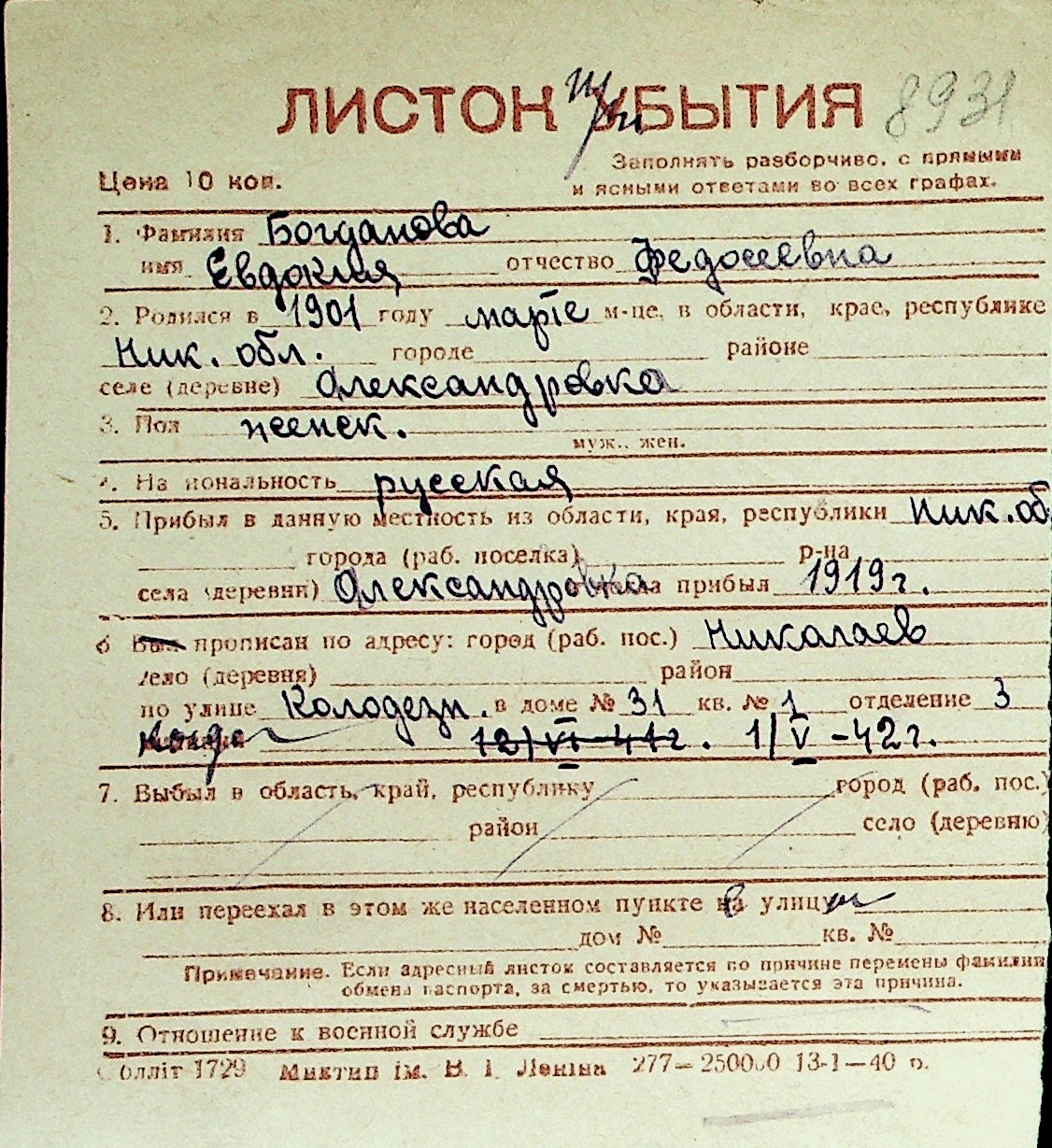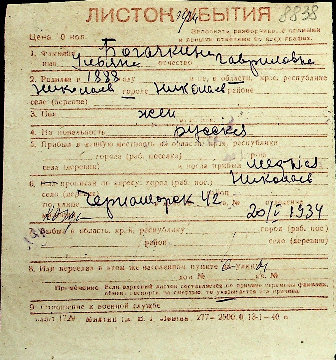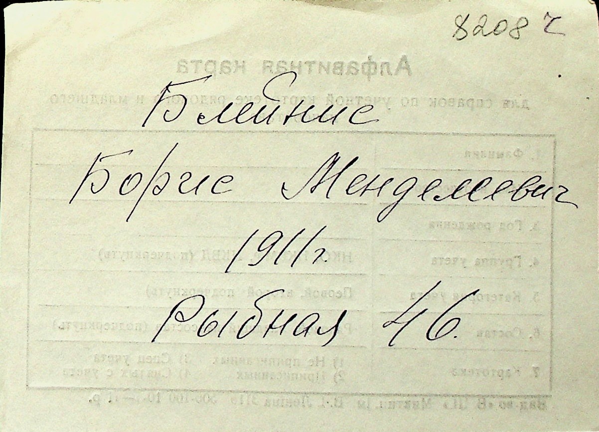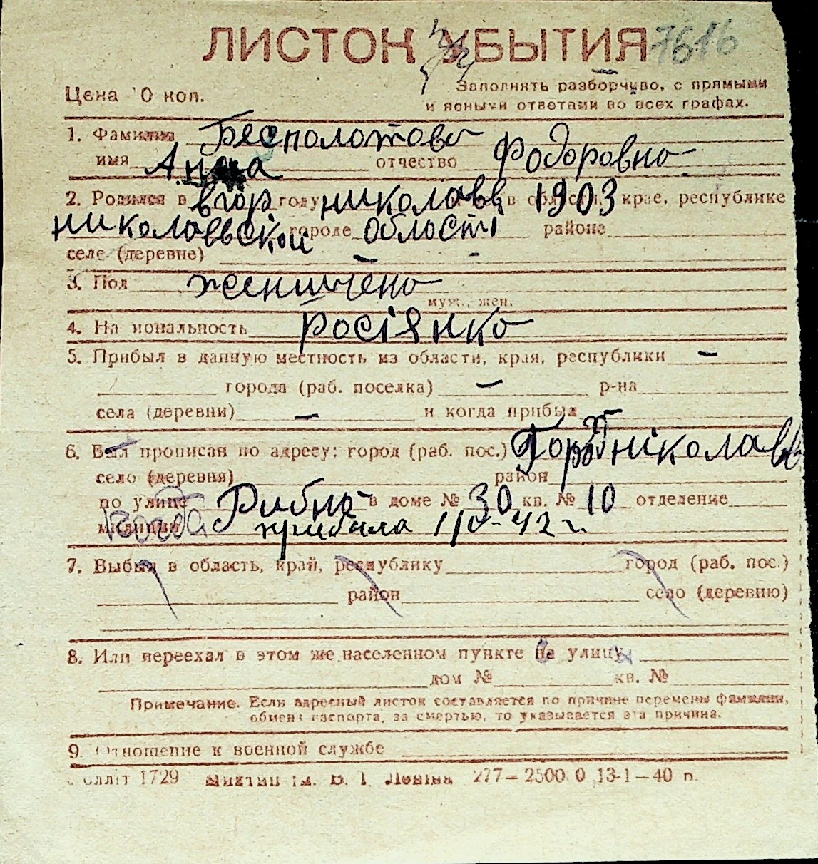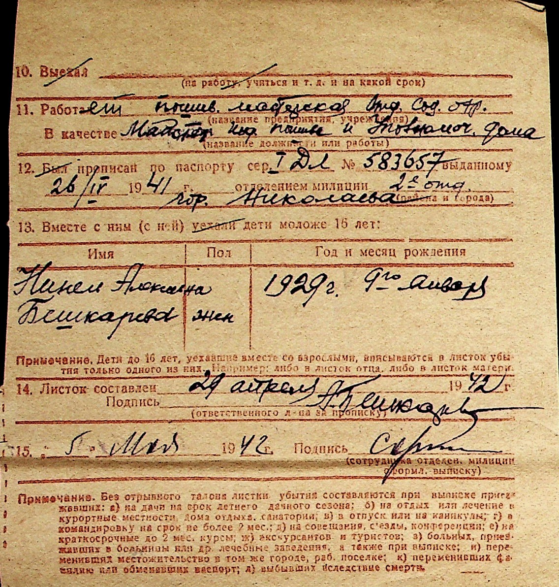 ◦ ◦ Перелік карток на осіб, які мешкали у м. Миколаїв у період окупації 1941–1944 років