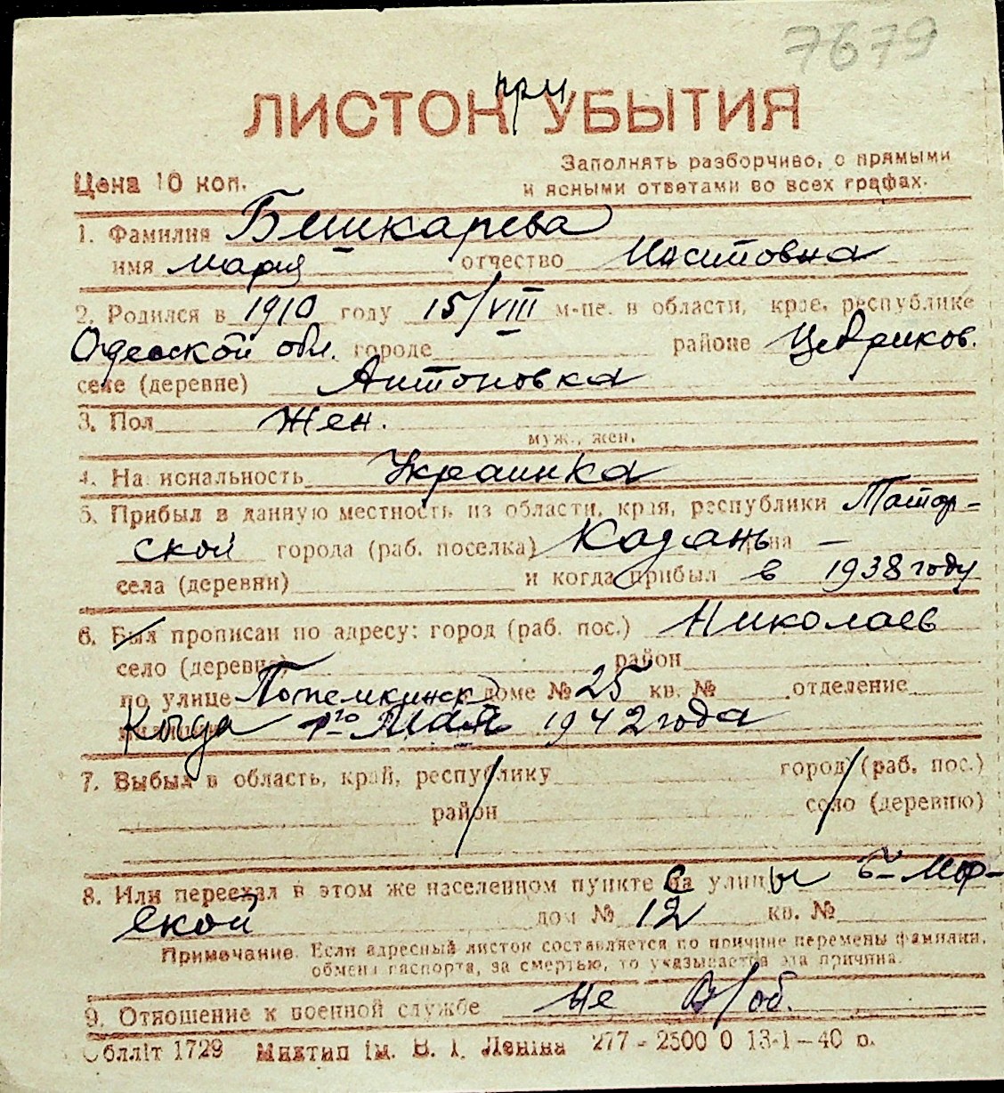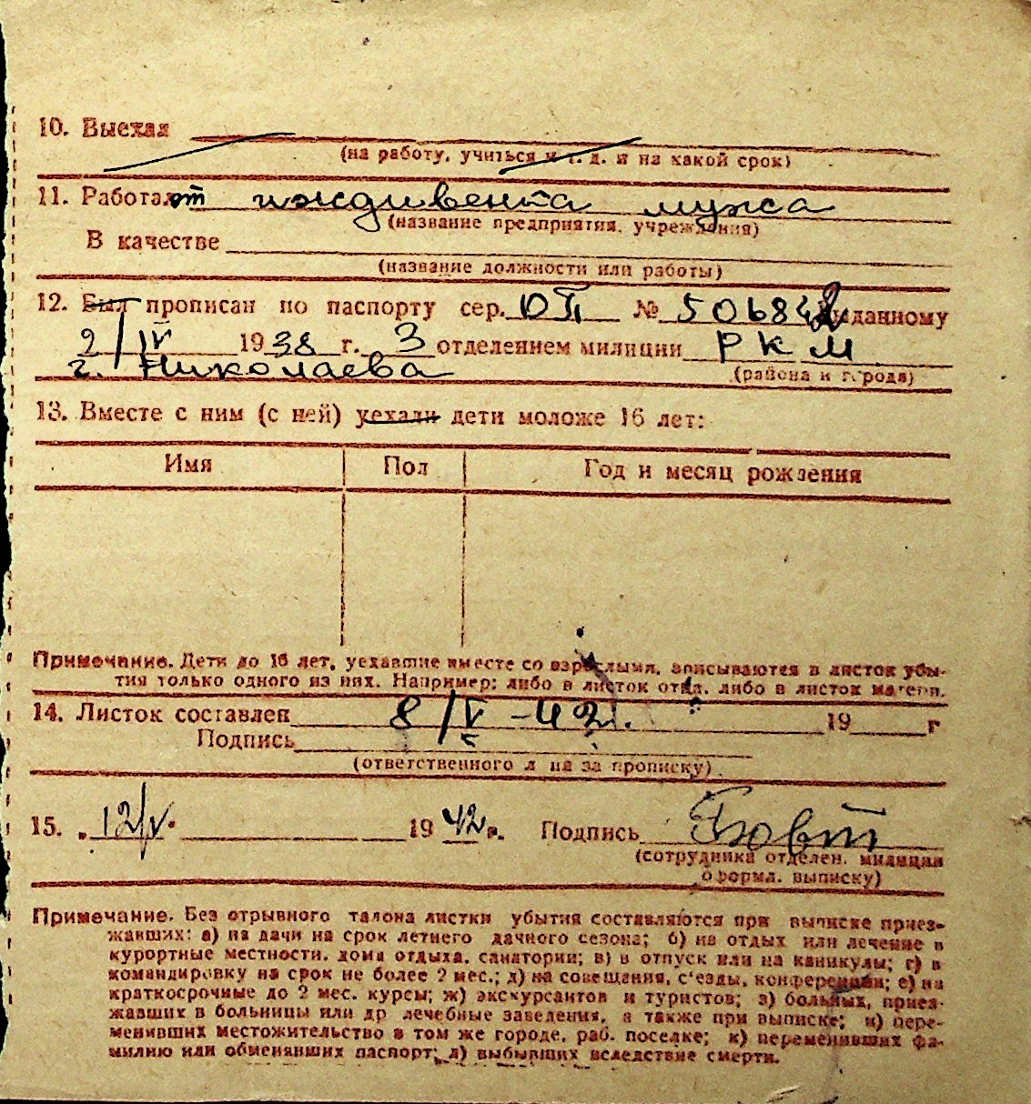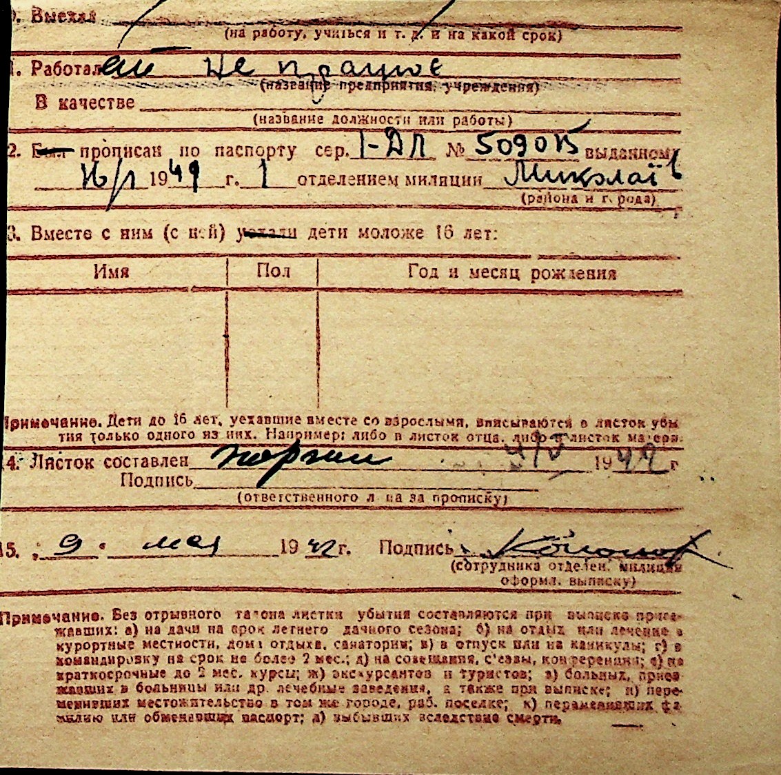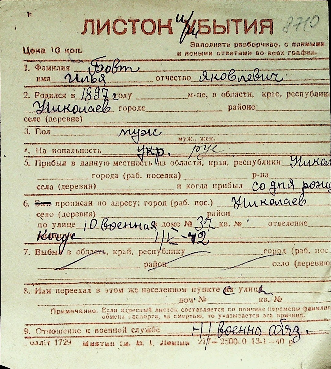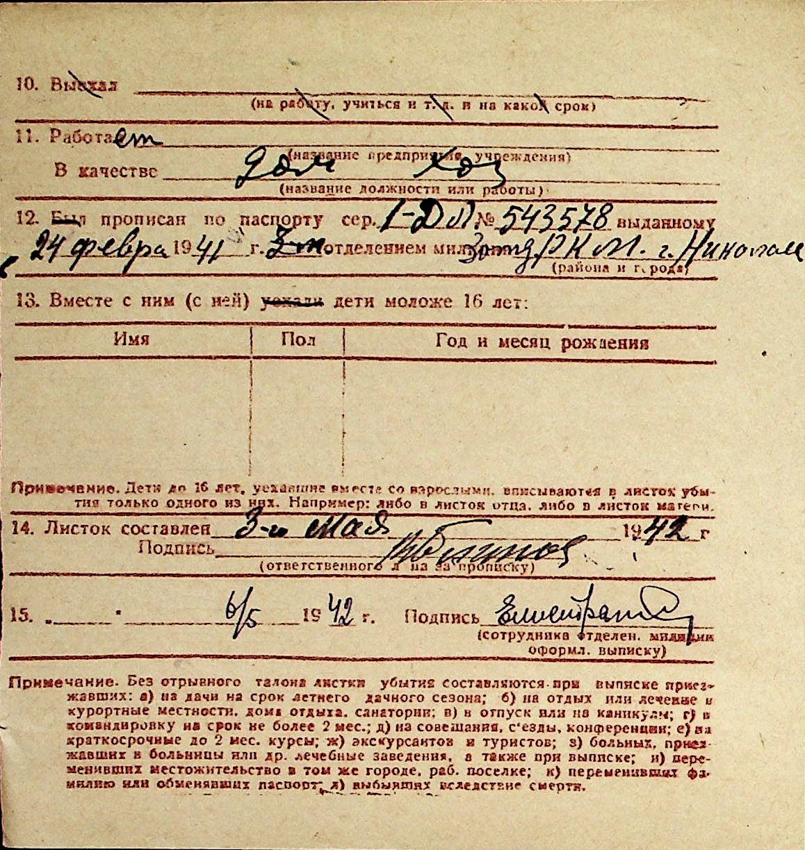 ◦ ◦ Перелік карток на осіб, які мешкали у м. Миколаїв у період окупації 1941–1944 років