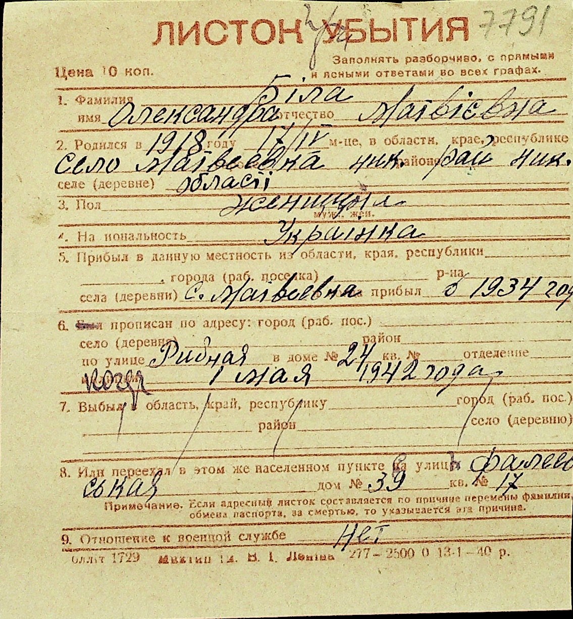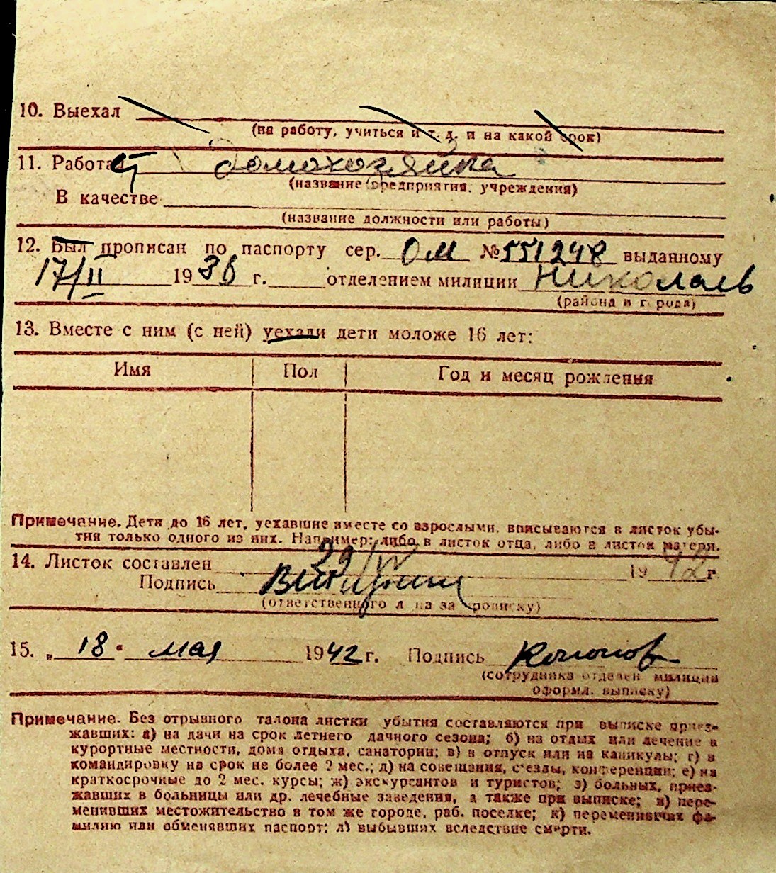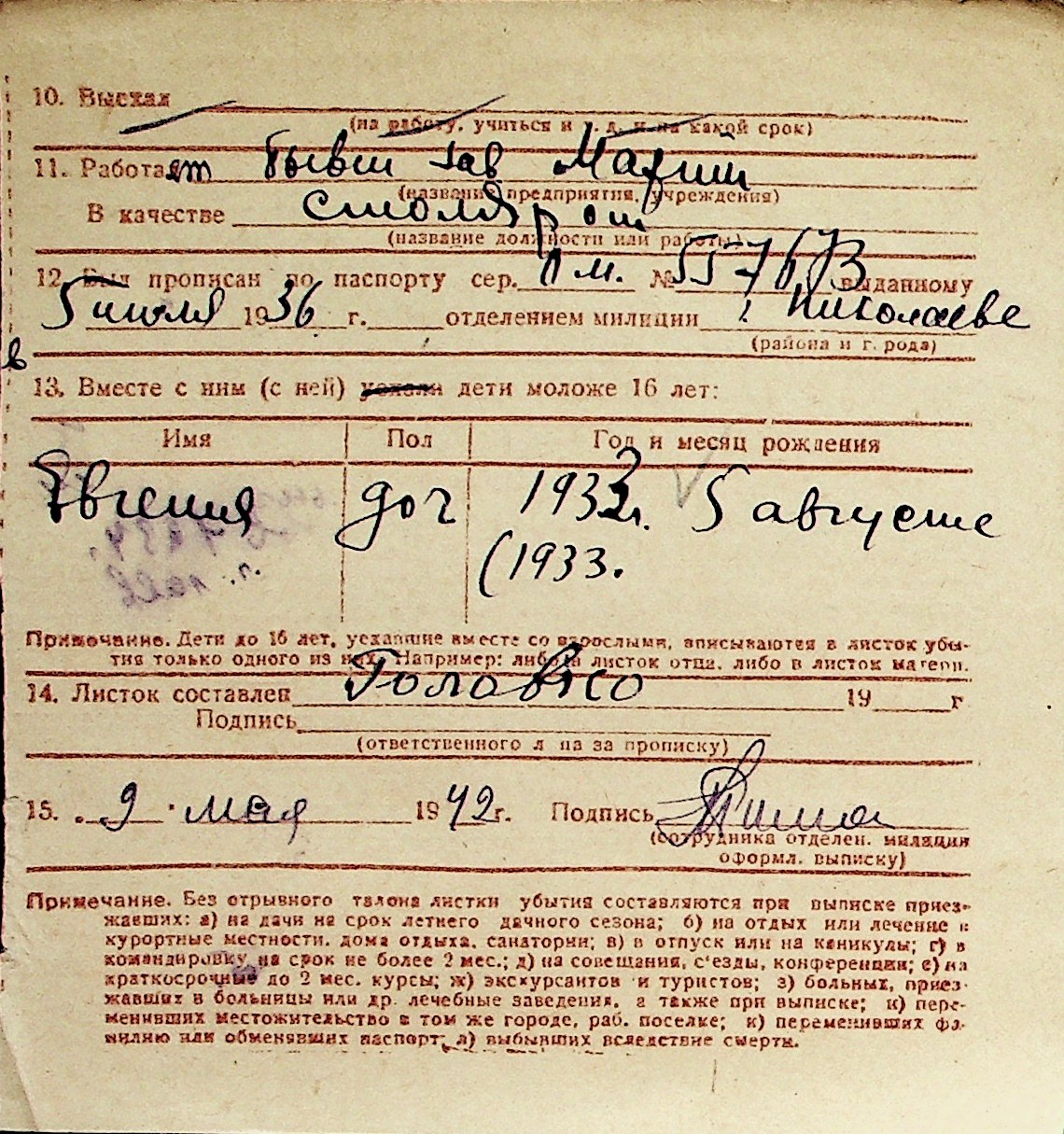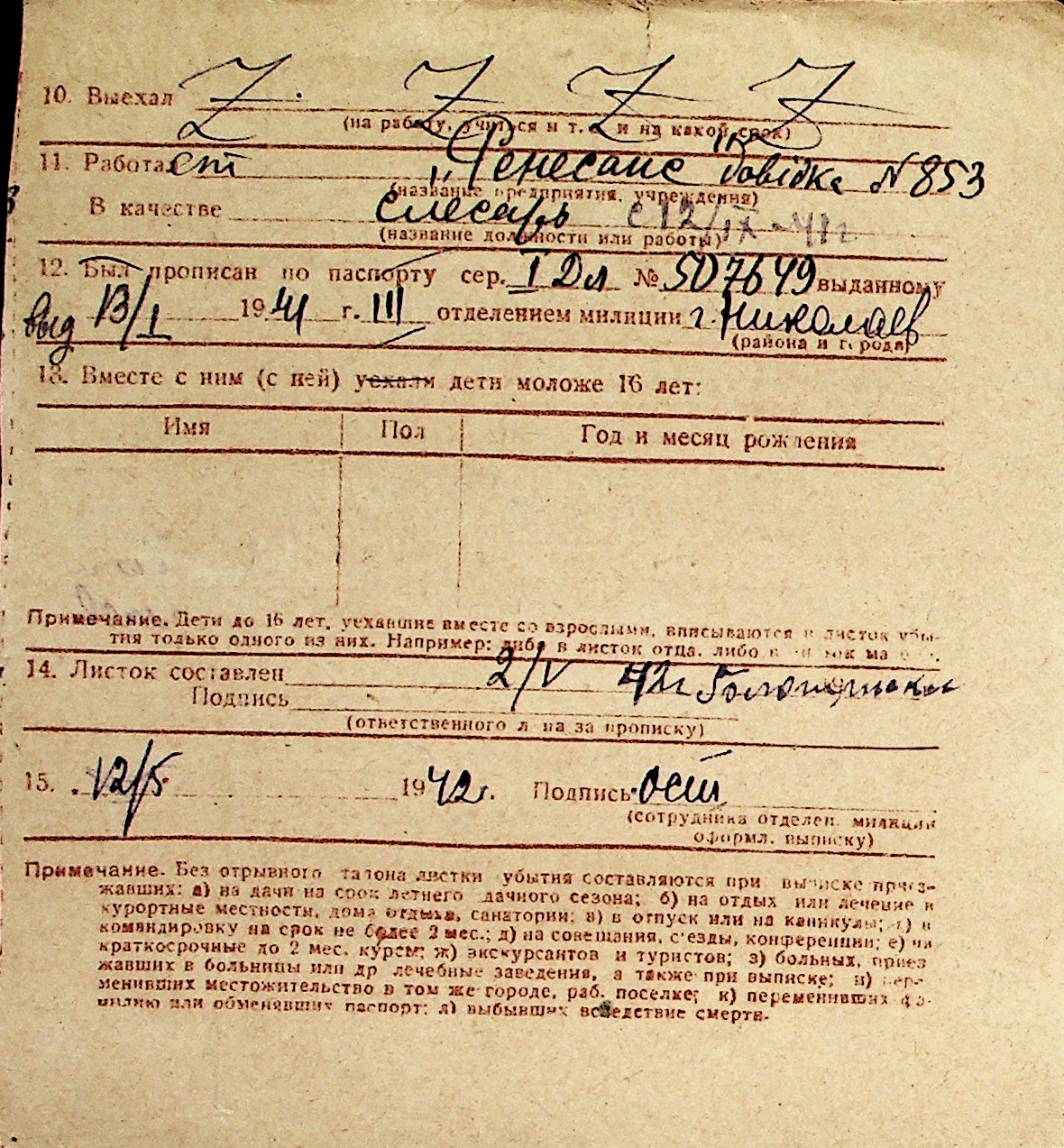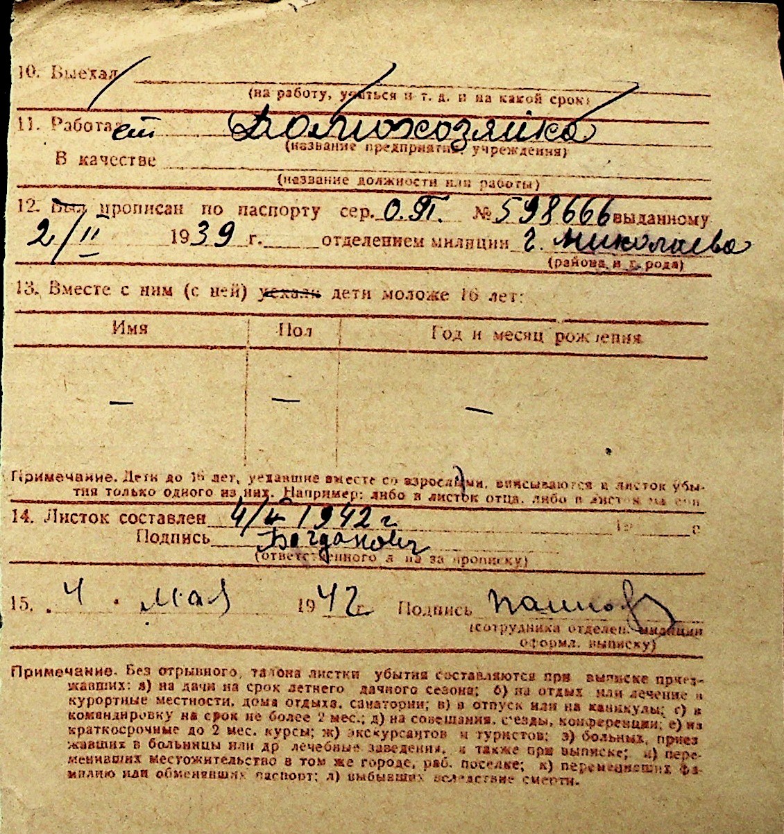 ◦ ◦ Перелік карток на осіб, які мешкали у м. Миколаїв у період окупації 1941–1944 років