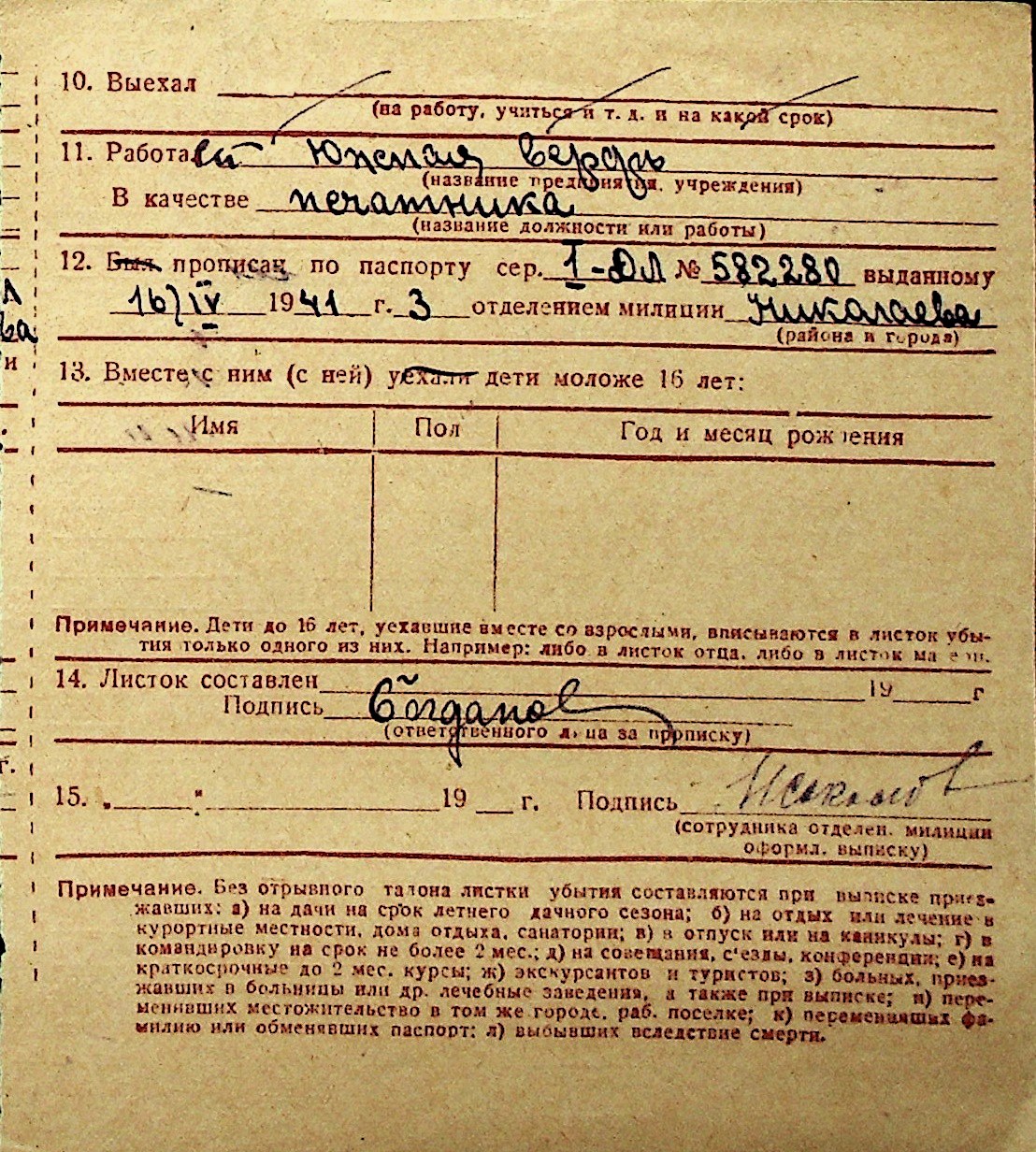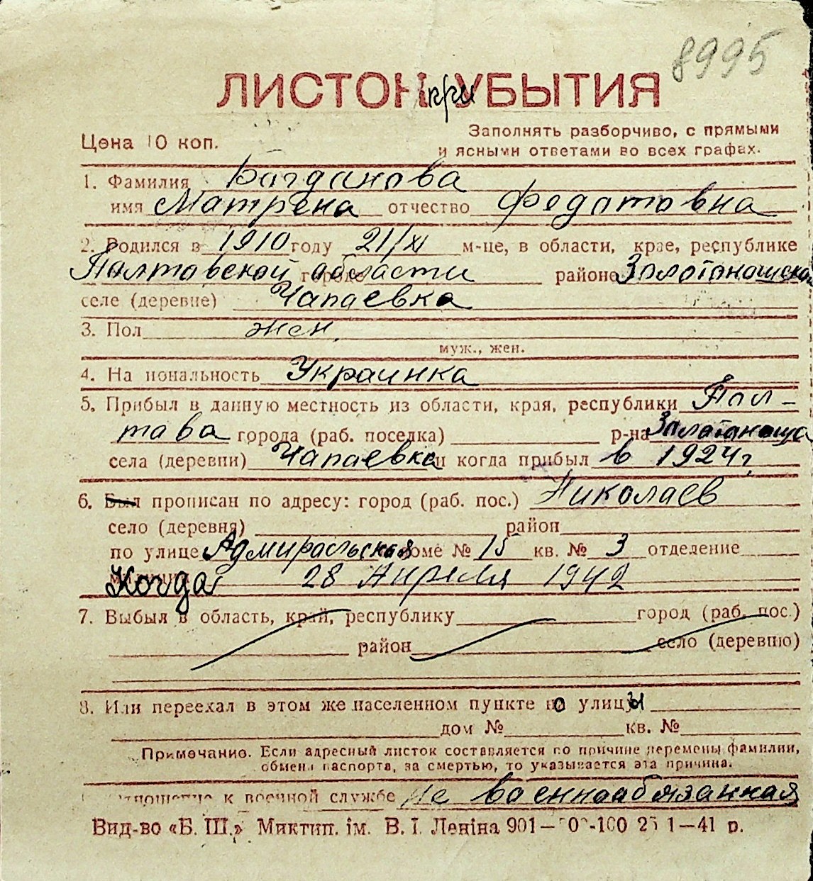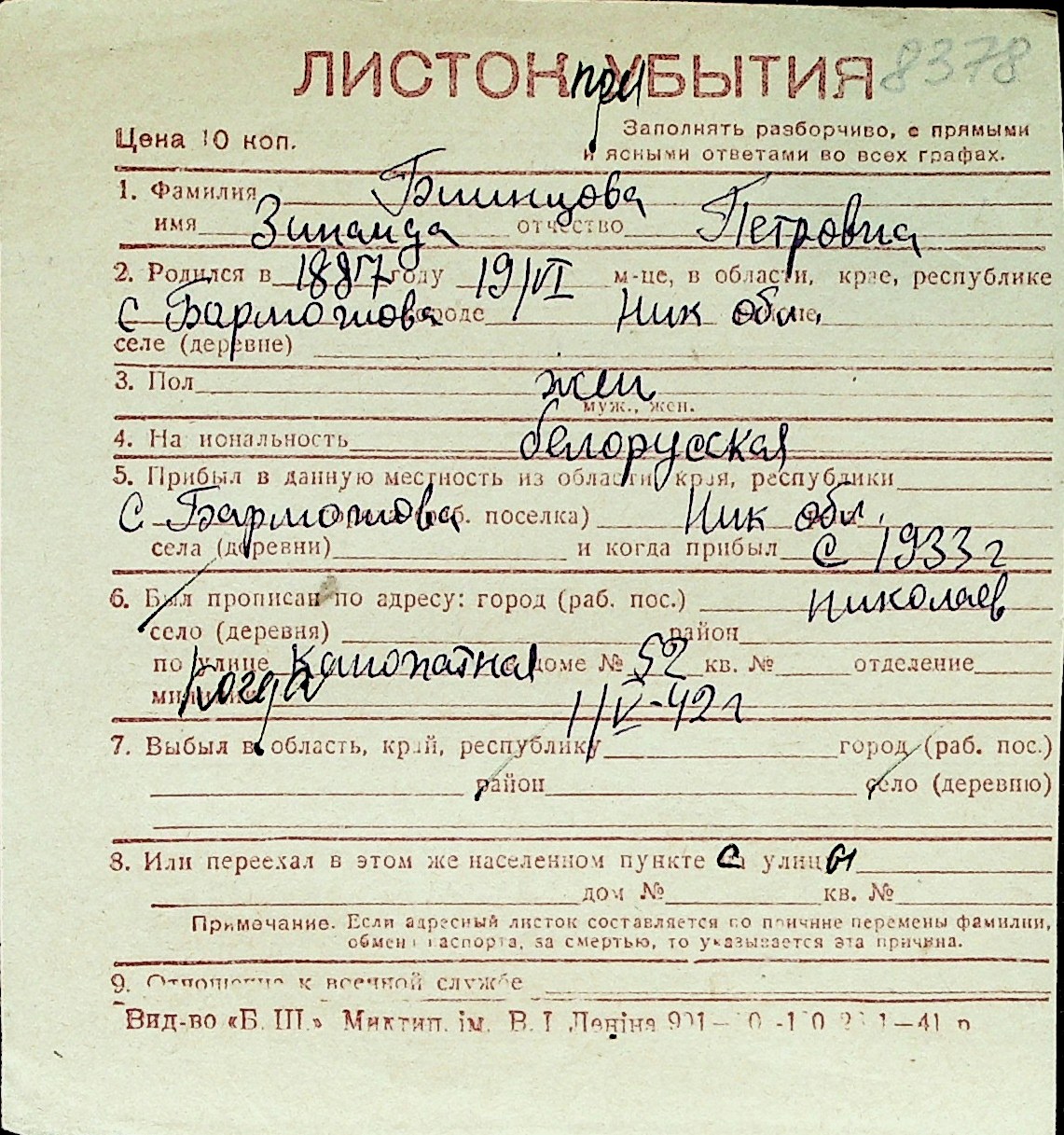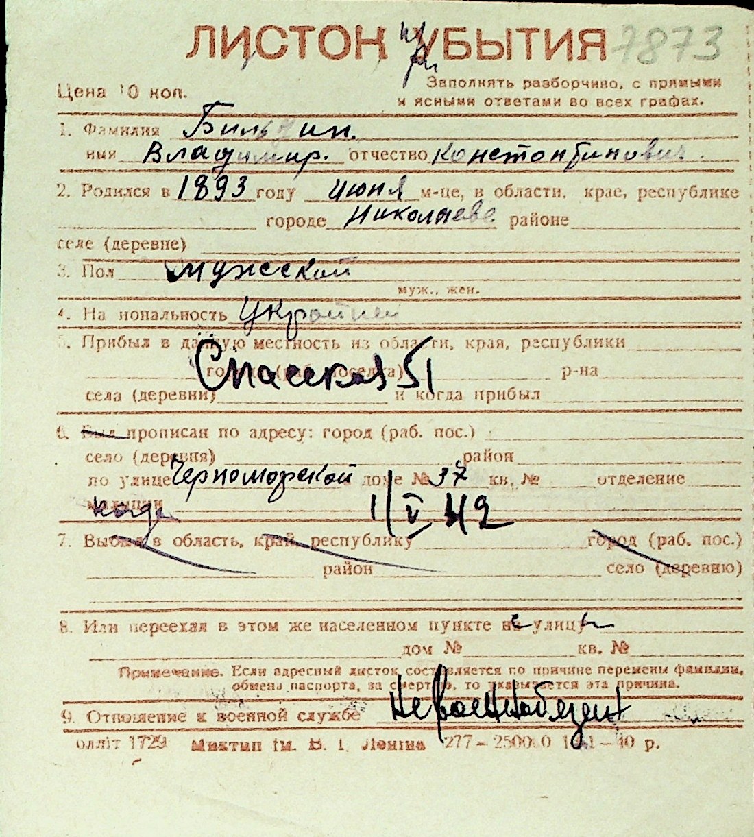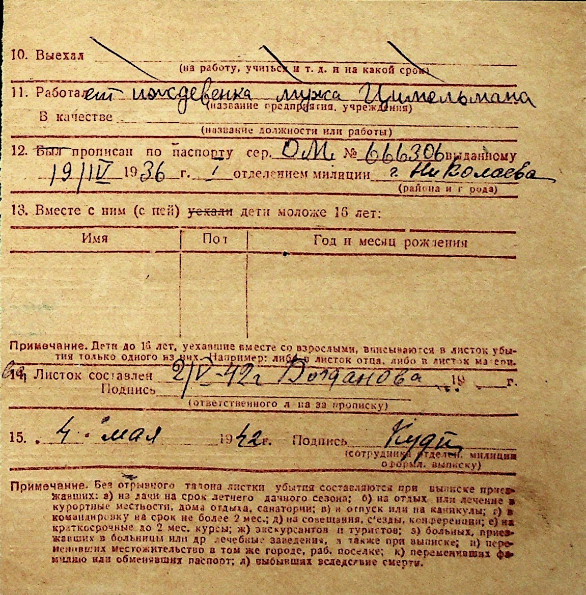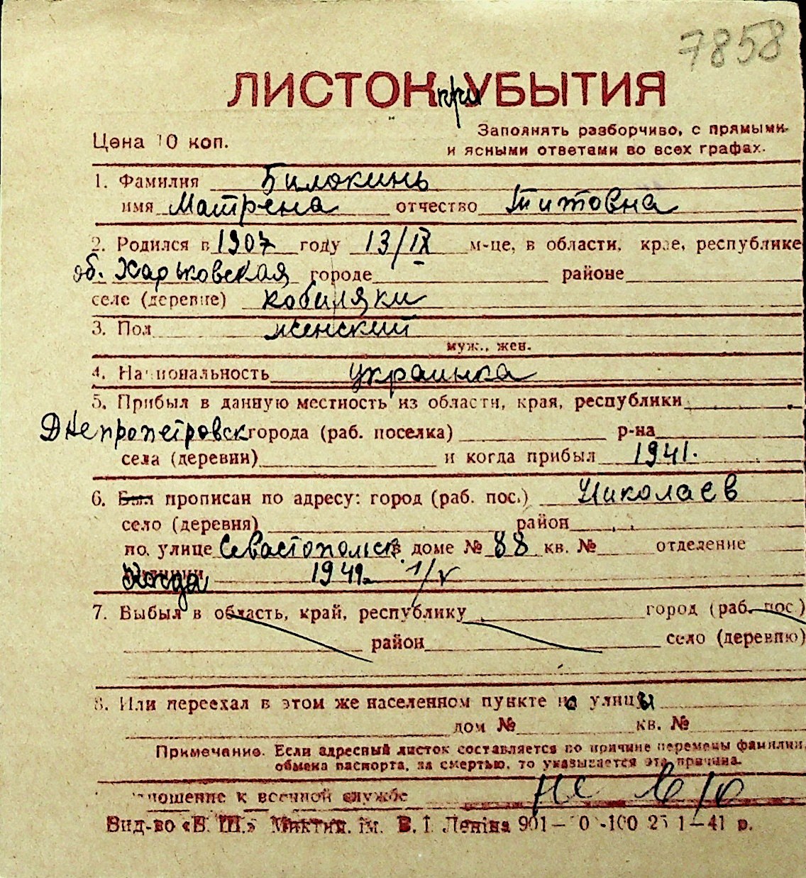 ◦ ◦ Перелік карток на осіб, які мешкали у м. Миколаїв у період окупації 1941–1944 років