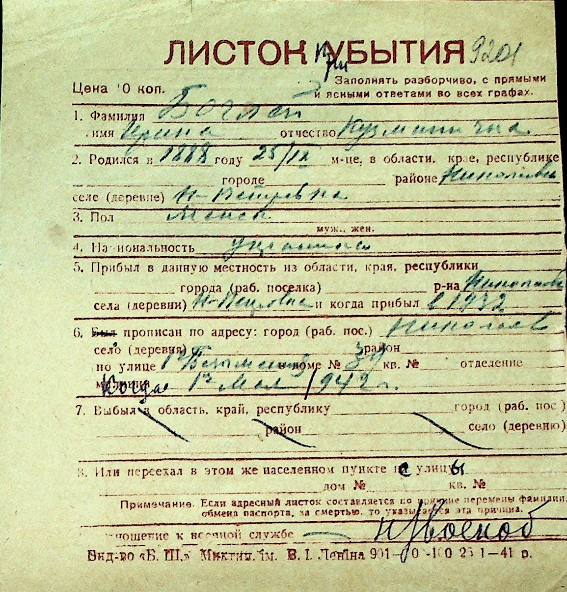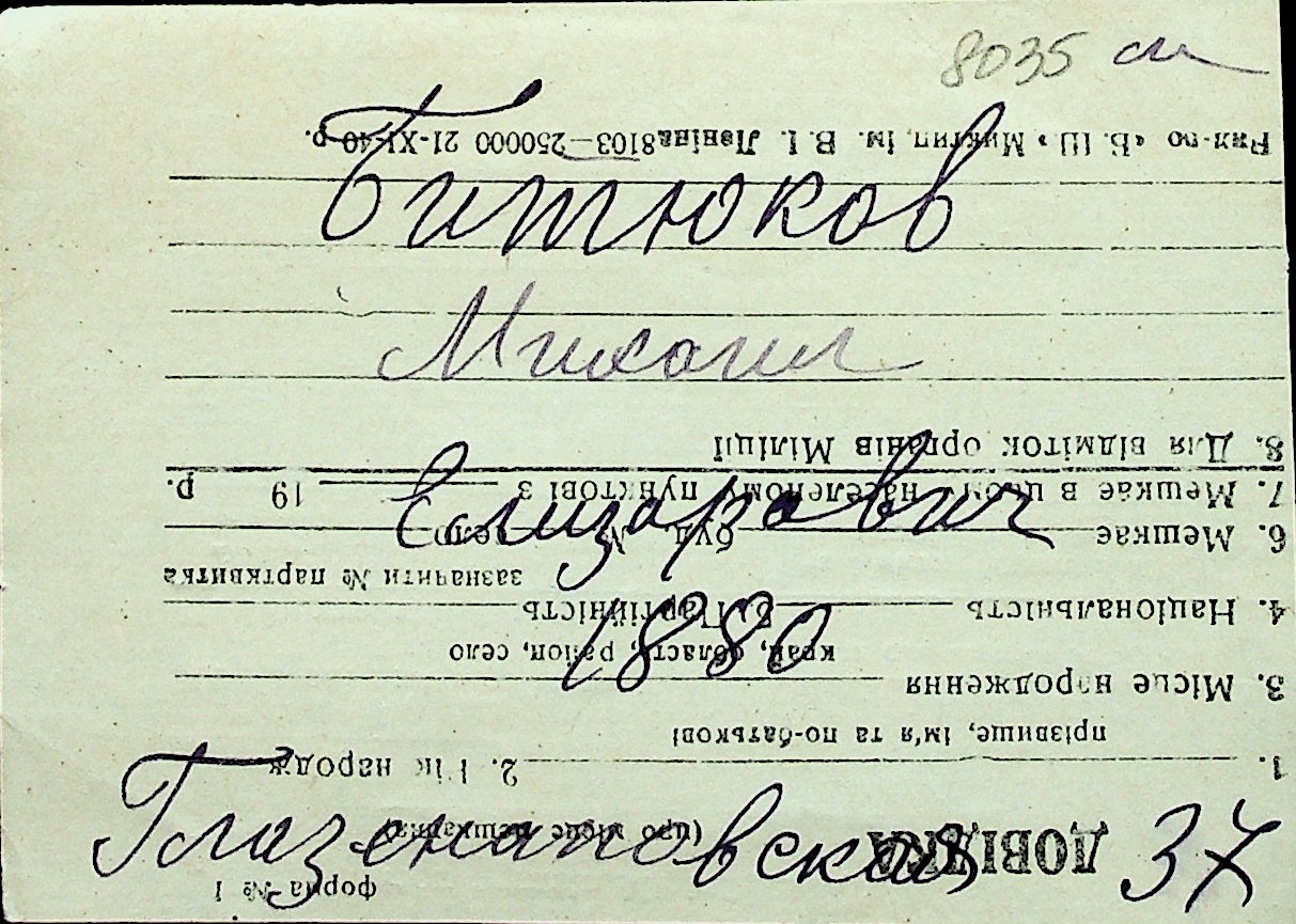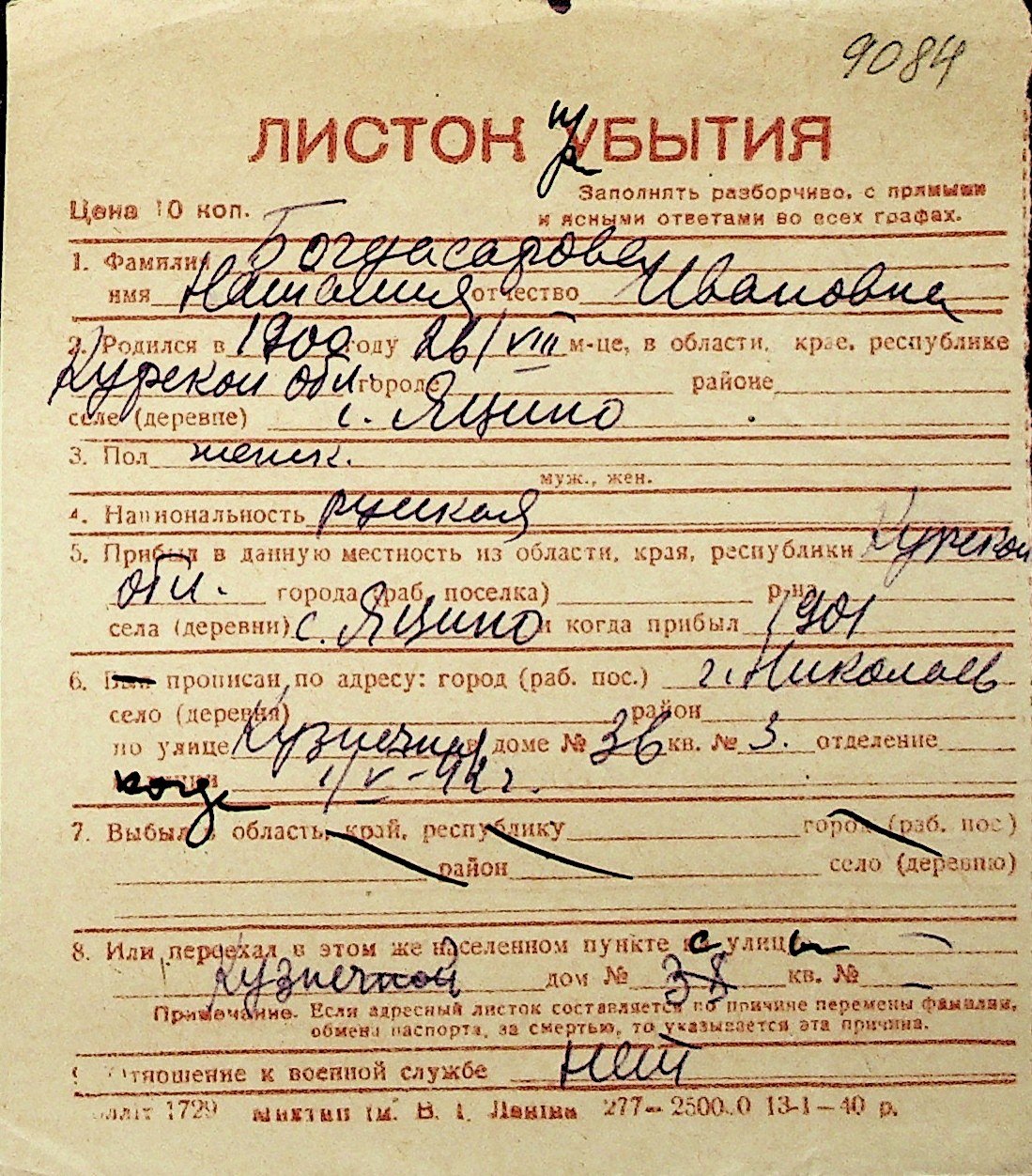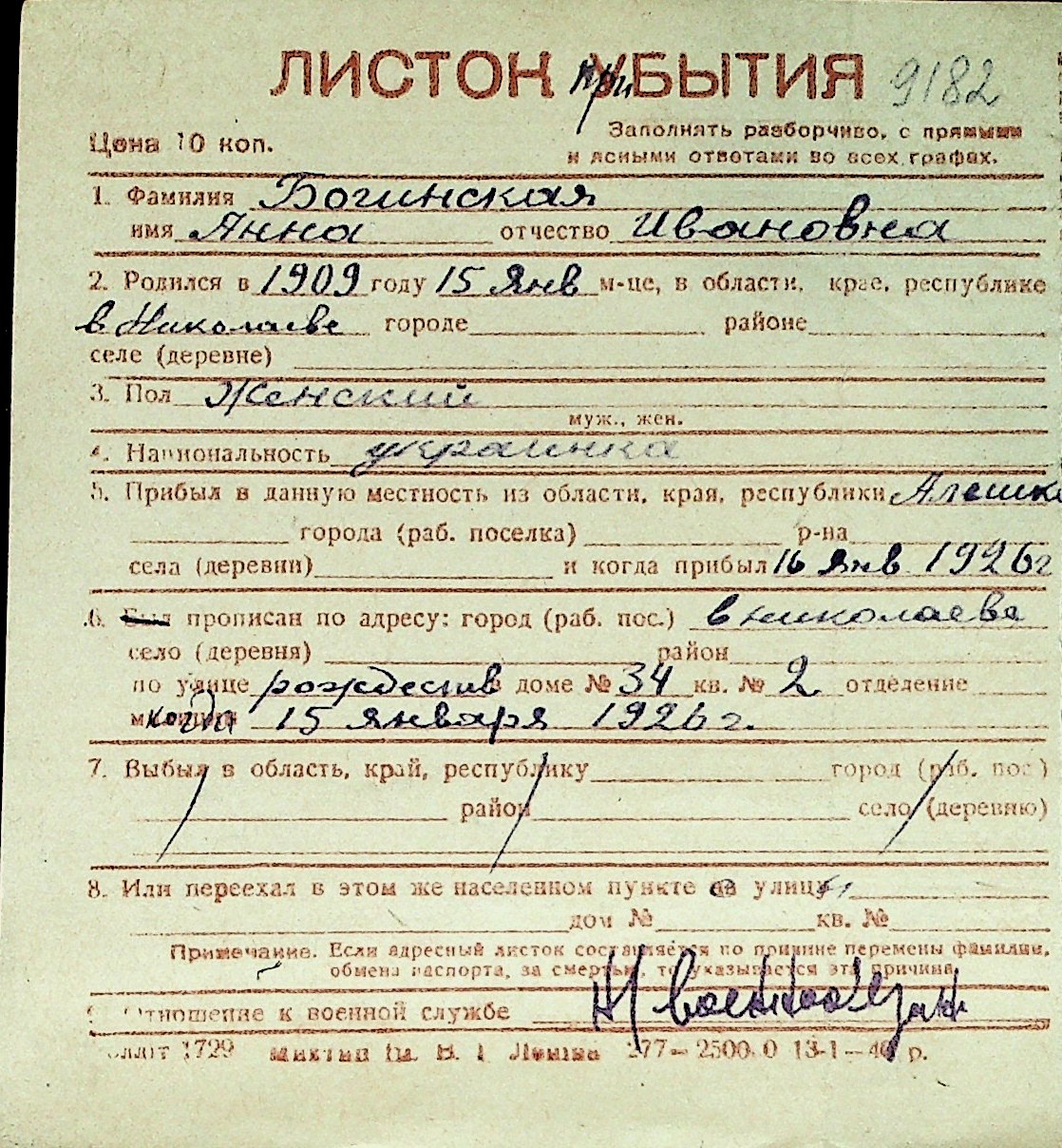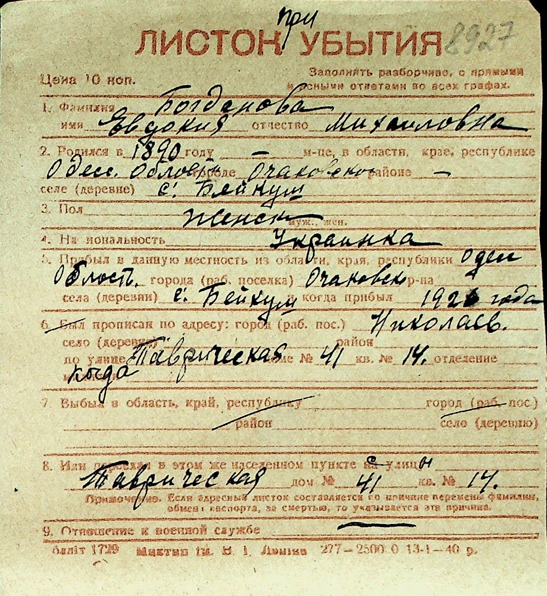 ◦ ◦ Перелік карток на осіб, які мешкали у м. Миколаїв у період окупації 1941–1944 років