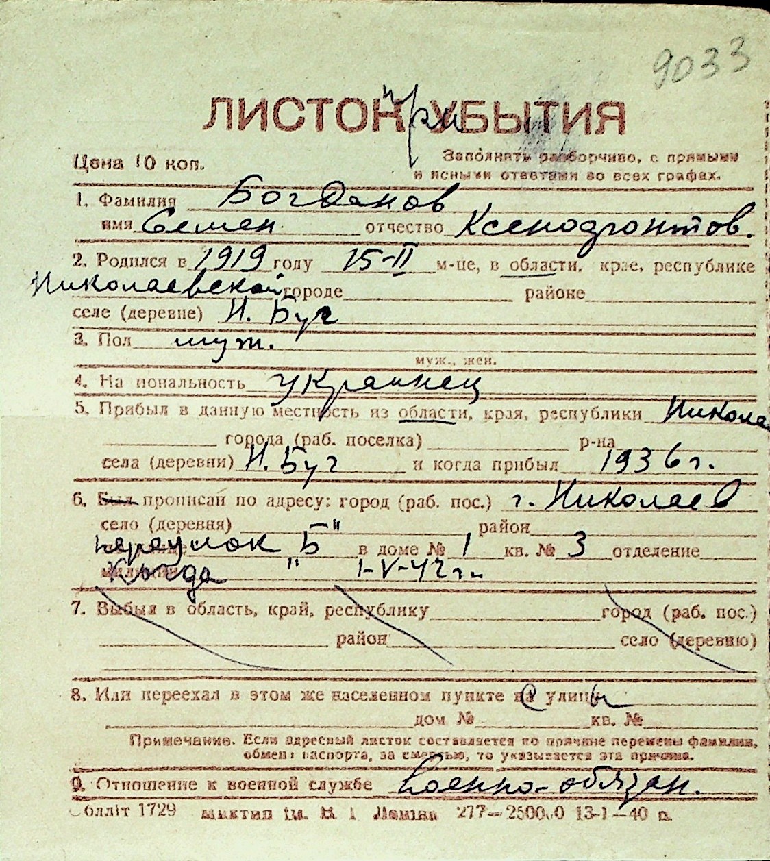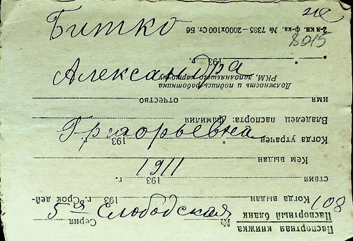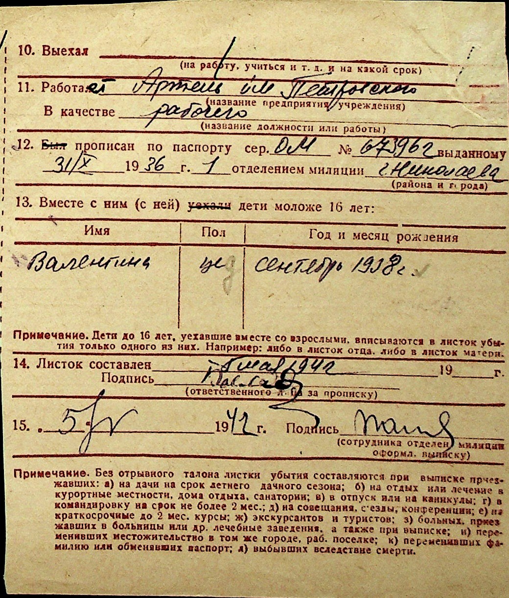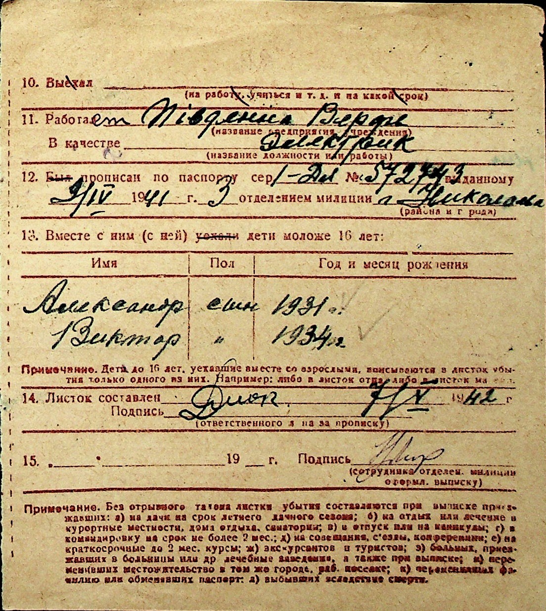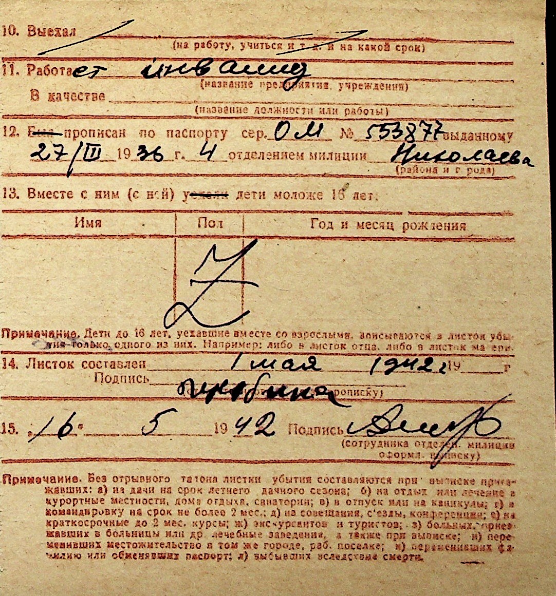 ◦ ◦ Перелік карток на осіб, які мешкали у м. Миколаїв у період окупації 1941–1944 років