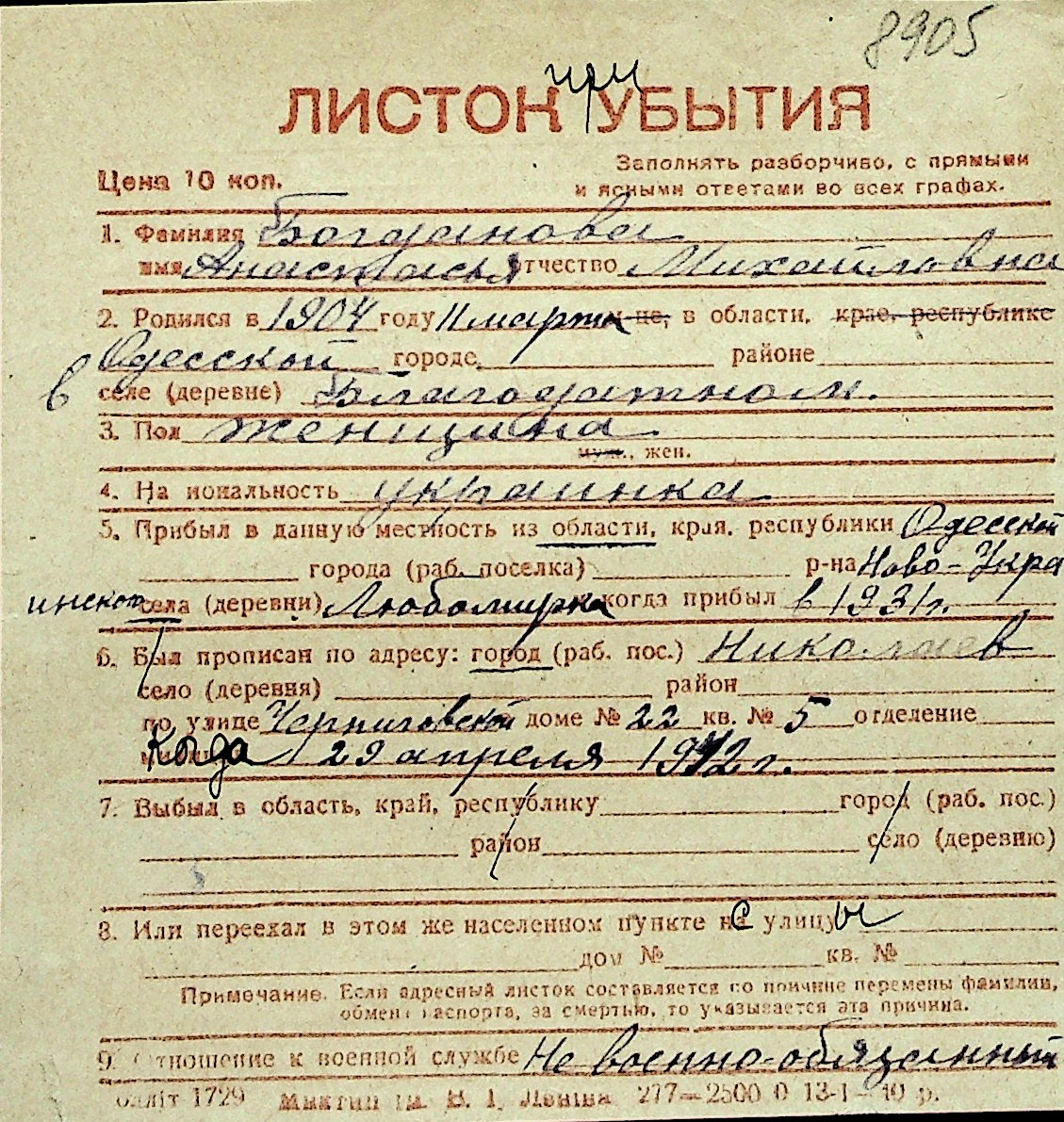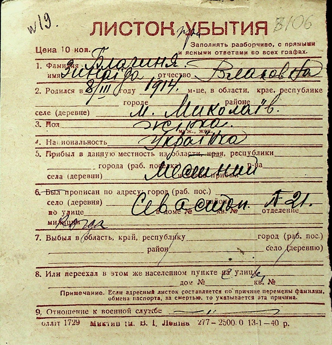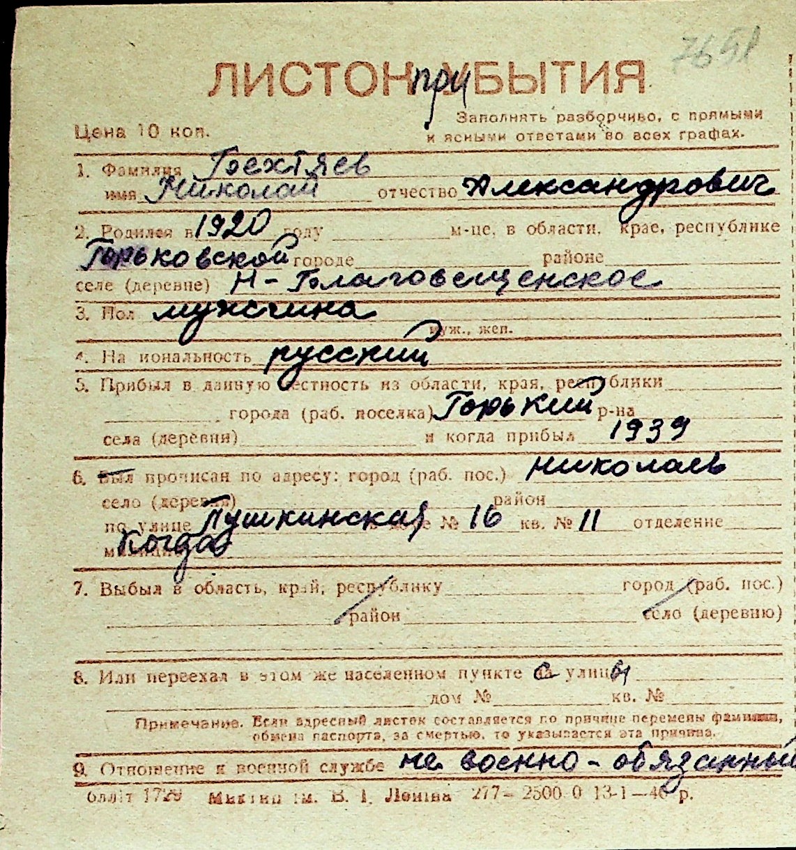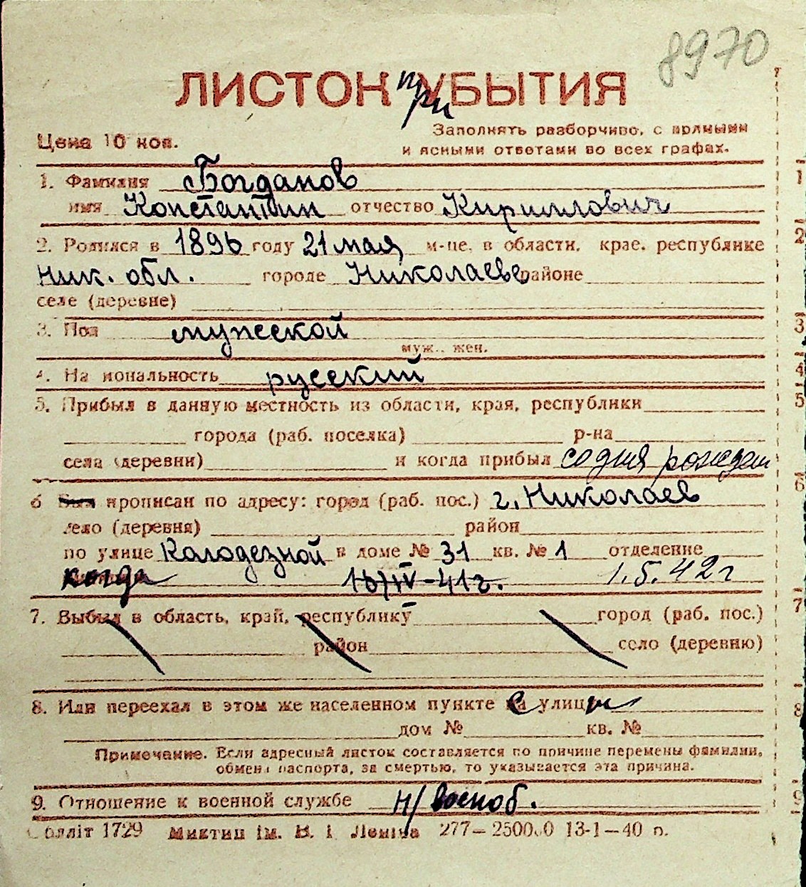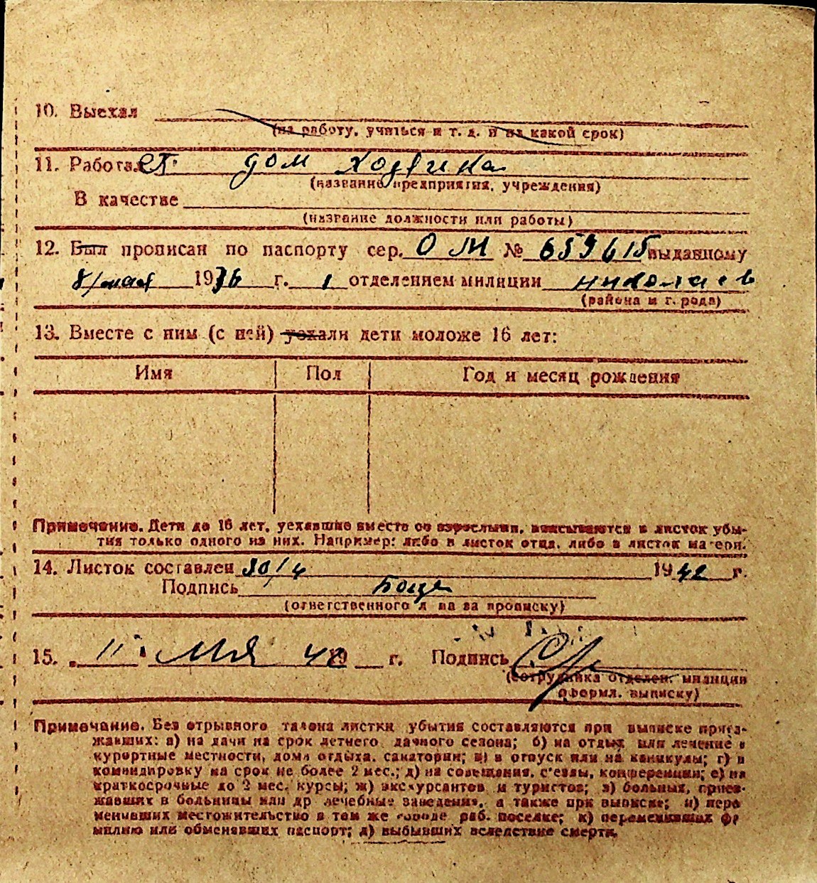 ◦ ◦ Перелік карток на осіб, які мешкали у м. Миколаїв у період окупації 1941–1944 років