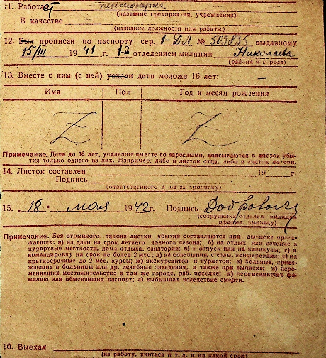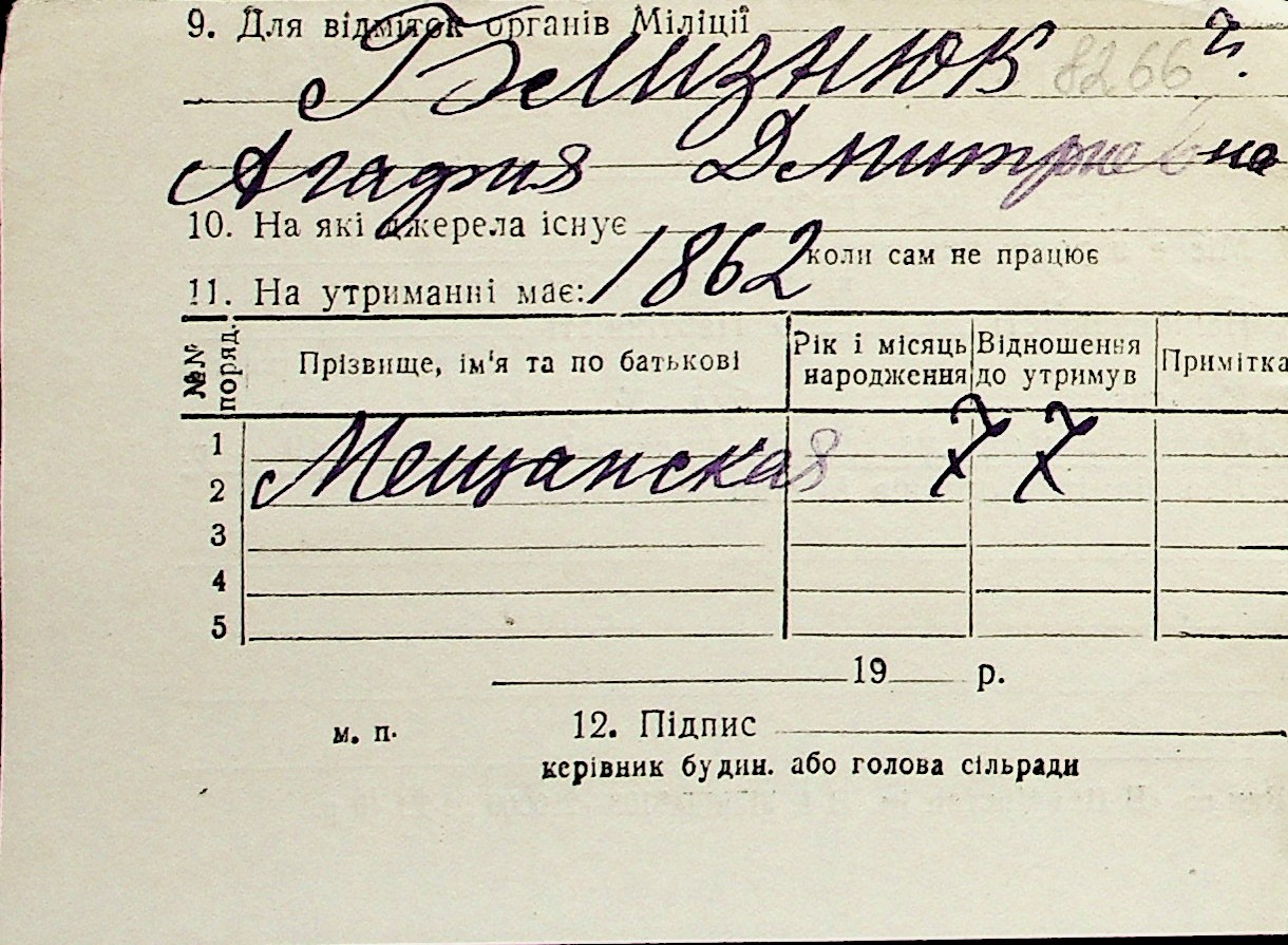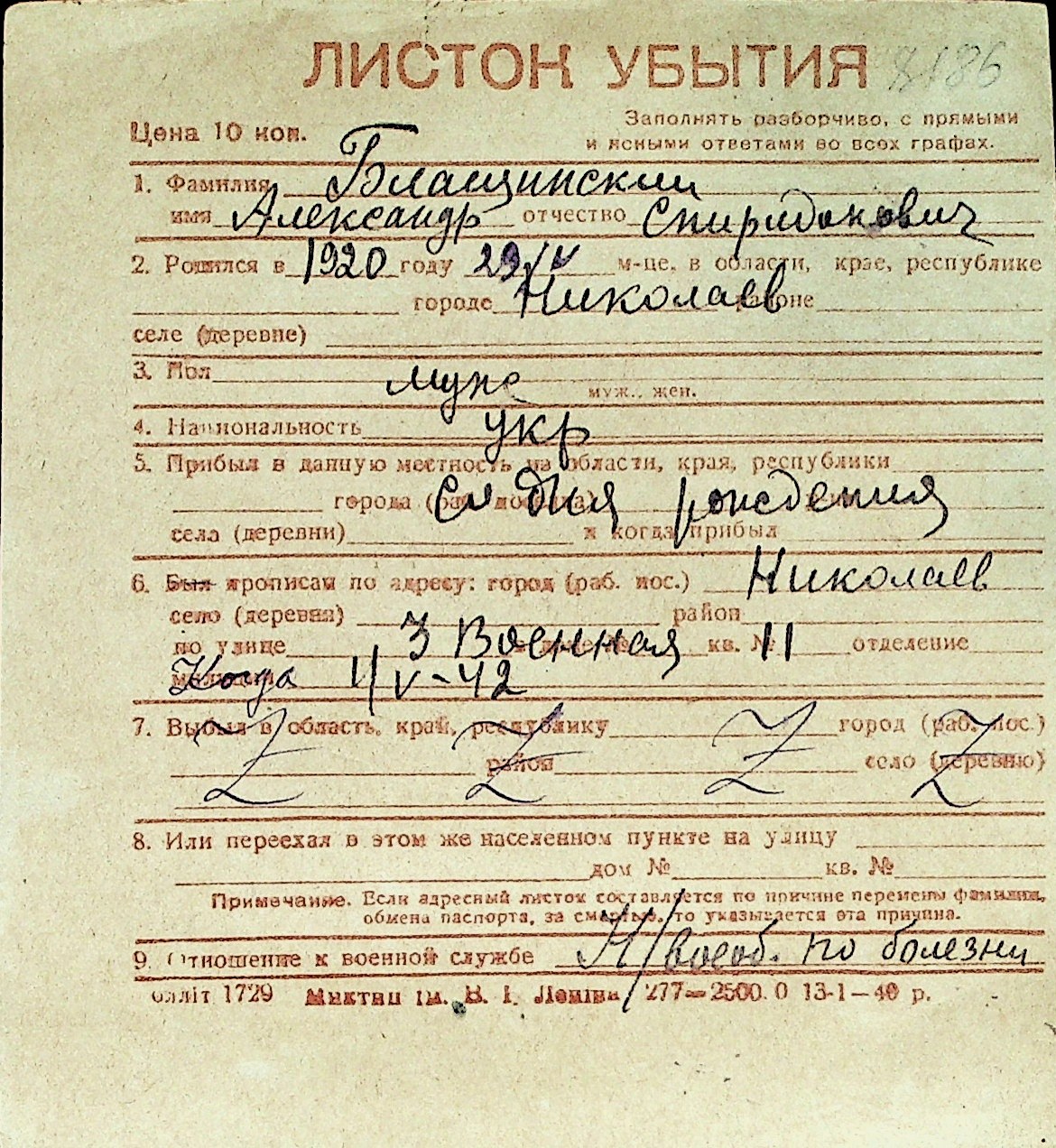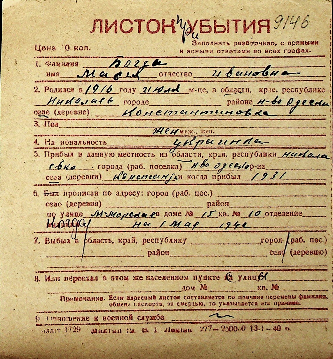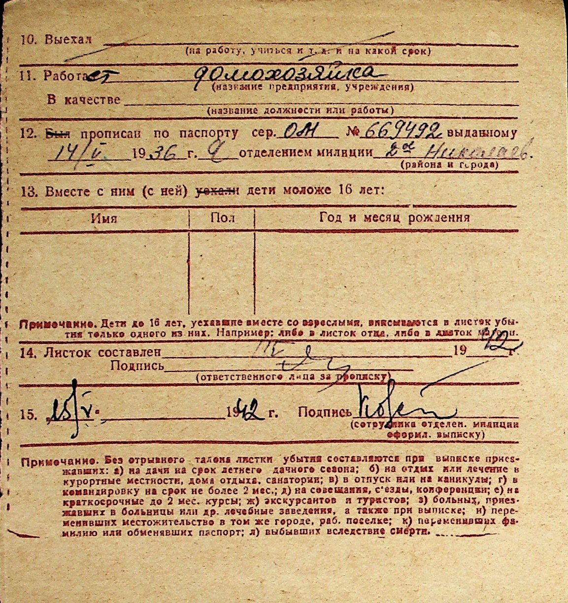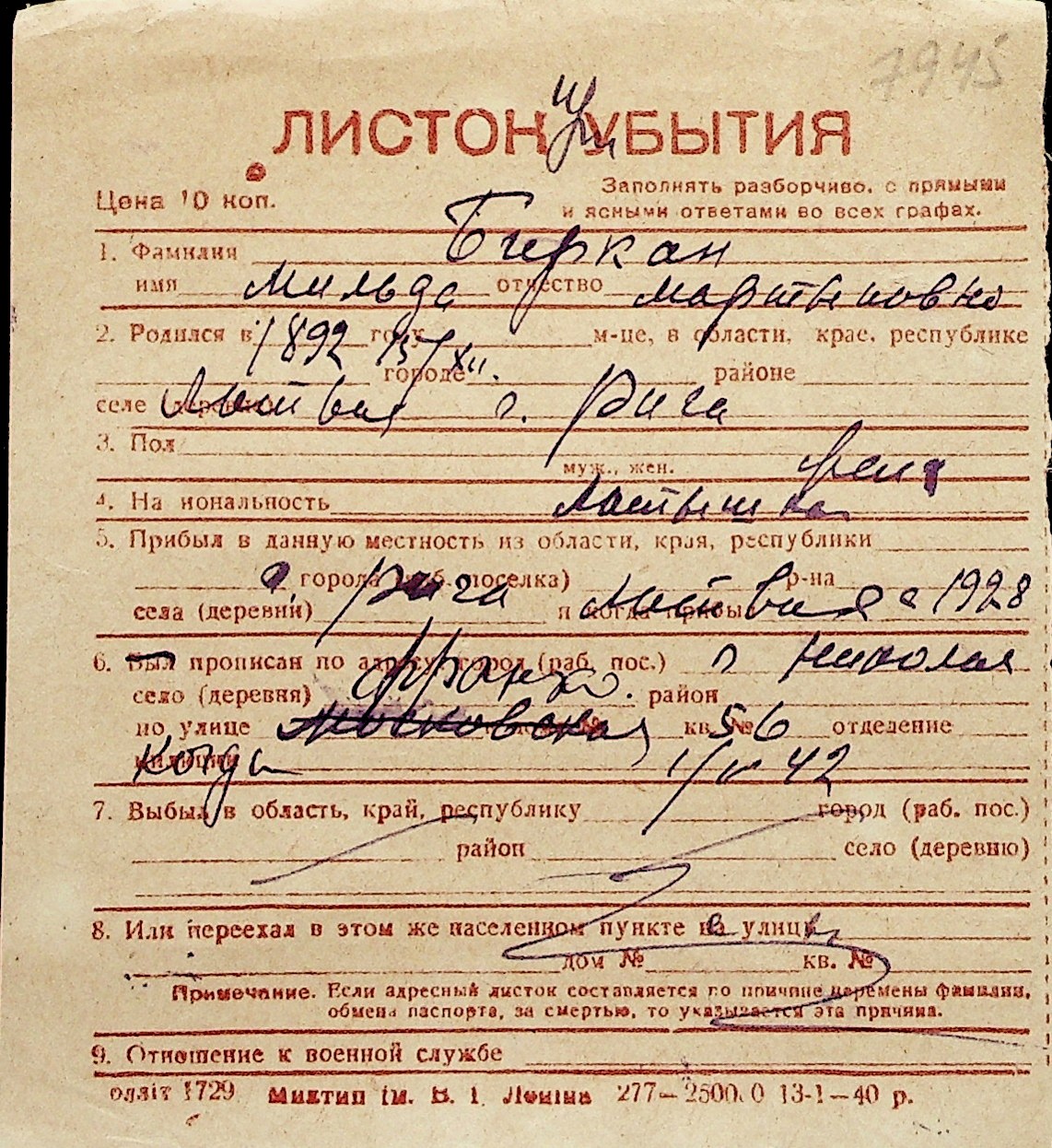 ◦ ◦ Перелік карток на осіб, які мешкали у м. Миколаїв у період окупації 1941–1944 років