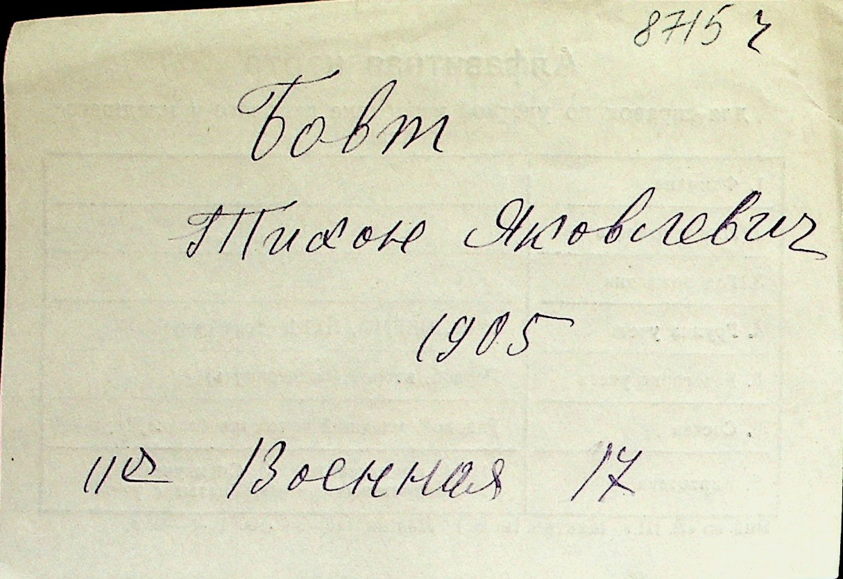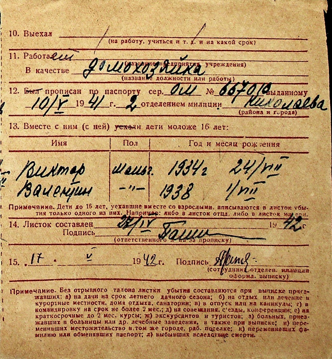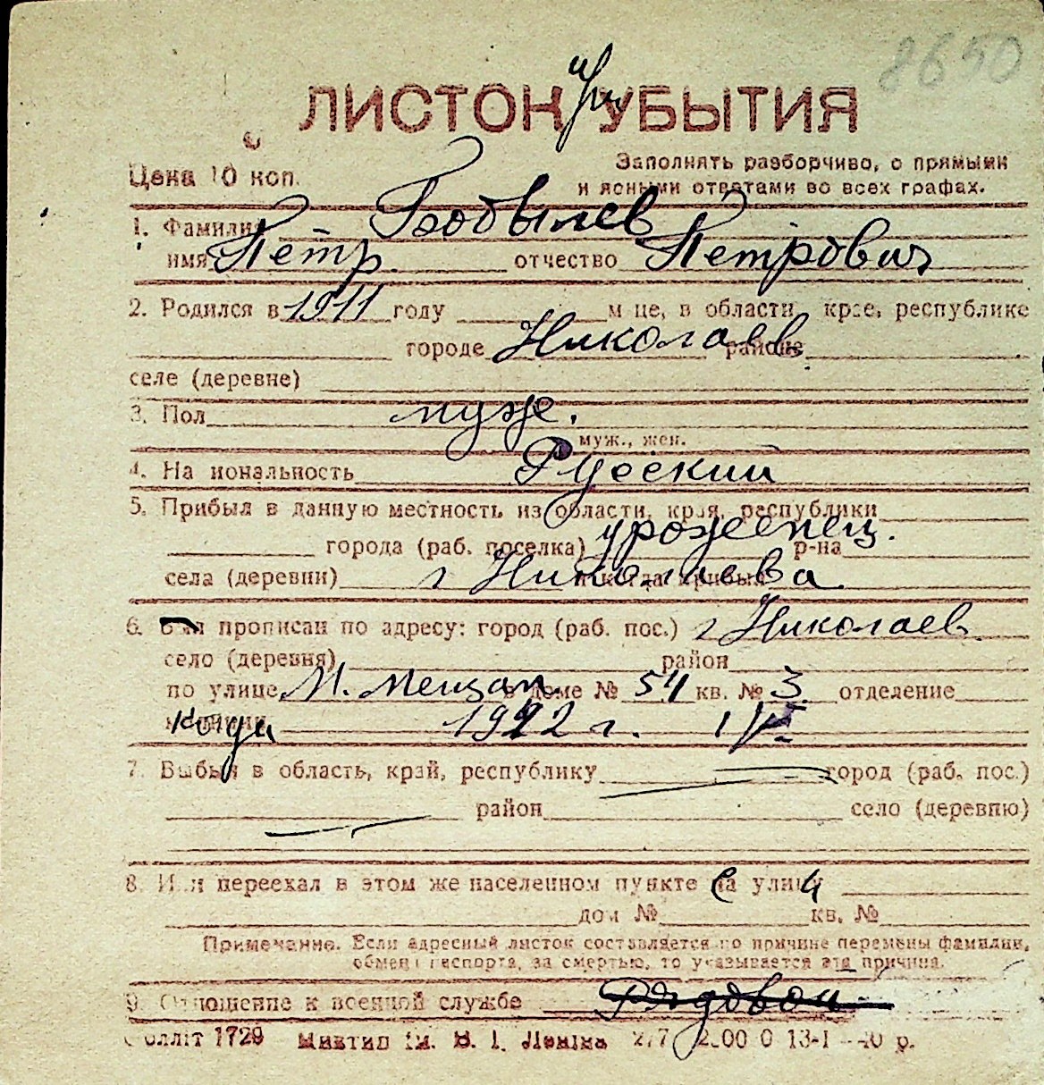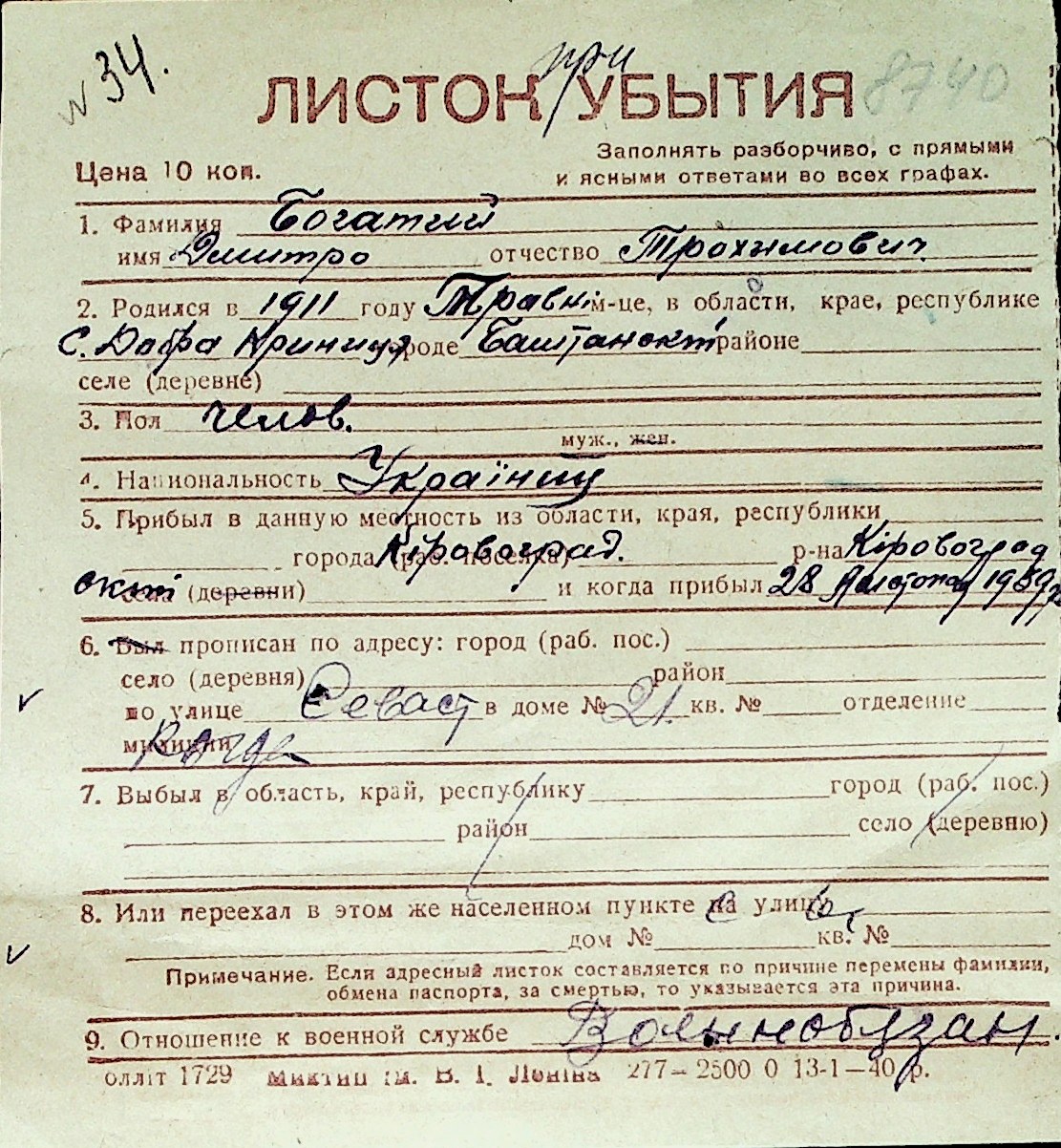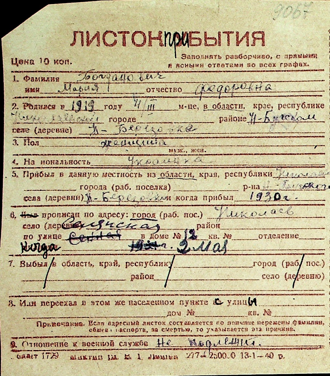 ◦ ◦ Перелік карток на осіб, які мешкали у м. Миколаїв у період окупації 1941–1944 років
