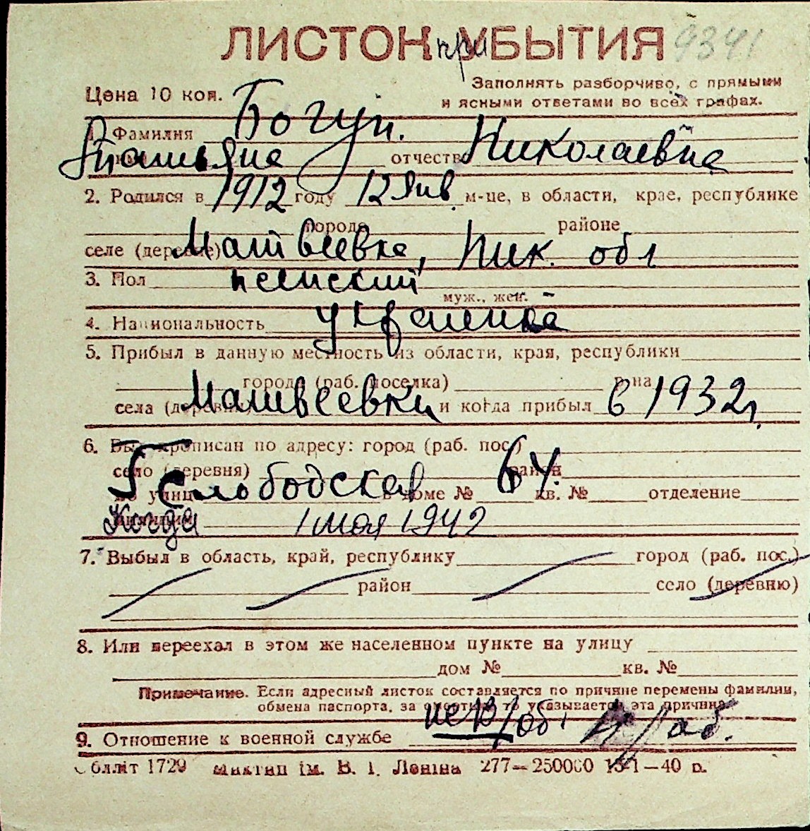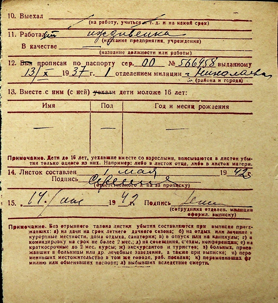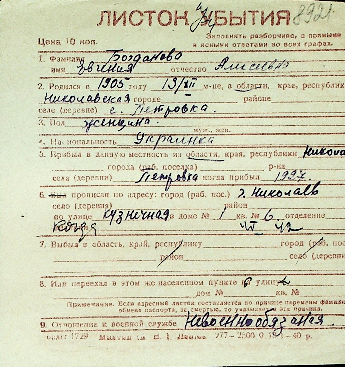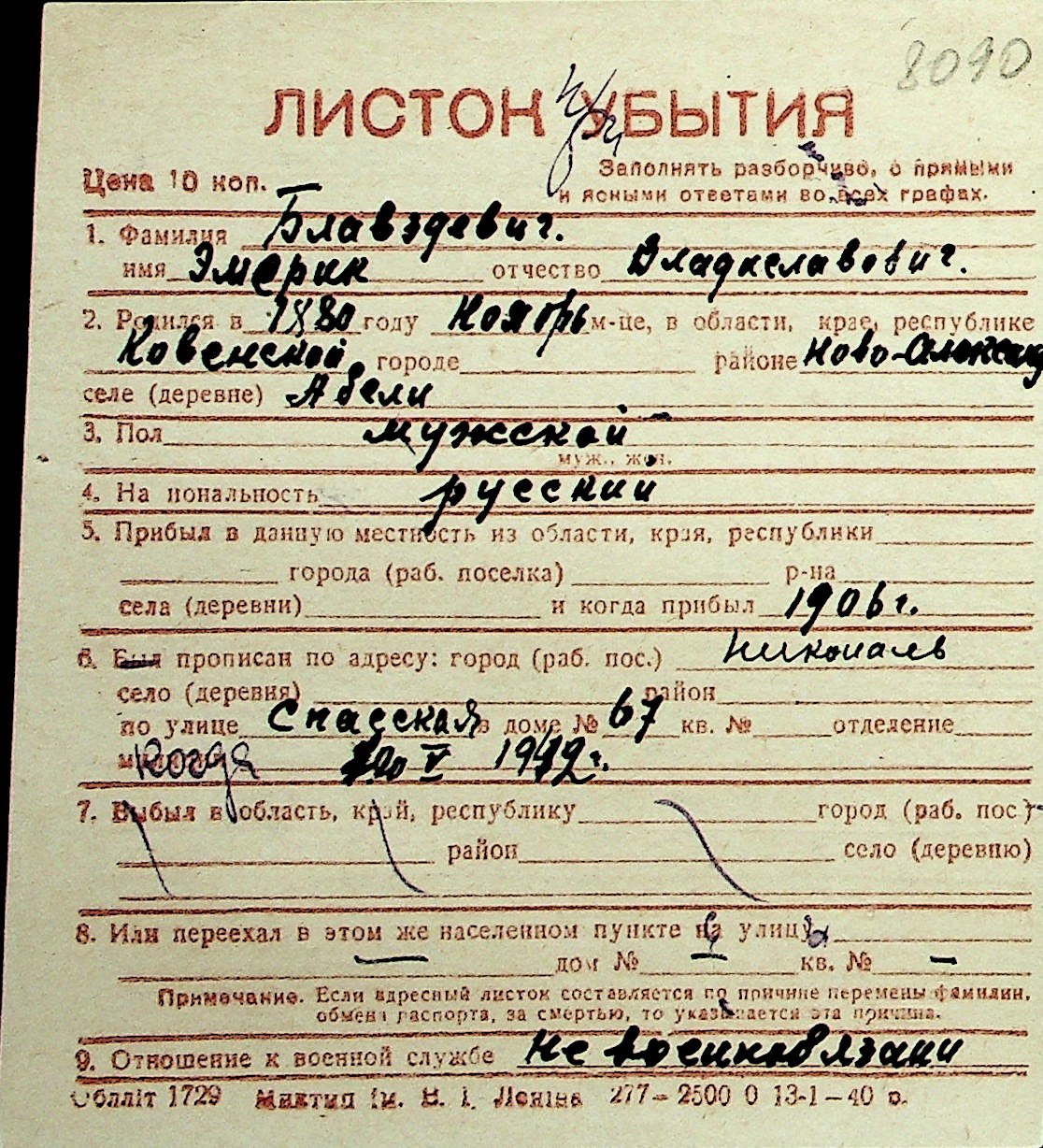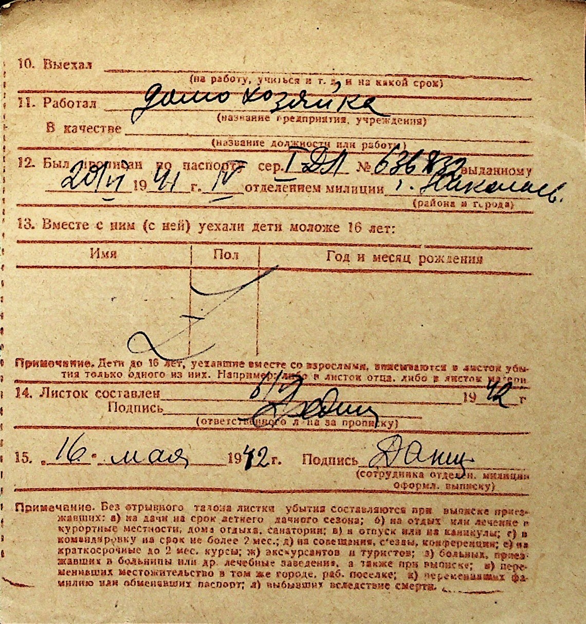 ◦ ◦ Перелік карток на осіб, які мешкали у м. Миколаїв у період окупації 1941–1944 років