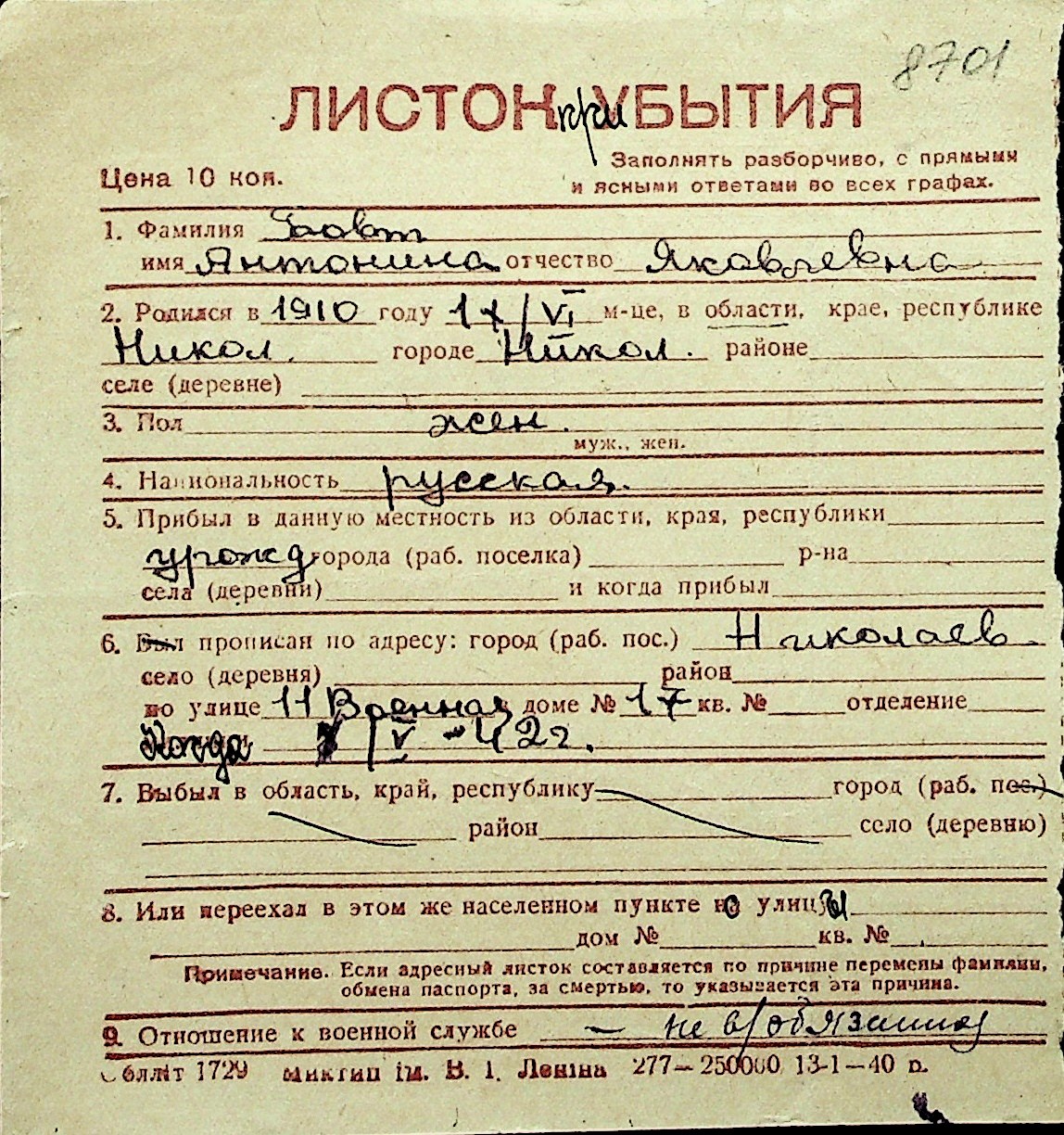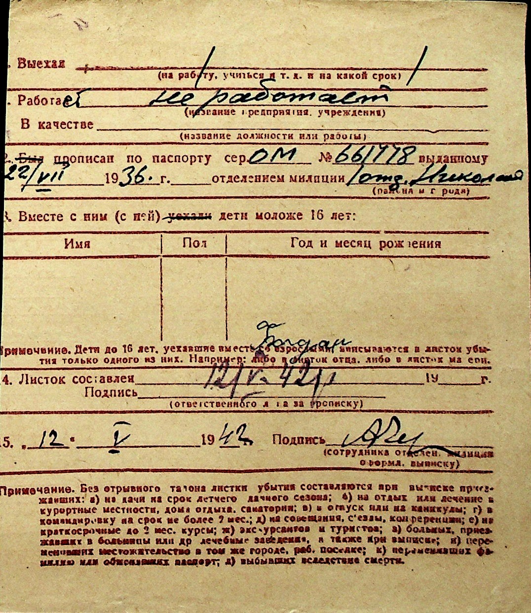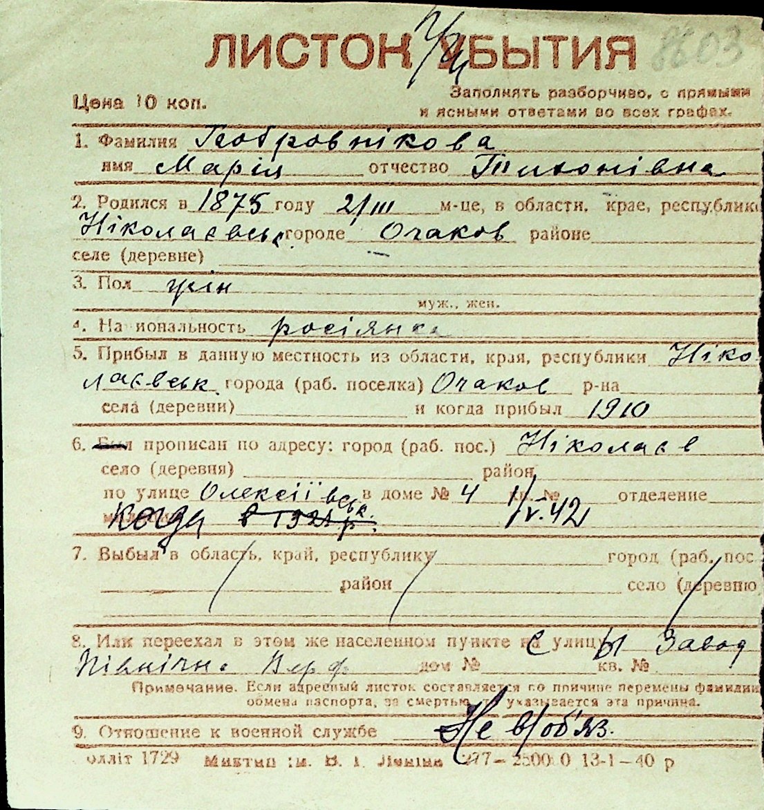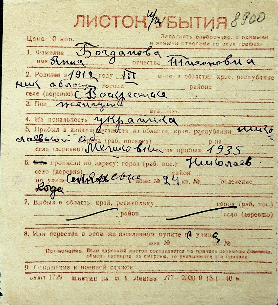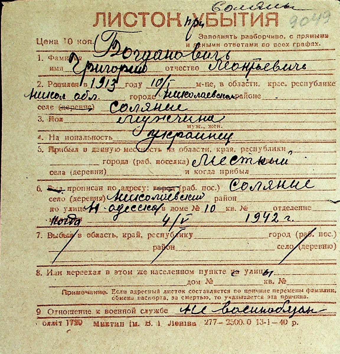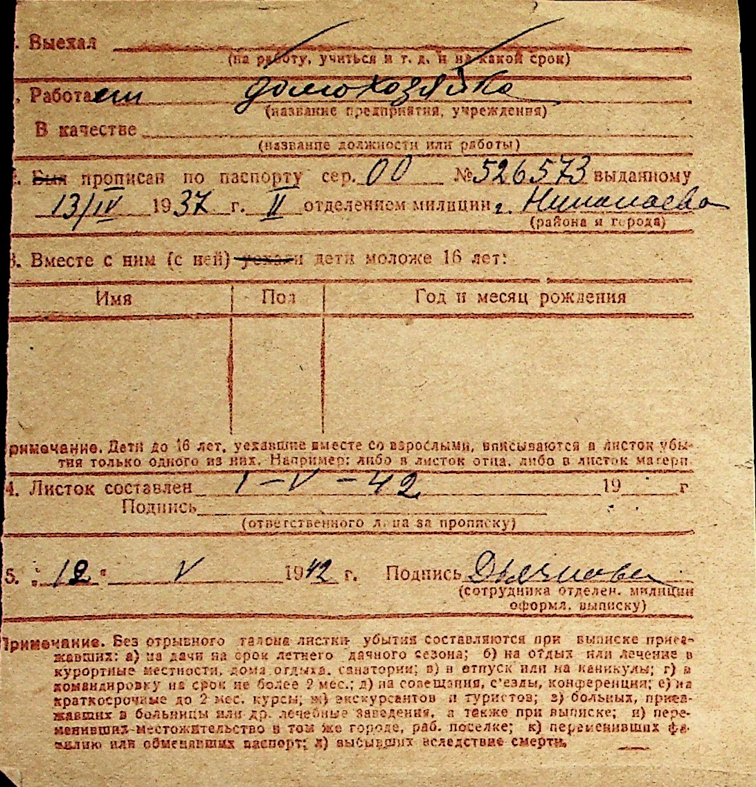 ◦ ◦ Перелік карток на осіб, які мешкали у м. Миколаїв у період окупації 1941–1944 років