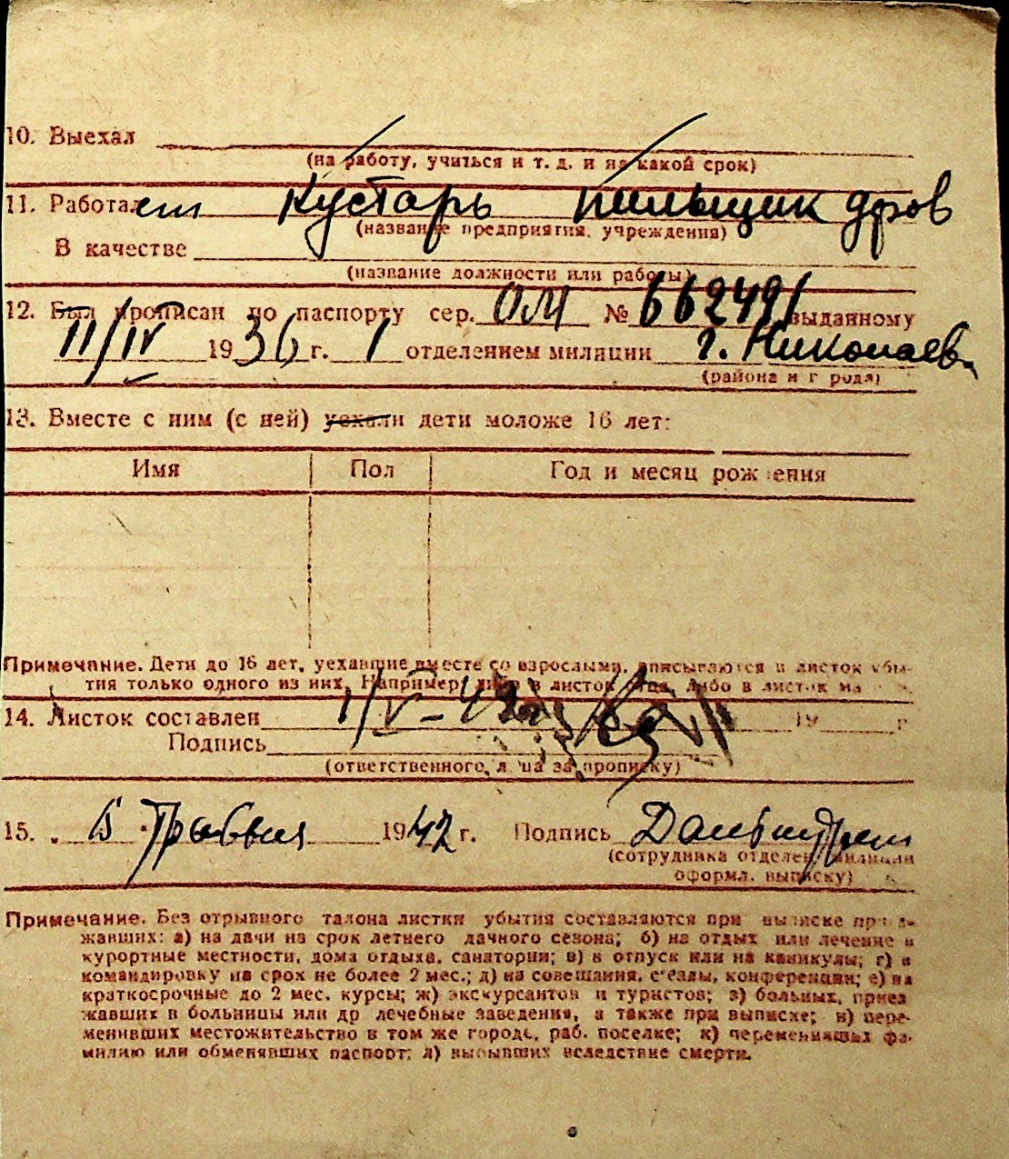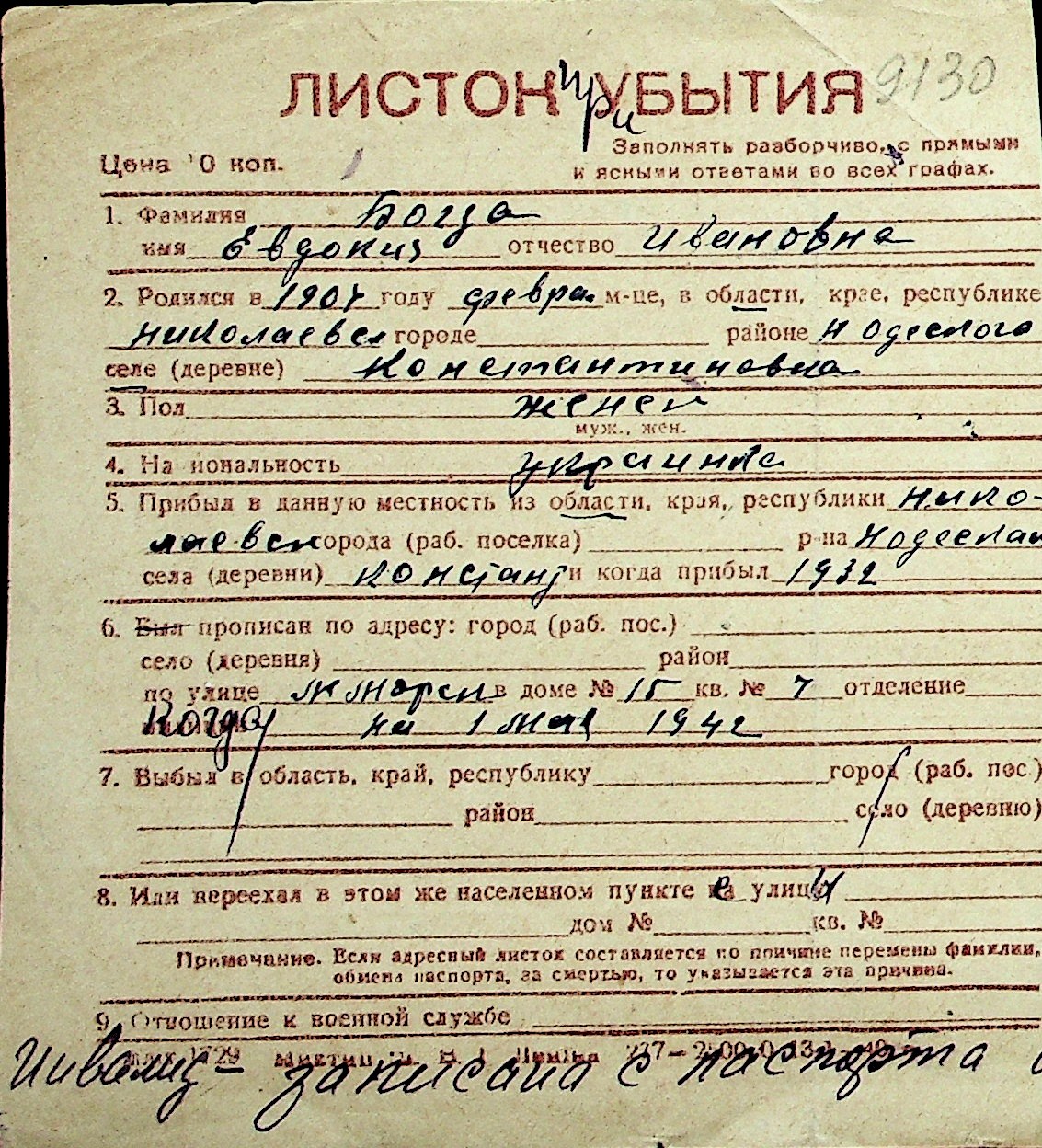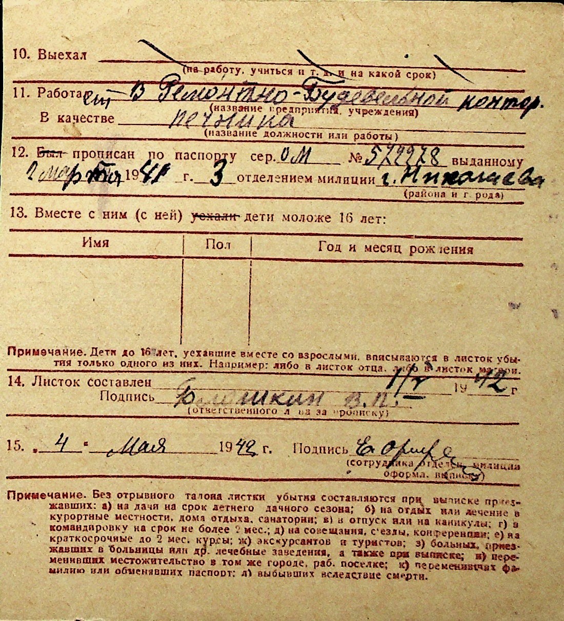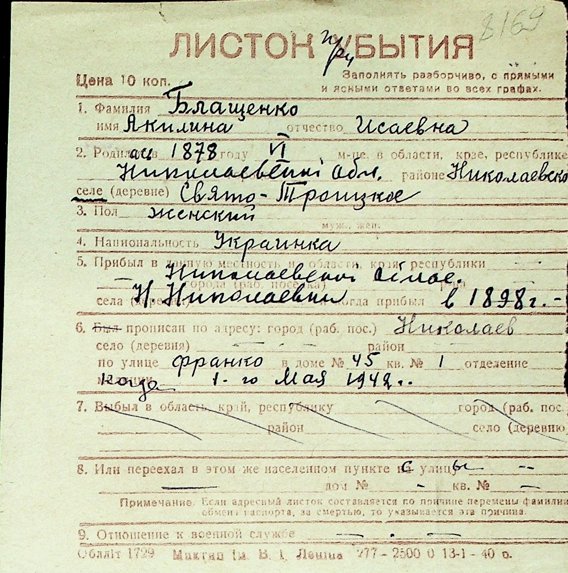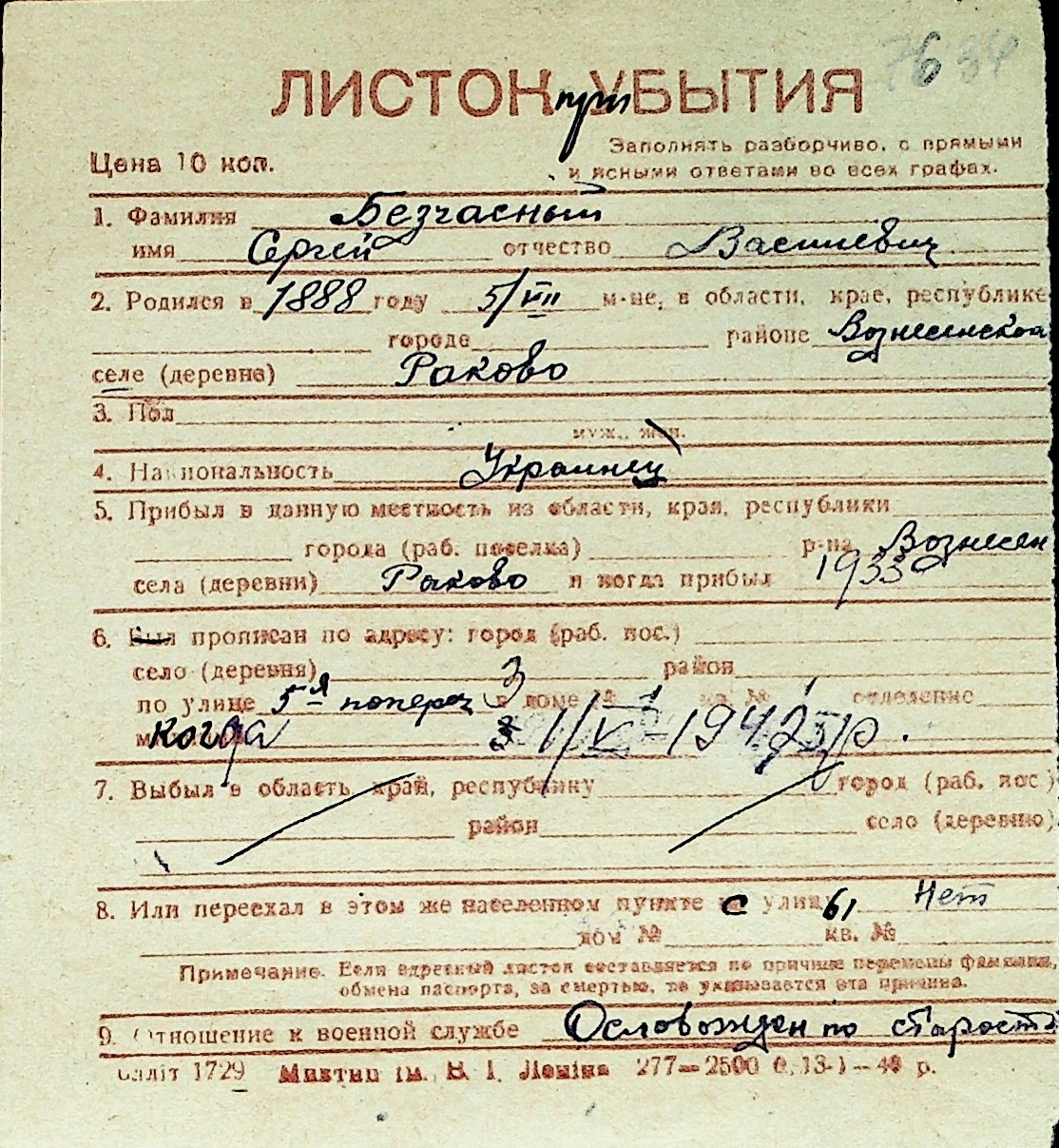 ◦ ◦ Перелік карток на осіб, які мешкали у м. Миколаїв у період окупації 1941–1944 років